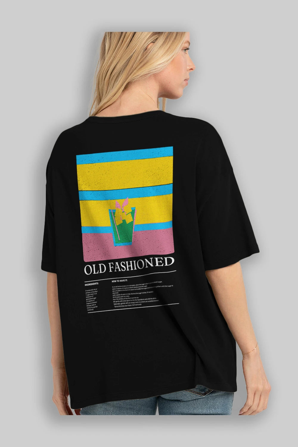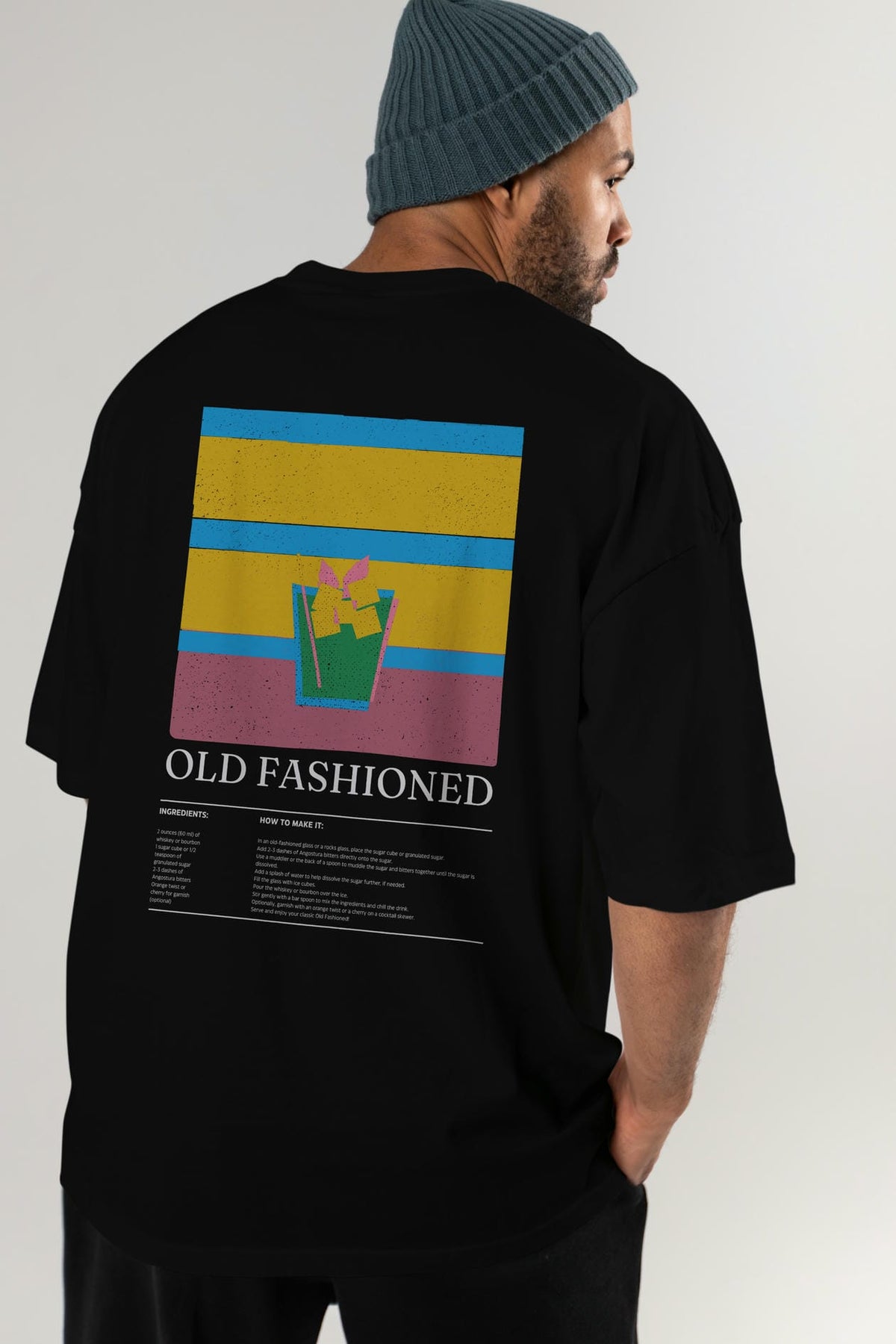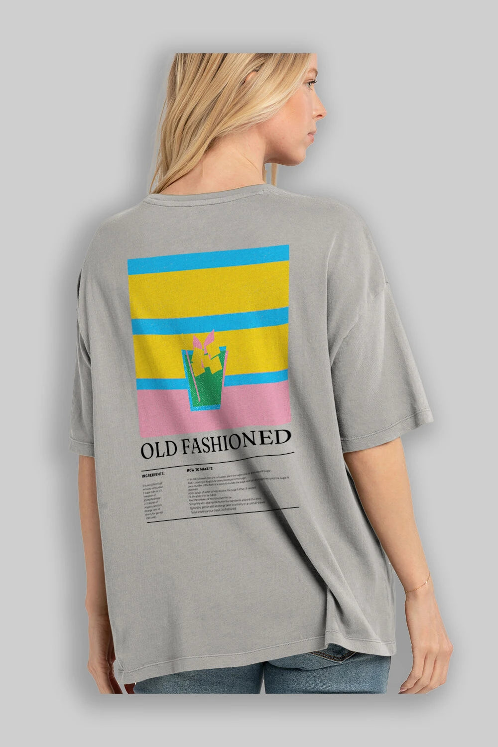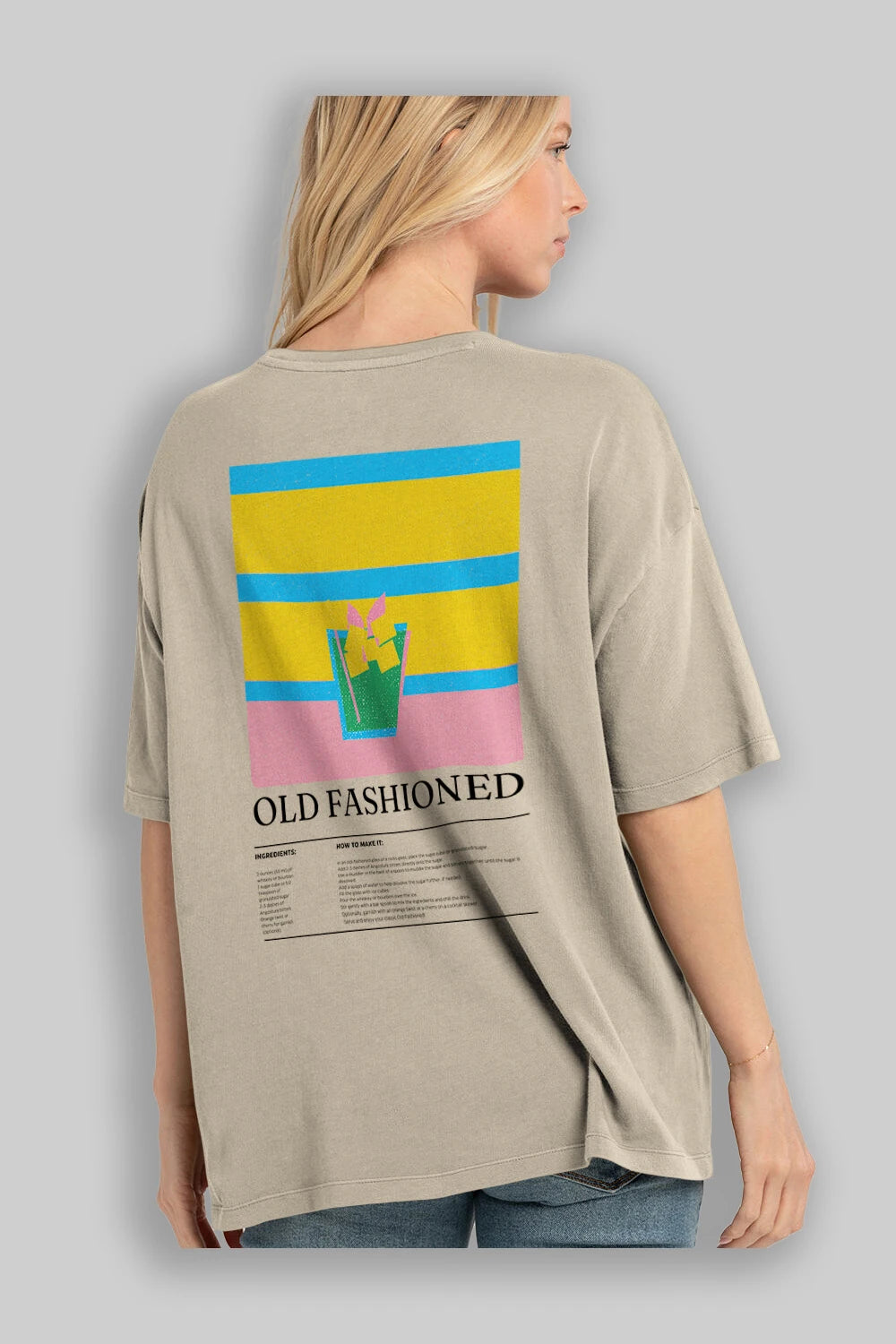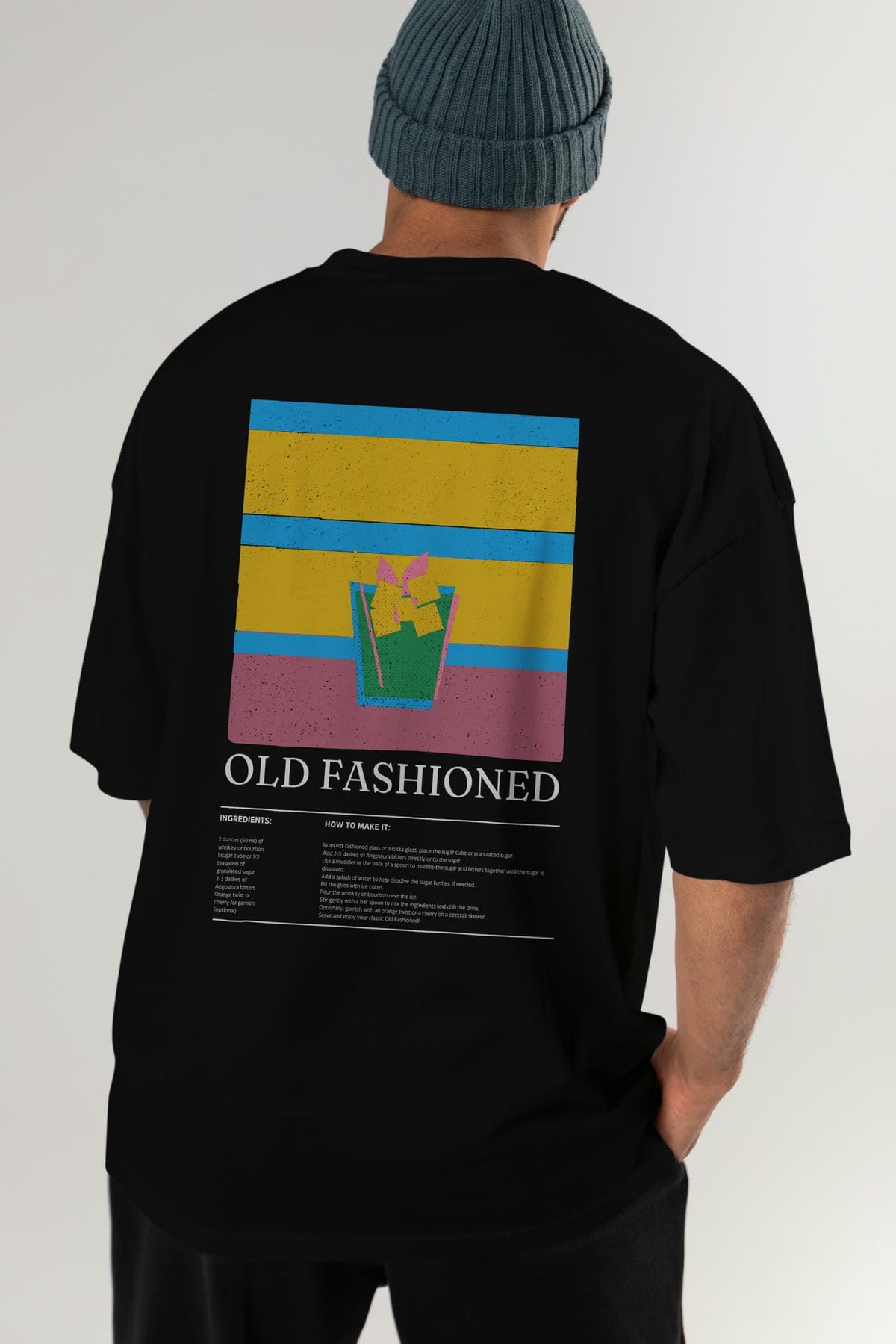 Old Fashioned Kokteyl Serisi Arka Baskılı Oversize t-shirt Erkek Kadın %100 Pamuk Bisiklet Yaka tişort