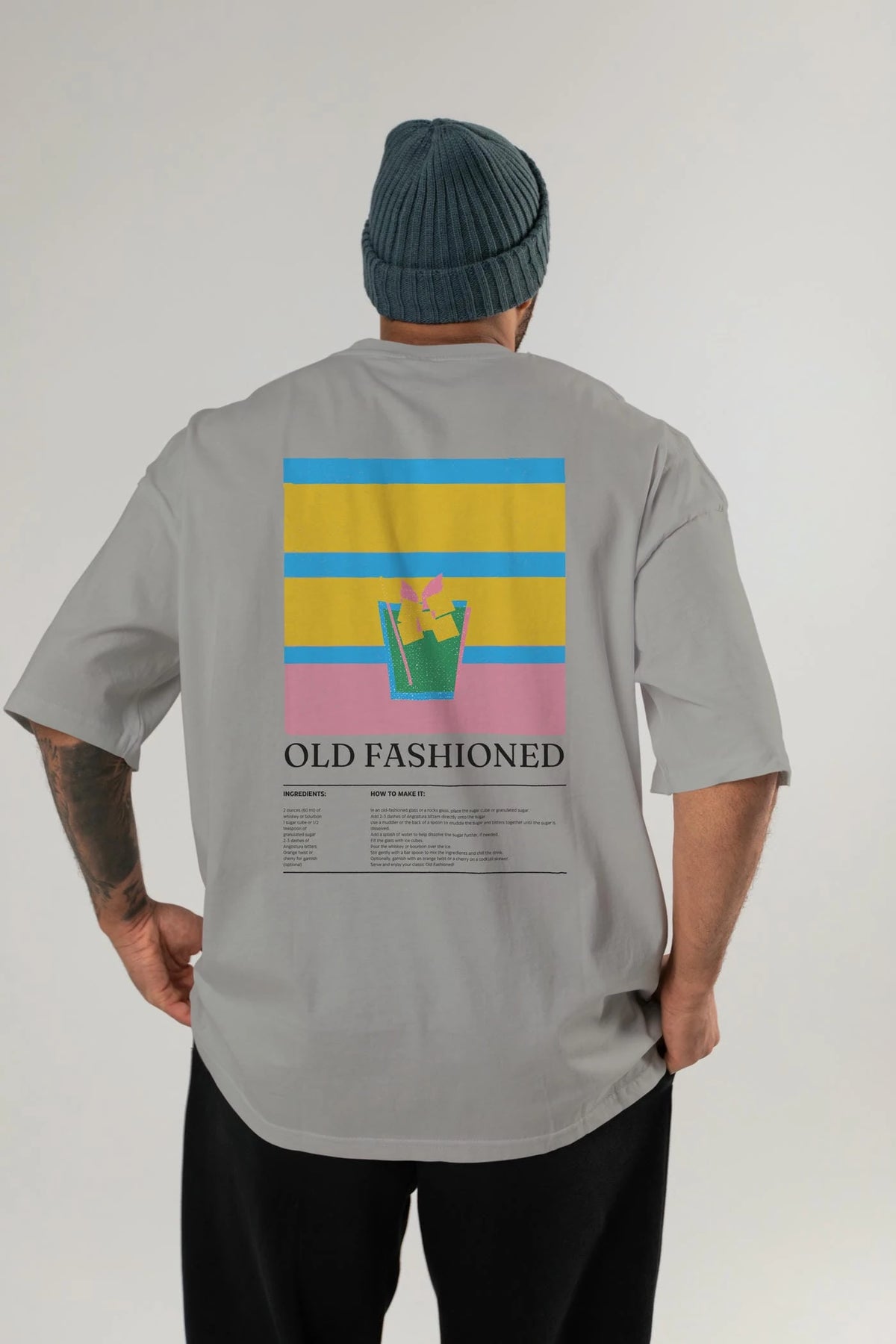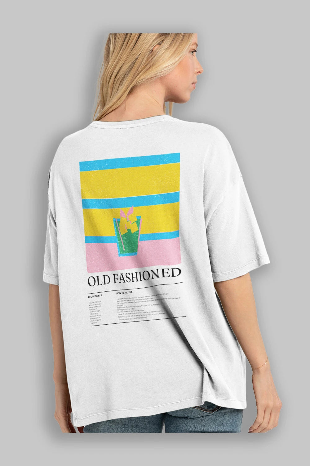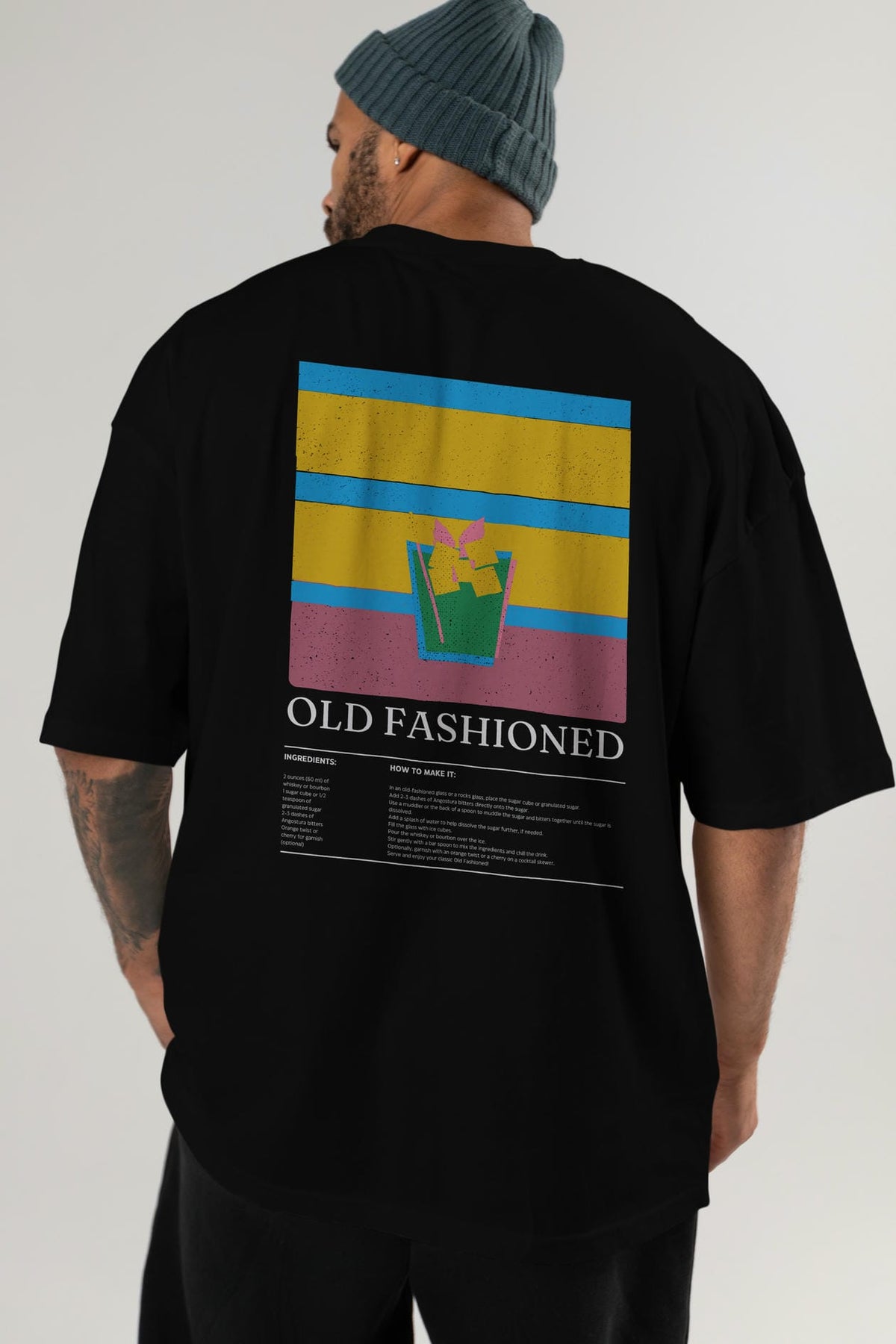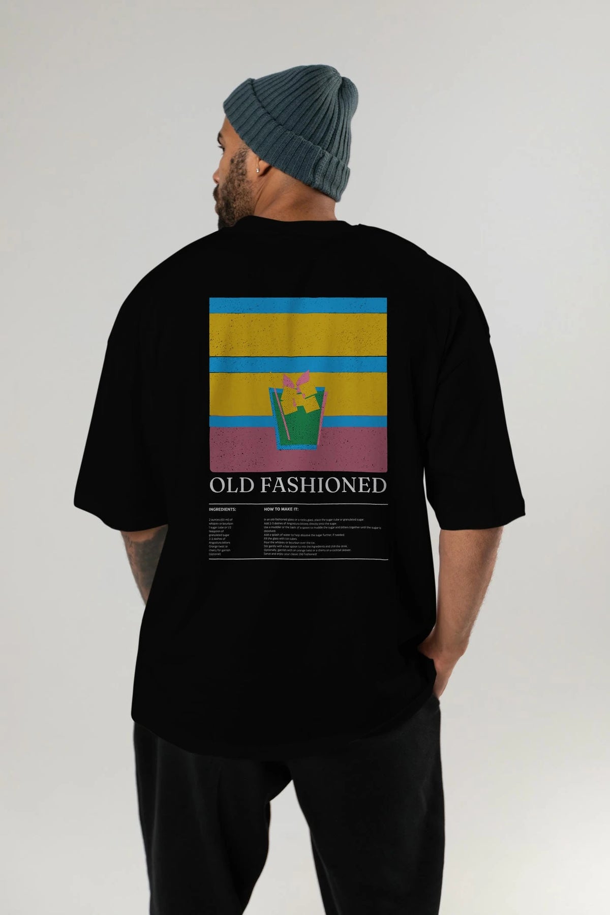 Old Fashioned Kokteyl Serisi Arka Baskılı Oversize t-shirt Erkek Kadın %100 Pamuk Bisiklet Yaka tişort