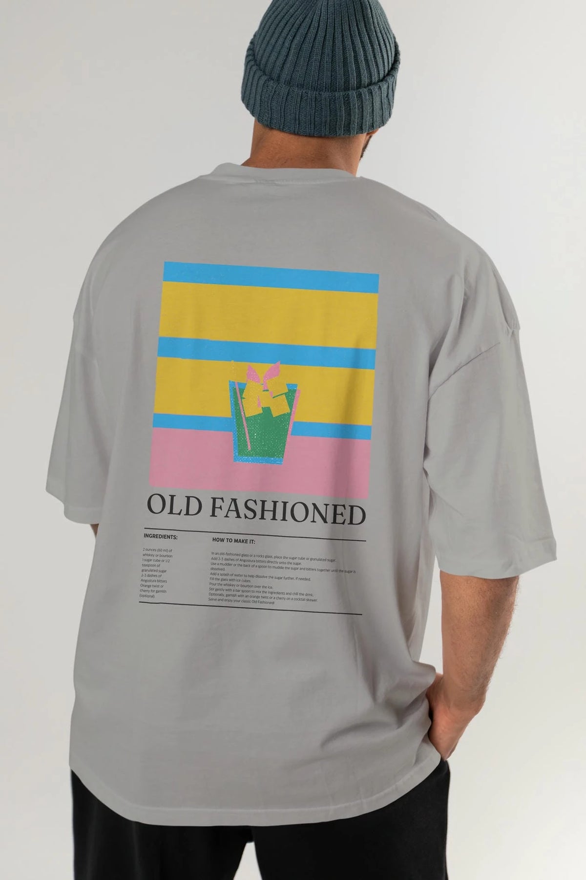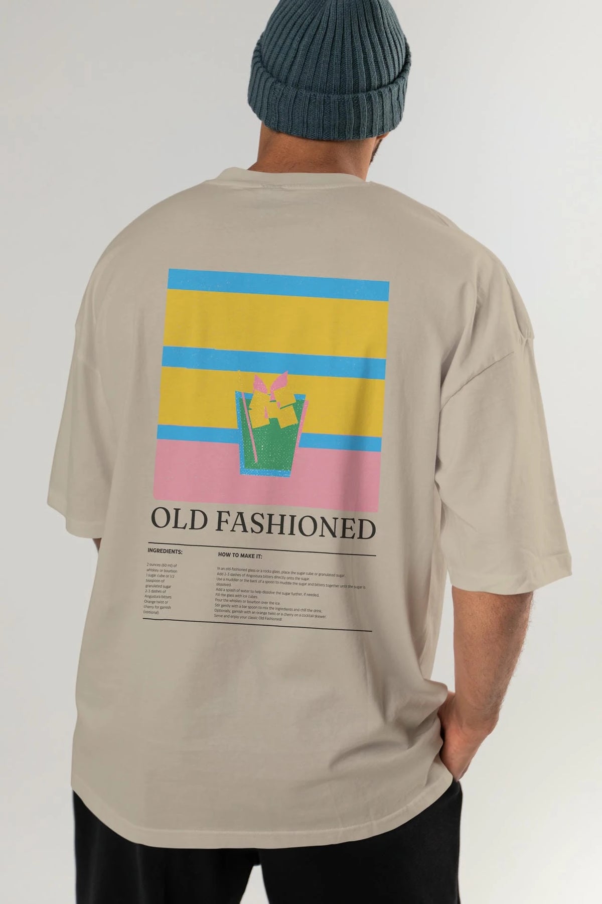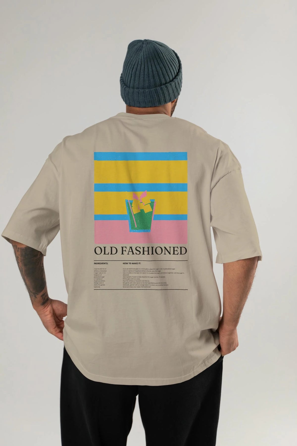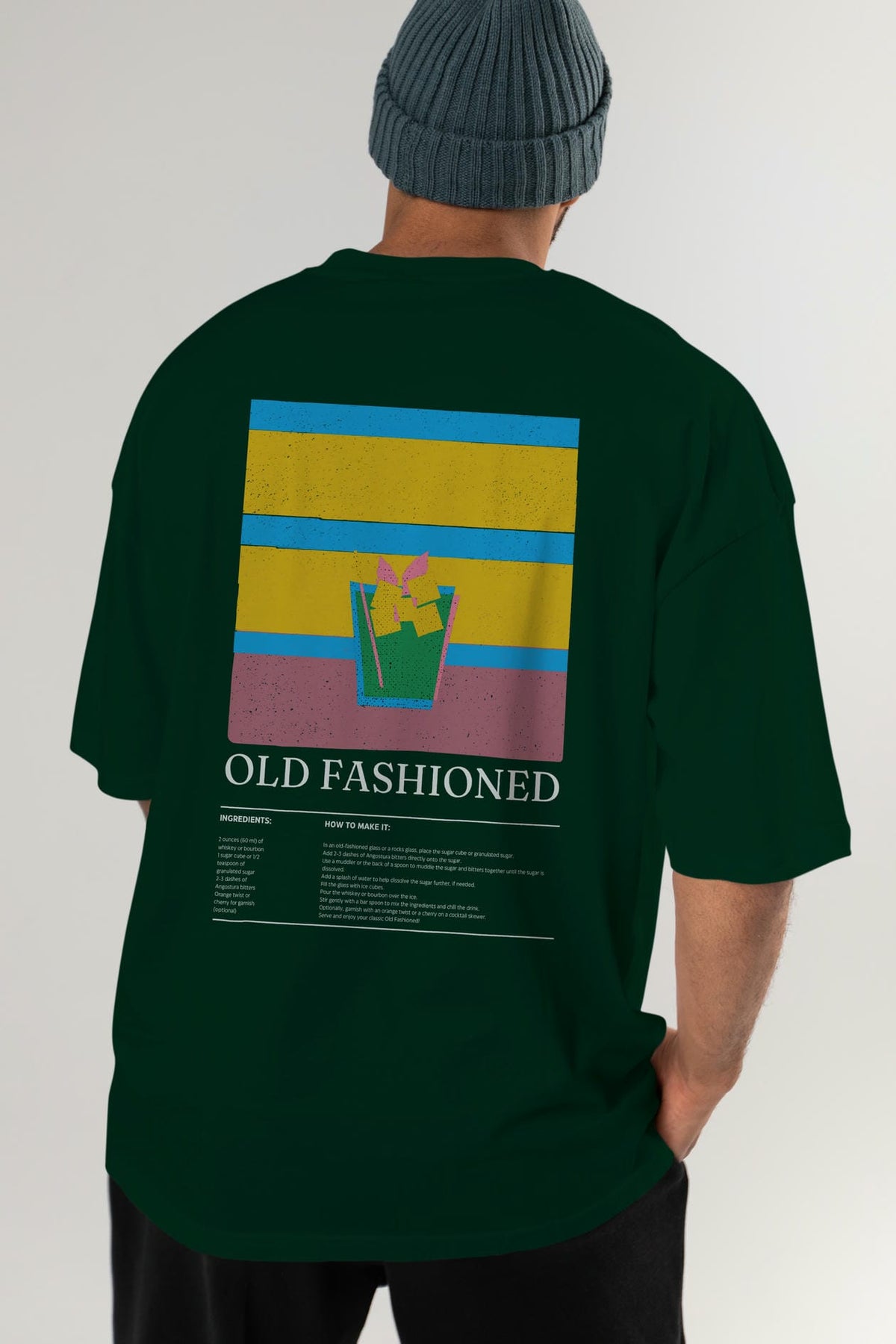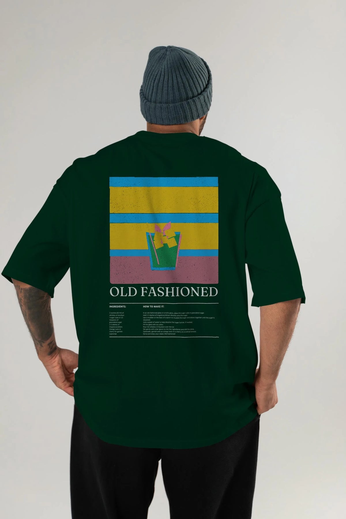 Old Fashioned Kokteyl Serisi Arka Baskılı Oversize t-shirt Erkek Kadın %100 Pamuk Bisiklet Yaka tişort