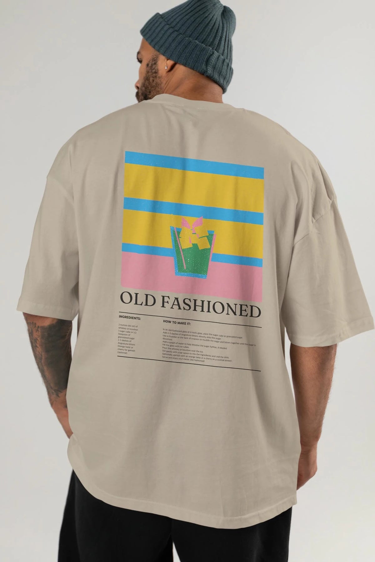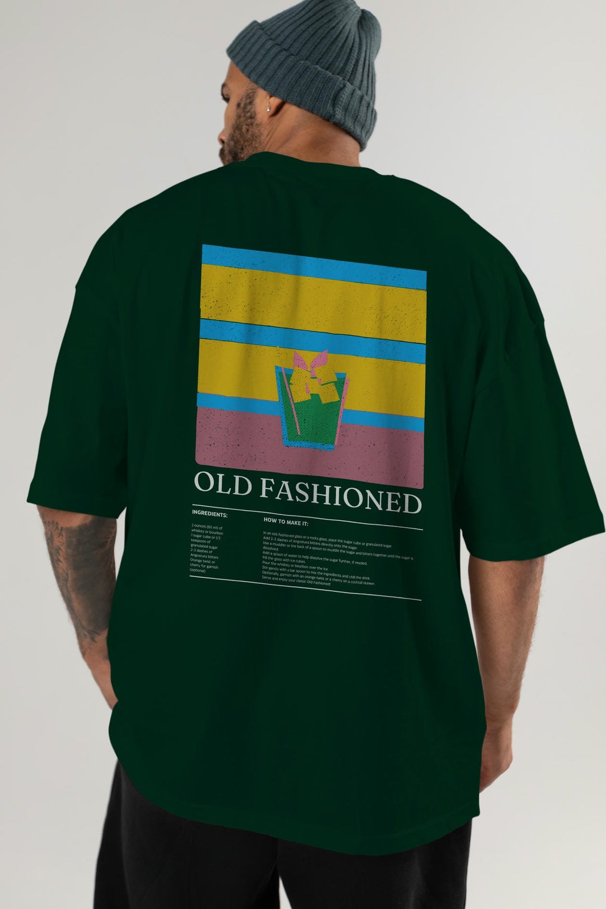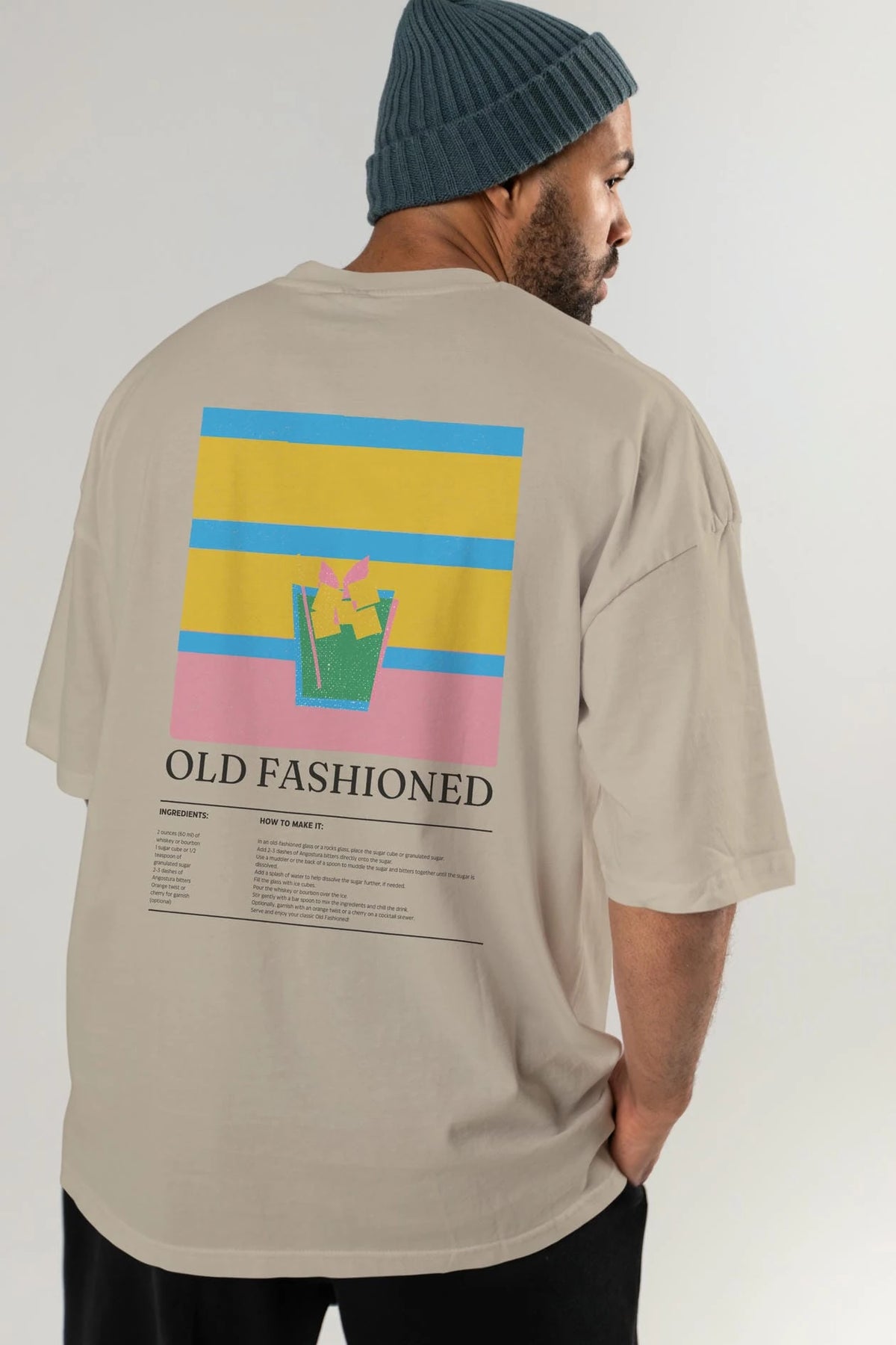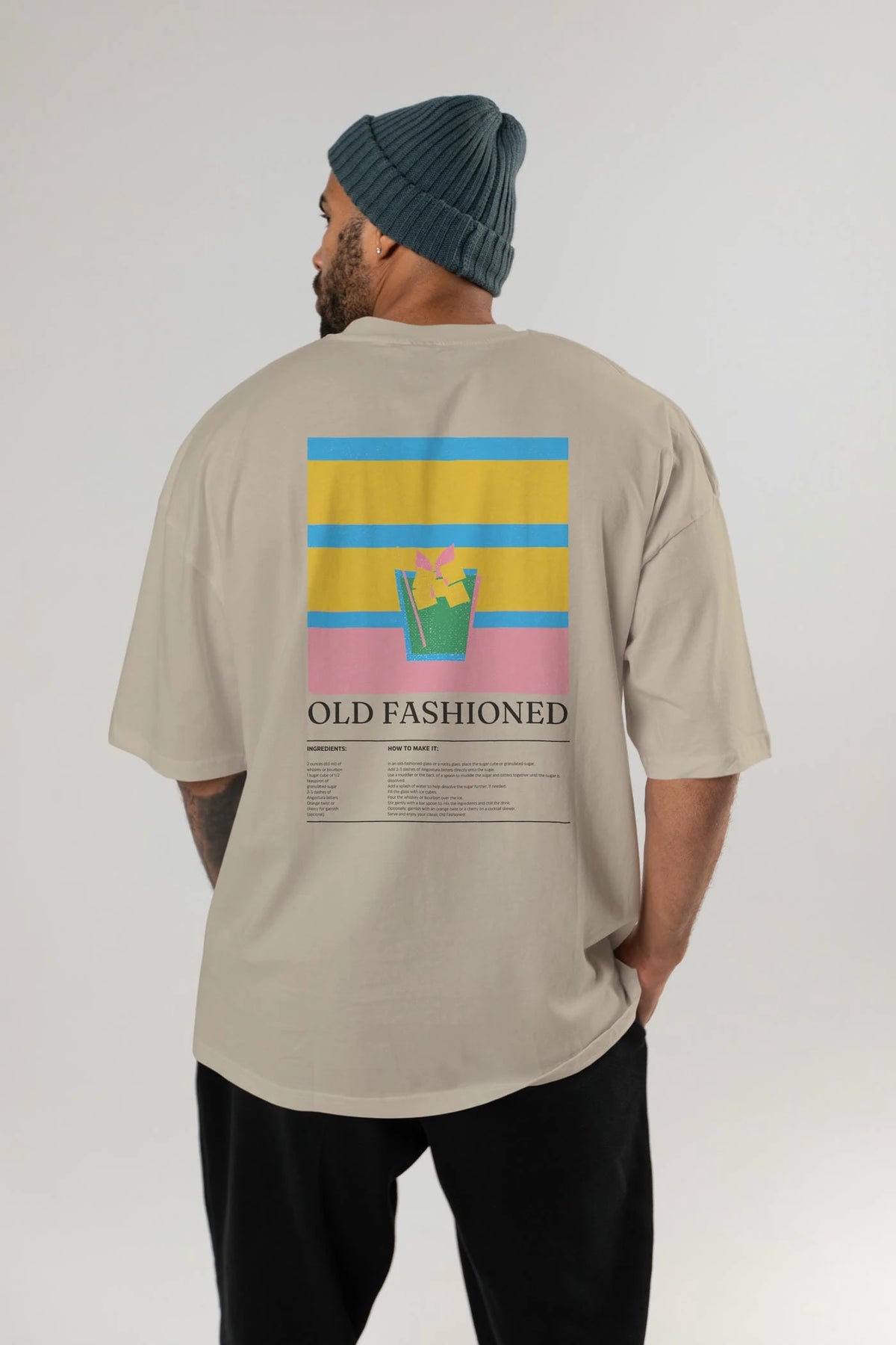 Old Fashioned Kokteyl Serisi Arka Baskılı Oversize t-shirt Erkek Kadın %100 Pamuk Bisiklet Yaka tişort