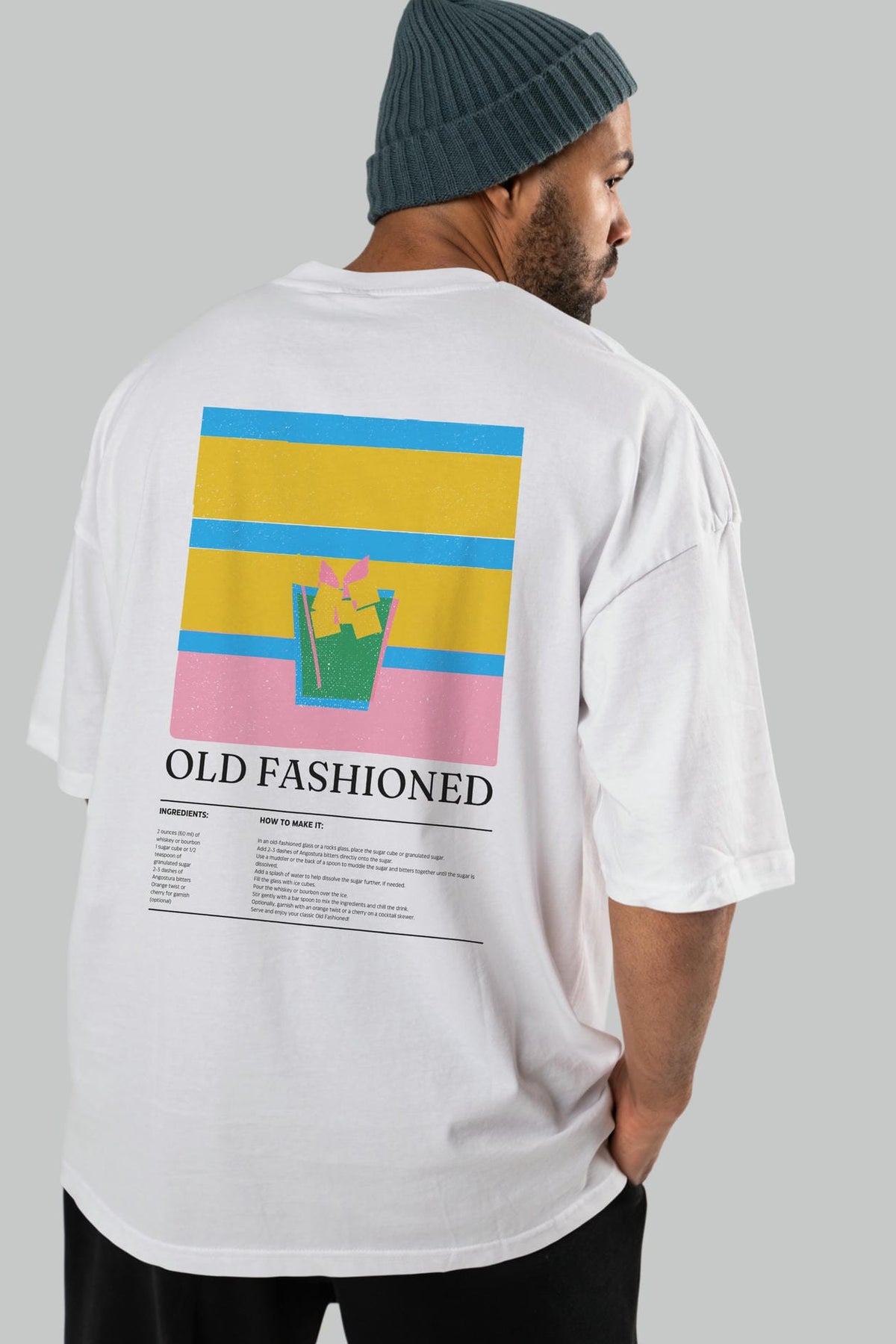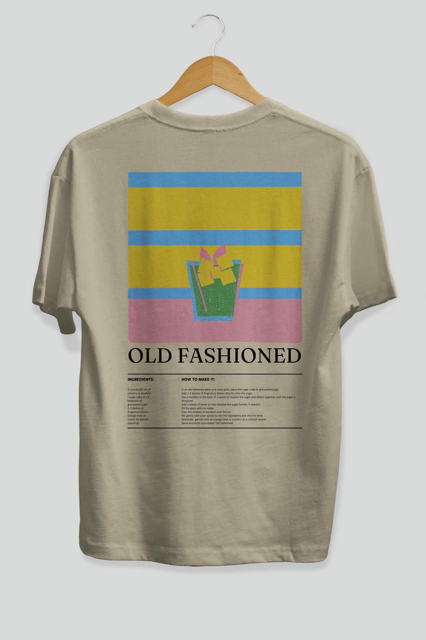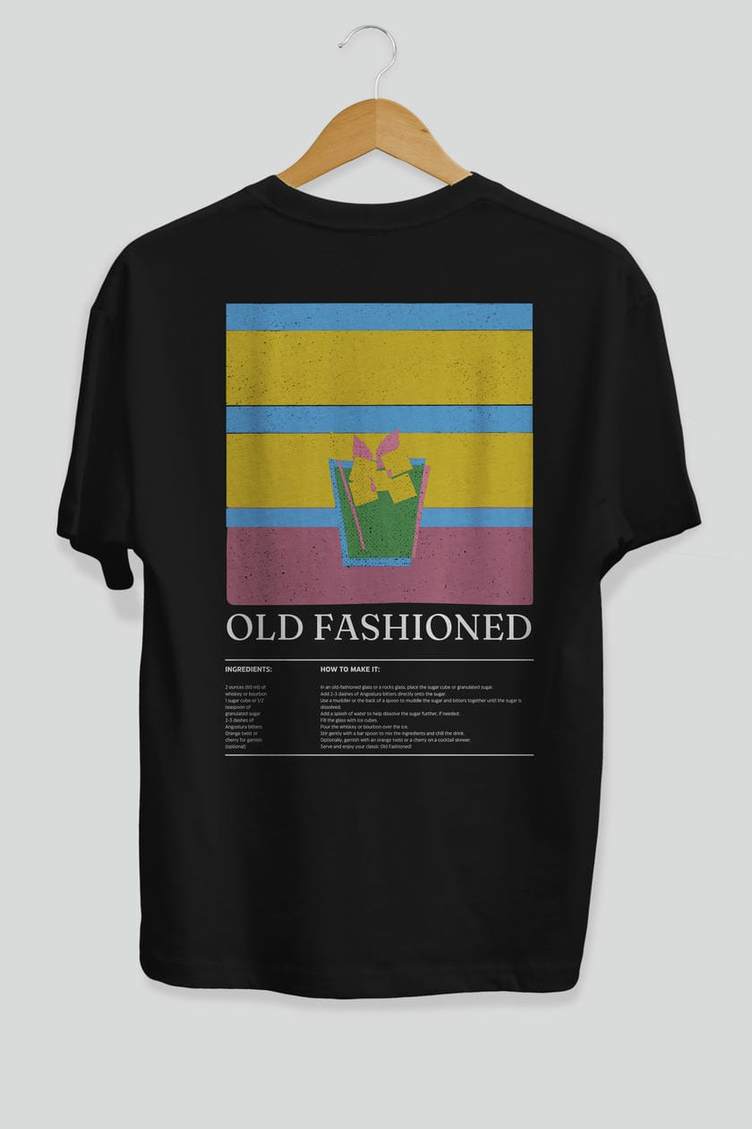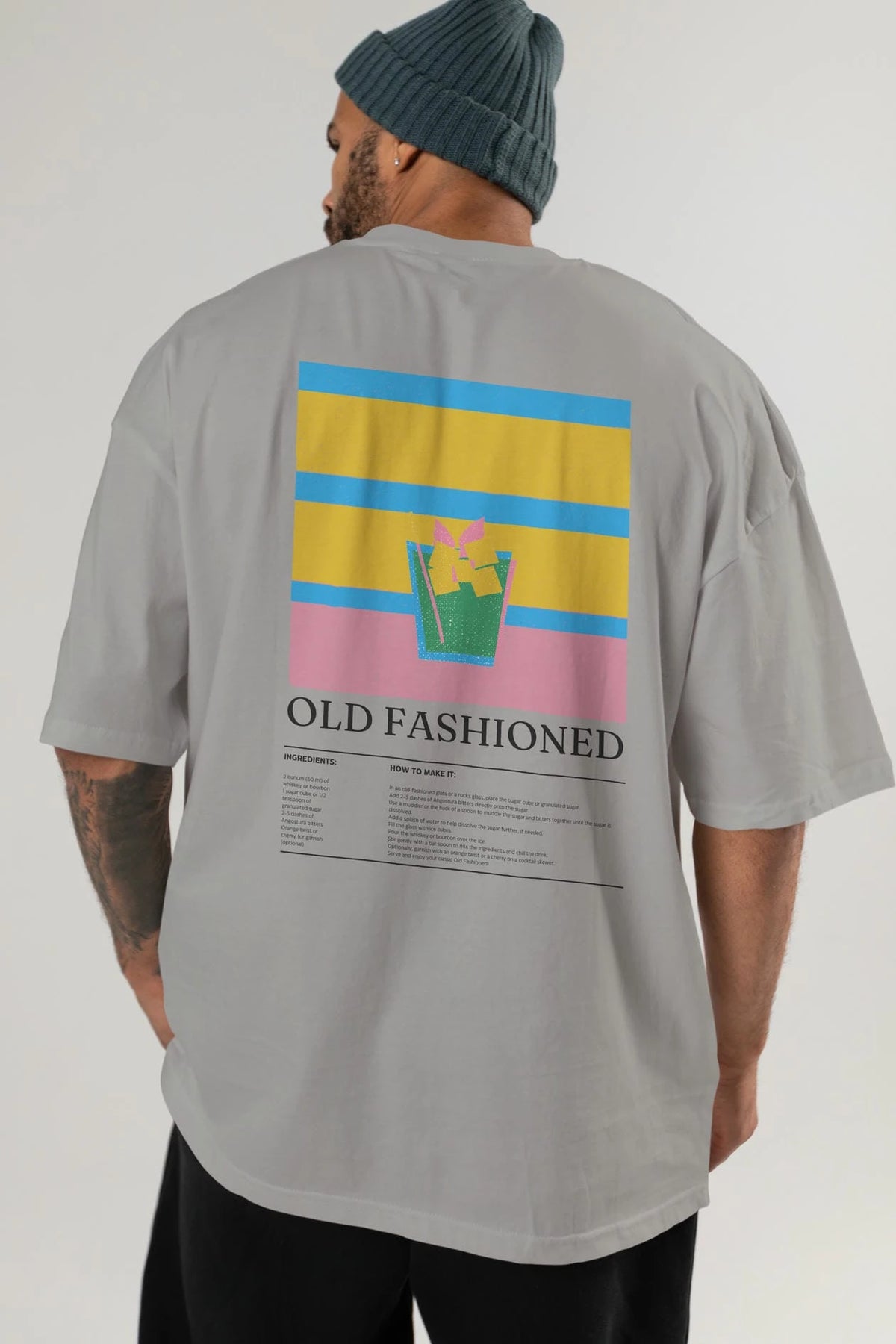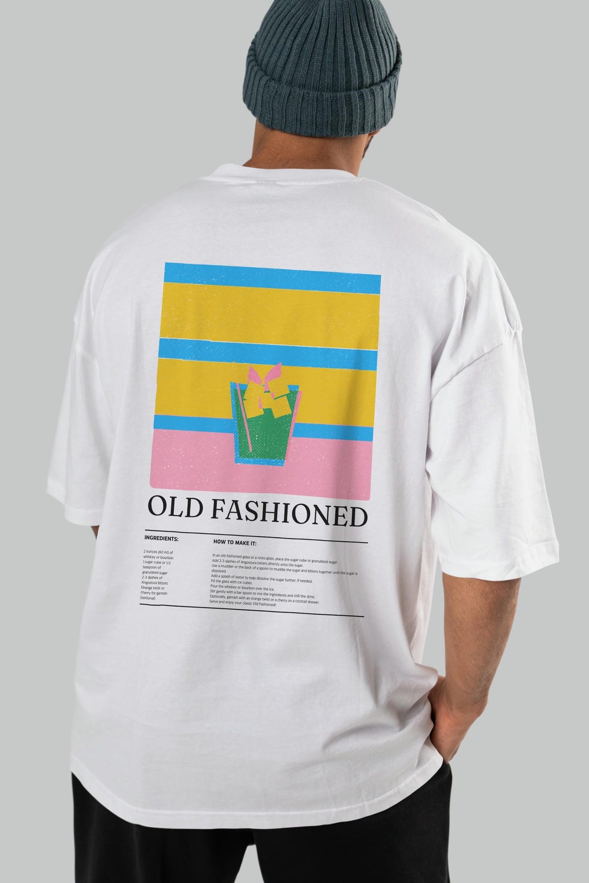 Old Fashioned Kokteyl Serisi Arka Baskılı Oversize t-shirt Erkek Kadın %100 Pamuk Bisiklet Yaka tişort