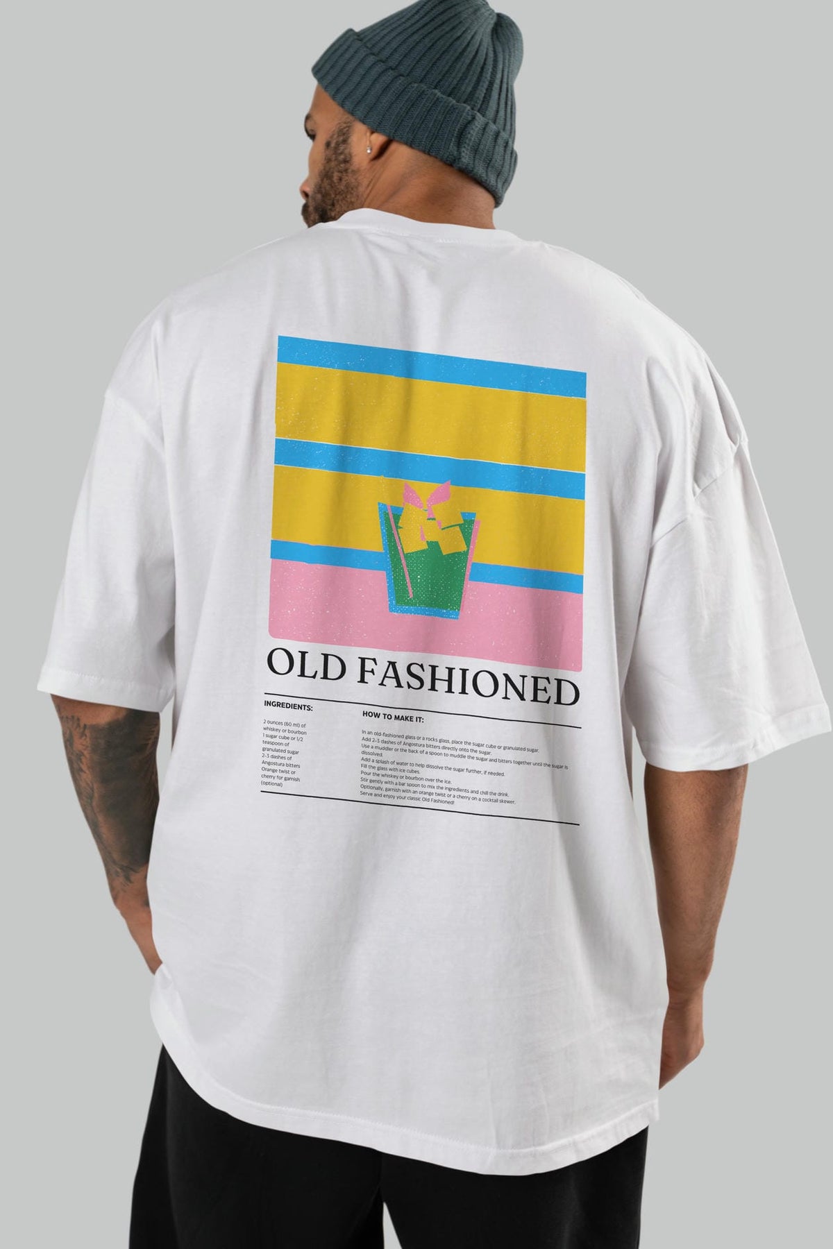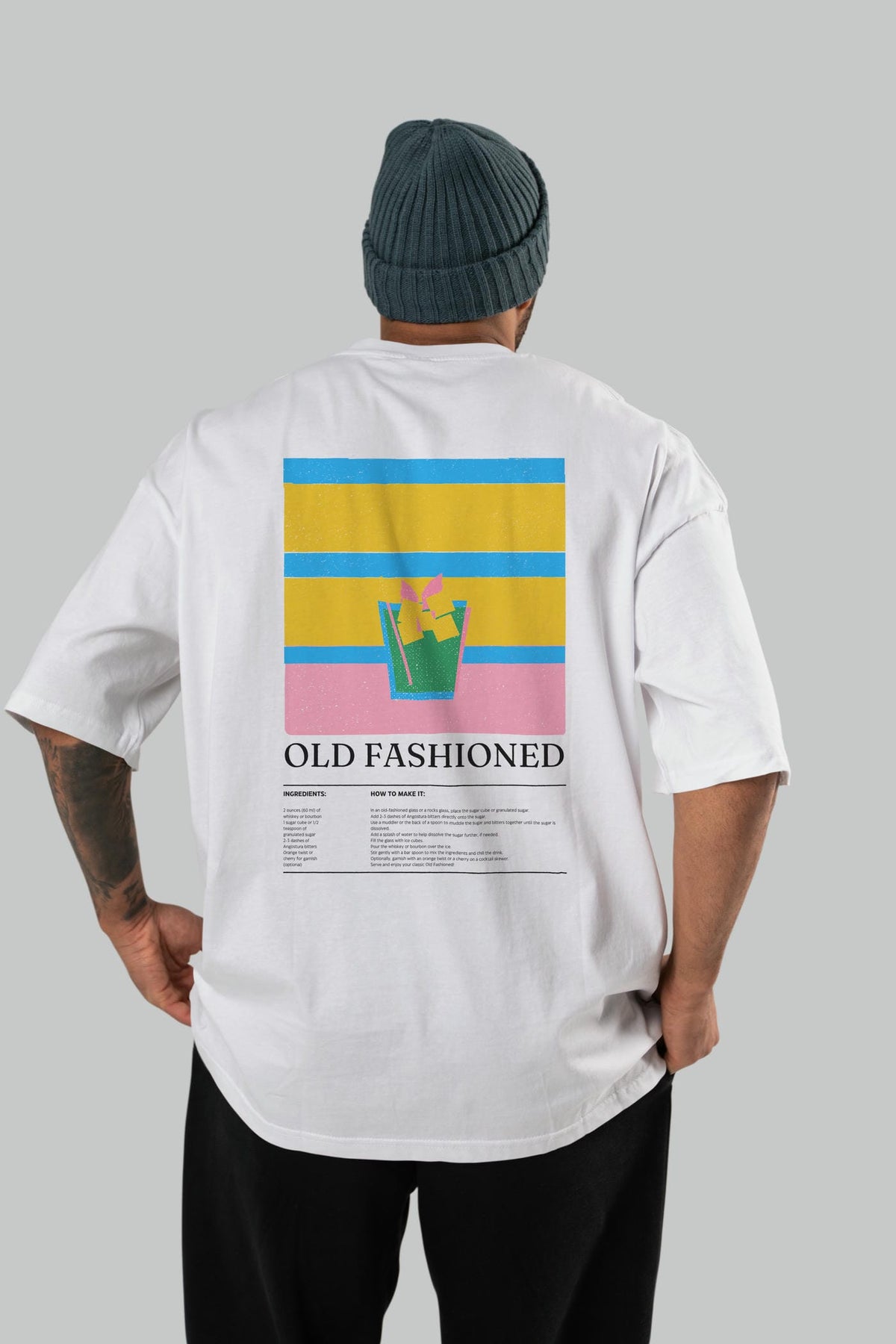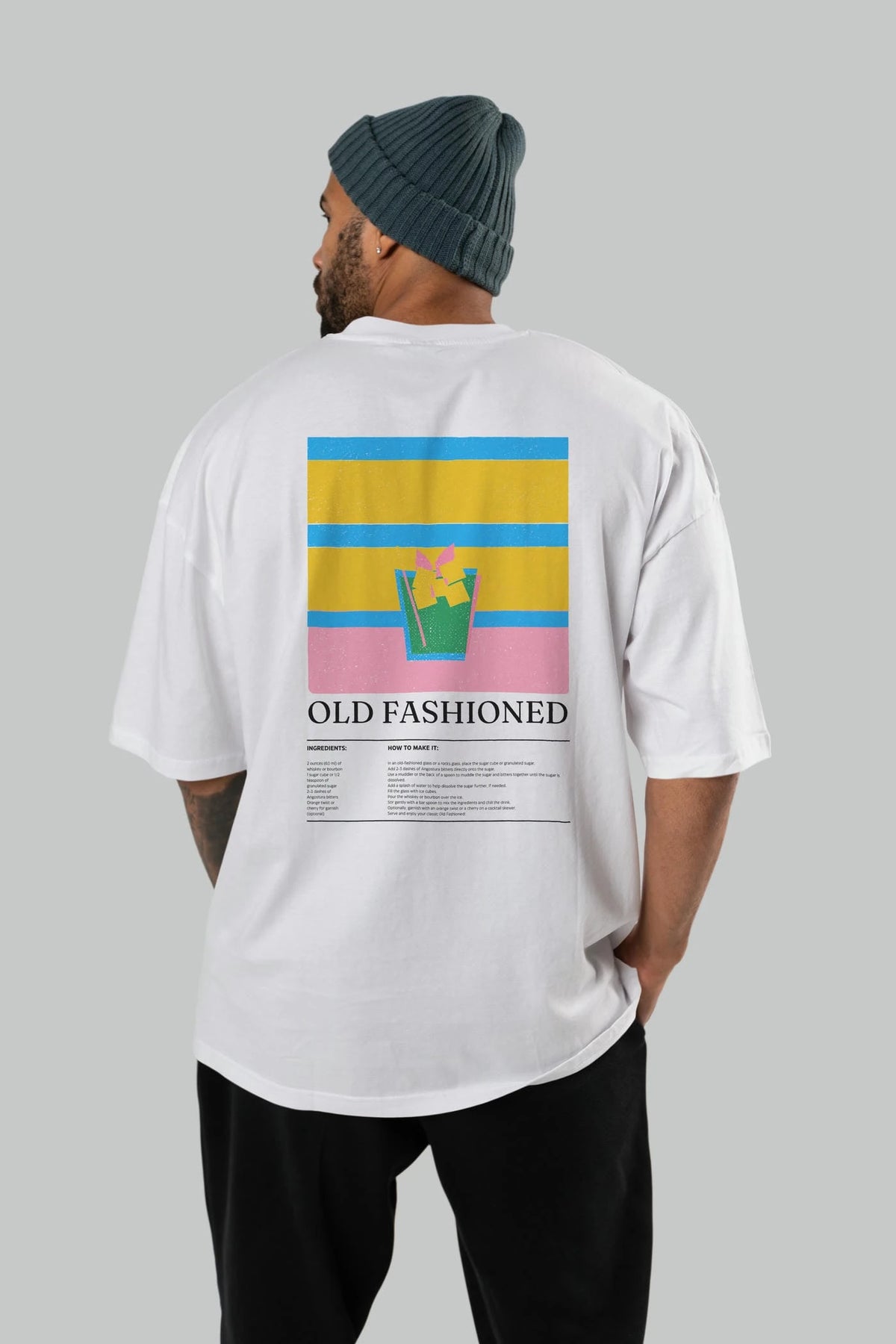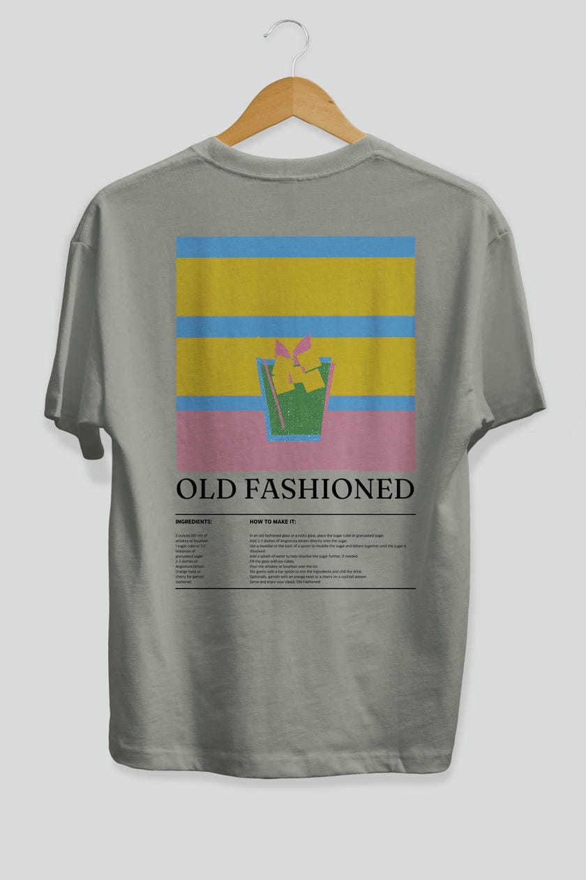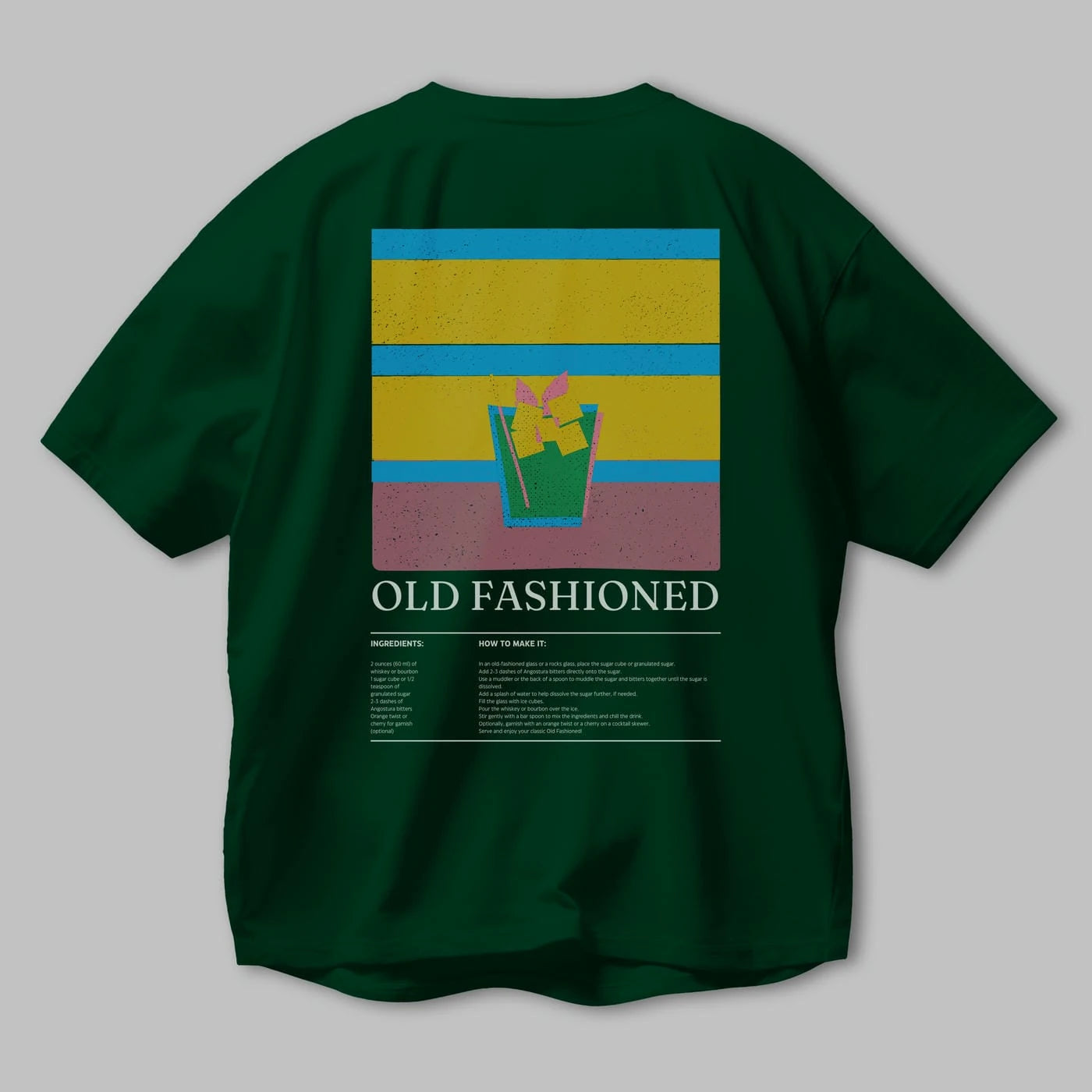 Old Fashioned Kokteyl Serisi Arka Baskılı Oversize t-shirt Erkek Kadın %100 Pamuk Bisiklet Yaka tişort