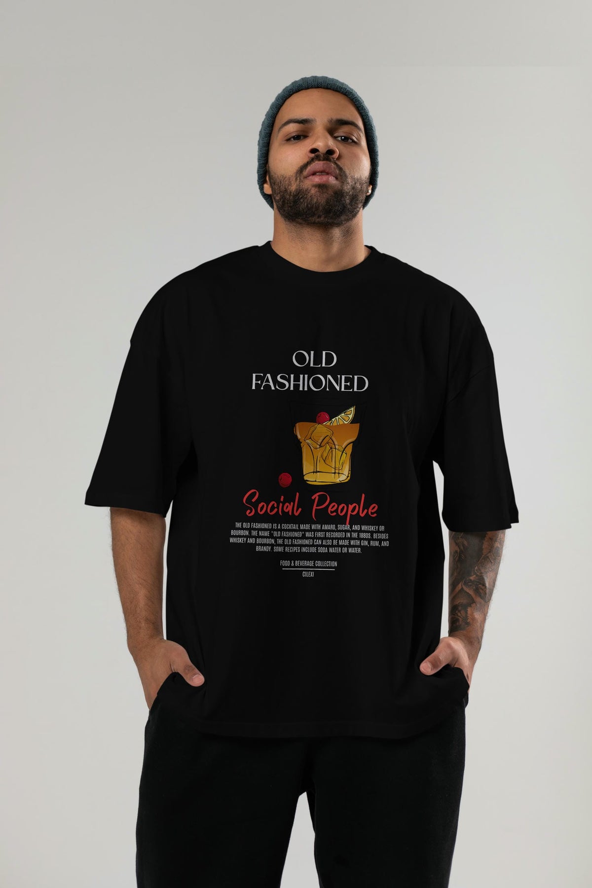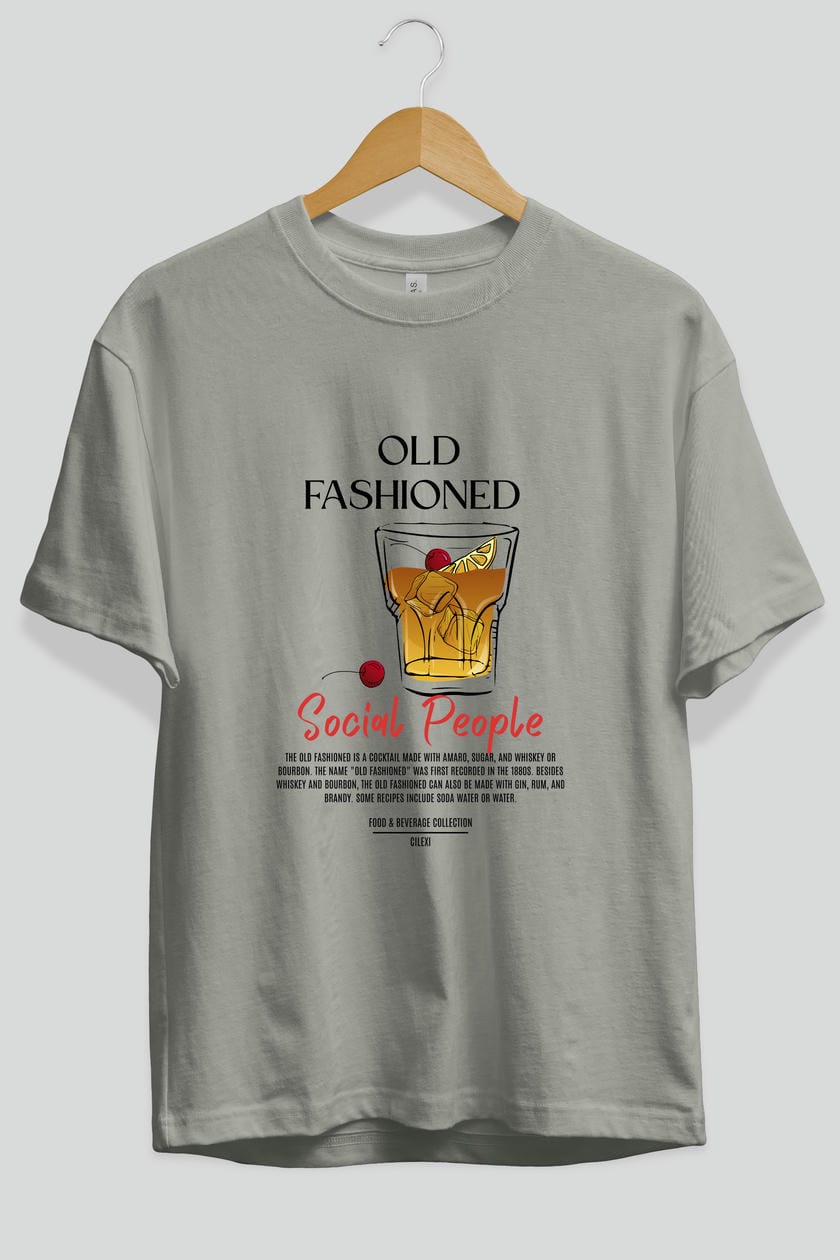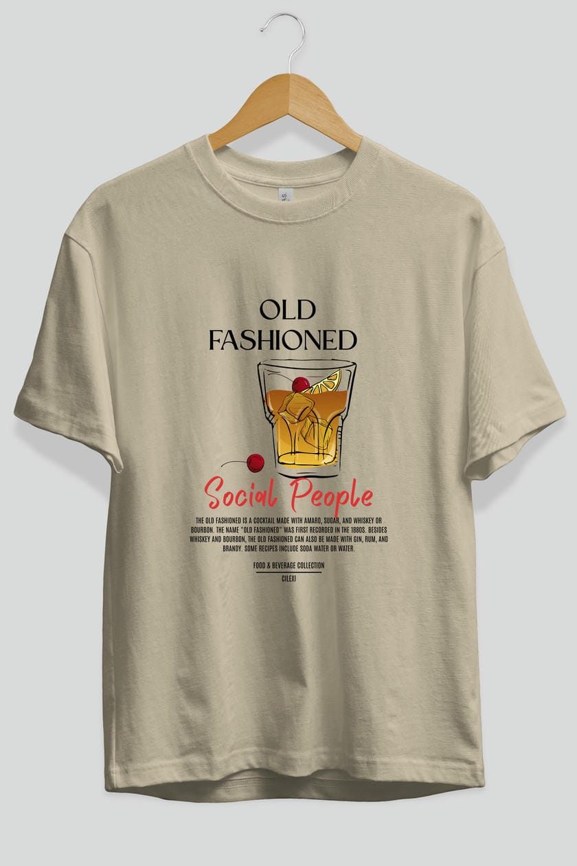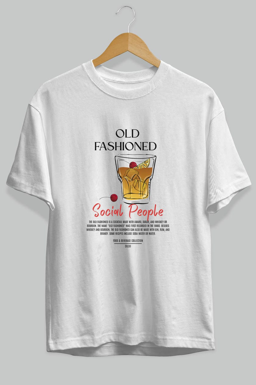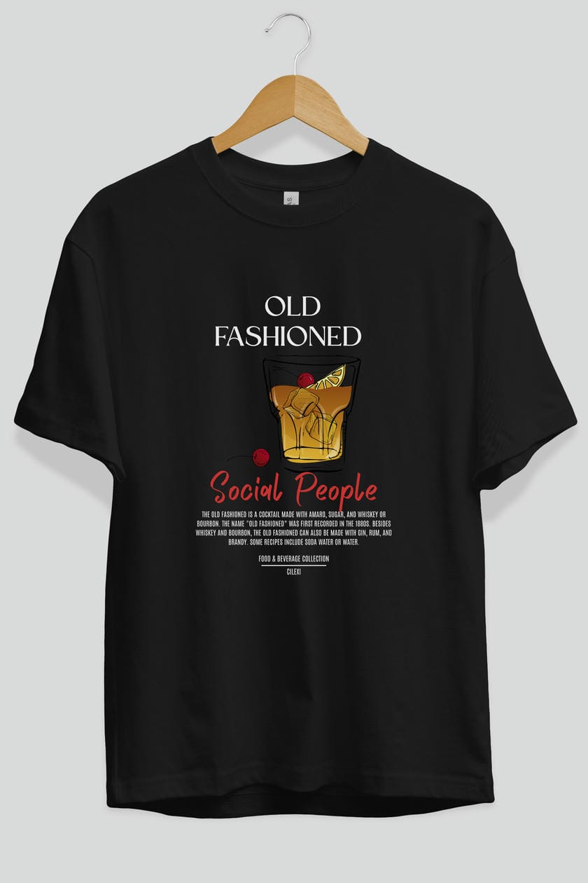 Old Fashıoned Kokteyl Serisi ön Baskılı Oversize t-shirt Erkek Kadın %100 Pamuk Bisiklet Yaka tişort