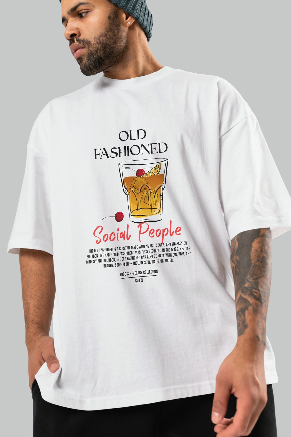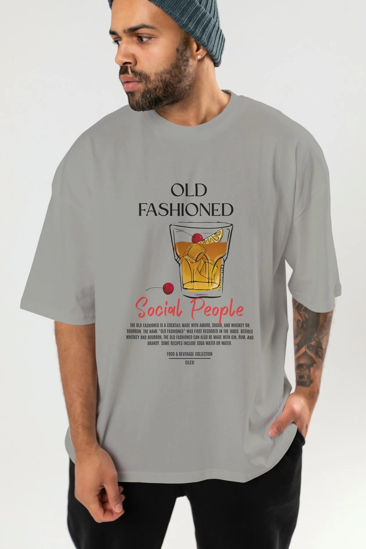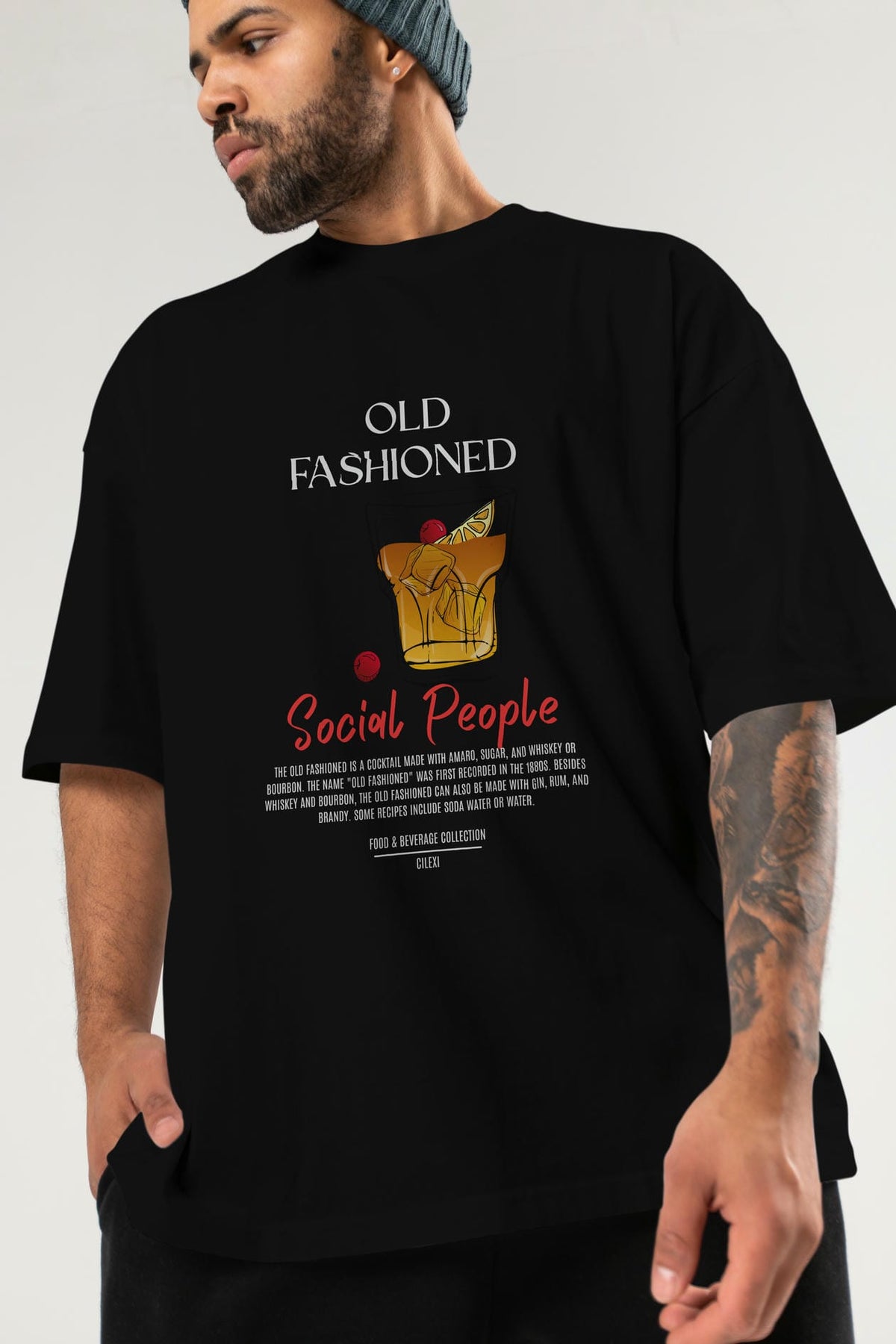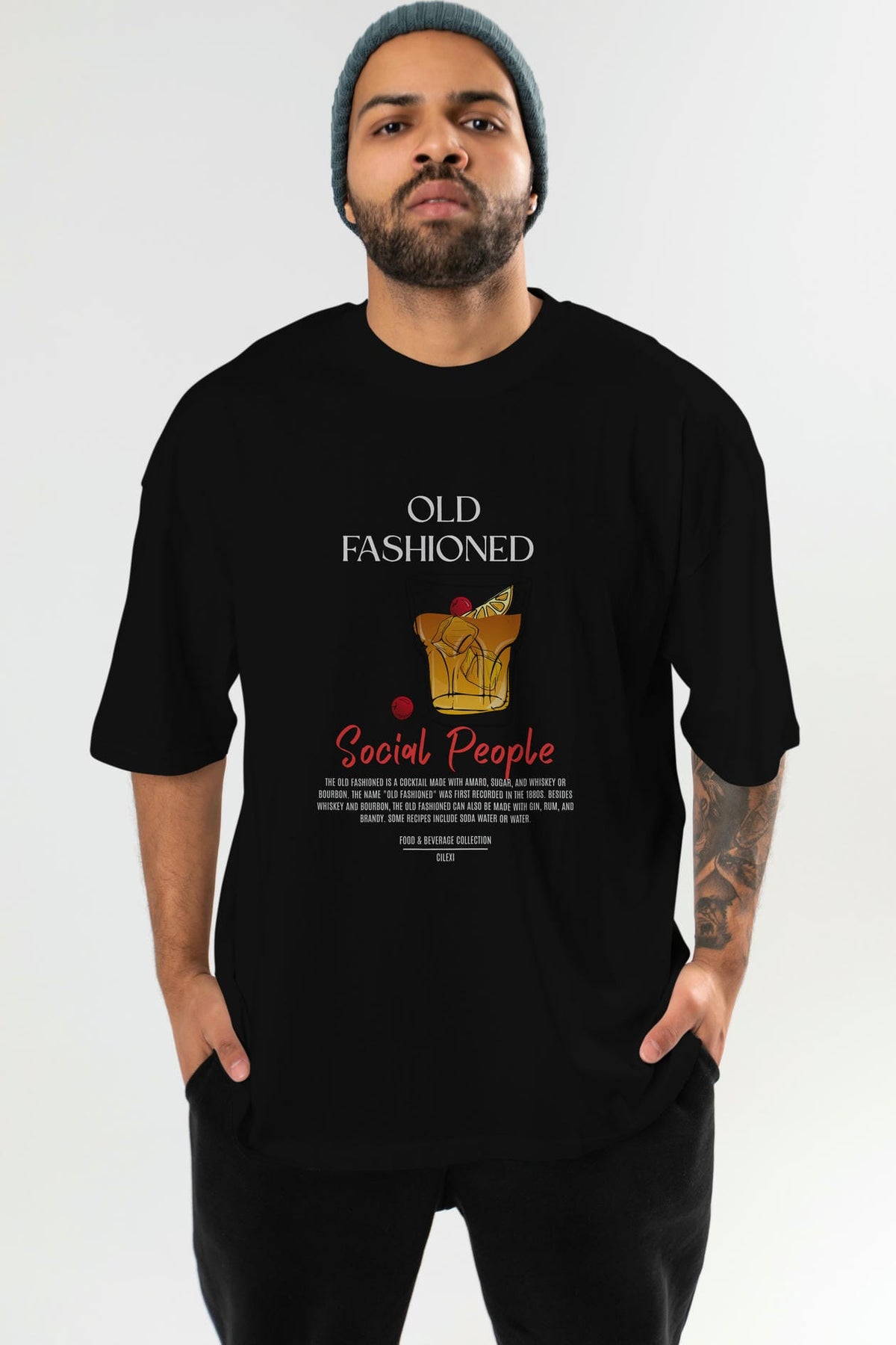 Old Fashıoned Kokteyl Serisi ön Baskılı Oversize t-shirt Erkek Kadın %100 Pamuk Bisiklet Yaka tişort