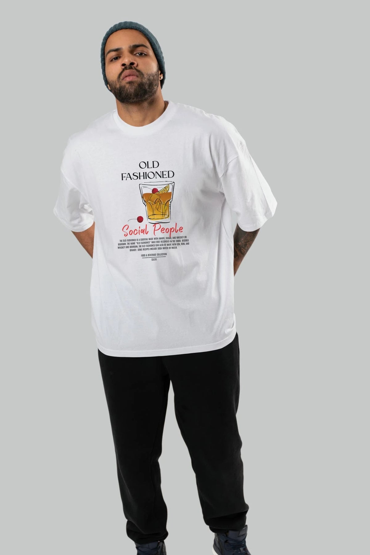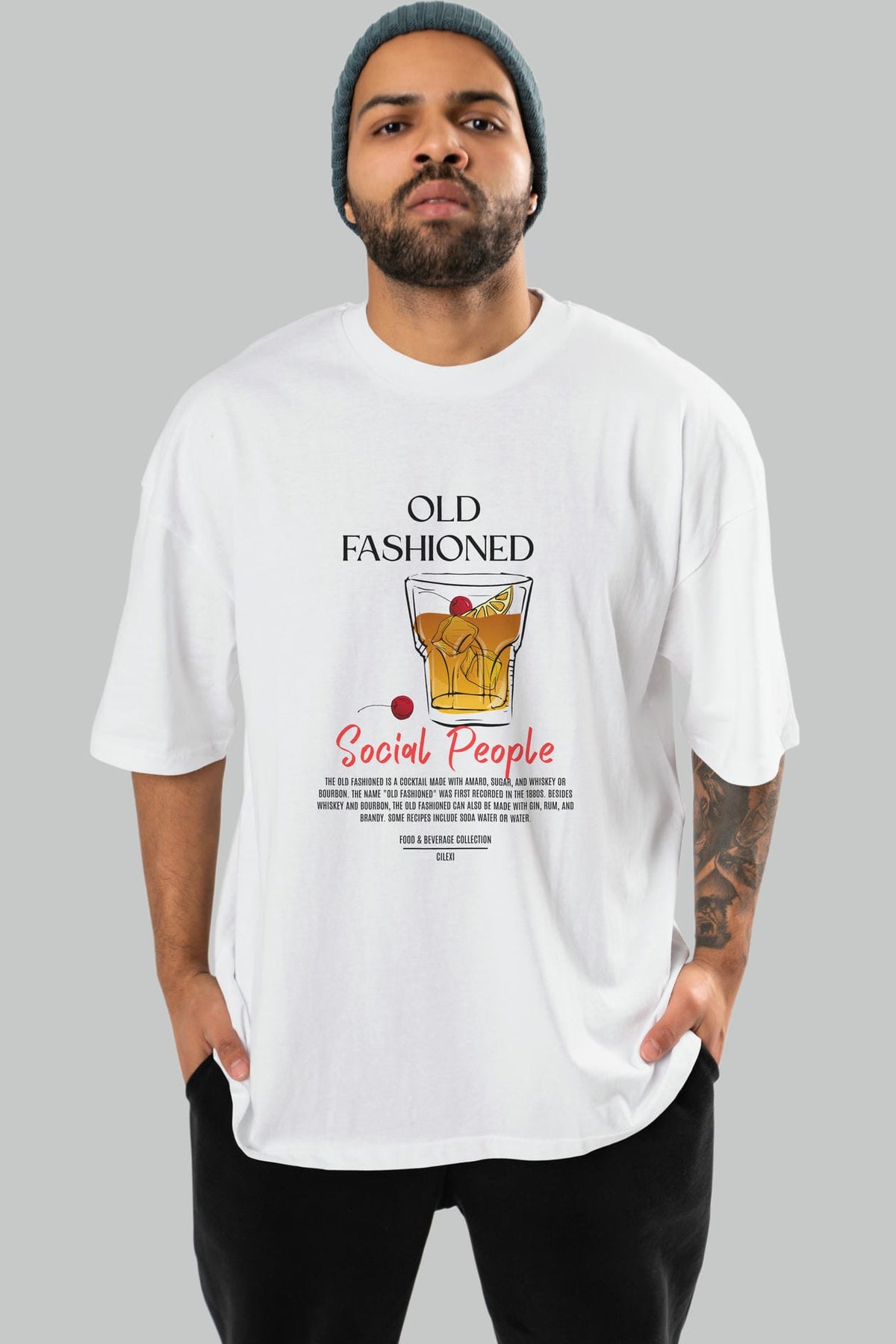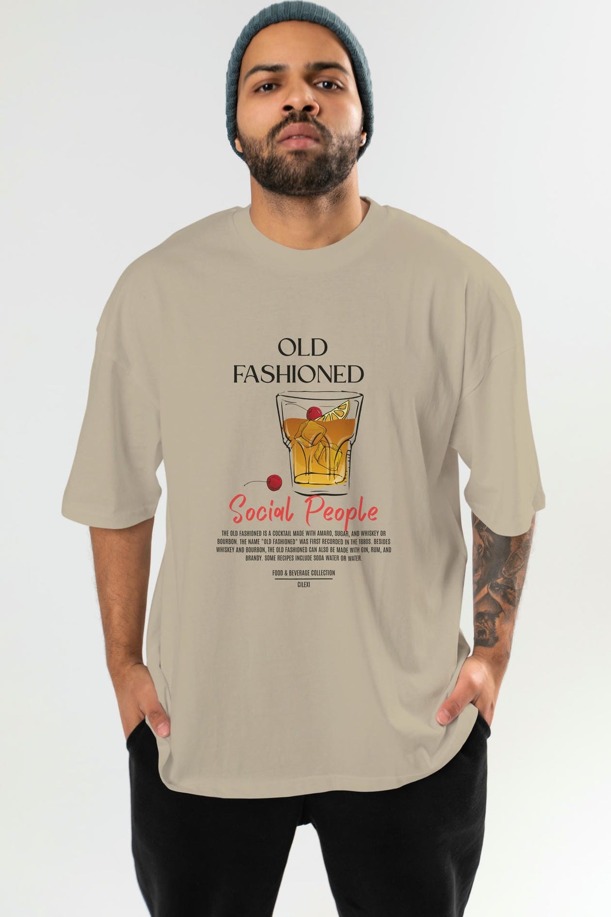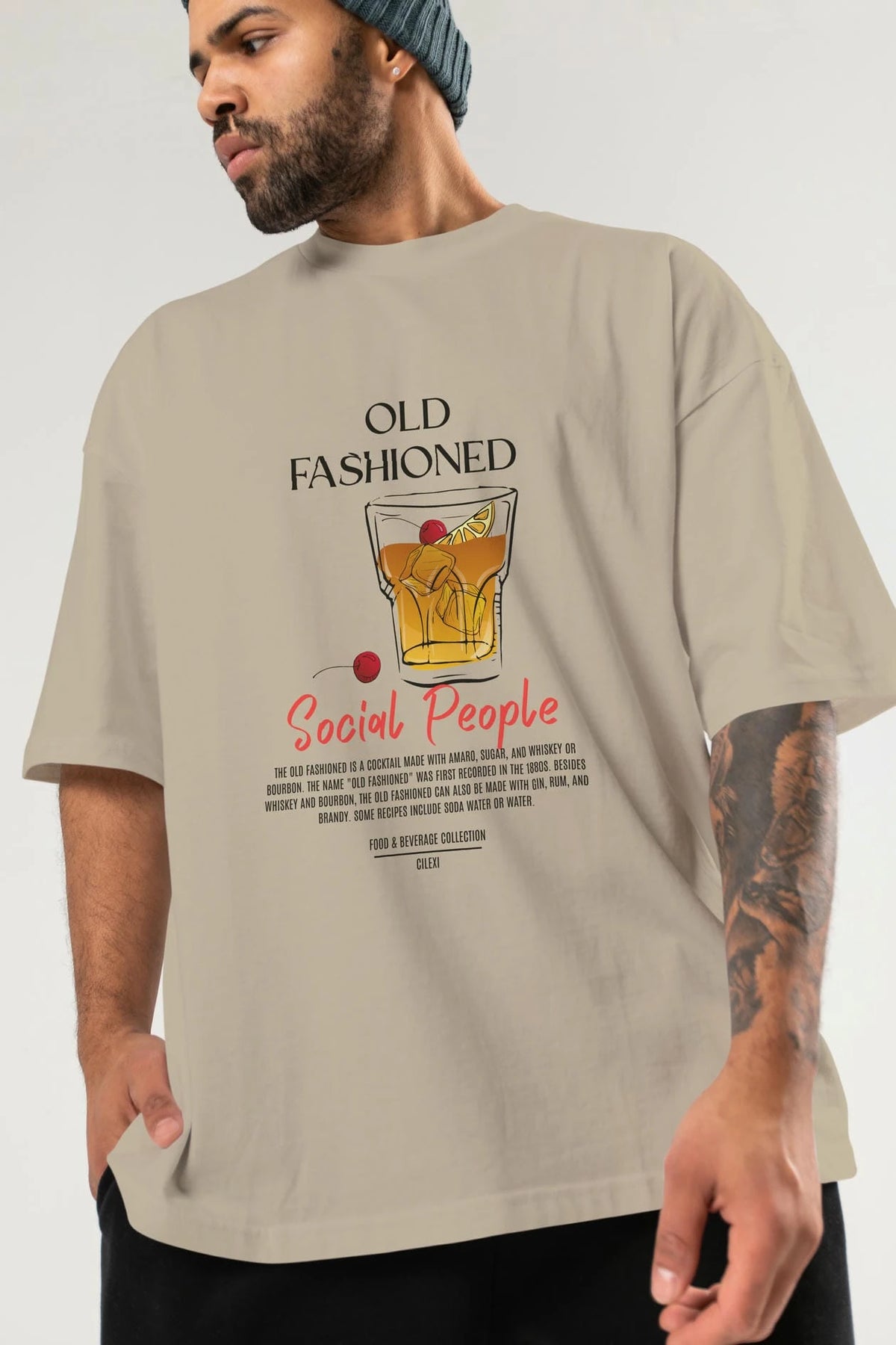 Old Fashıoned Kokteyl Serisi ön Baskılı Oversize t-shirt Erkek Kadın %100 Pamuk Bisiklet Yaka tişort