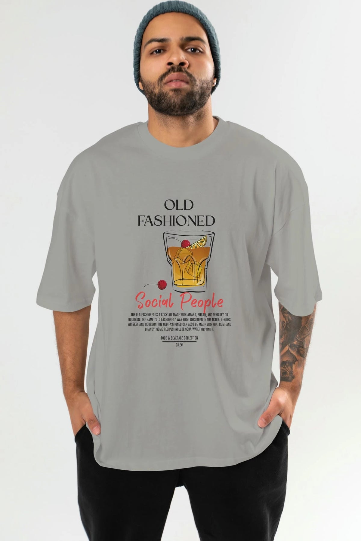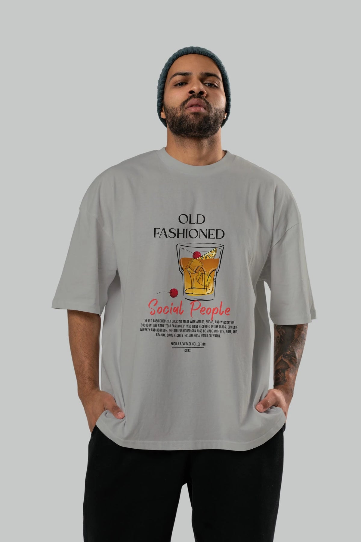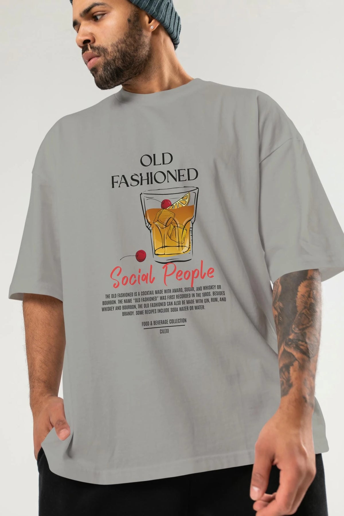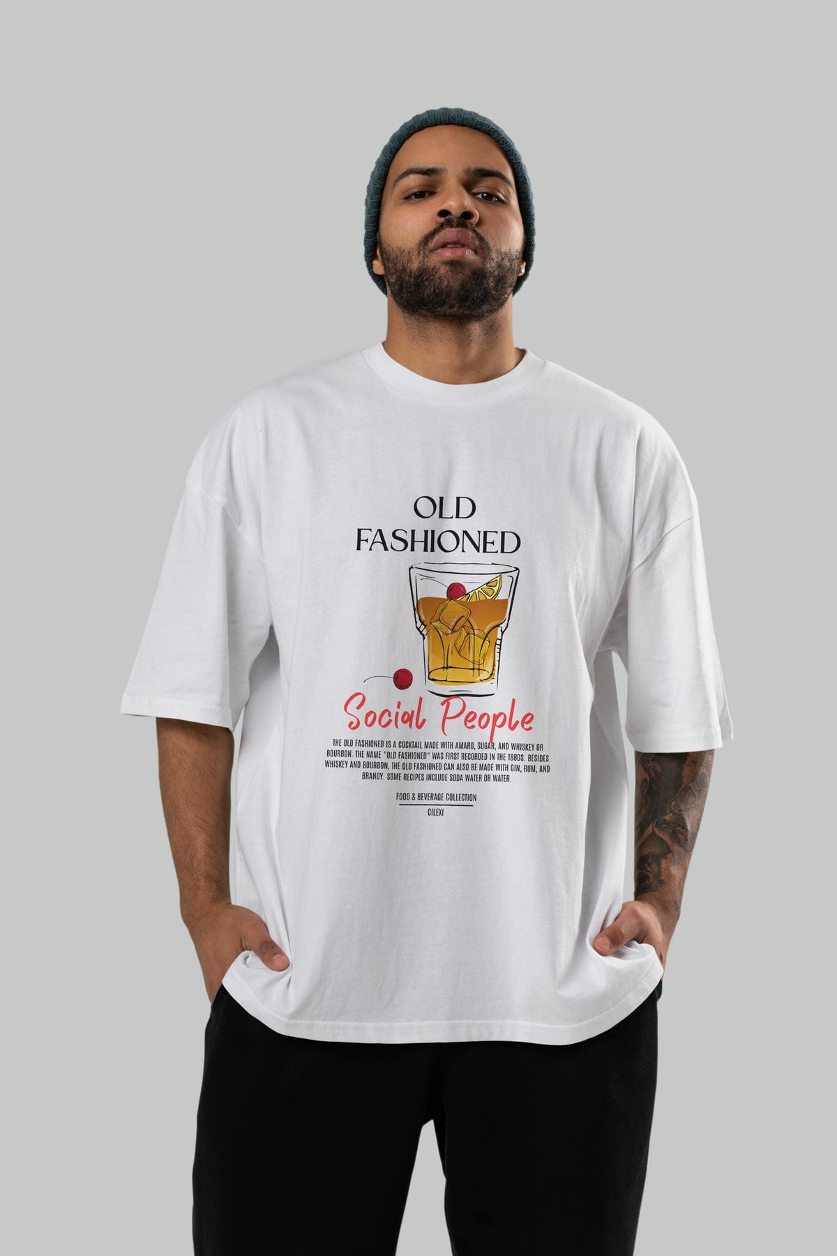 Old Fashıoned Kokteyl Serisi ön Baskılı Oversize t-shirt Erkek Kadın %100 Pamuk Bisiklet Yaka tişort
