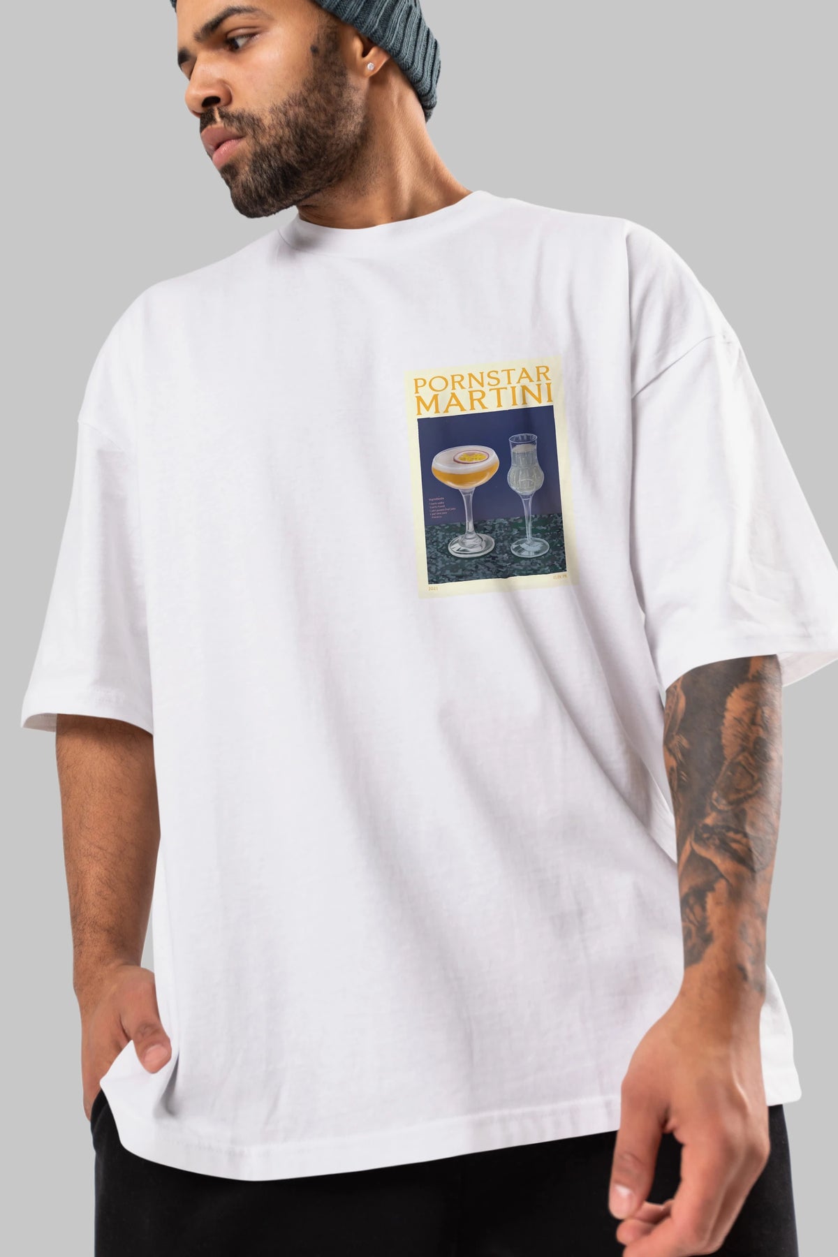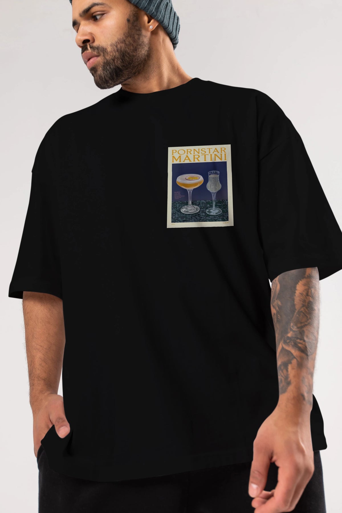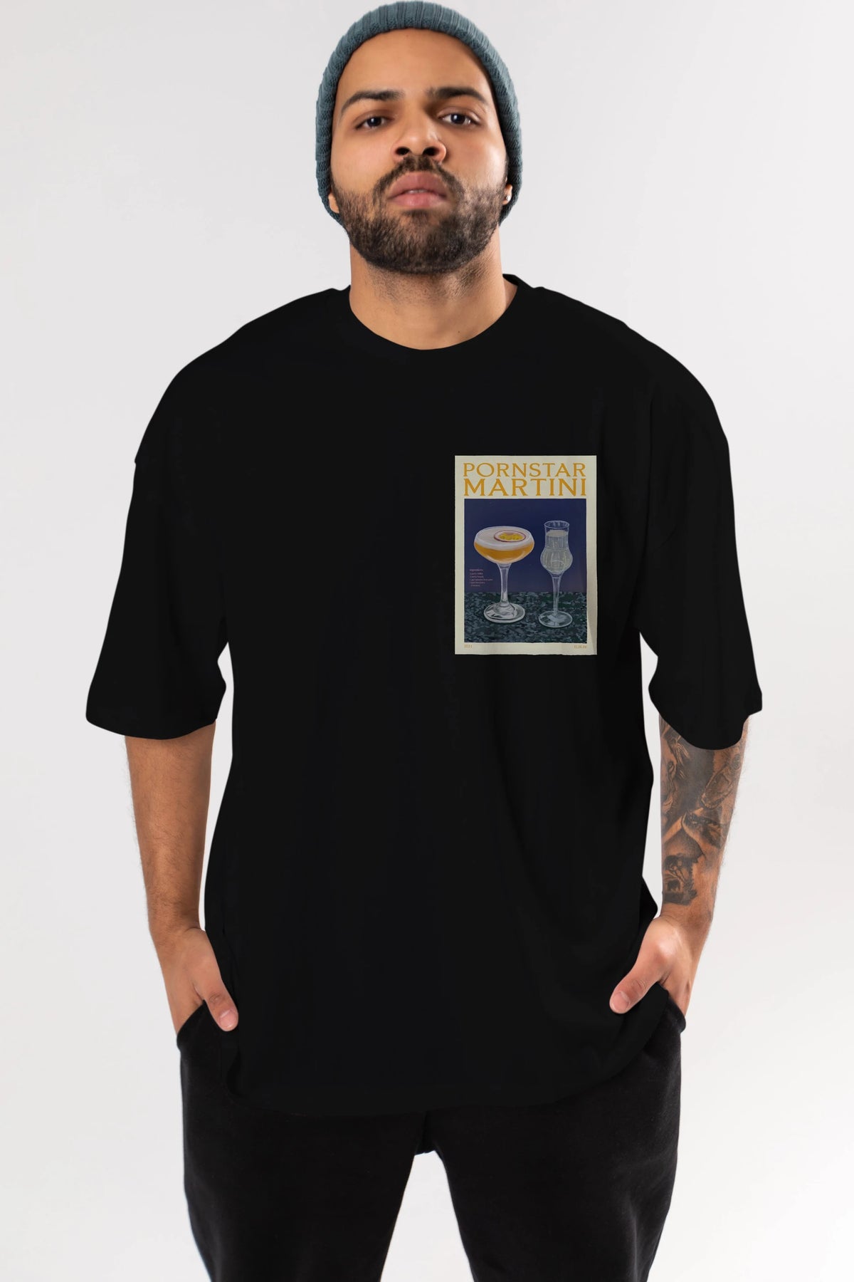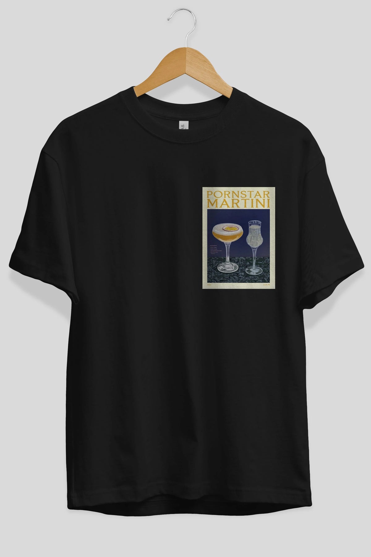 P.rnstar Martini Ön Sol Baskılı Oversize t-shirt Erkek Kadın Unisex %100 Pamuk Bisiklet Yaka tişort
