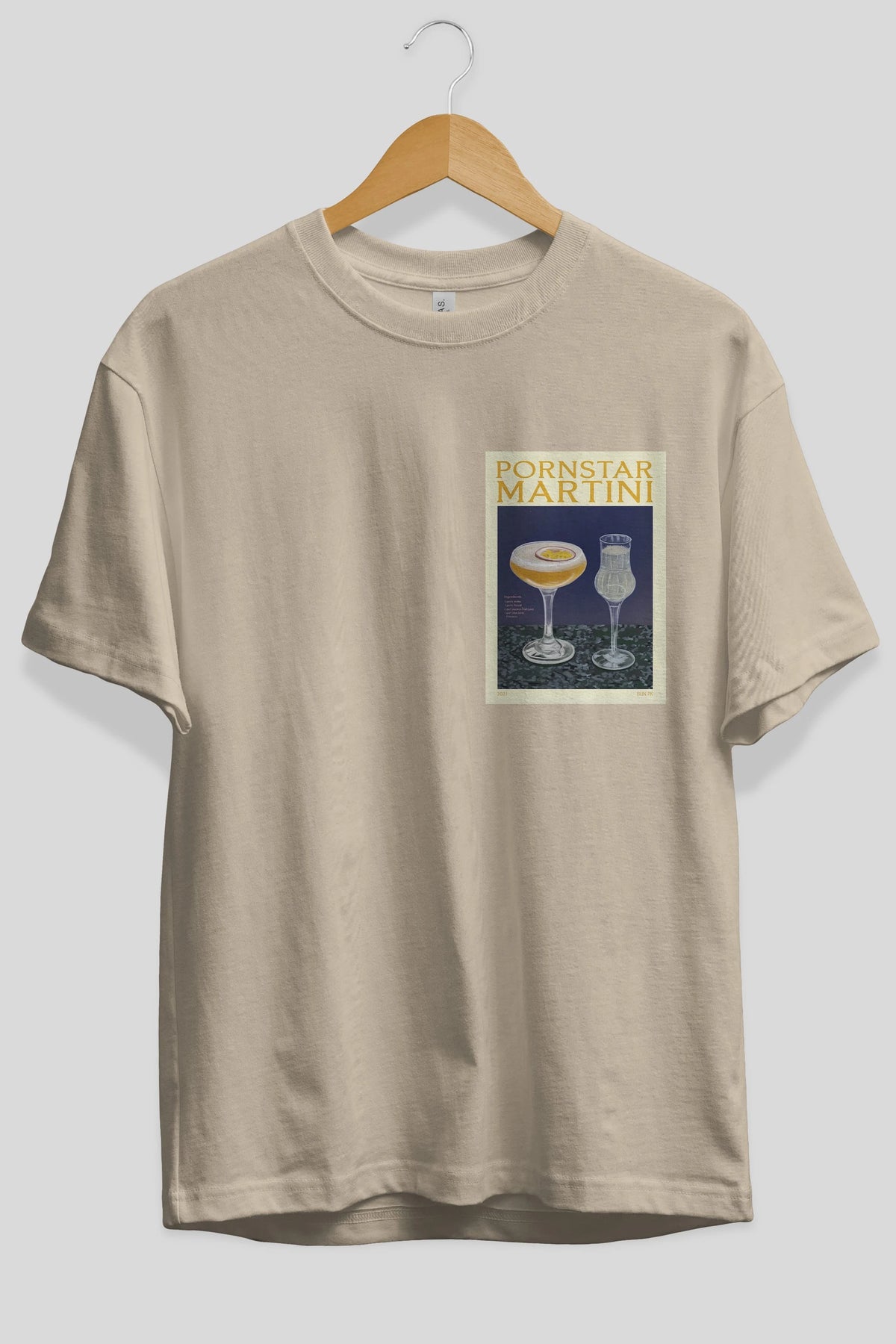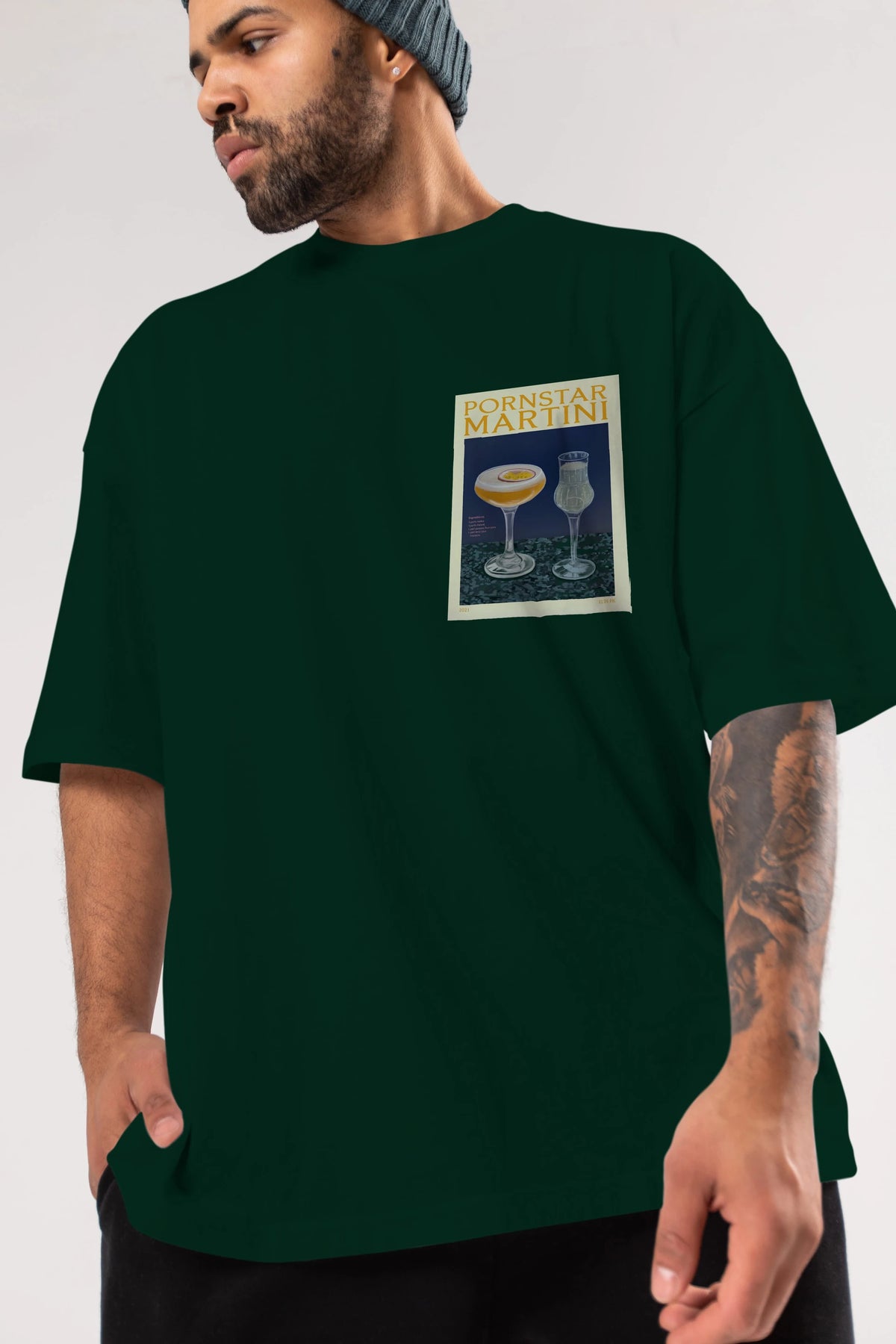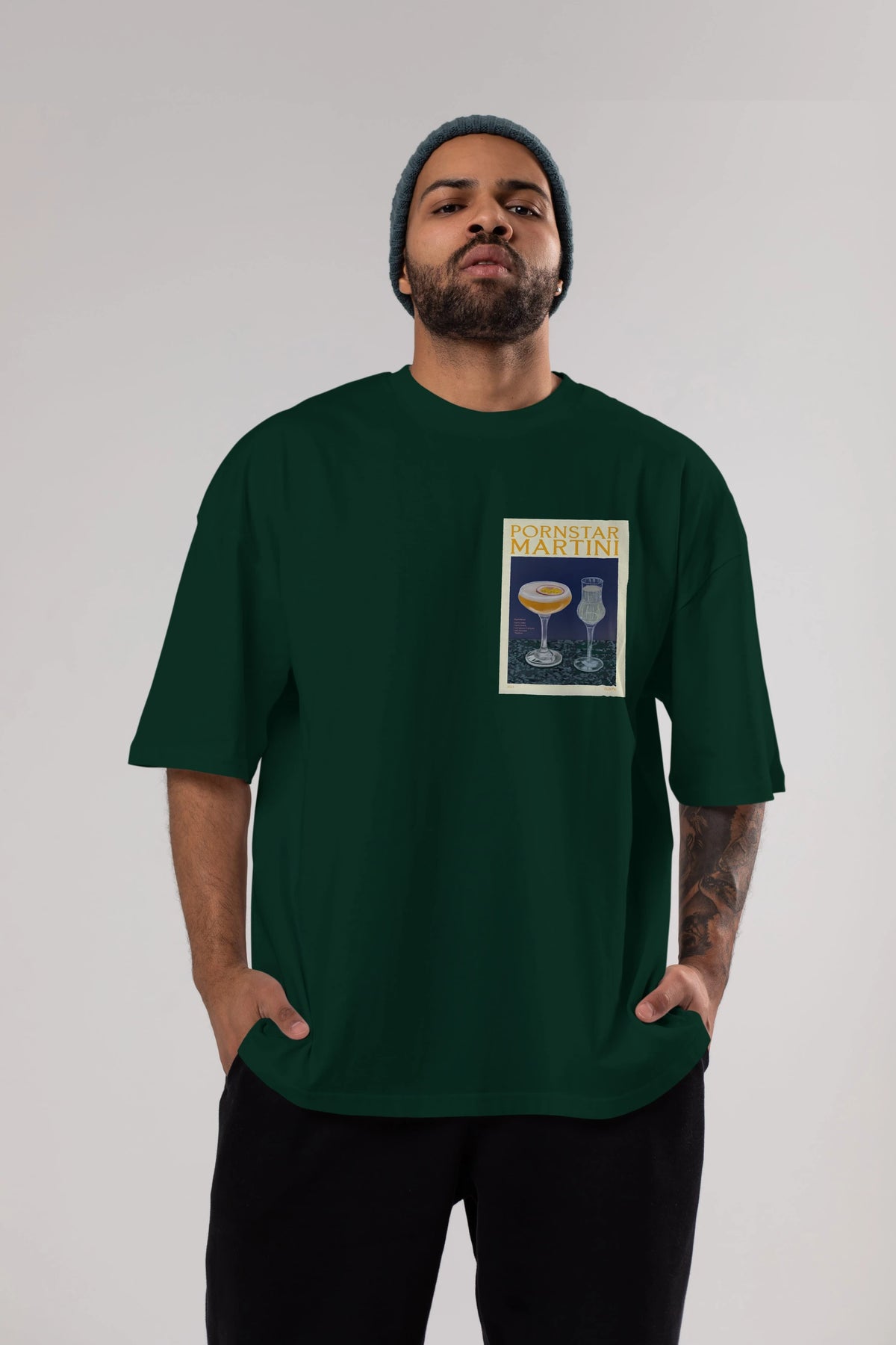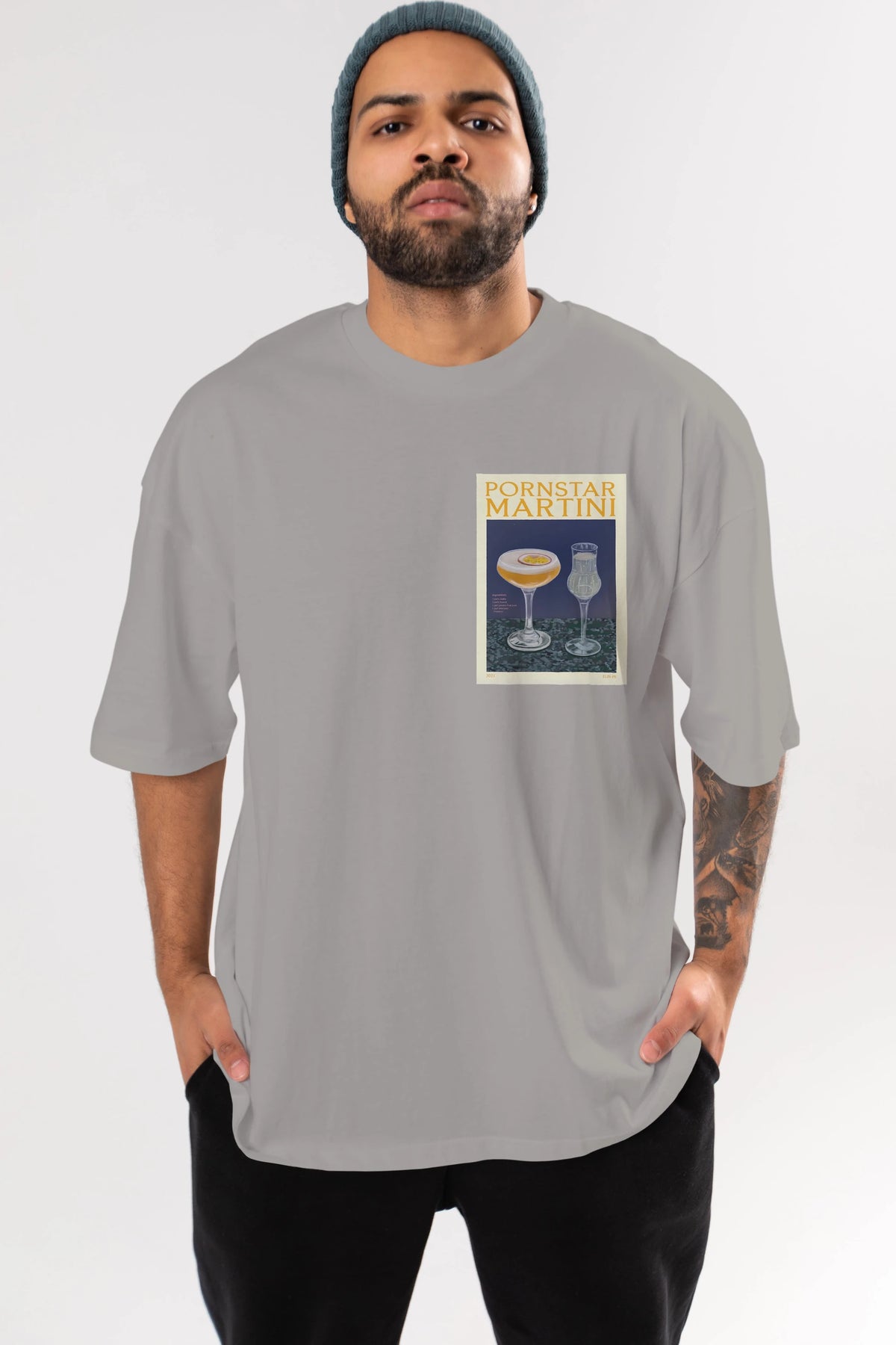 P.rnstar Martini Ön Sol Baskılı Oversize t-shirt Erkek Kadın Unisex %100 Pamuk Bisiklet Yaka tişort