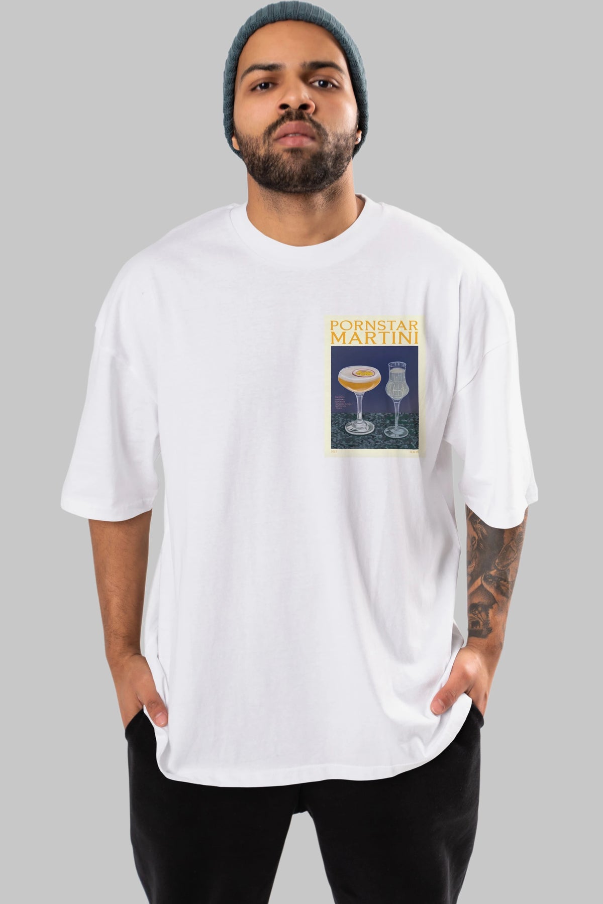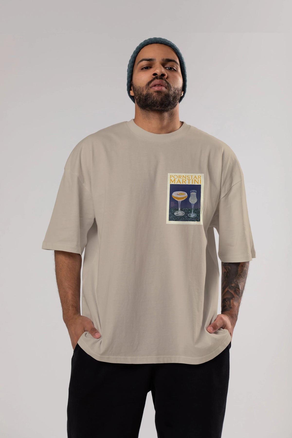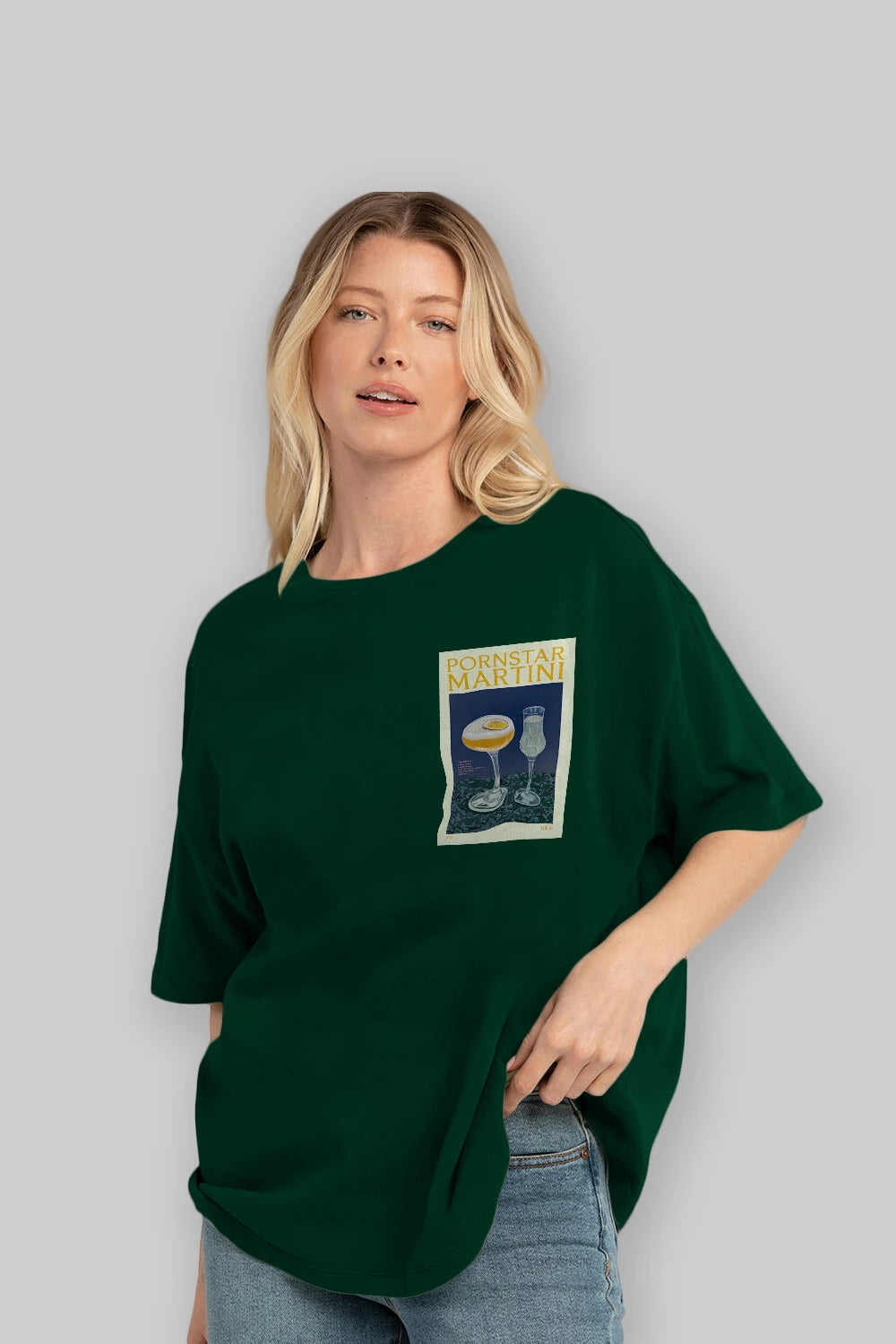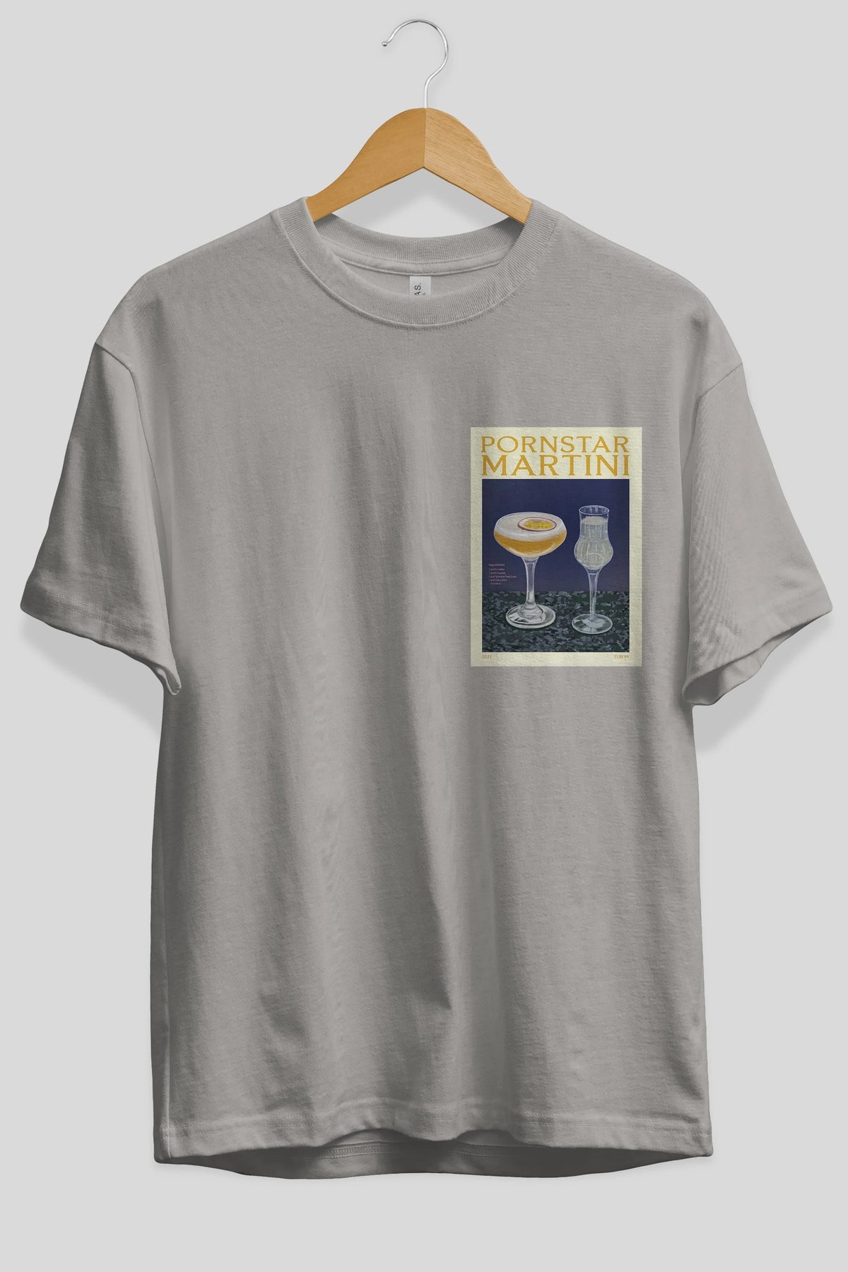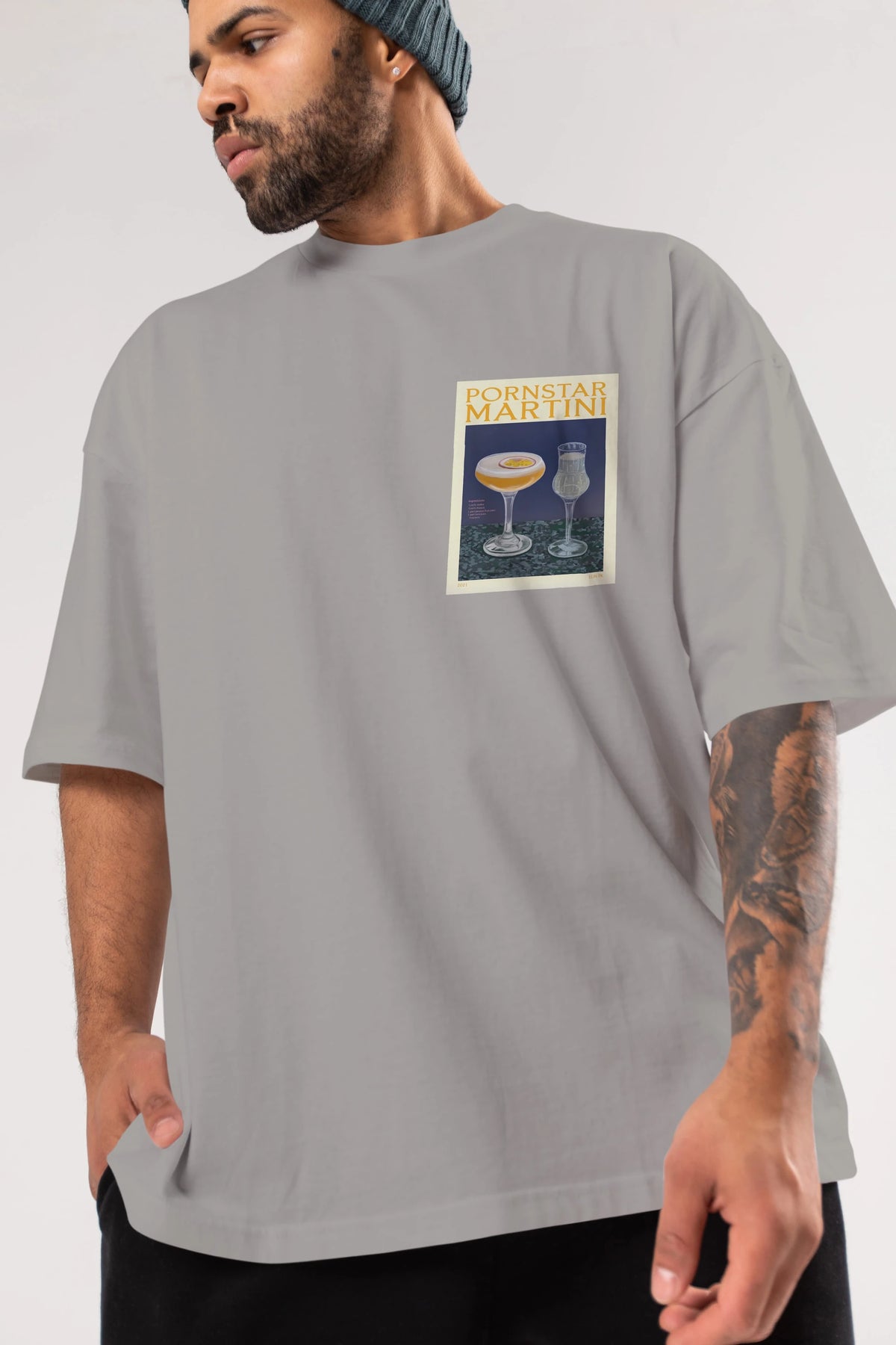 P.rnstar Martini Ön Sol Baskılı Oversize t-shirt Erkek Kadın Unisex %100 Pamuk Bisiklet Yaka tişort