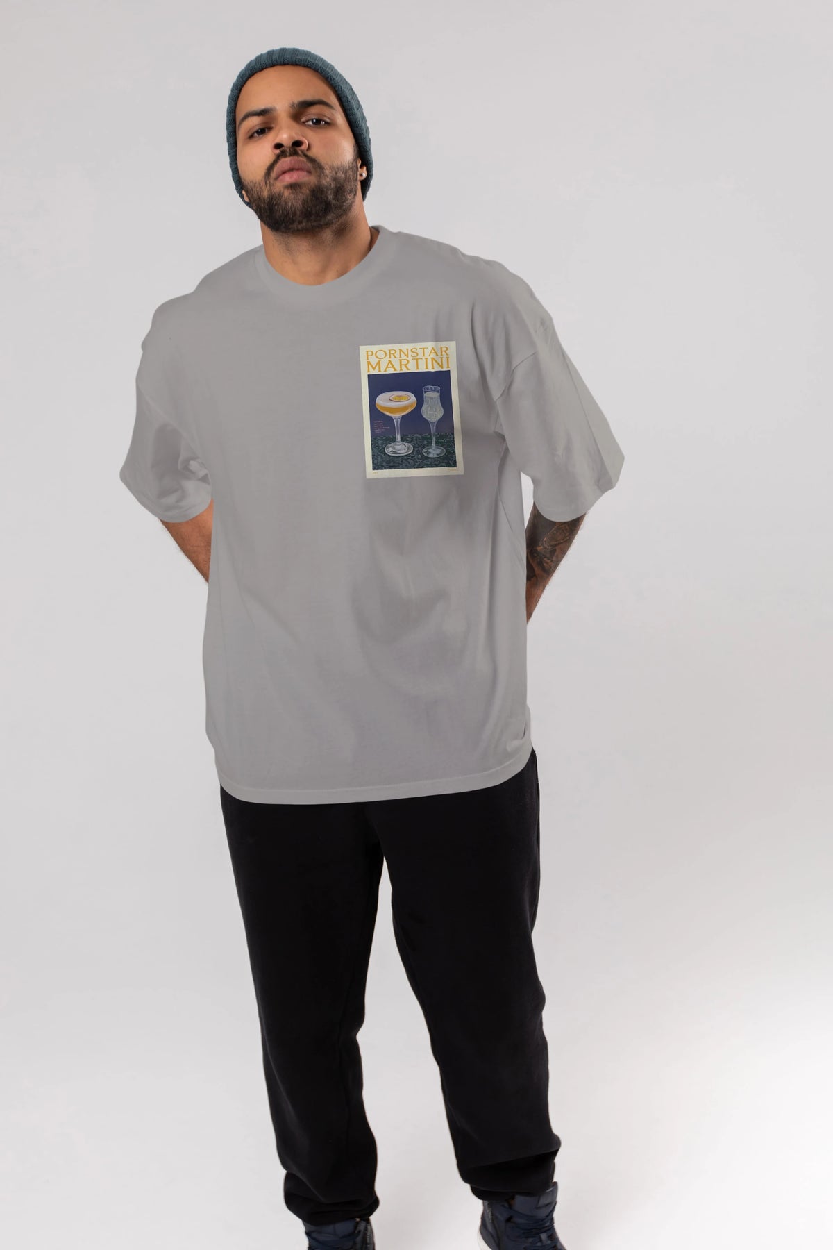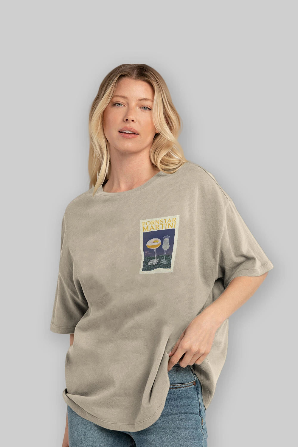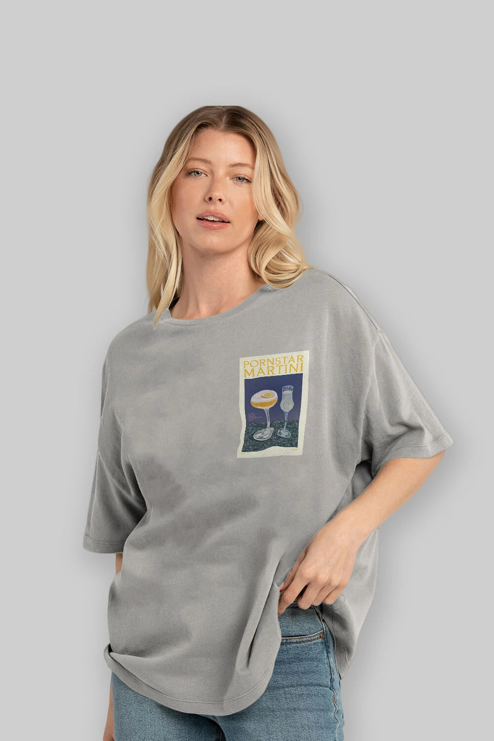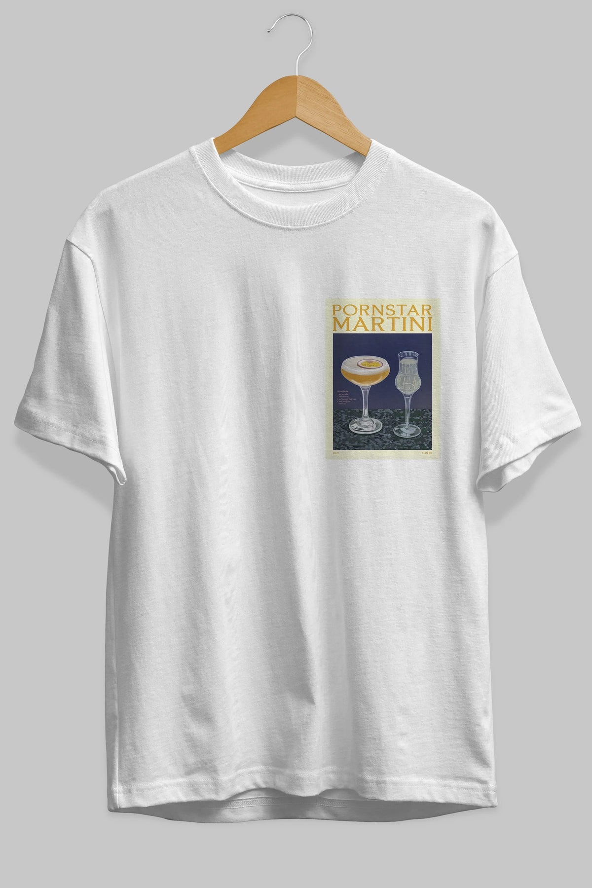 P.rnstar Martini Ön Sol Baskılı Oversize t-shirt Erkek Kadın Unisex %100 Pamuk Bisiklet Yaka tişort