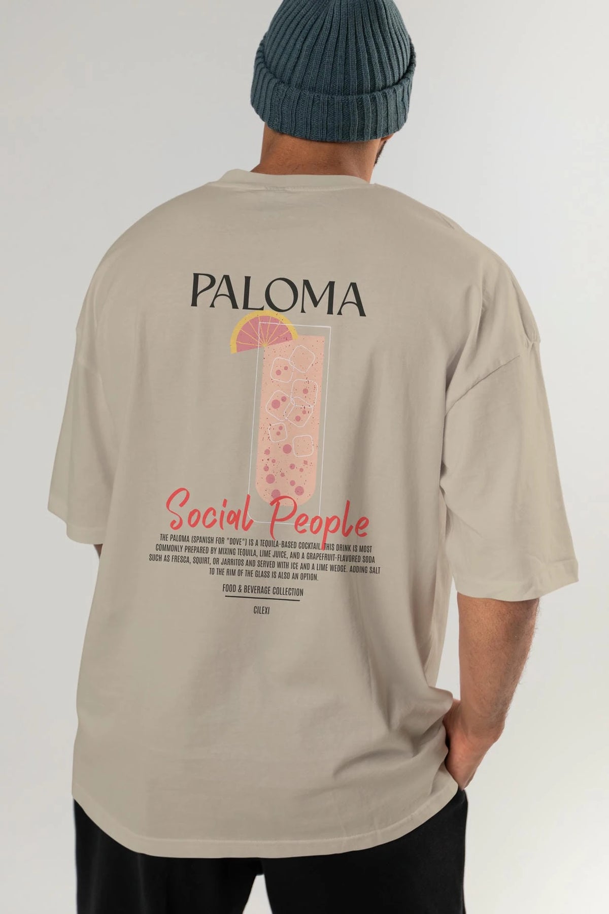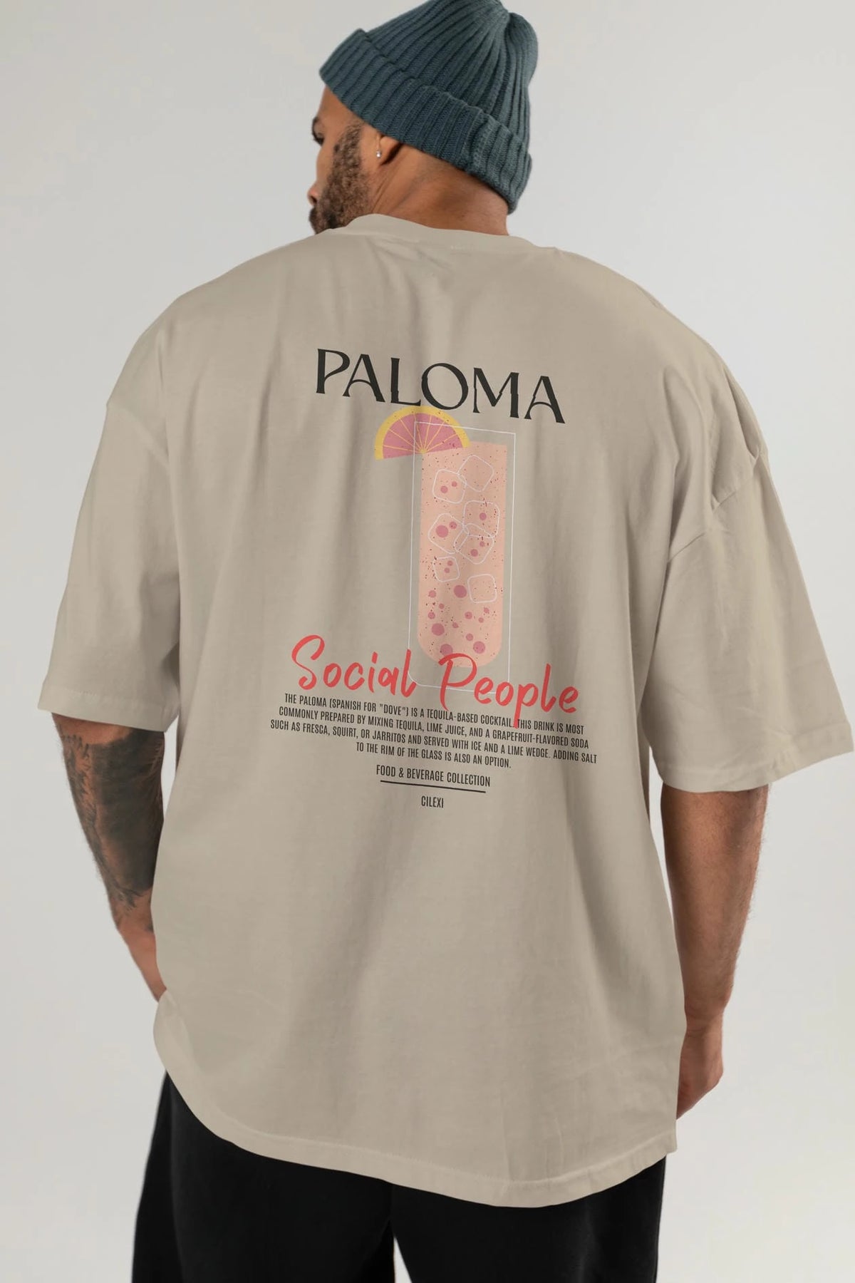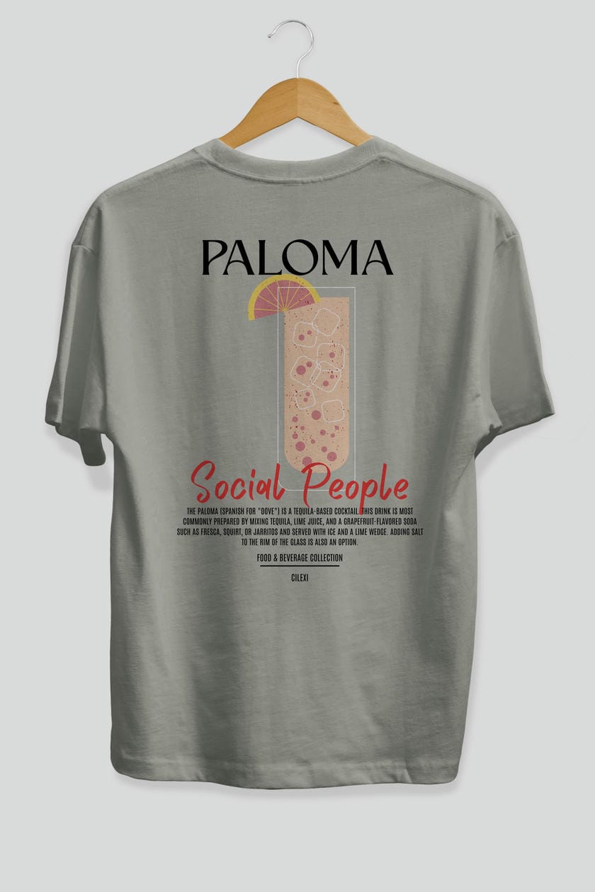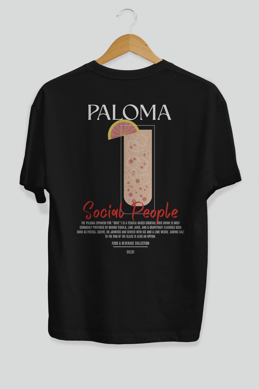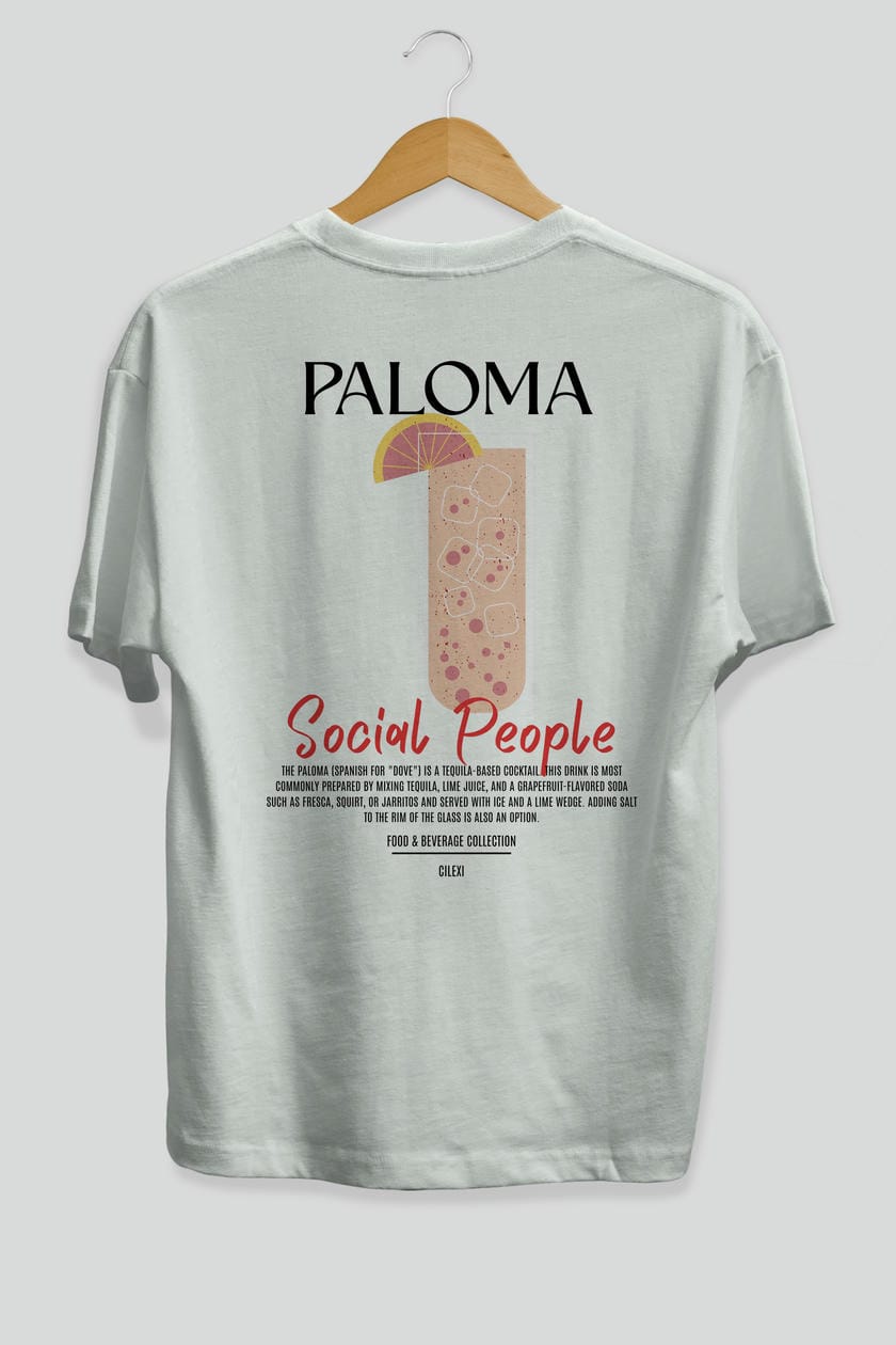 Paloma Kokteyl Serisi Baskılı Oversize t-shirt Erkek Kadın Unisex %100 Pamuk Bisiklet Yaka tişort