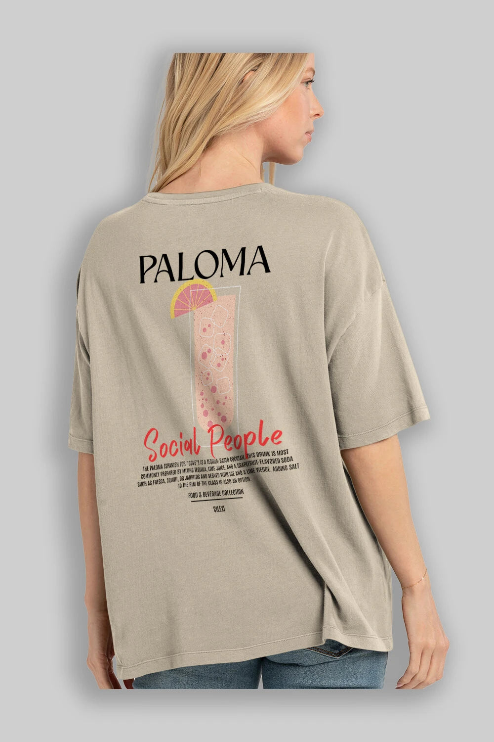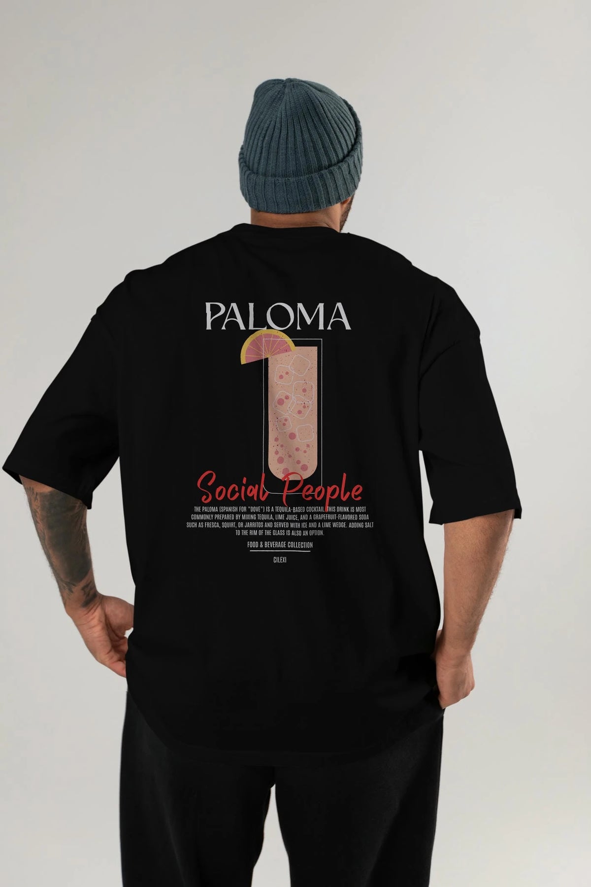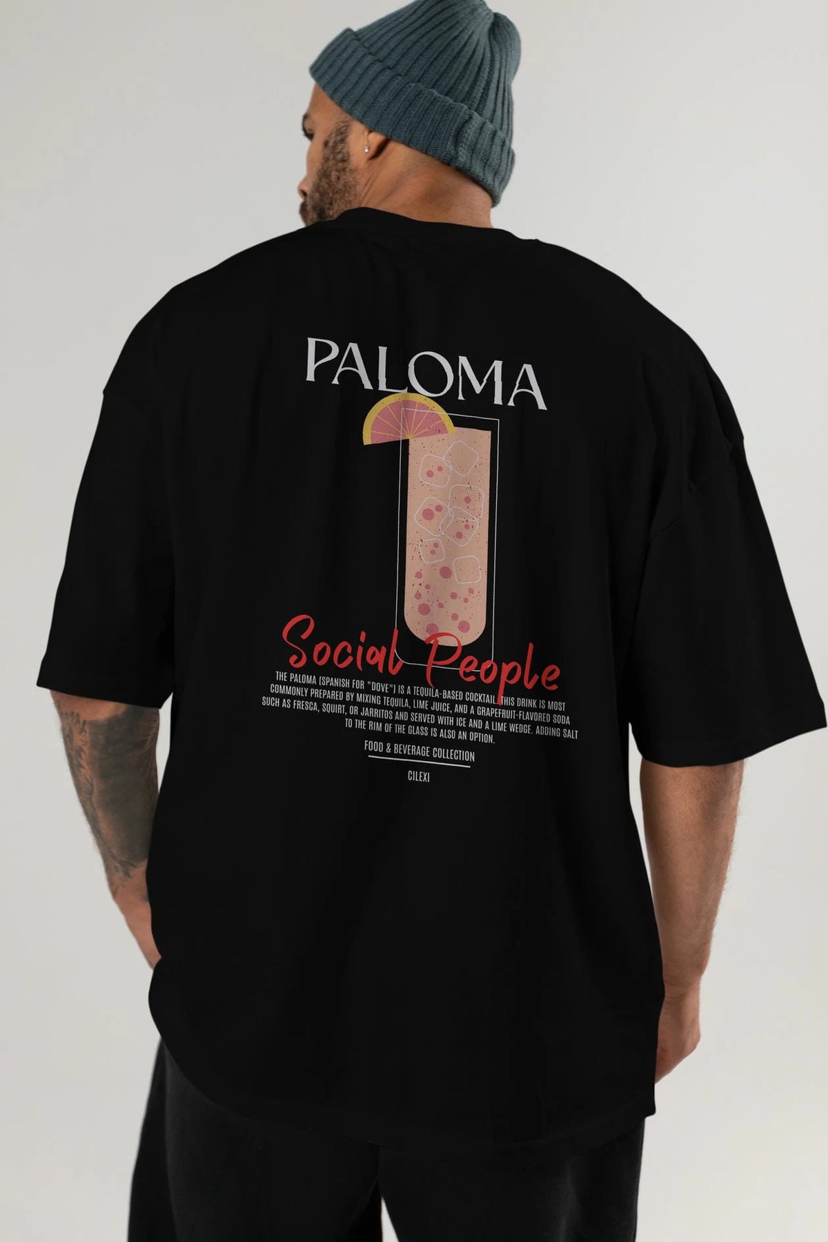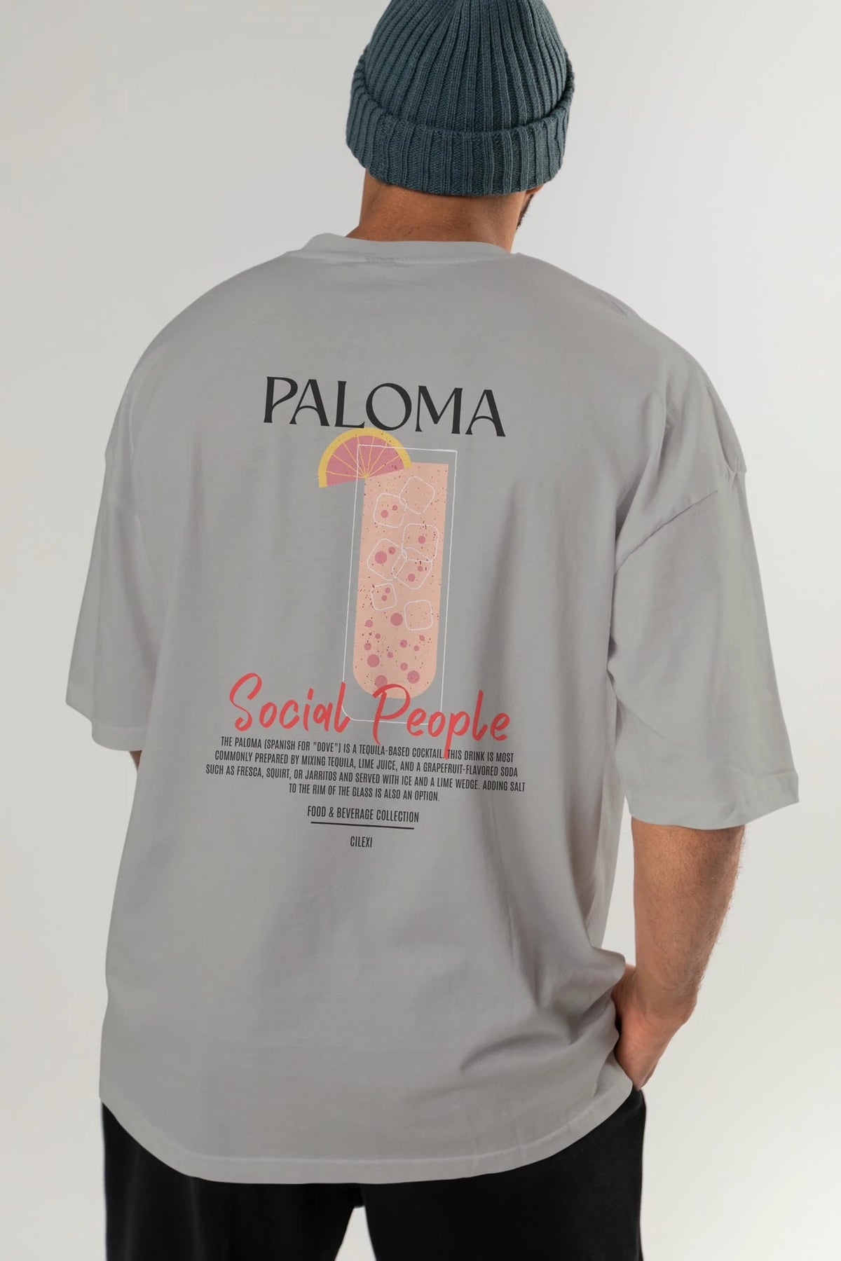 Paloma Kokteyl Serisi Baskılı Oversize t-shirt Erkek Kadın Unisex %100 Pamuk Bisiklet Yaka tişort