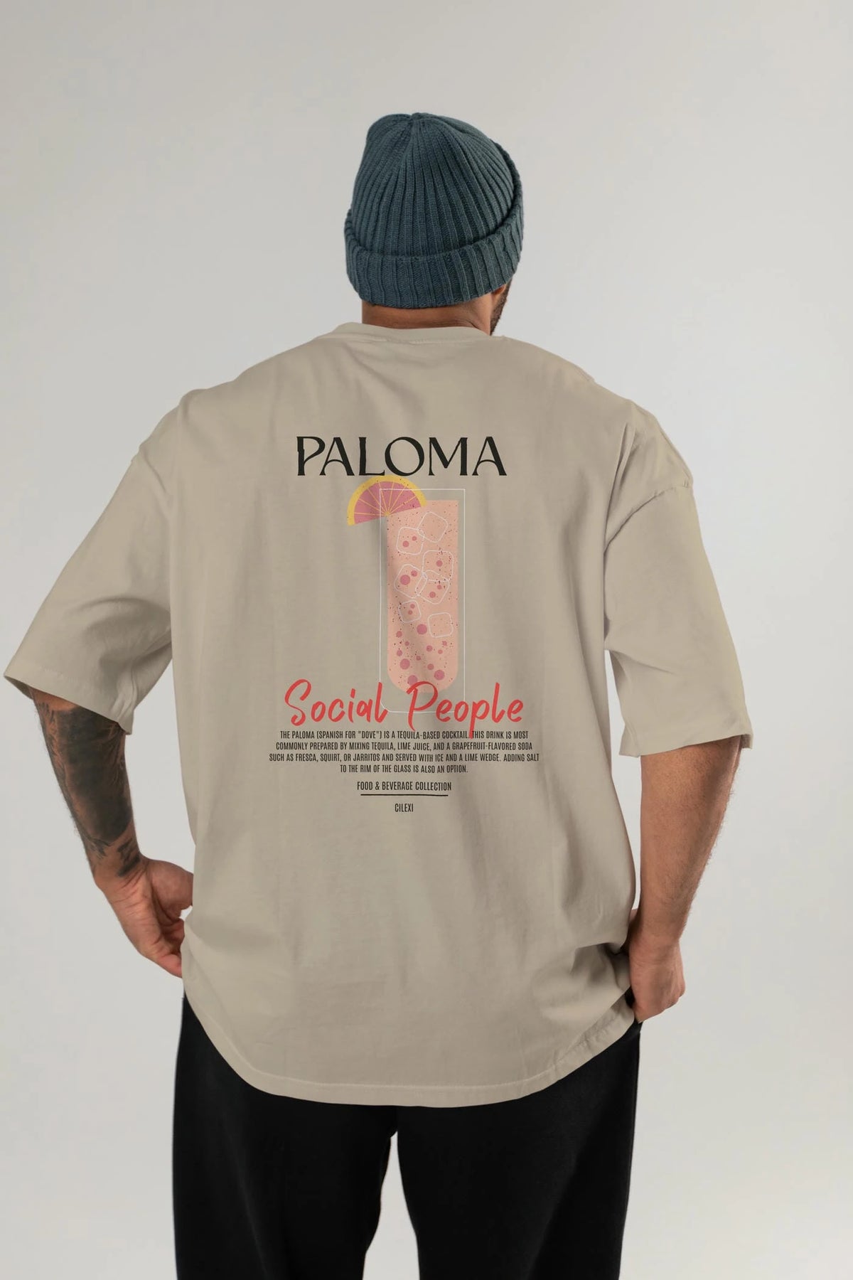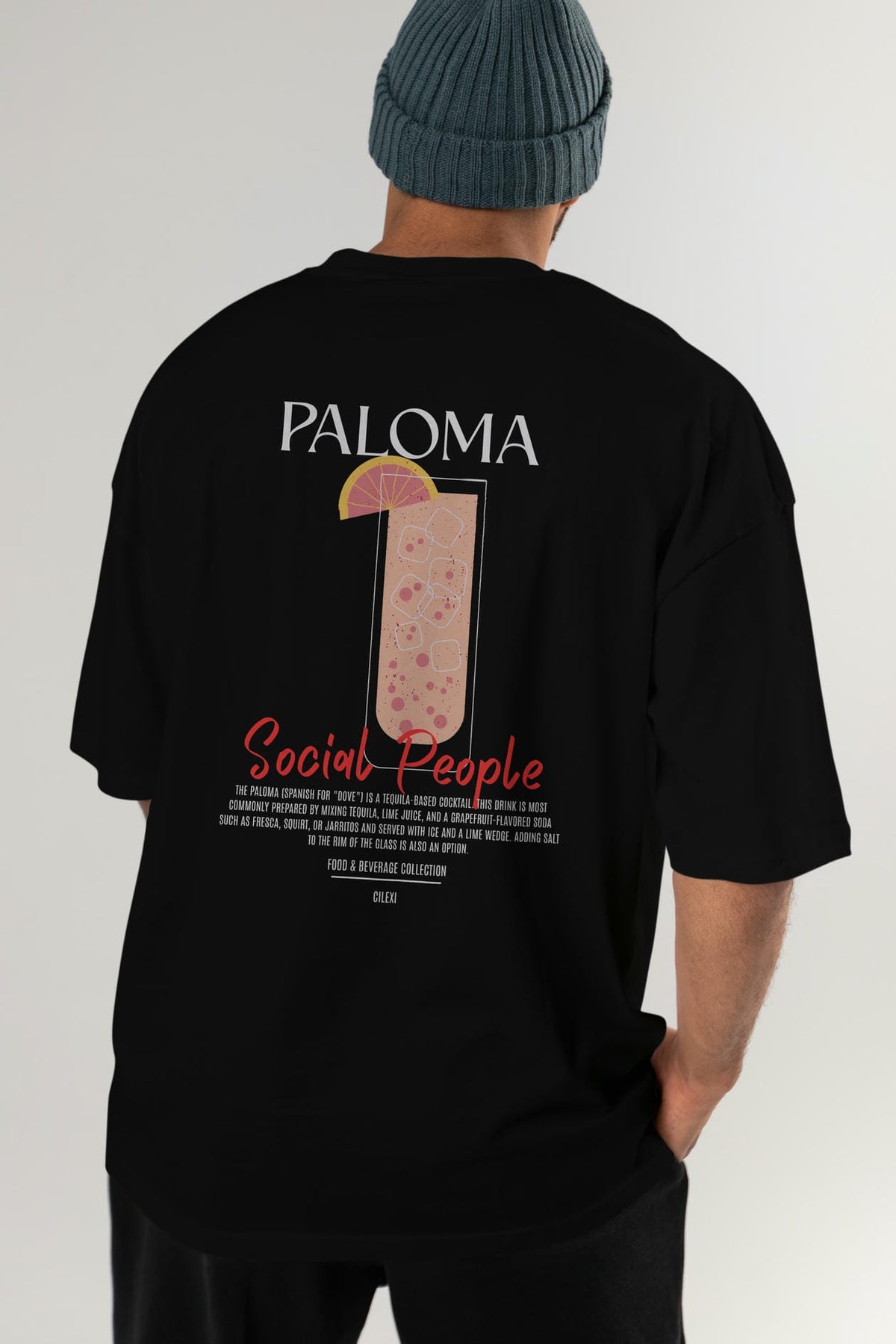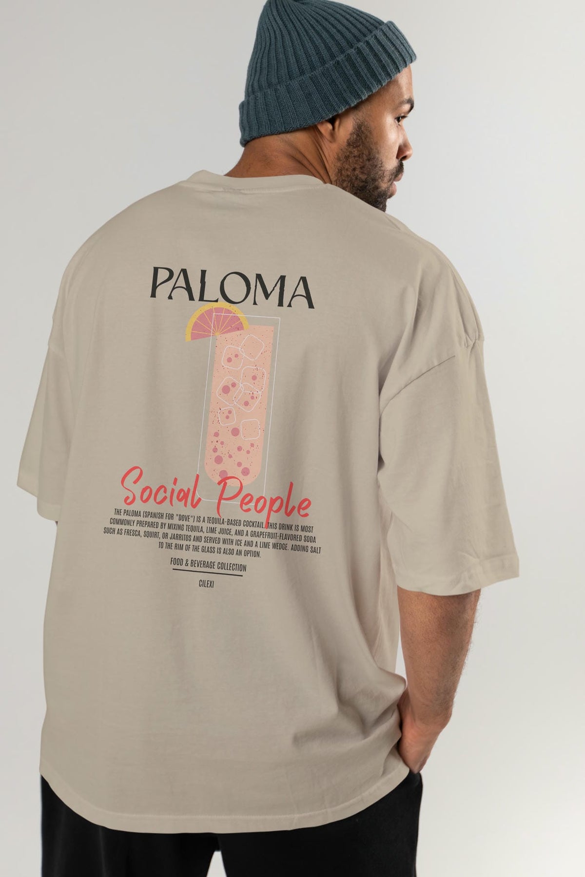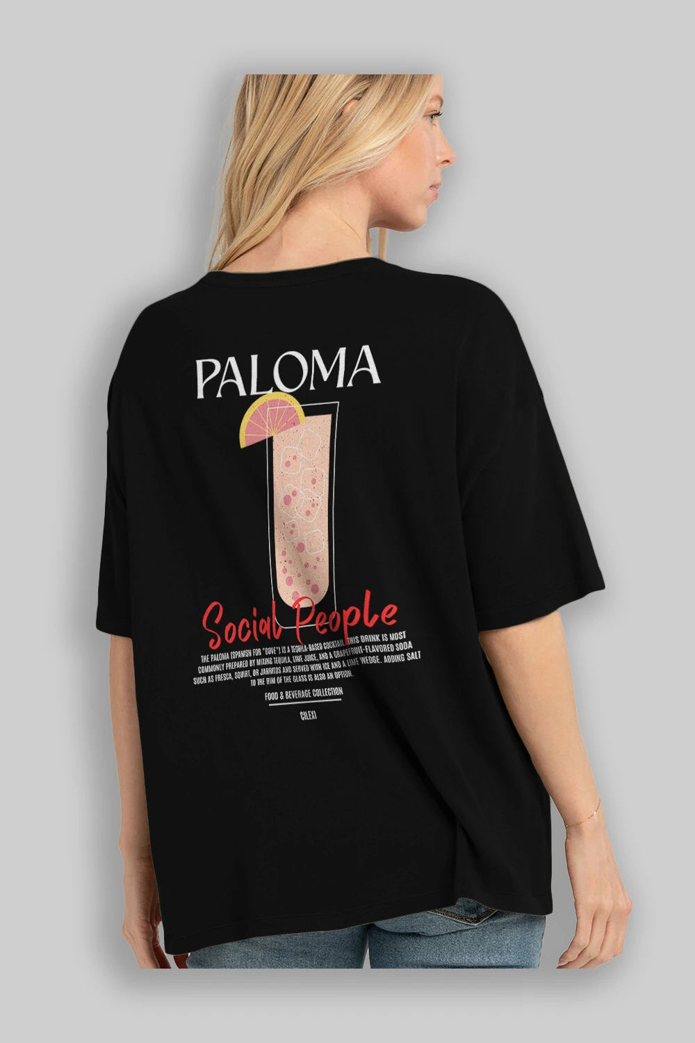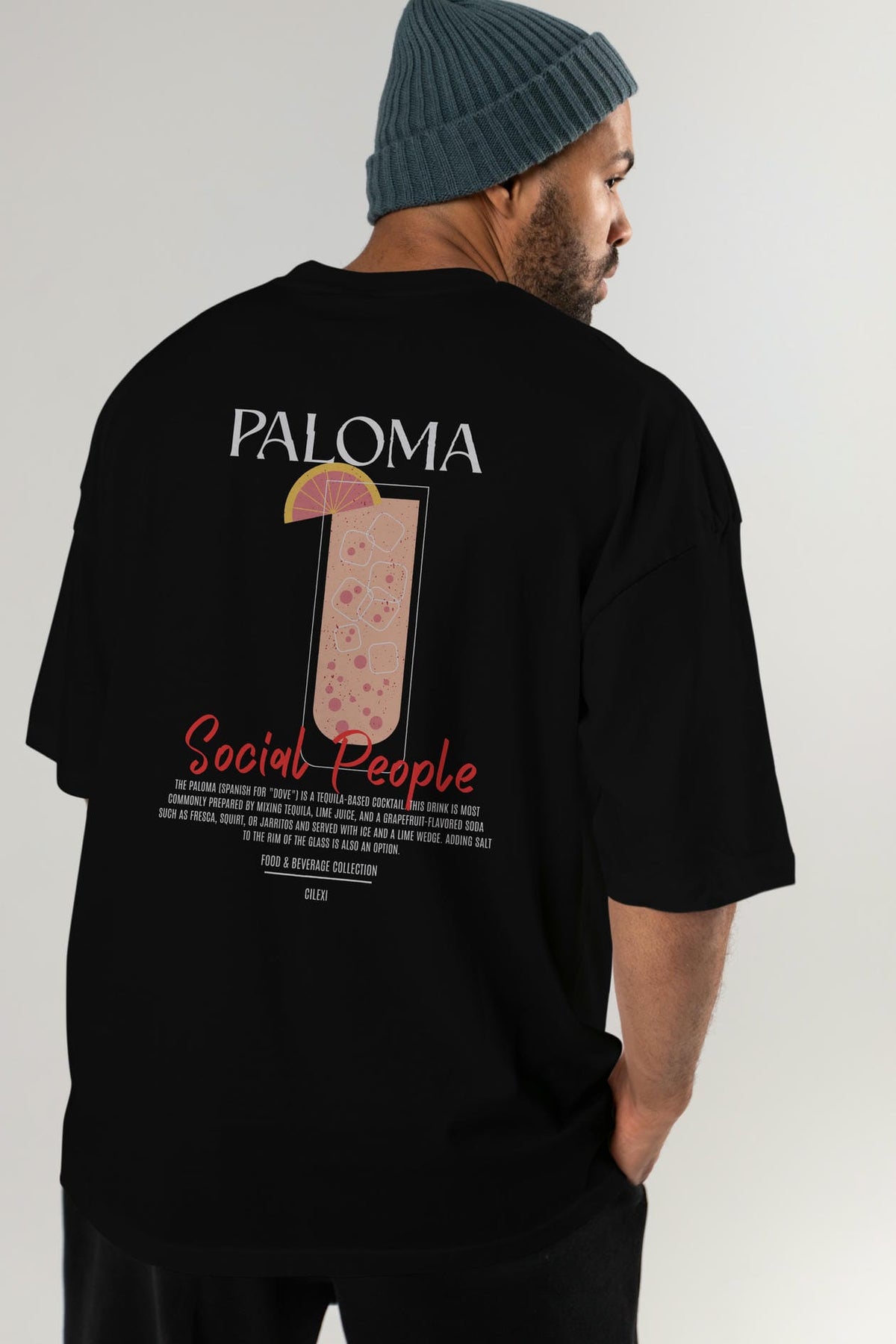 Paloma Kokteyl Serisi Baskılı Oversize t-shirt Erkek Kadın Unisex %100 Pamuk Bisiklet Yaka tişort