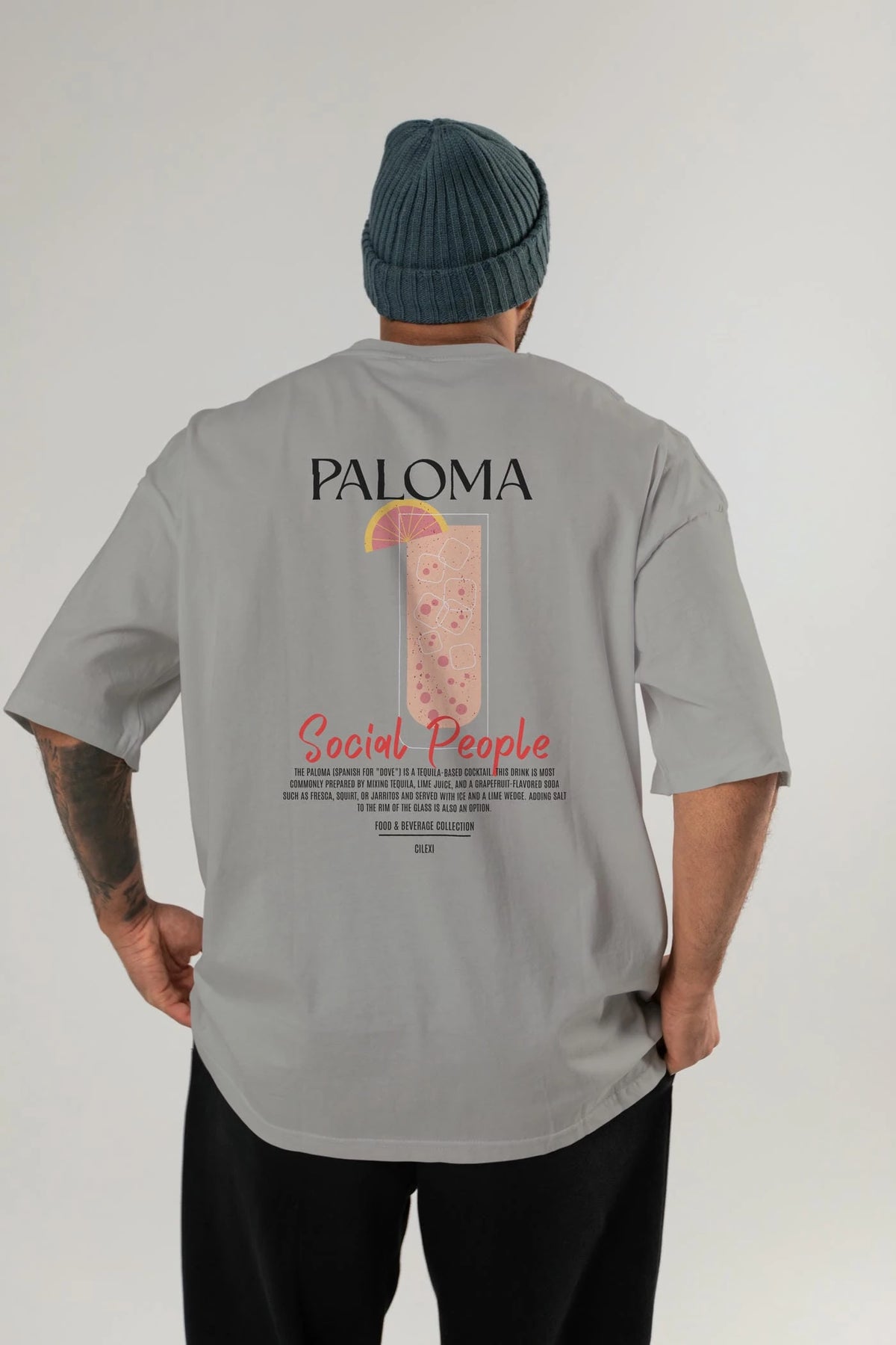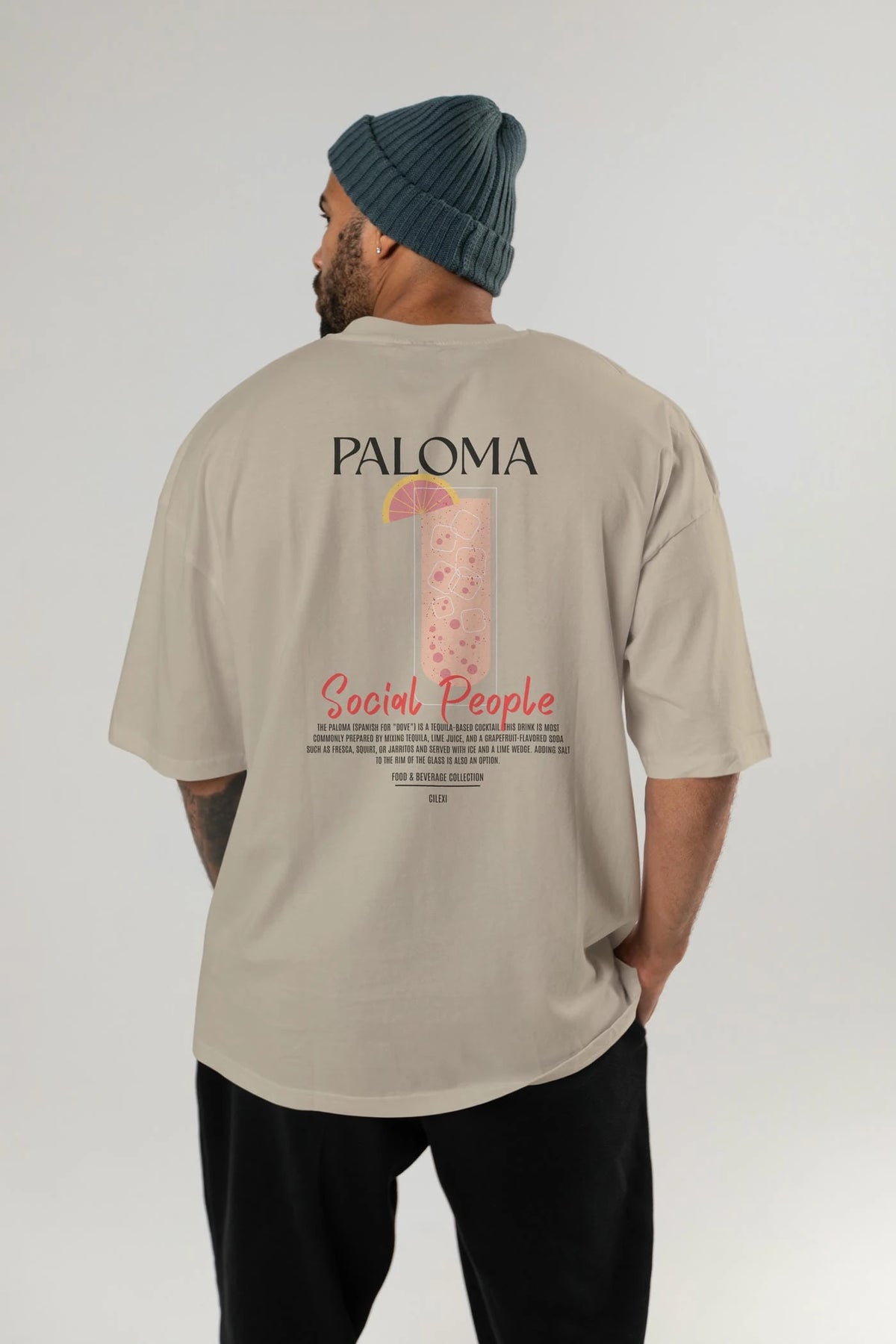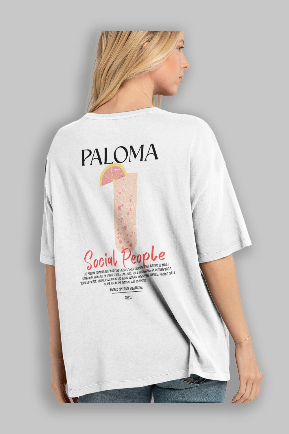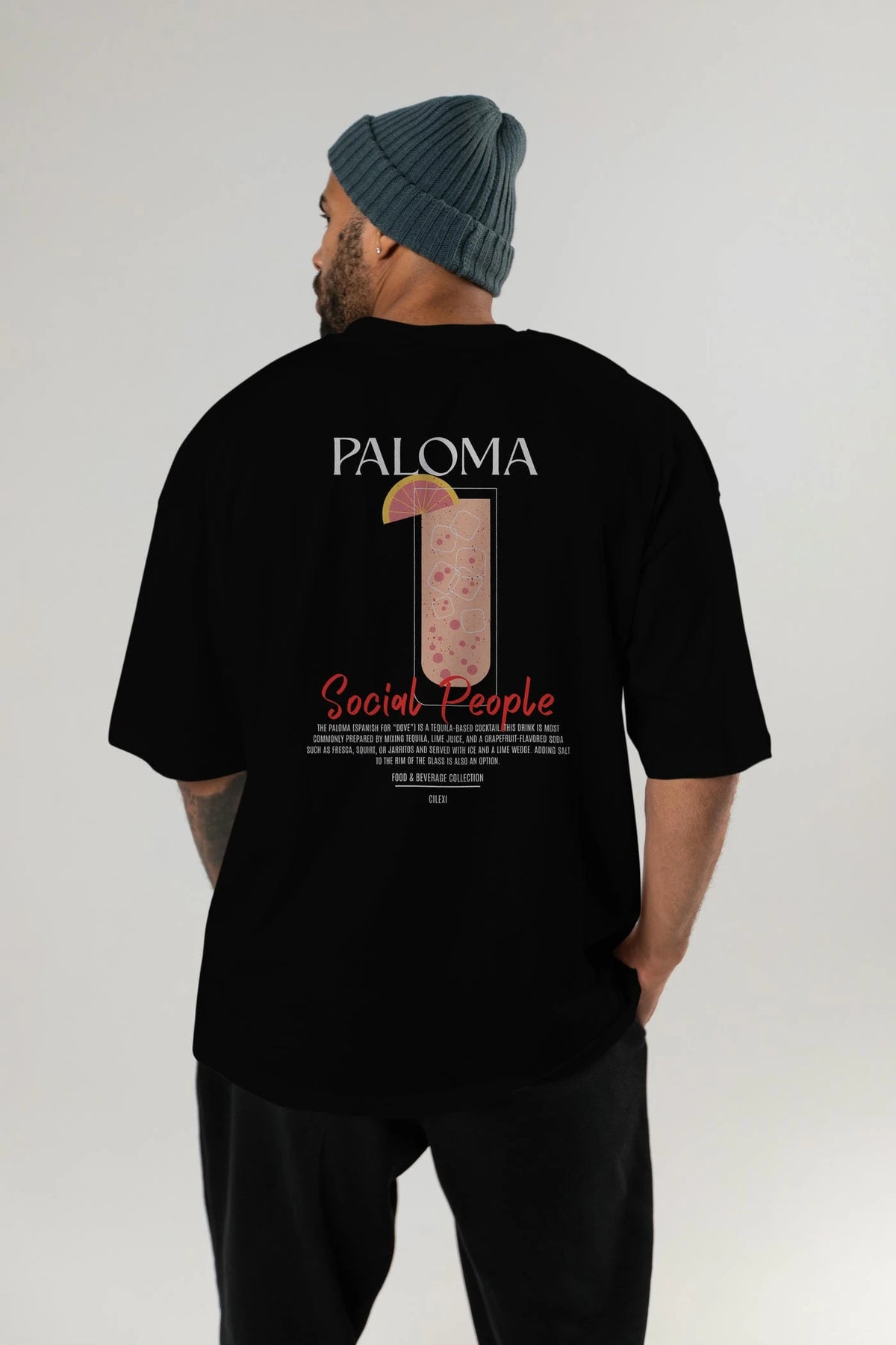Paloma Kokteyl Serisi Baskılı Oversize t-shirt Erkek Kadın Unisex %100 Pamuk Bisiklet Yaka tişort