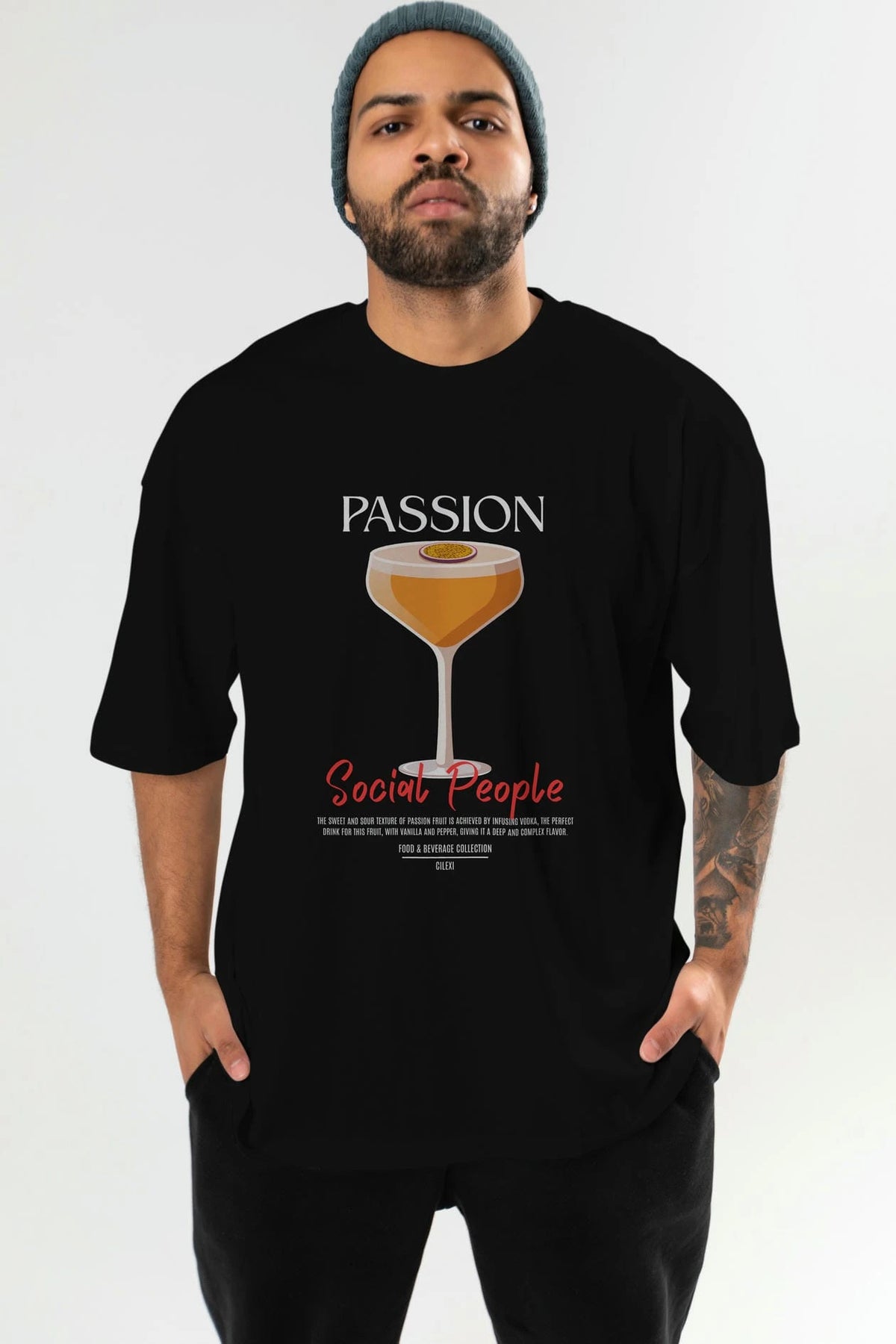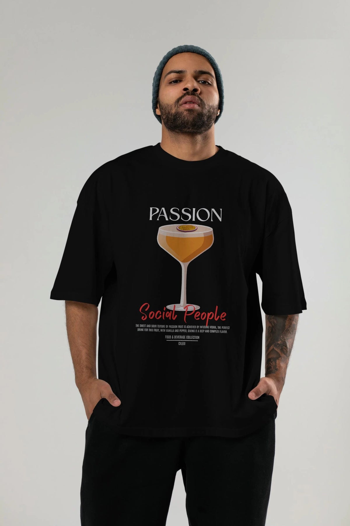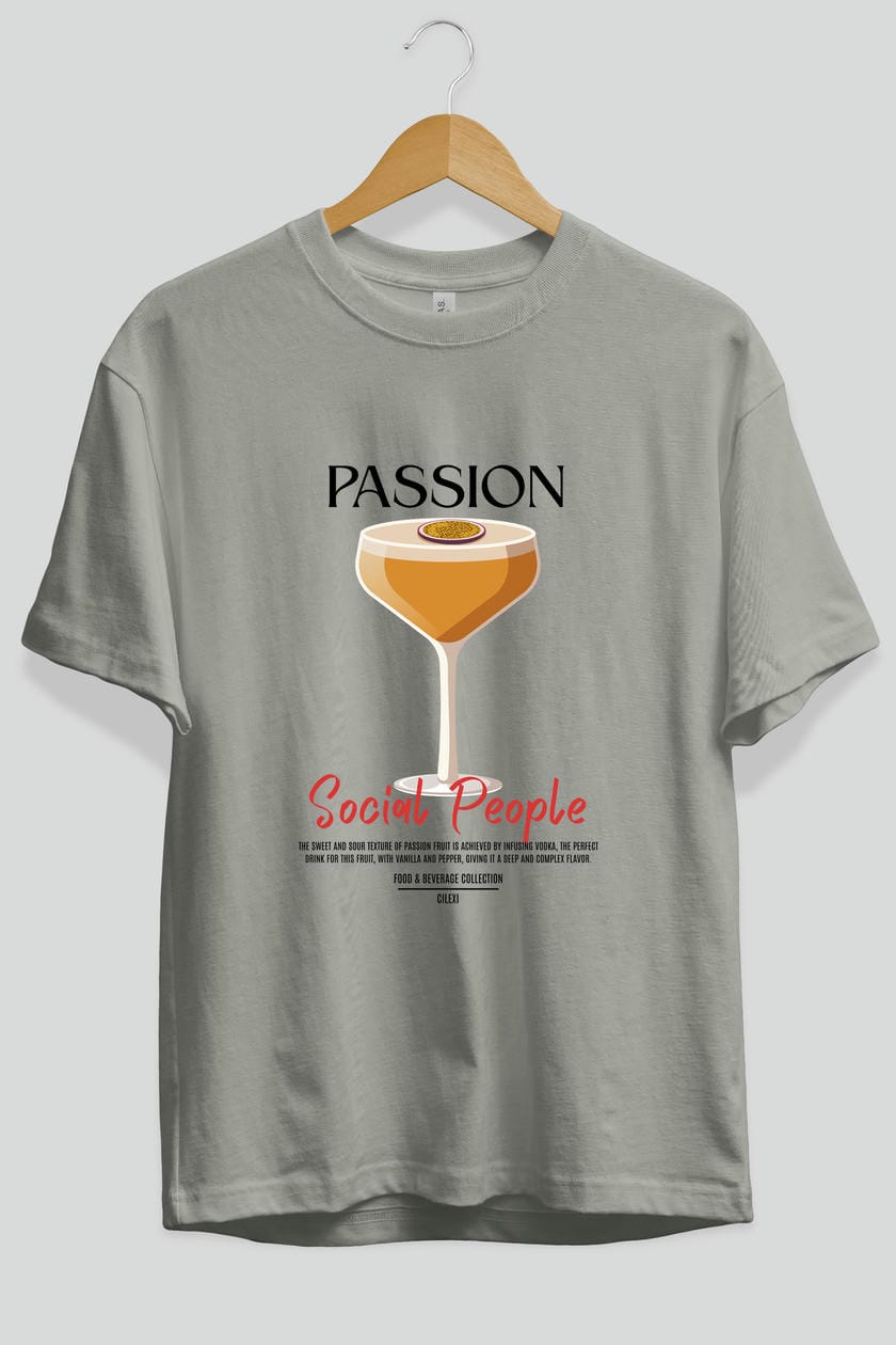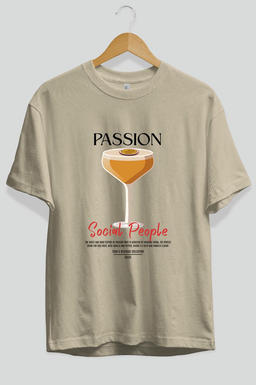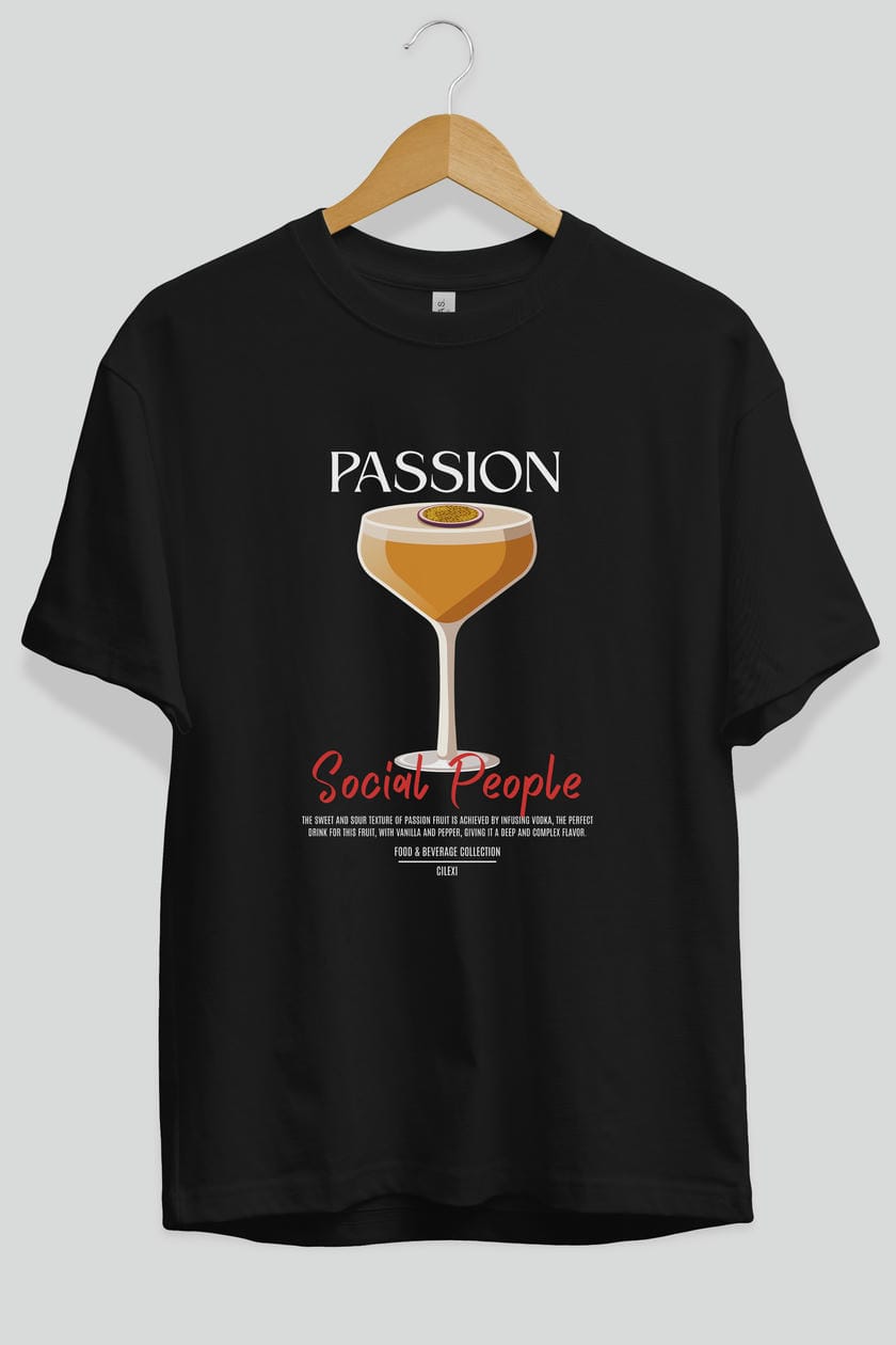 Passion Kokteyl Serisi ön Baskılı Oversize t-shirt Erkek Kadın %100 Pamuk Bisiklet Yaka tişort