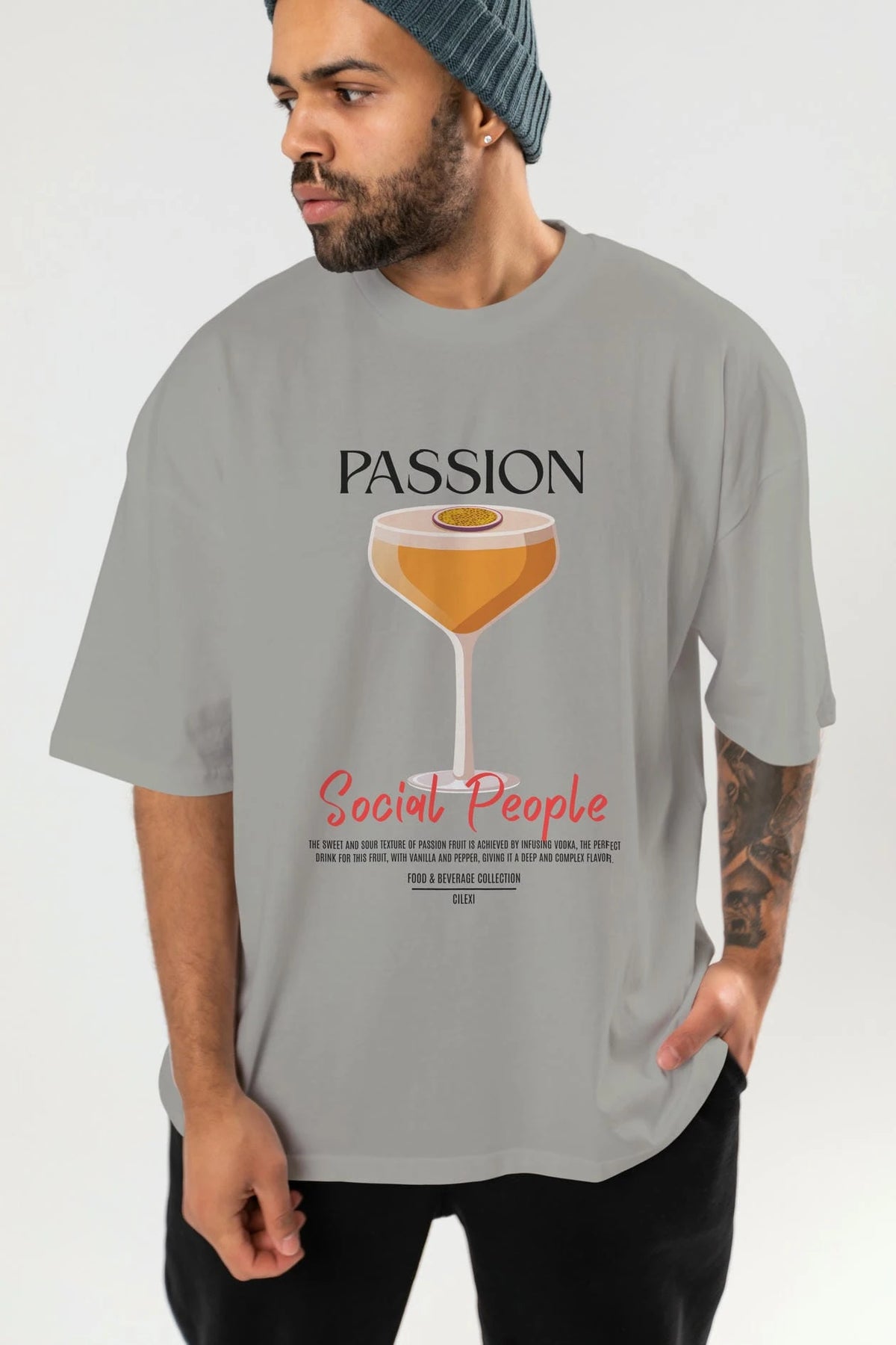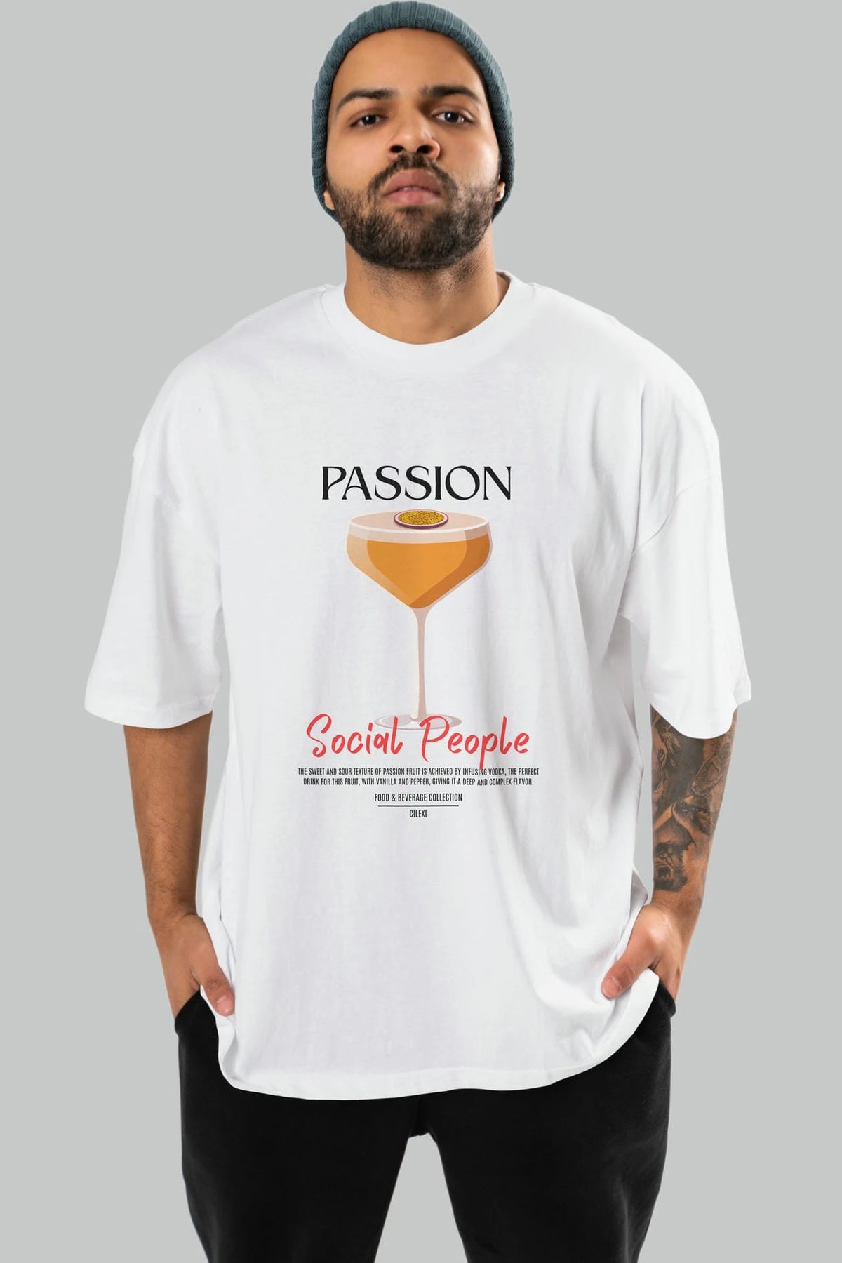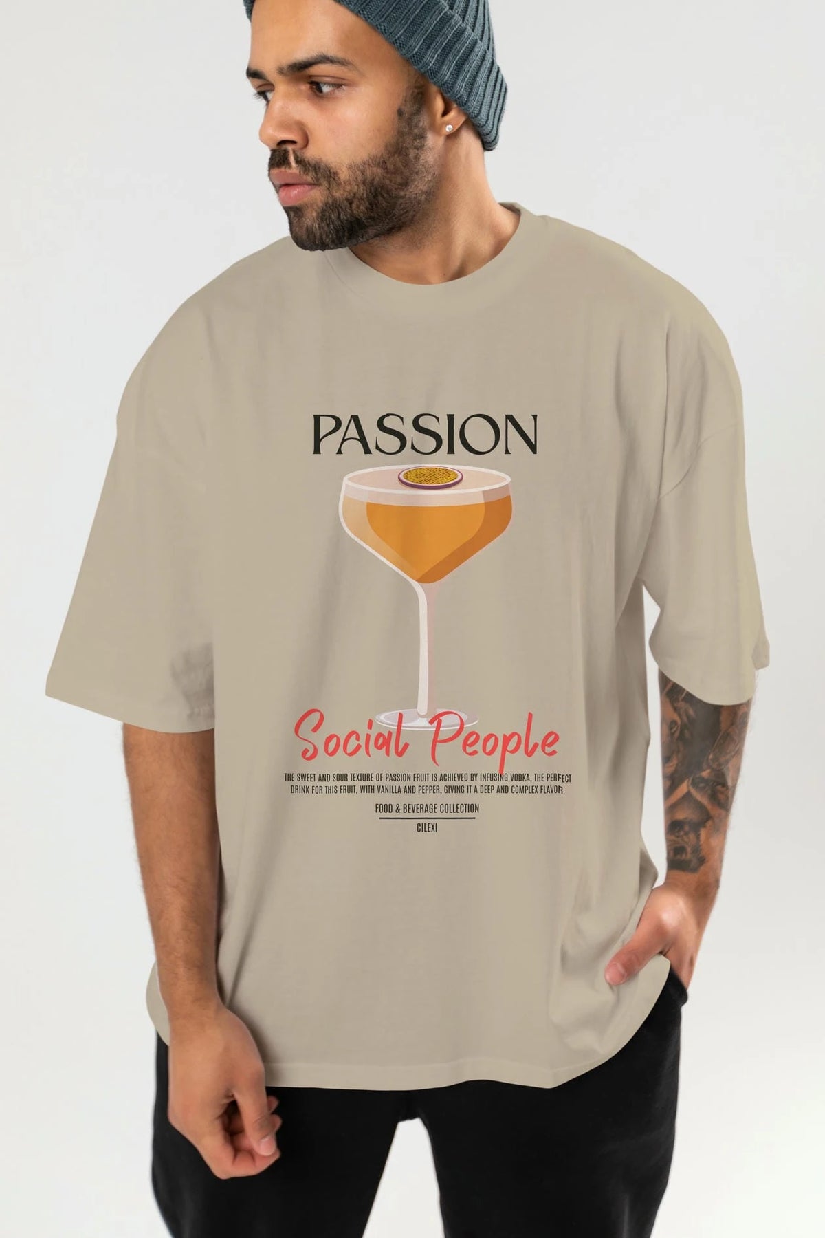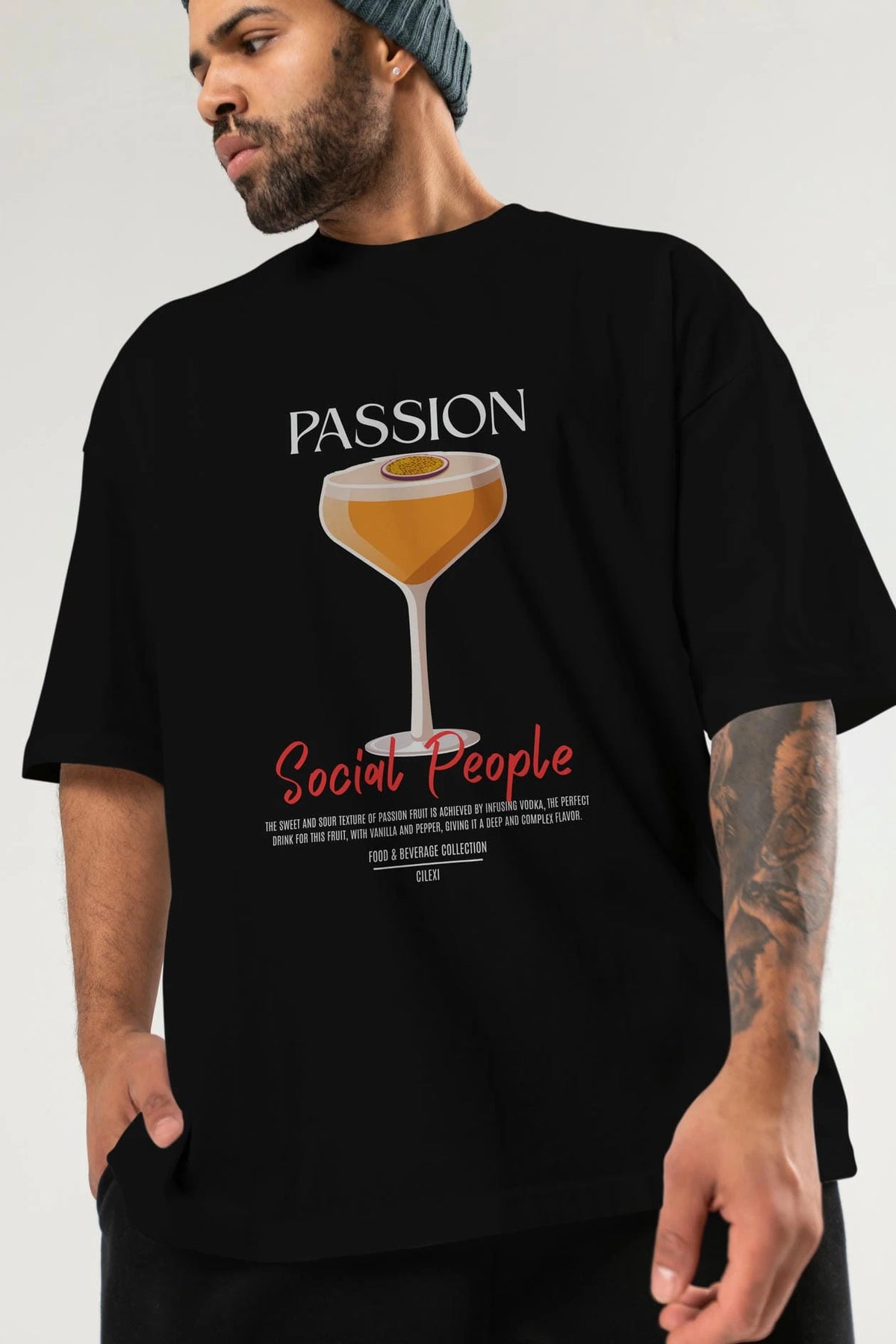 Passion Kokteyl Serisi ön Baskılı Oversize t-shirt Erkek Kadın %100 Pamuk Bisiklet Yaka tişort