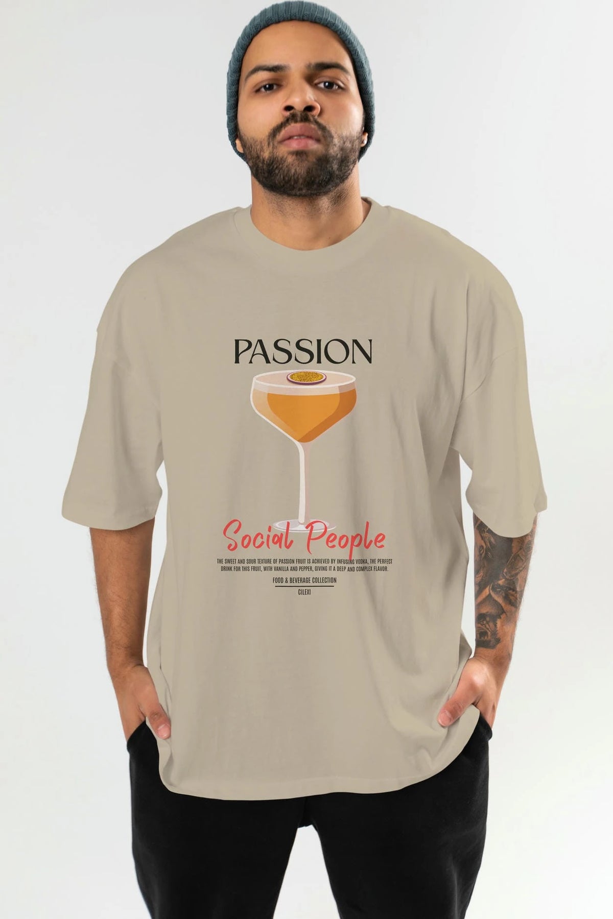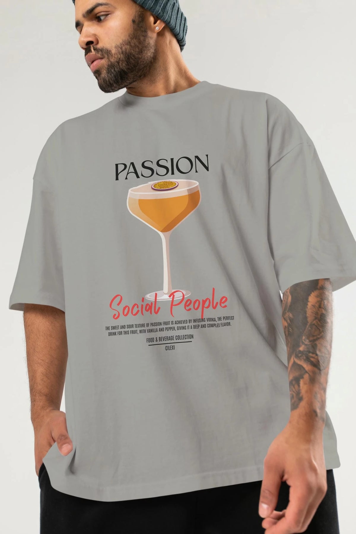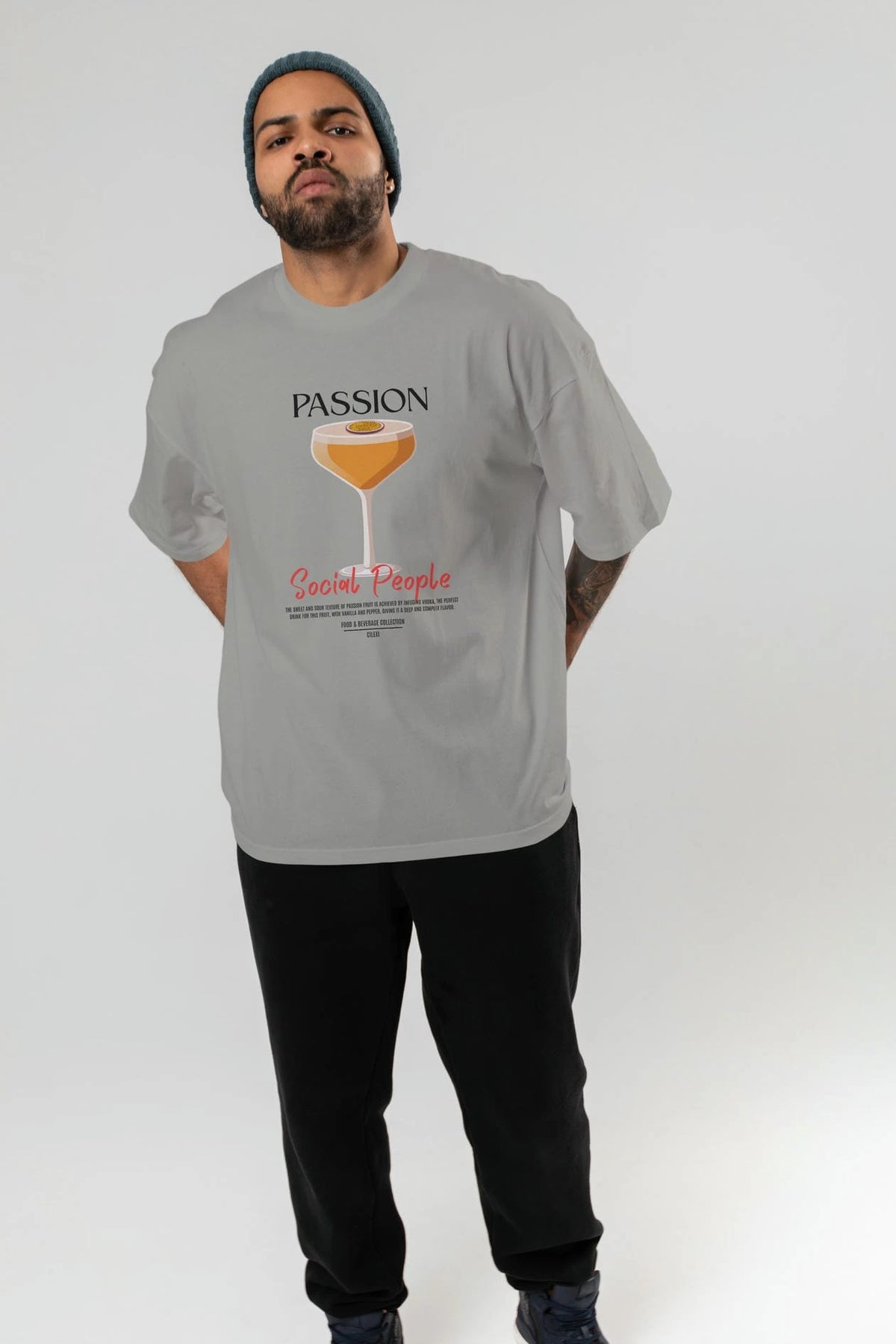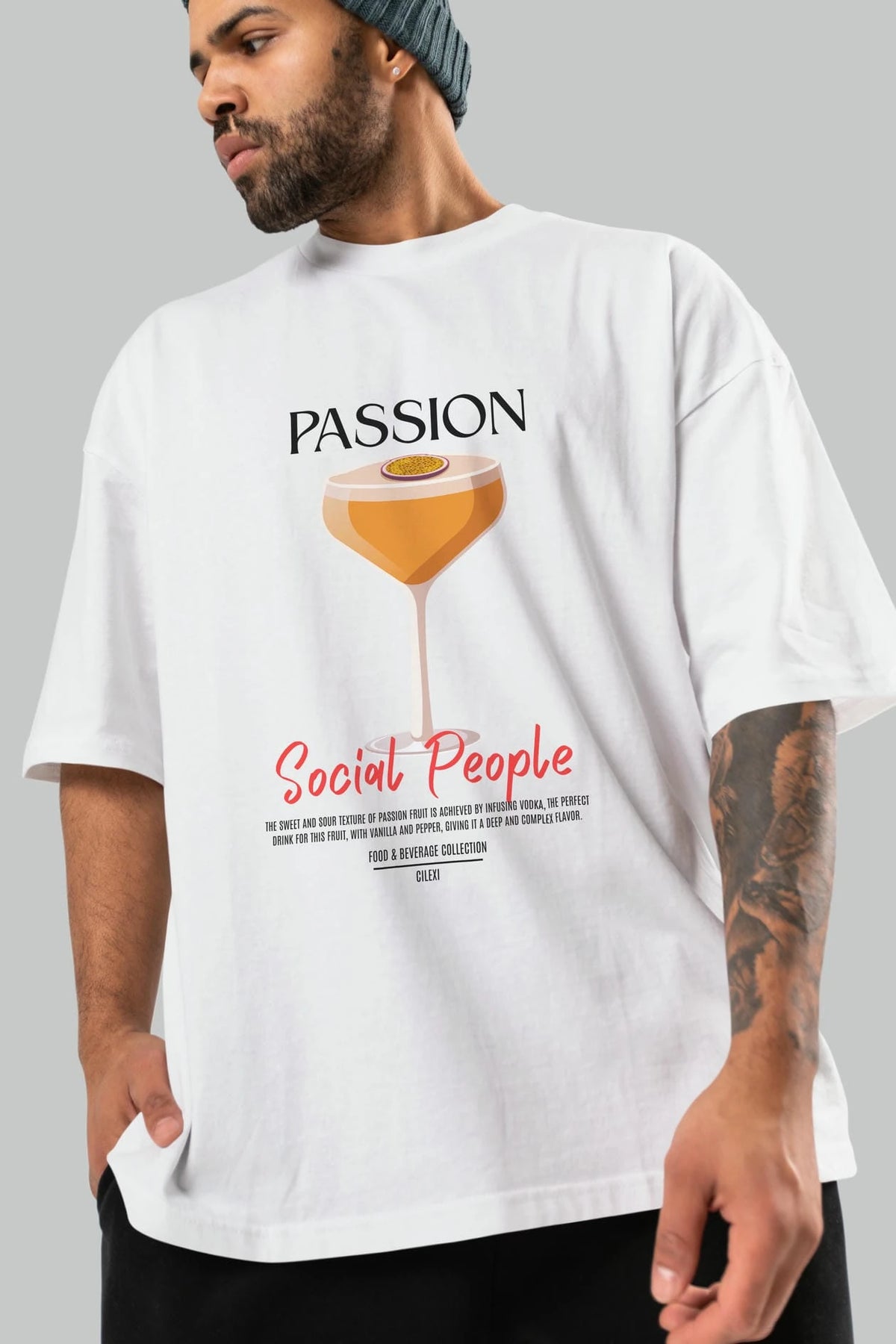 Passion Kokteyl Serisi ön Baskılı Oversize t-shirt Erkek Kadın %100 Pamuk Bisiklet Yaka tişort