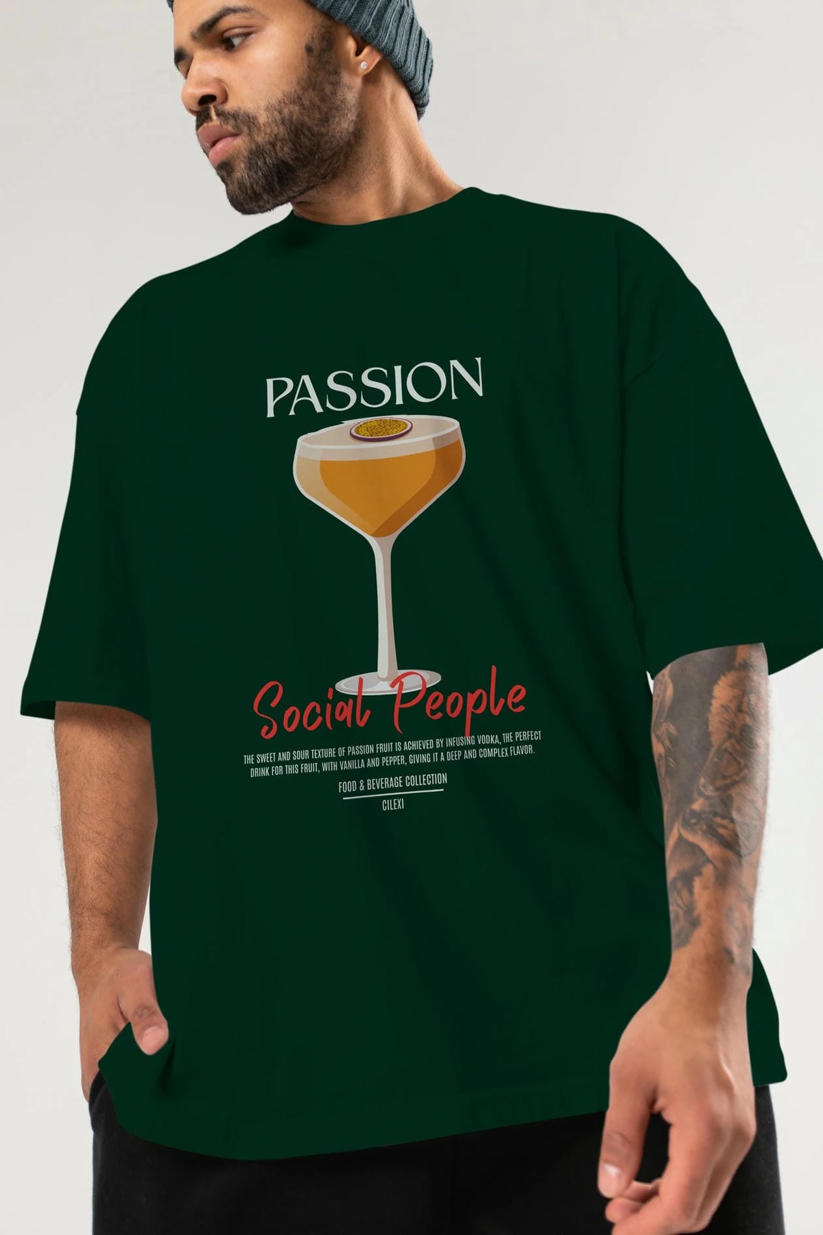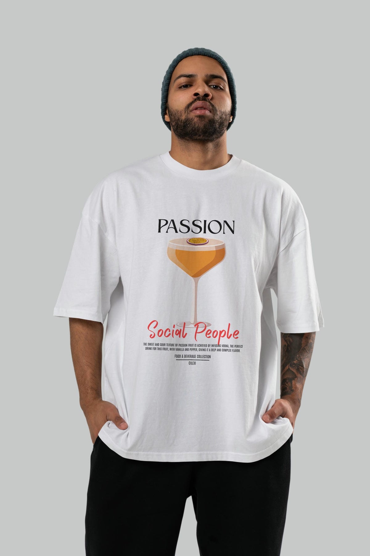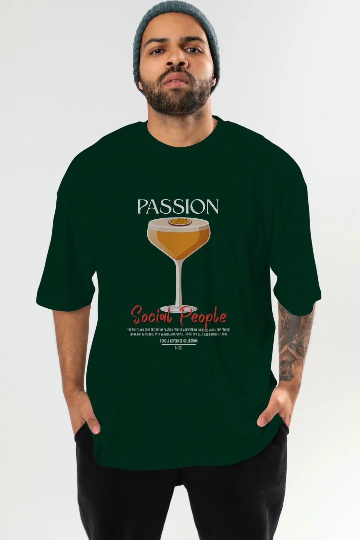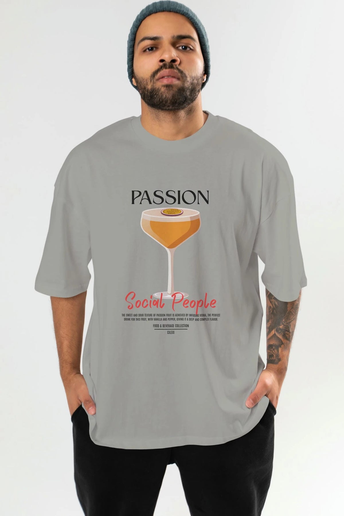 Passion Kokteyl Serisi ön Baskılı Oversize t-shirt Erkek Kadın %100 Pamuk Bisiklet Yaka tişort