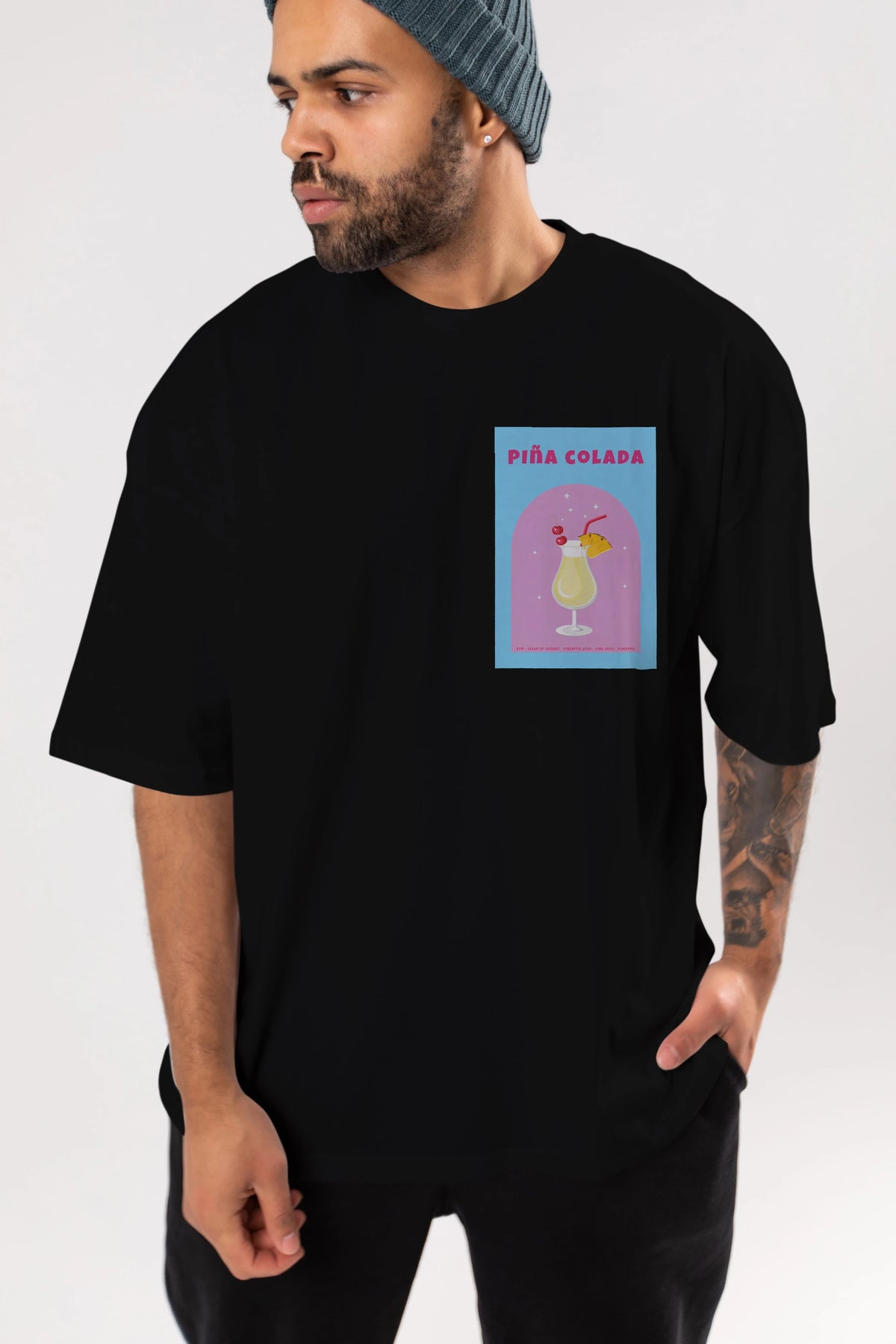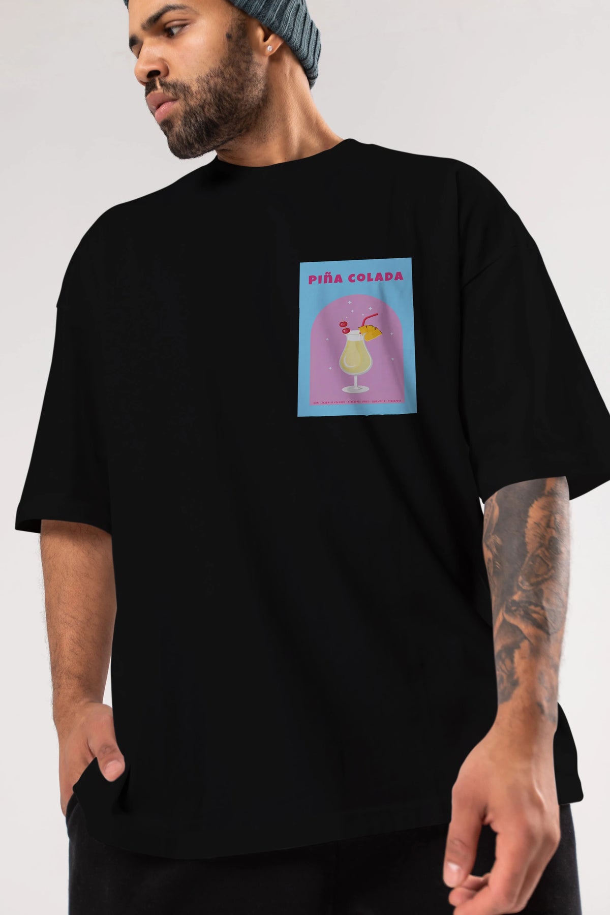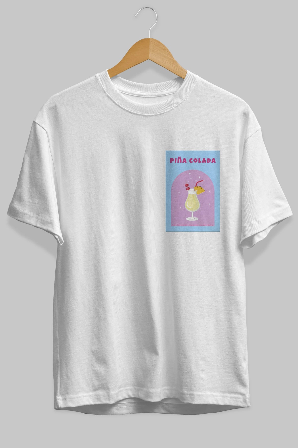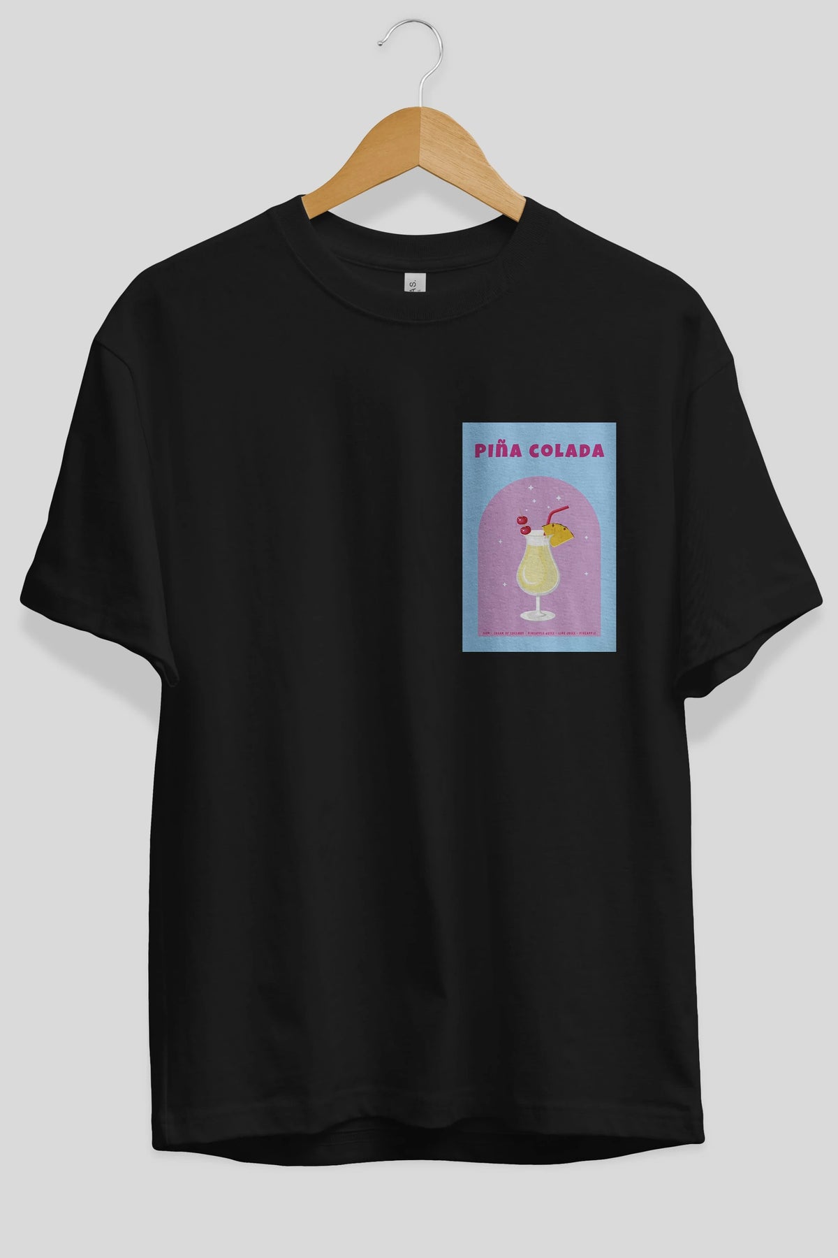Pina Colada 2 Ön Sol Baskılı Oversize t-shirt Erkek Kadın Unisex %100 Pamuk Bisiklet Yaka tişort