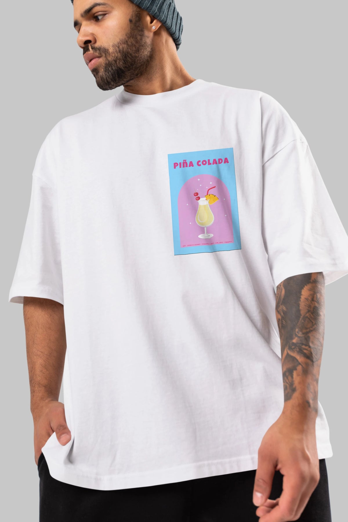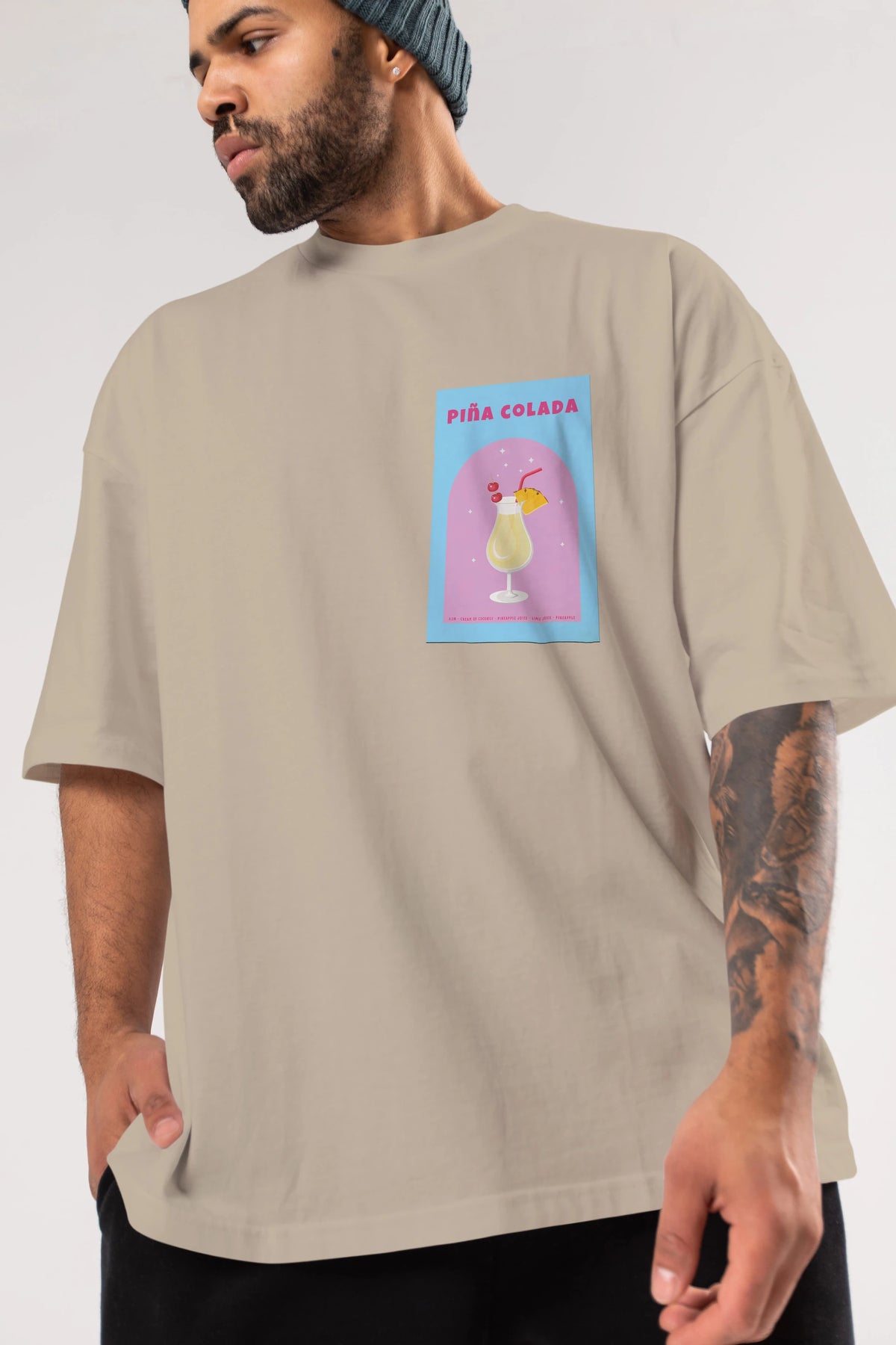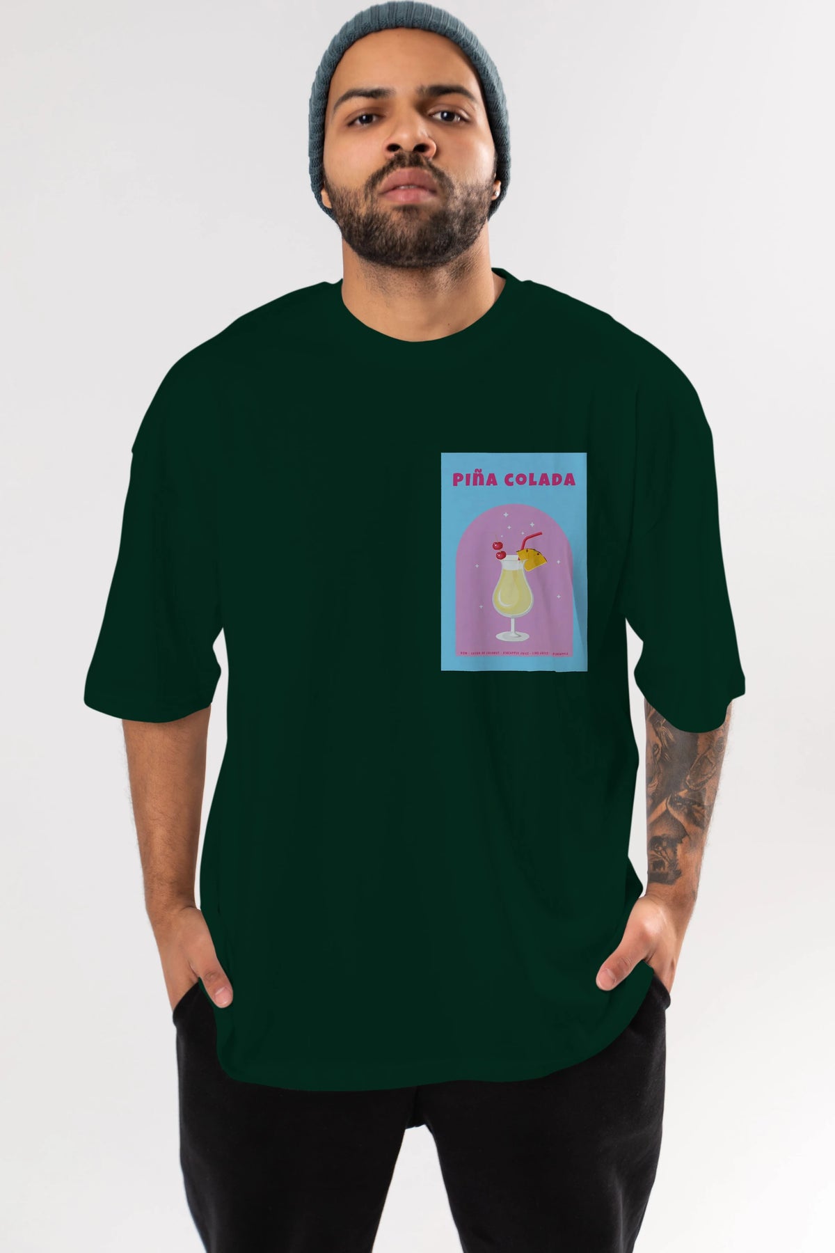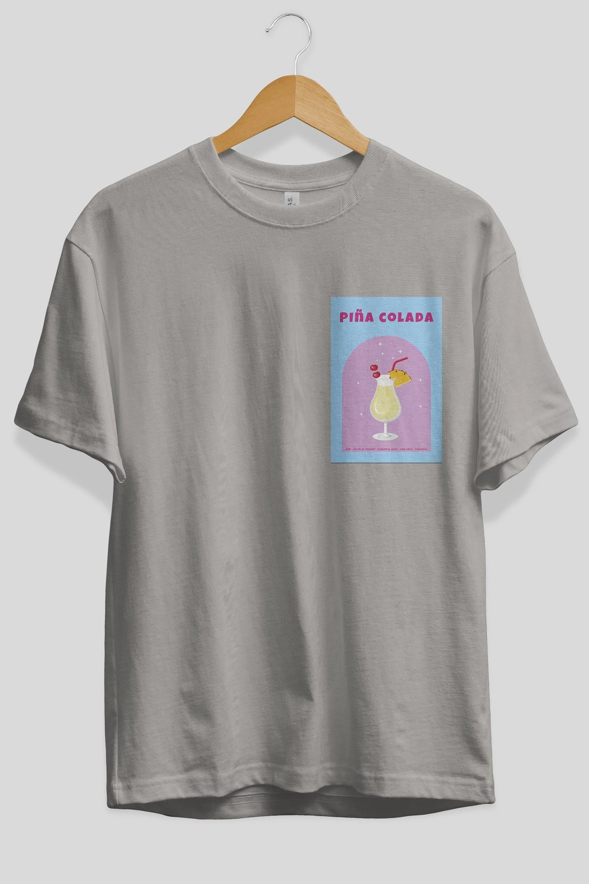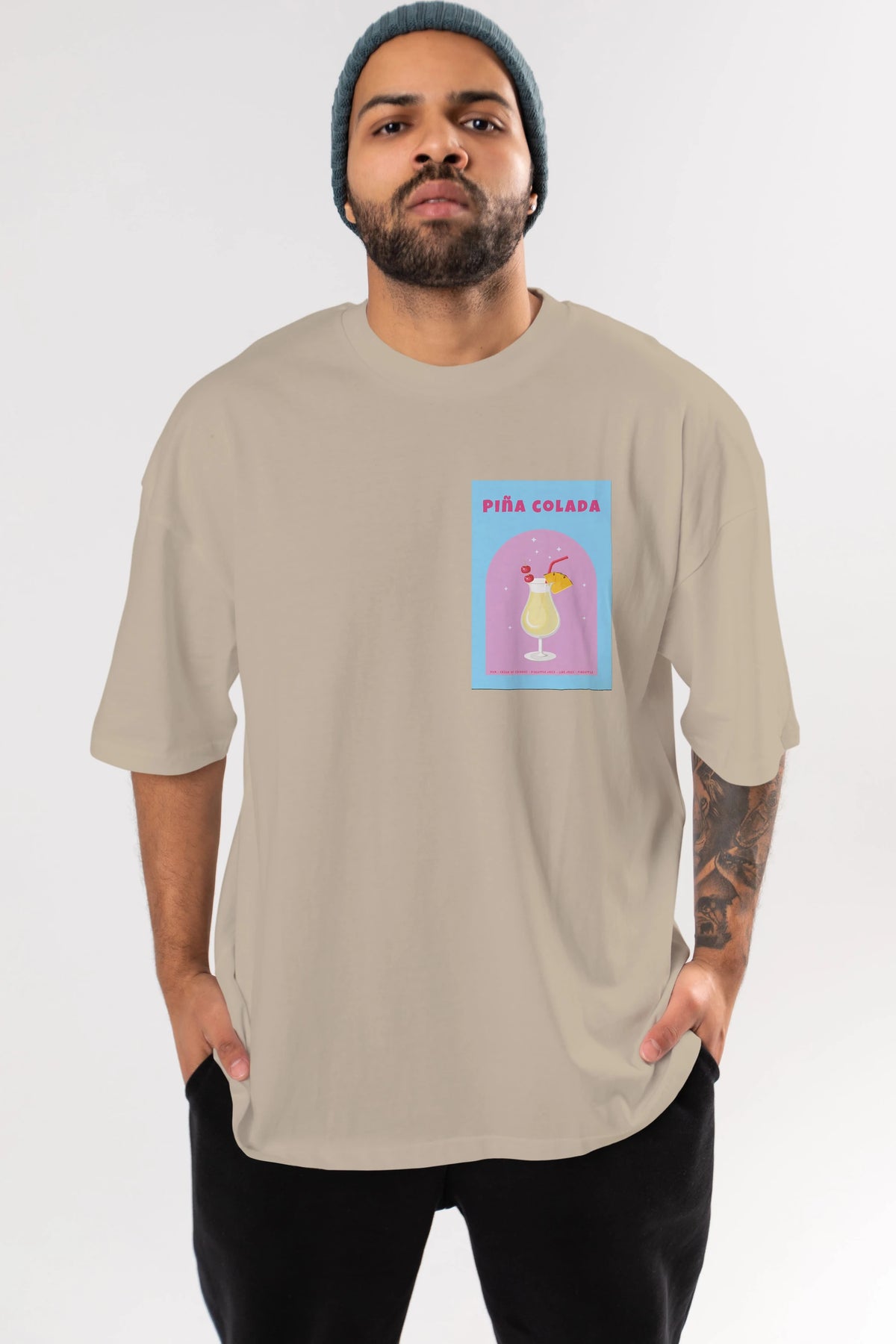 Pina Colada 2 Ön Sol Baskılı Oversize t-shirt Erkek Kadın Unisex %100 Pamuk Bisiklet Yaka tişort