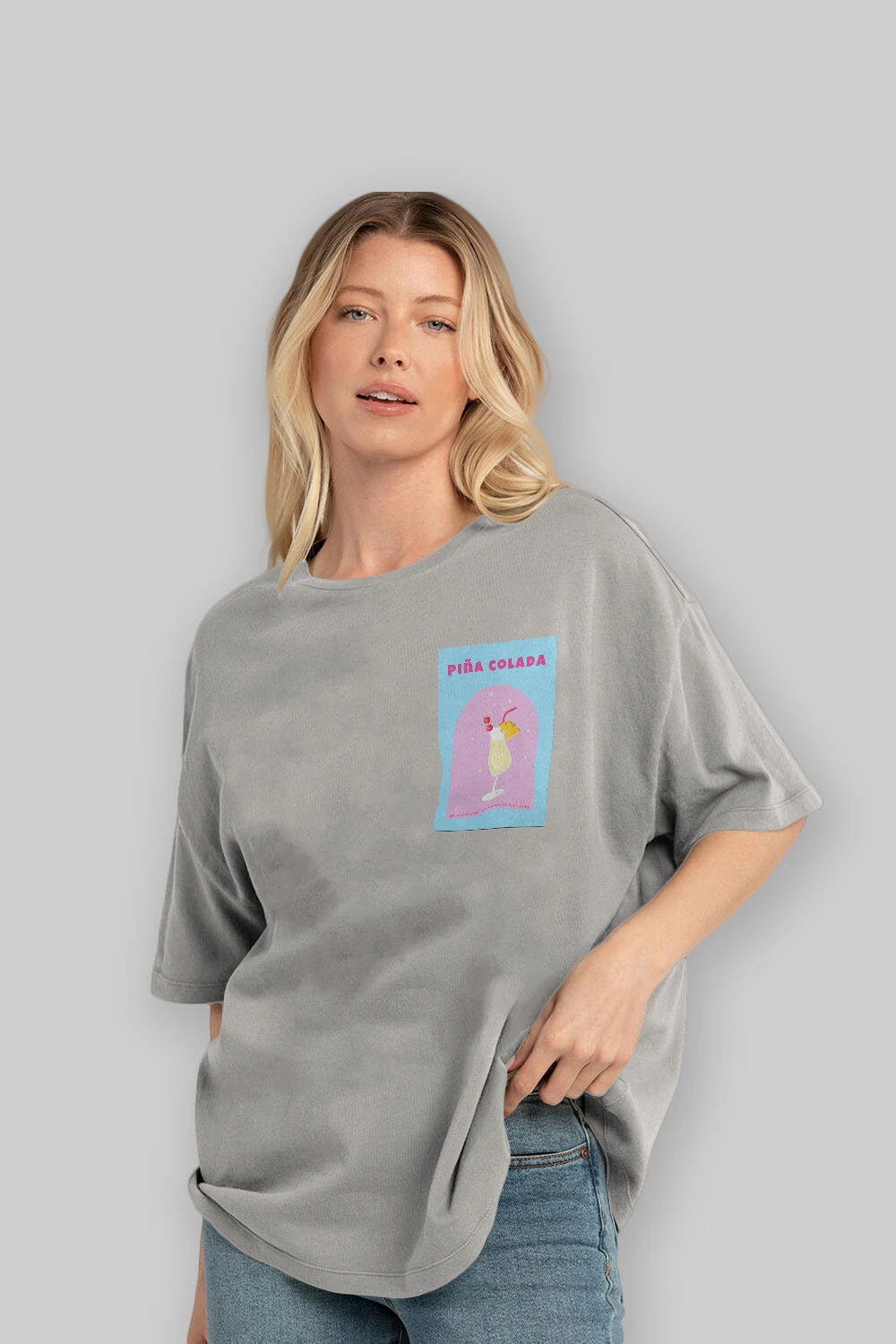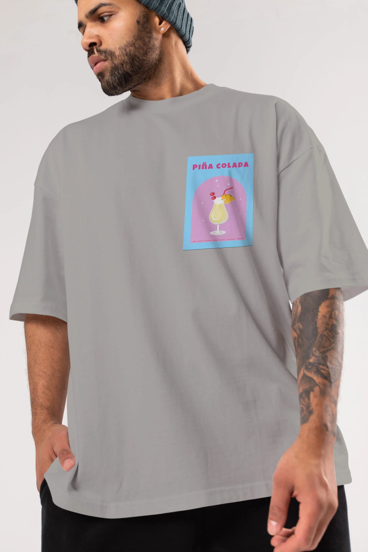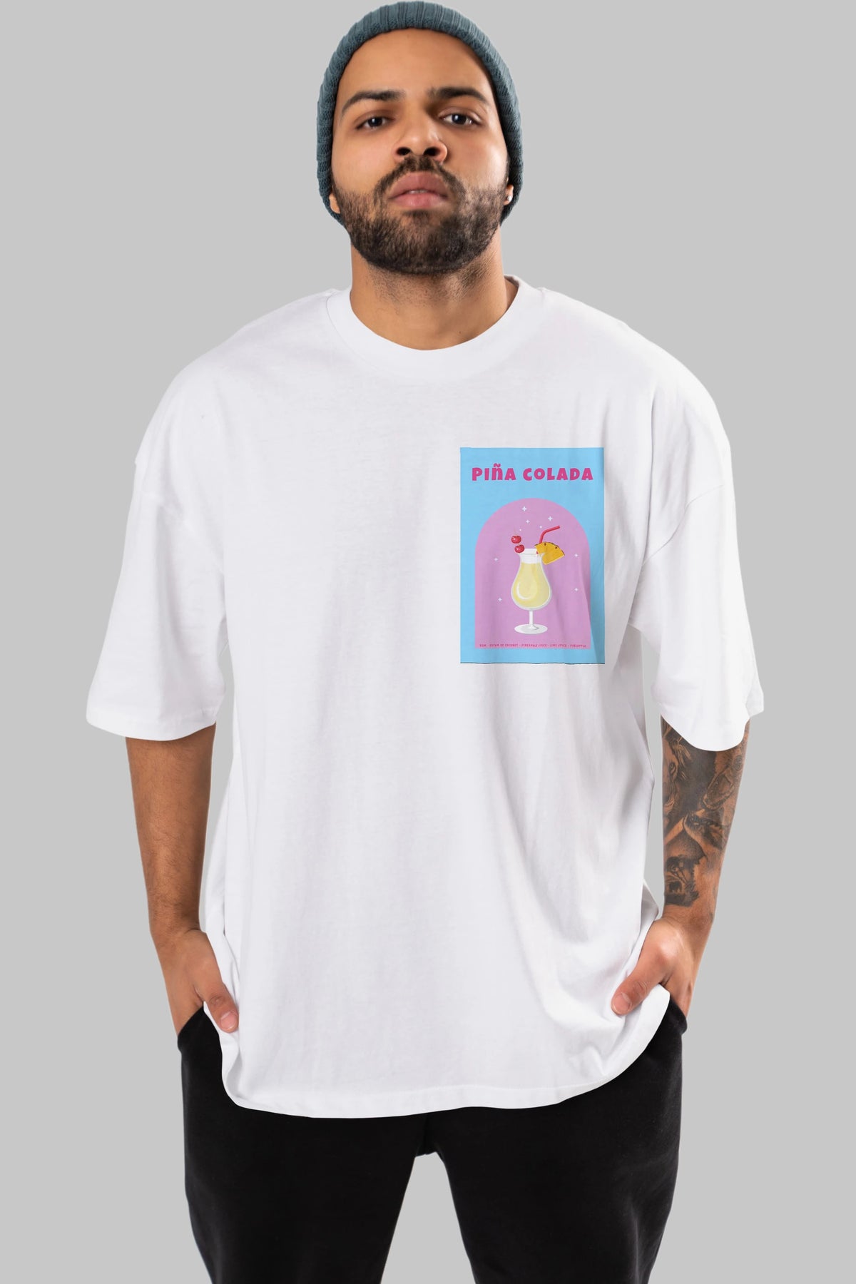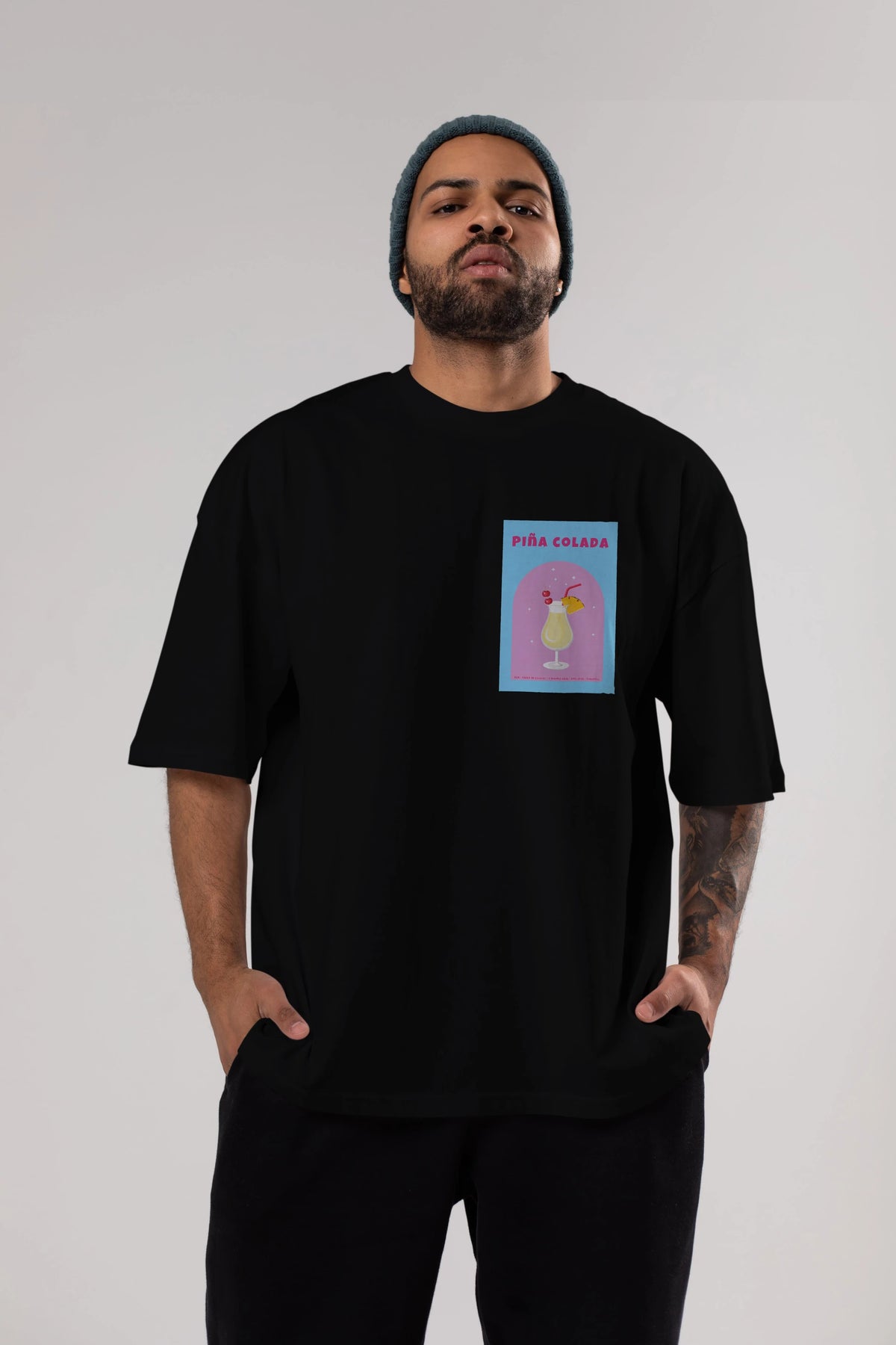 Pina Colada 2 Ön Sol Baskılı Oversize t-shirt Erkek Kadın Unisex %100 Pamuk Bisiklet Yaka tişort