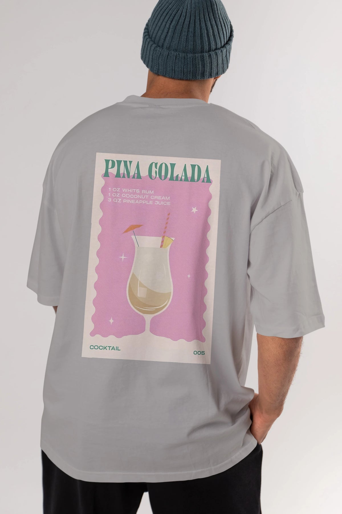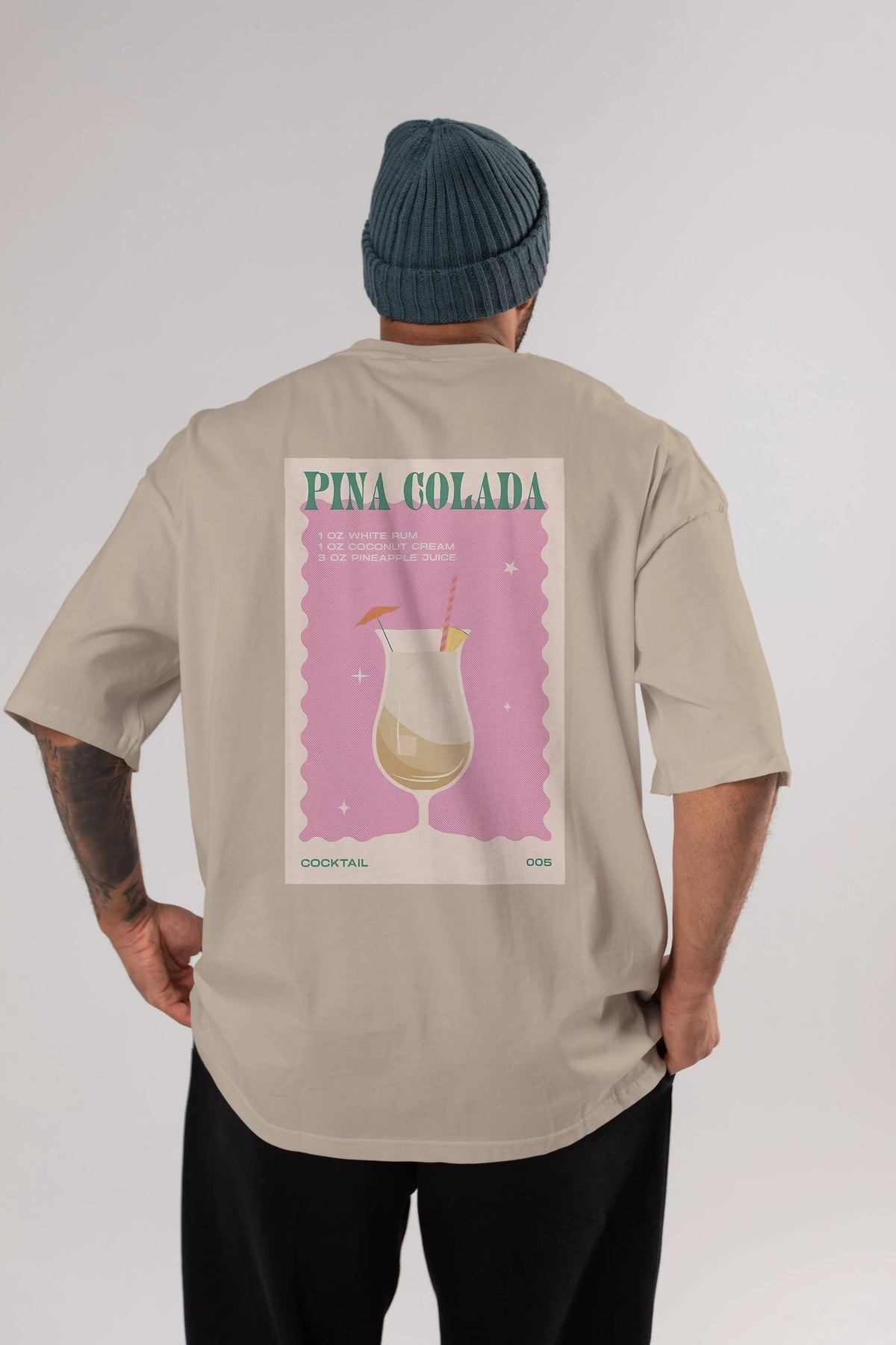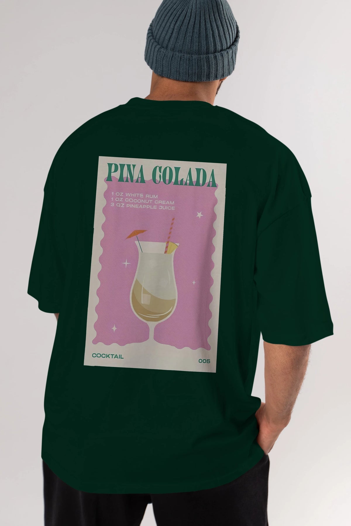 Pina Colada 3 Arka Baskılı Oversize t-shirt Erkek Kadın Unisex %100 Pamuk Bisiklet Yaka tişort