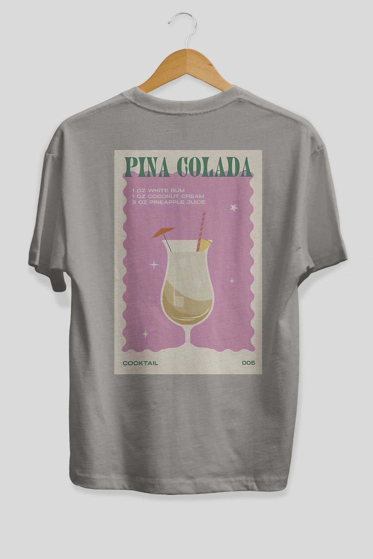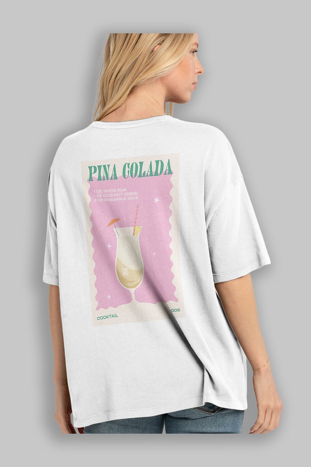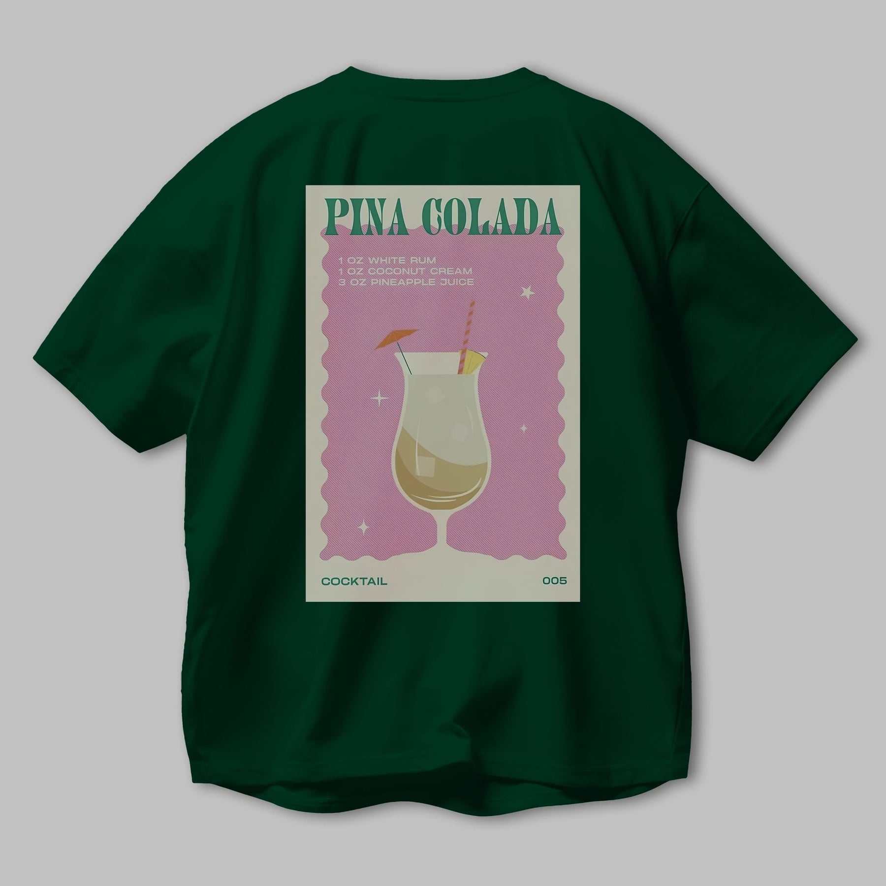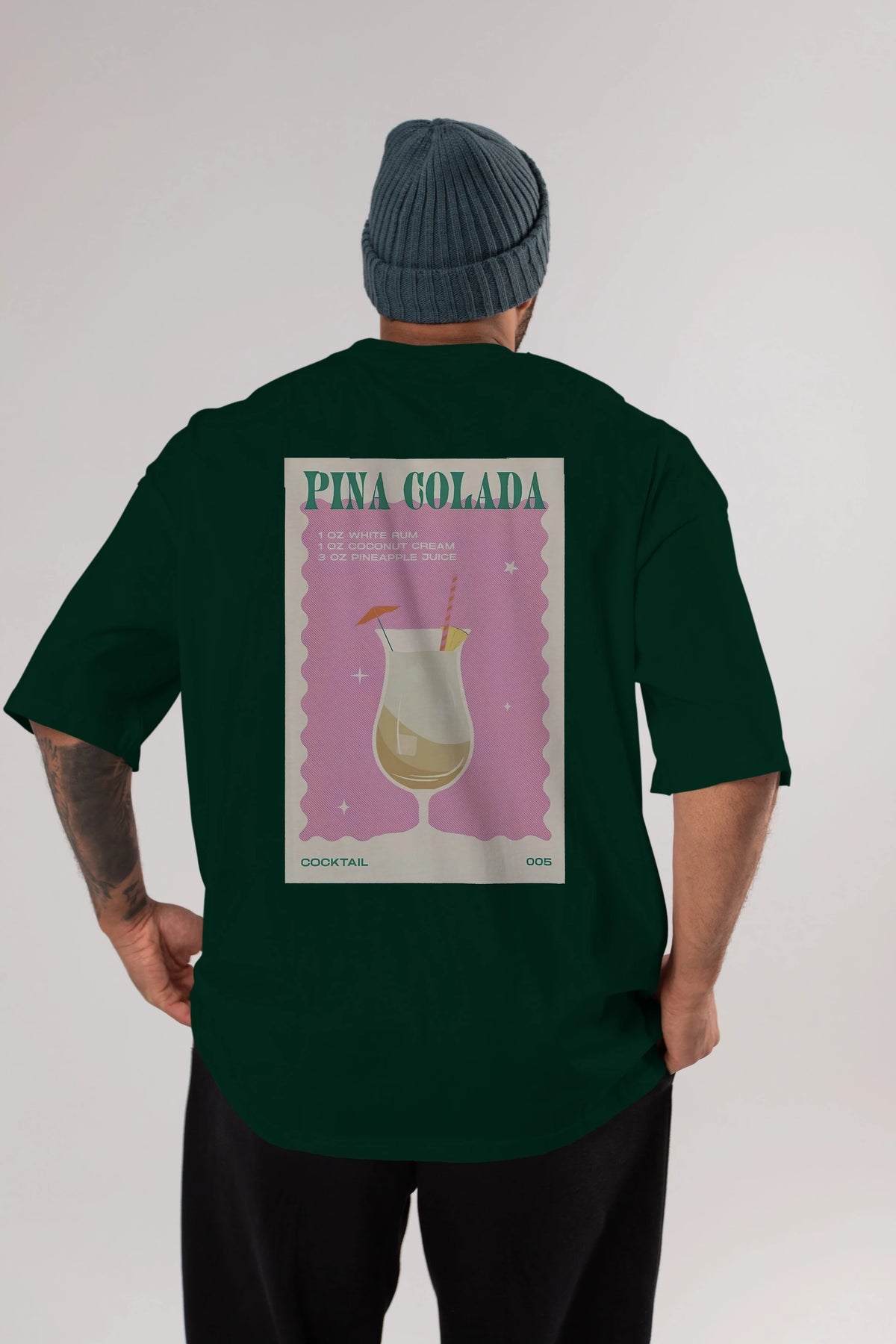 Pina Colada 3 Arka Baskılı Oversize t-shirt Erkek Kadın Unisex %100 Pamuk Bisiklet Yaka tişort