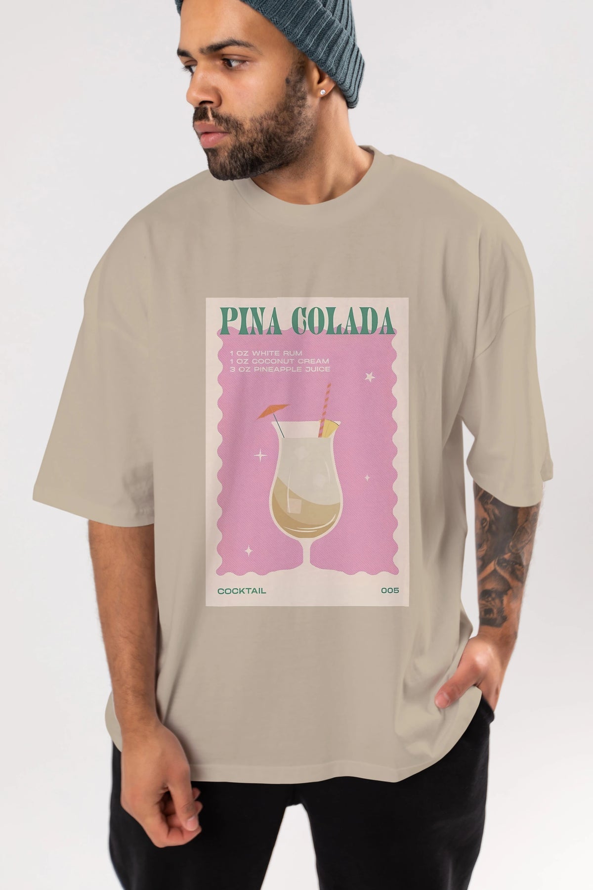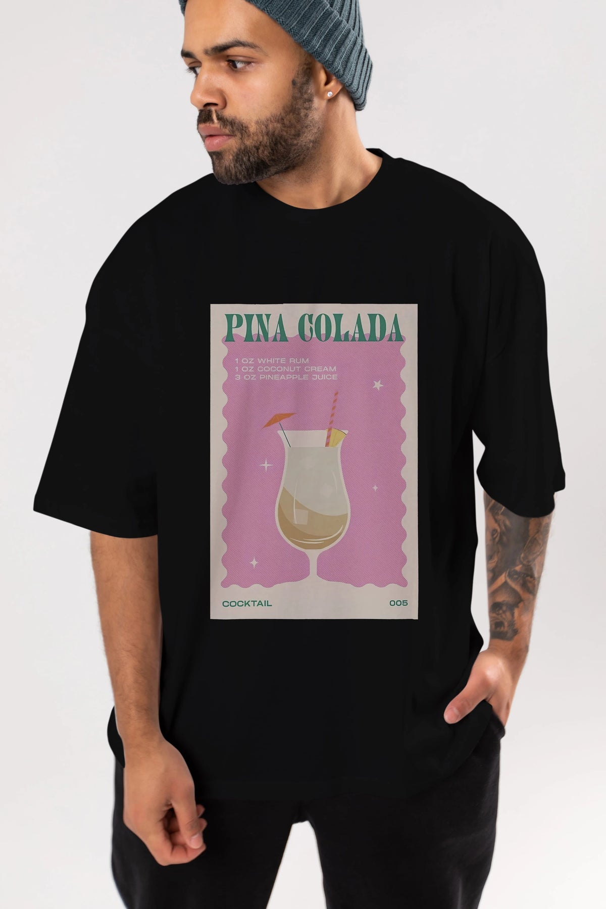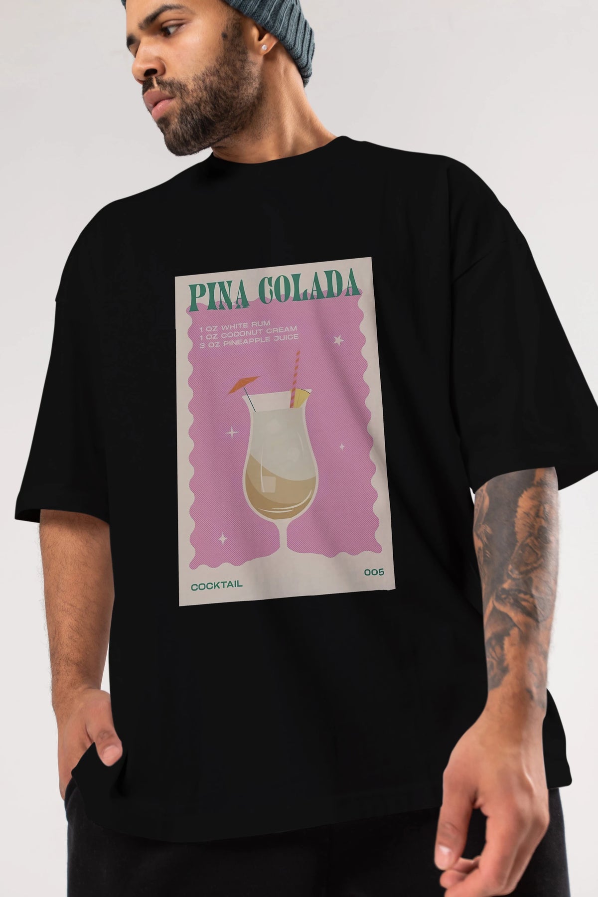 Pina Colada 3 Ön Baskılı Oversize t-shirt Erkek Kadın Unisex %100 Pamuk Bisiklet Yaka tişort