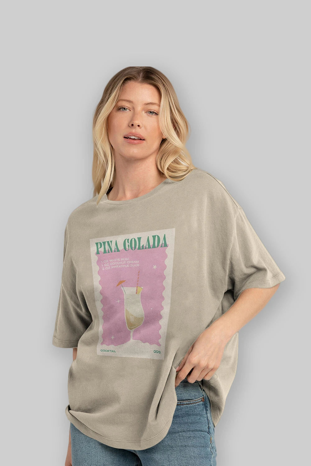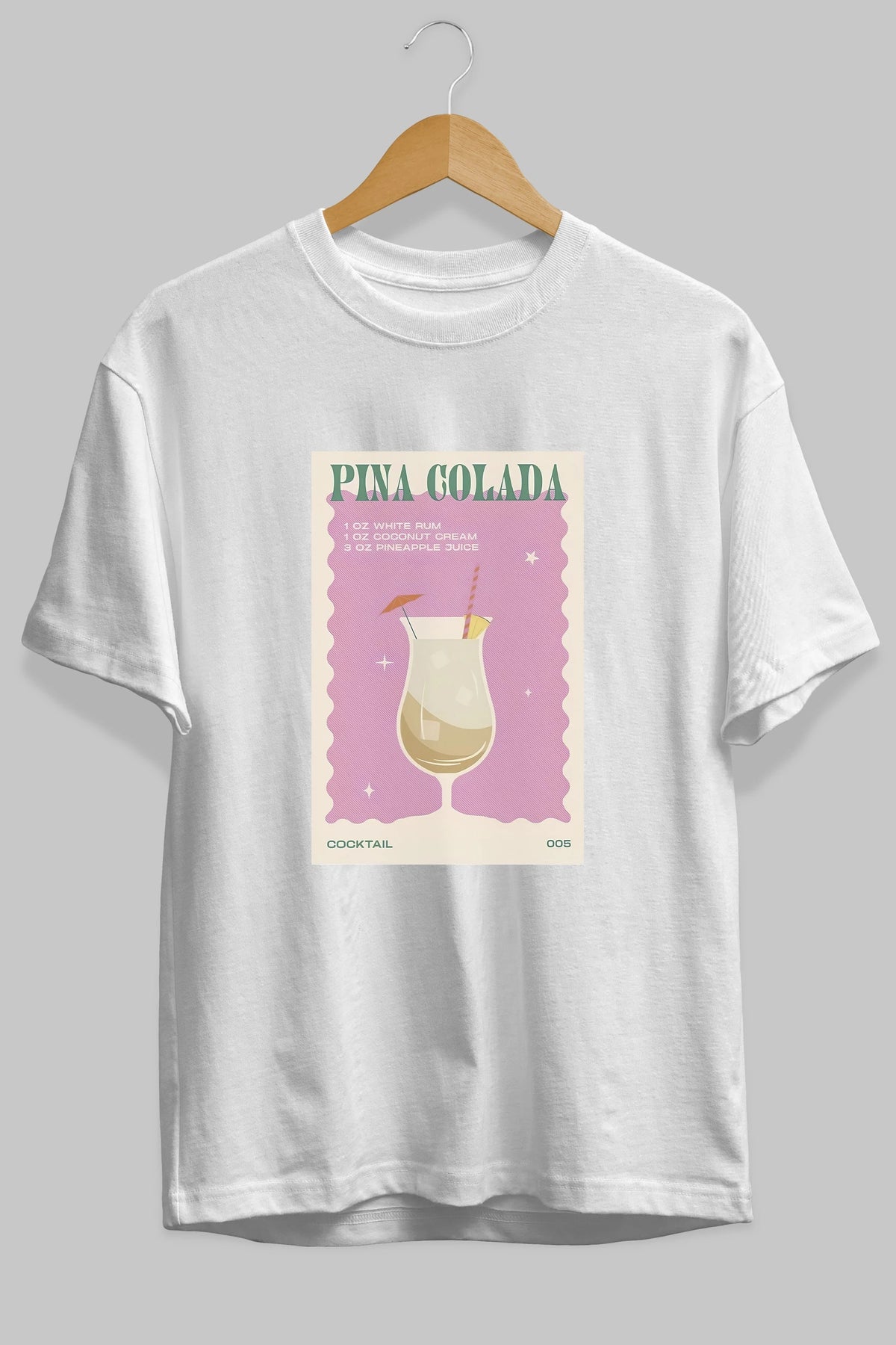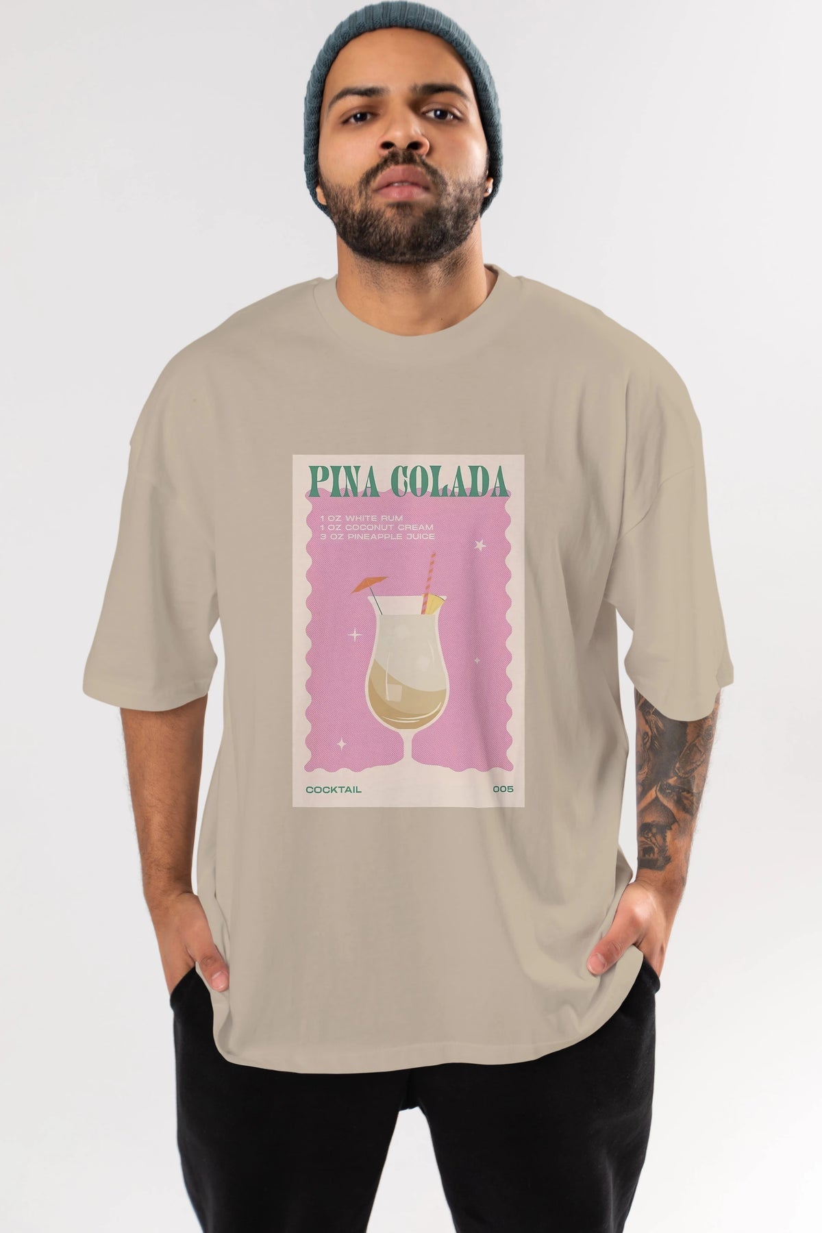 Pina Colada 3 Ön Baskılı Oversize t-shirt Erkek Kadın Unisex %100 Pamuk Bisiklet Yaka tişort