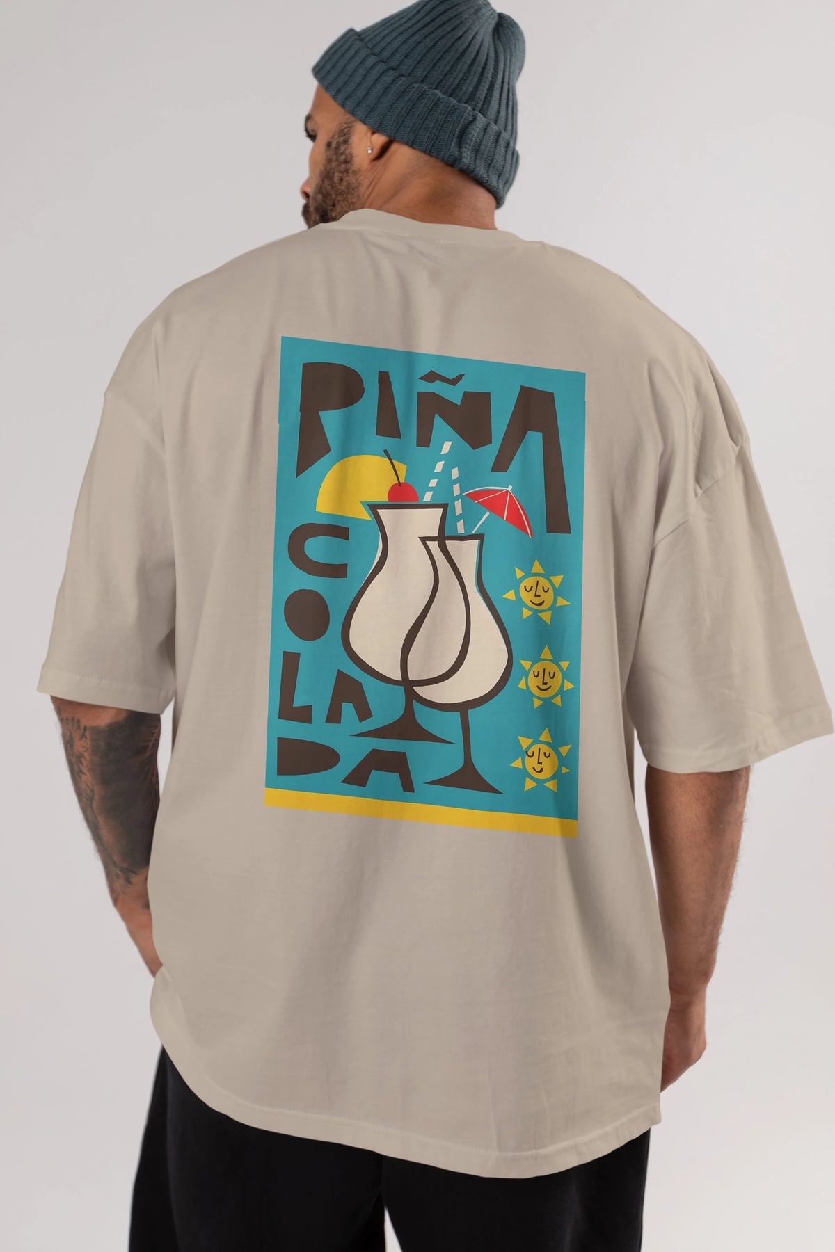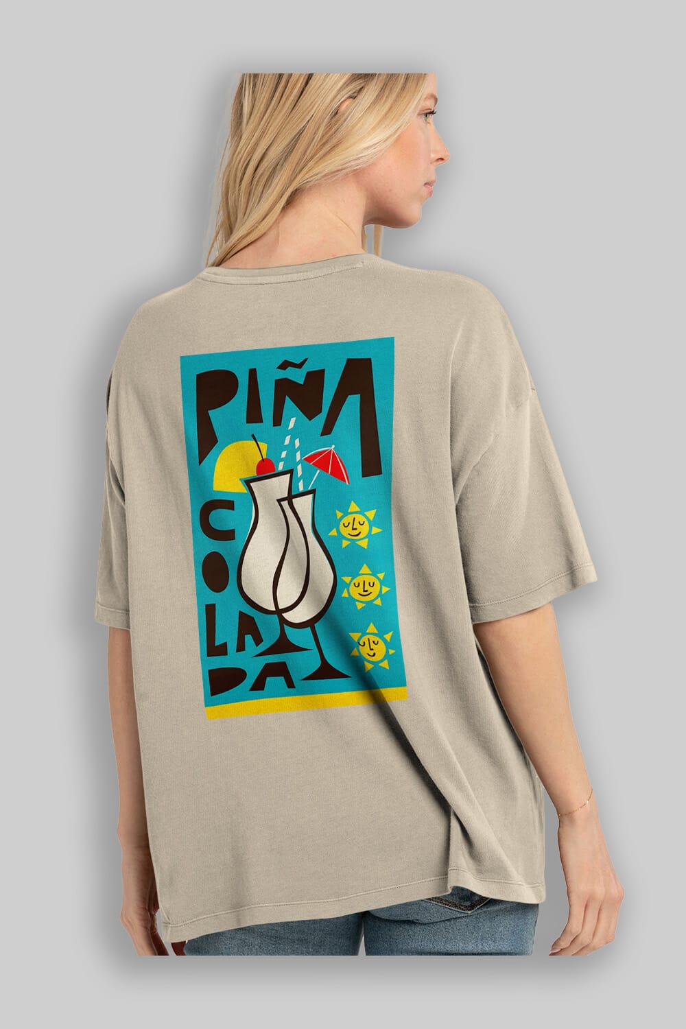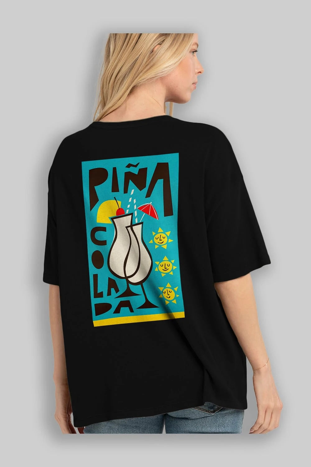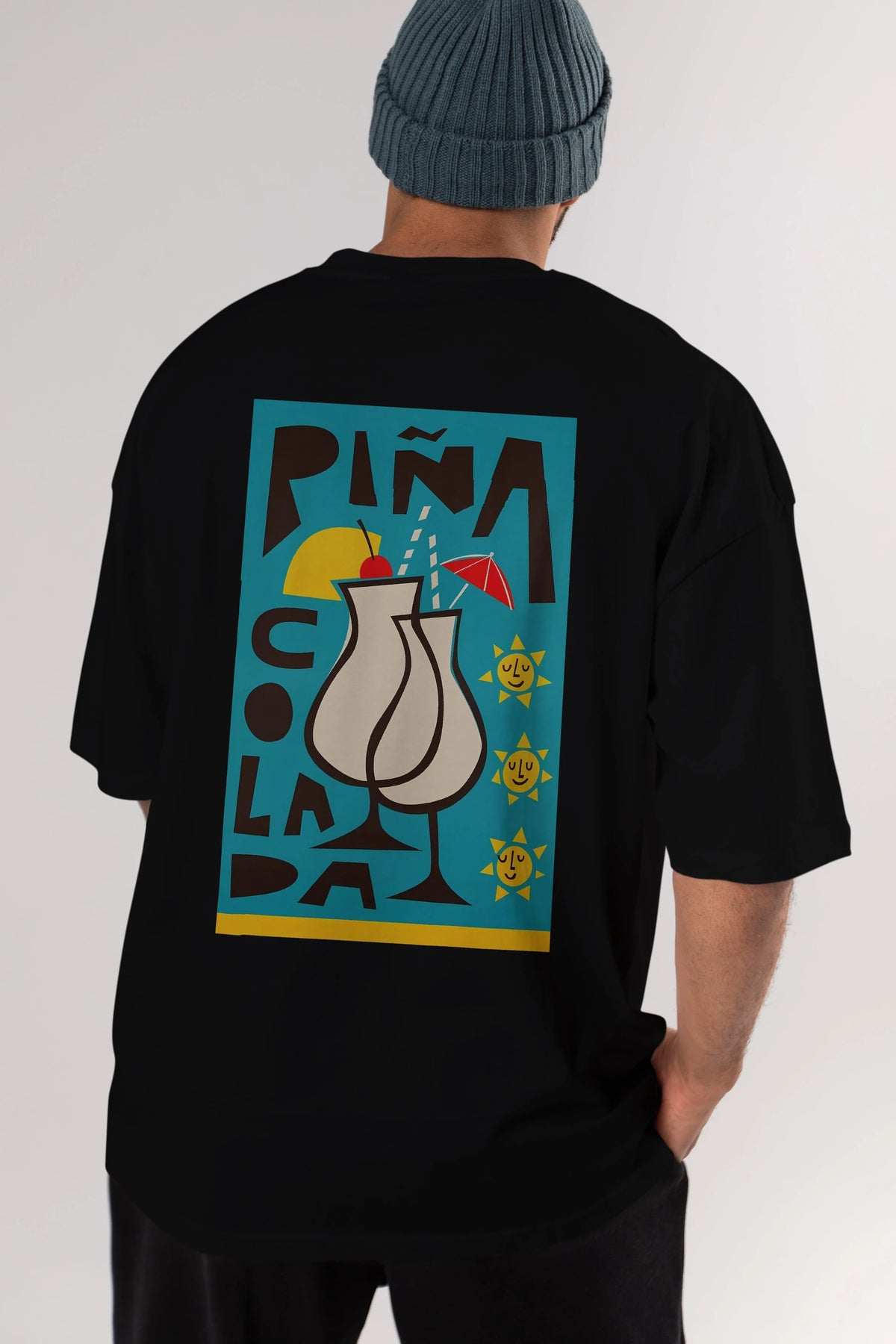 Pina Colada 4 Arka Baskılı Oversize t-shirt Erkek Kadın Unisex %100 Pamuk Bisiklet Yaka tişort