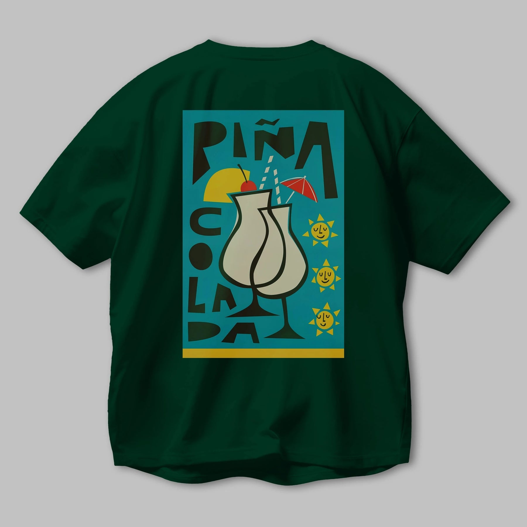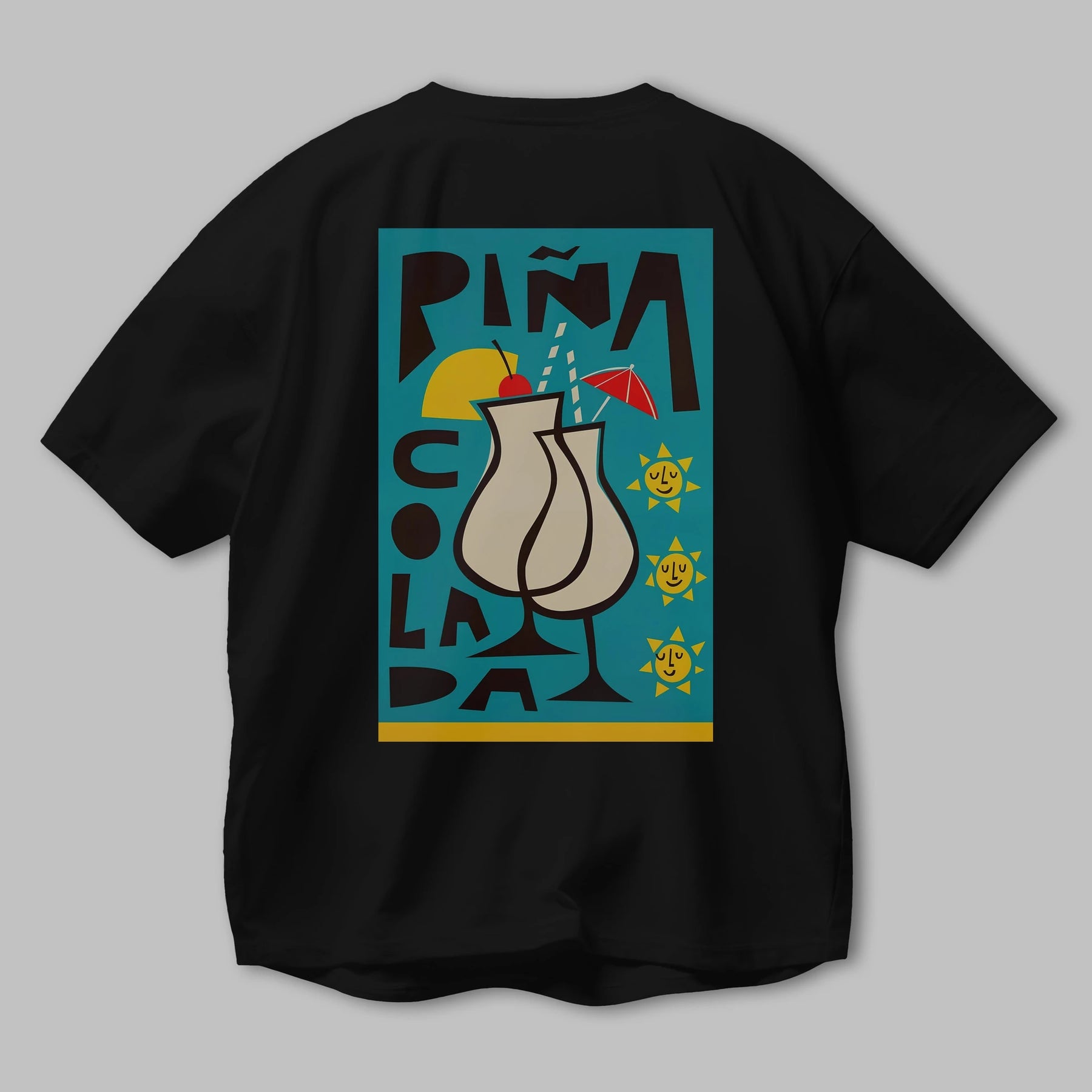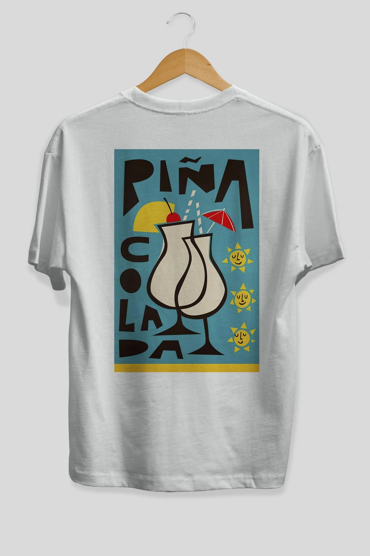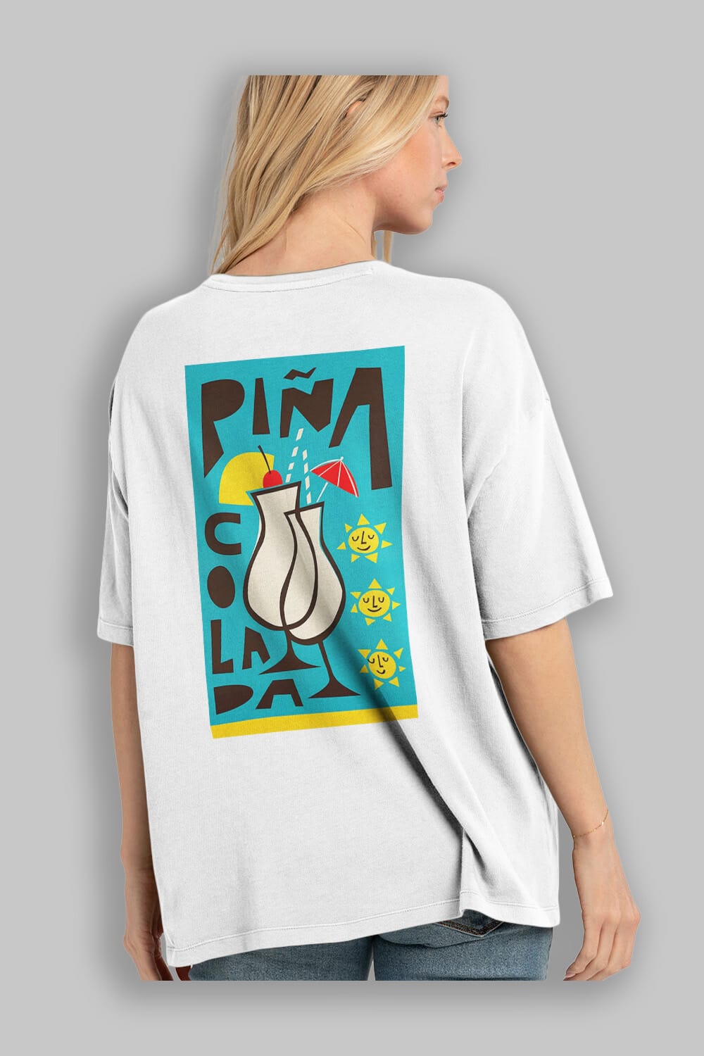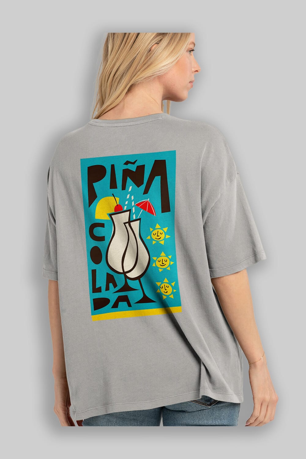 Pina Colada 4 Arka Baskılı Oversize t-shirt Erkek Kadın Unisex %100 Pamuk Bisiklet Yaka tişort