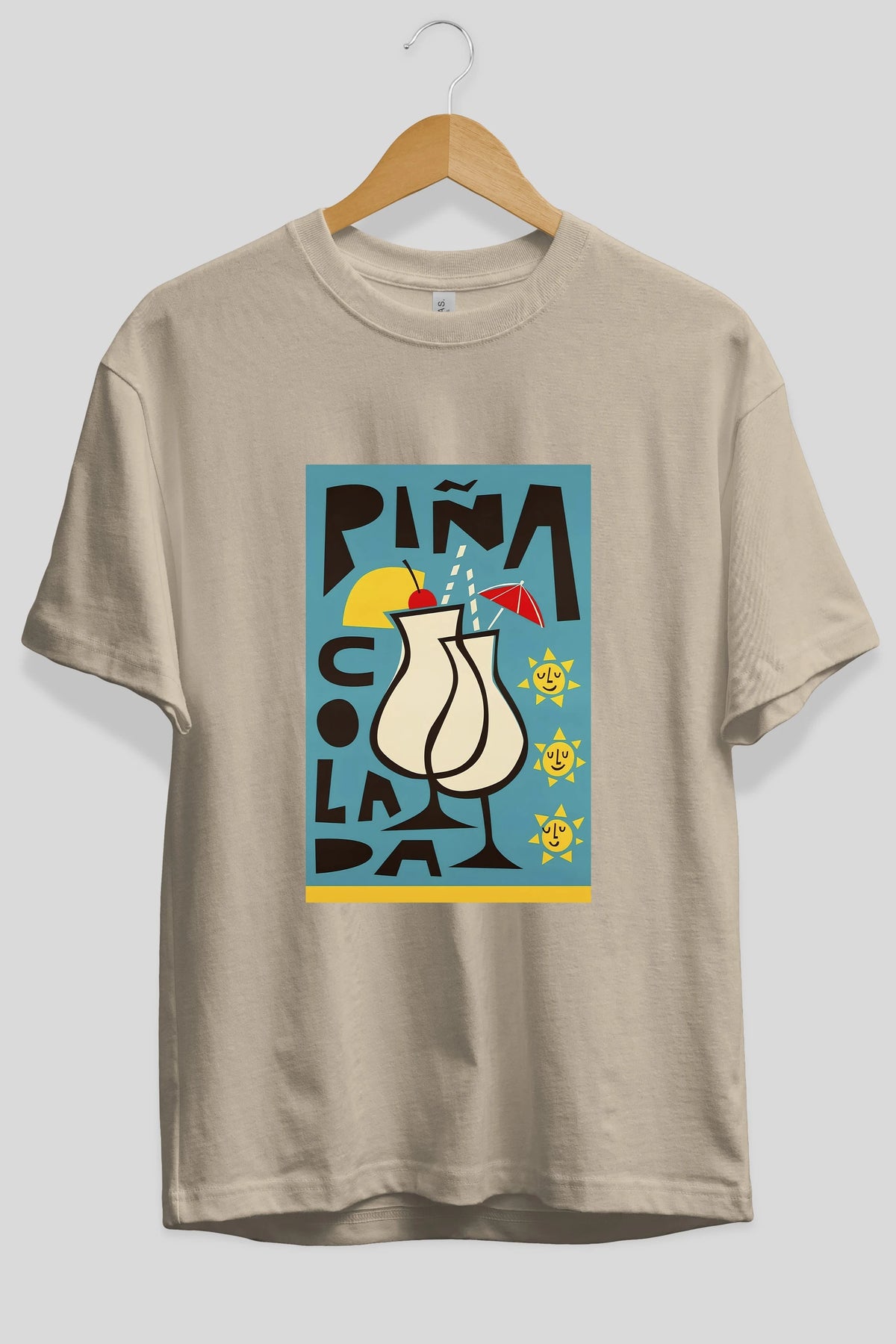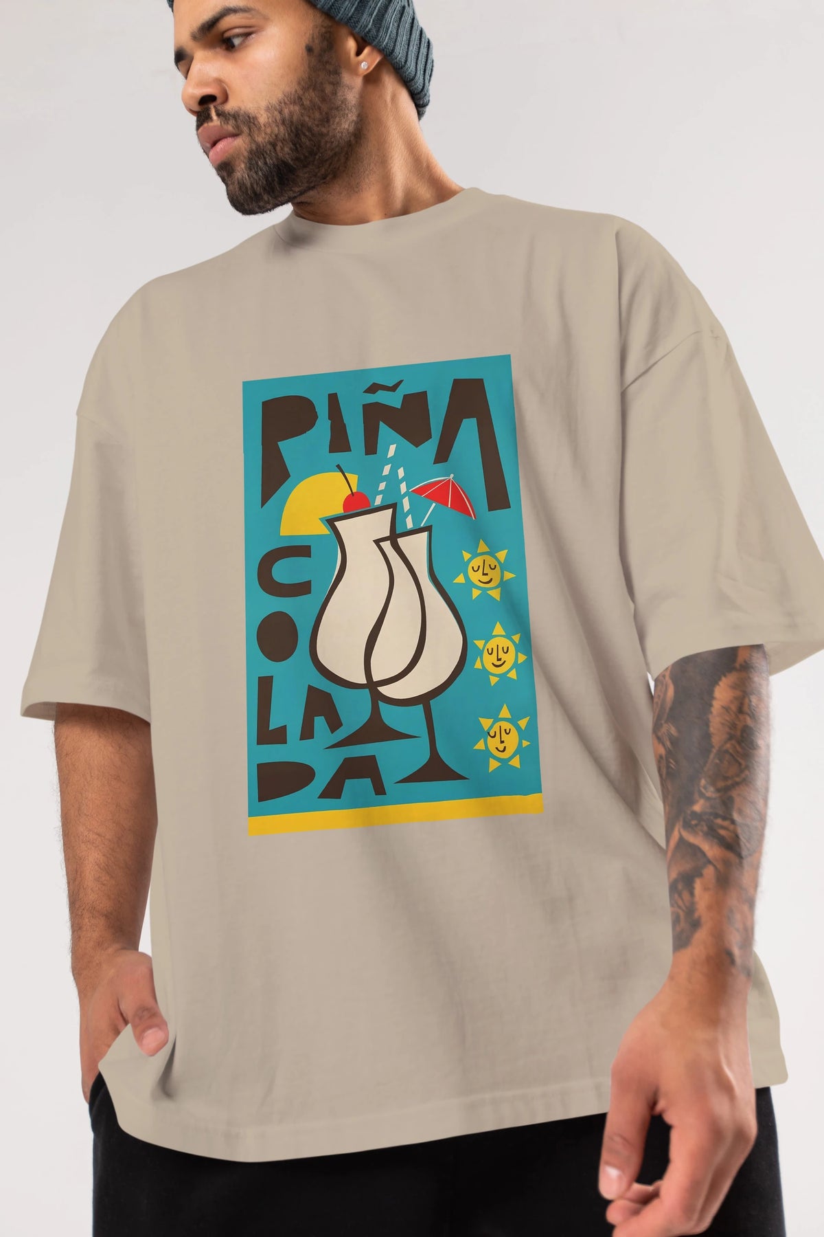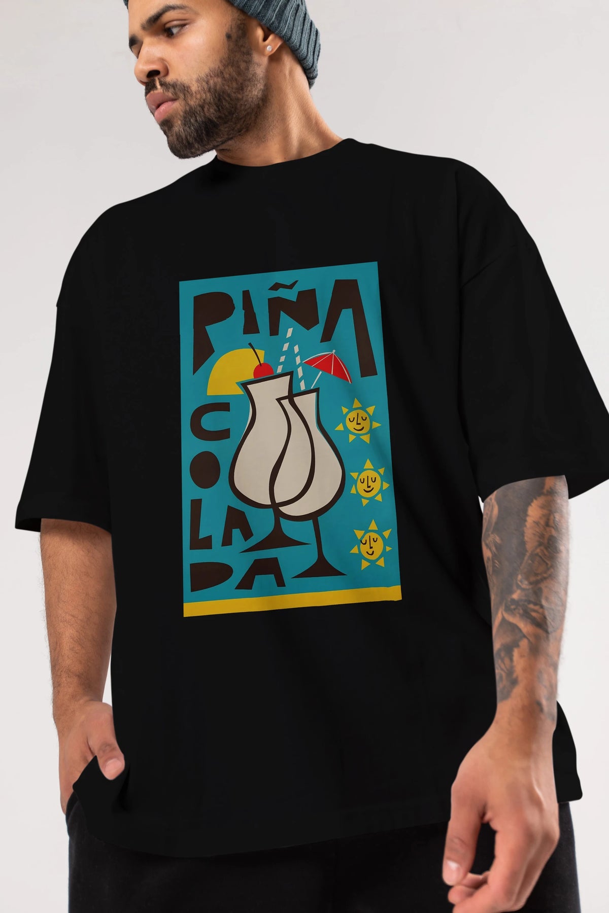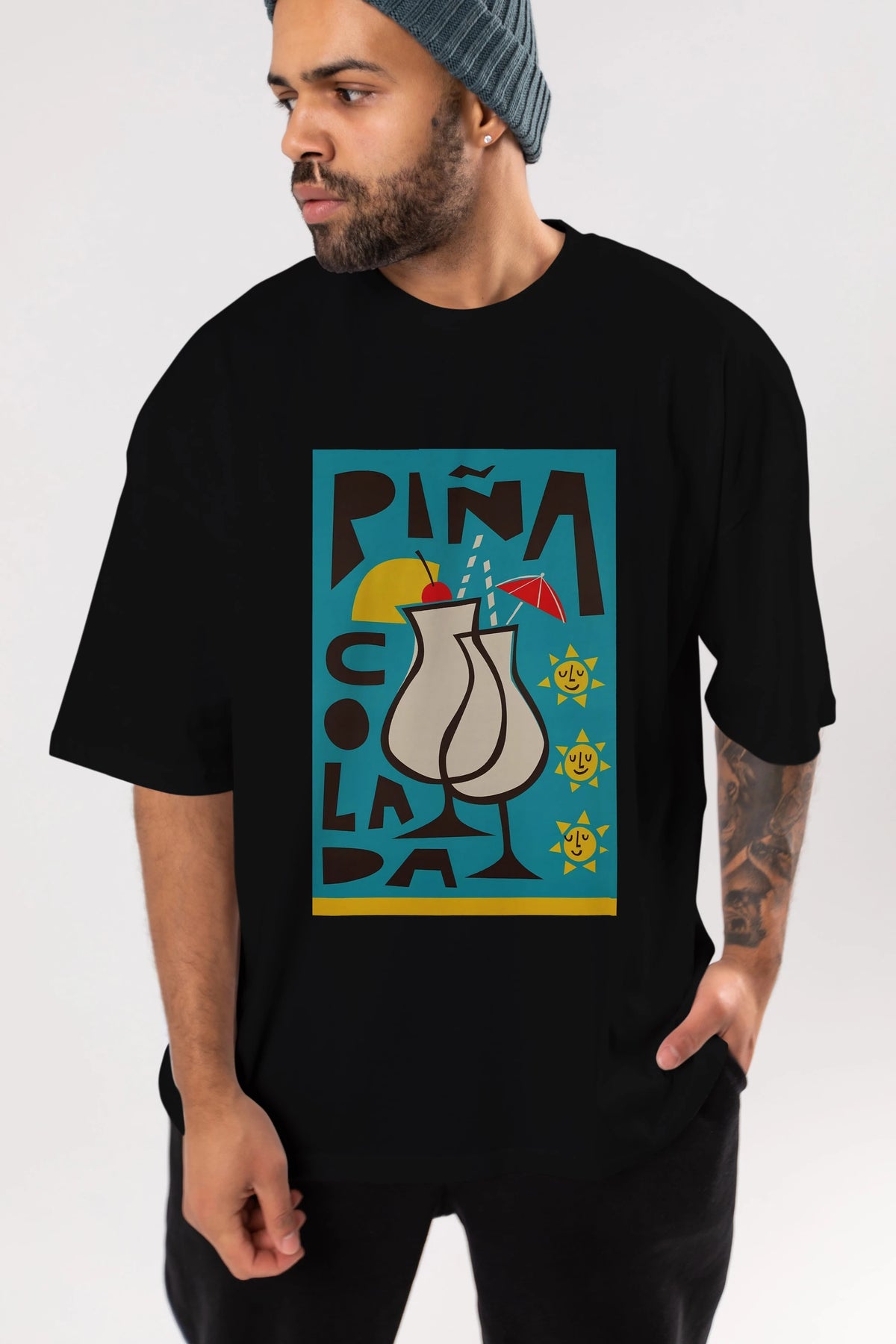 Pina Colada 4 Ön Baskılı Oversize t-shirt Erkek Kadın Unisex %100 Pamuk Bisiklet Yaka tişort