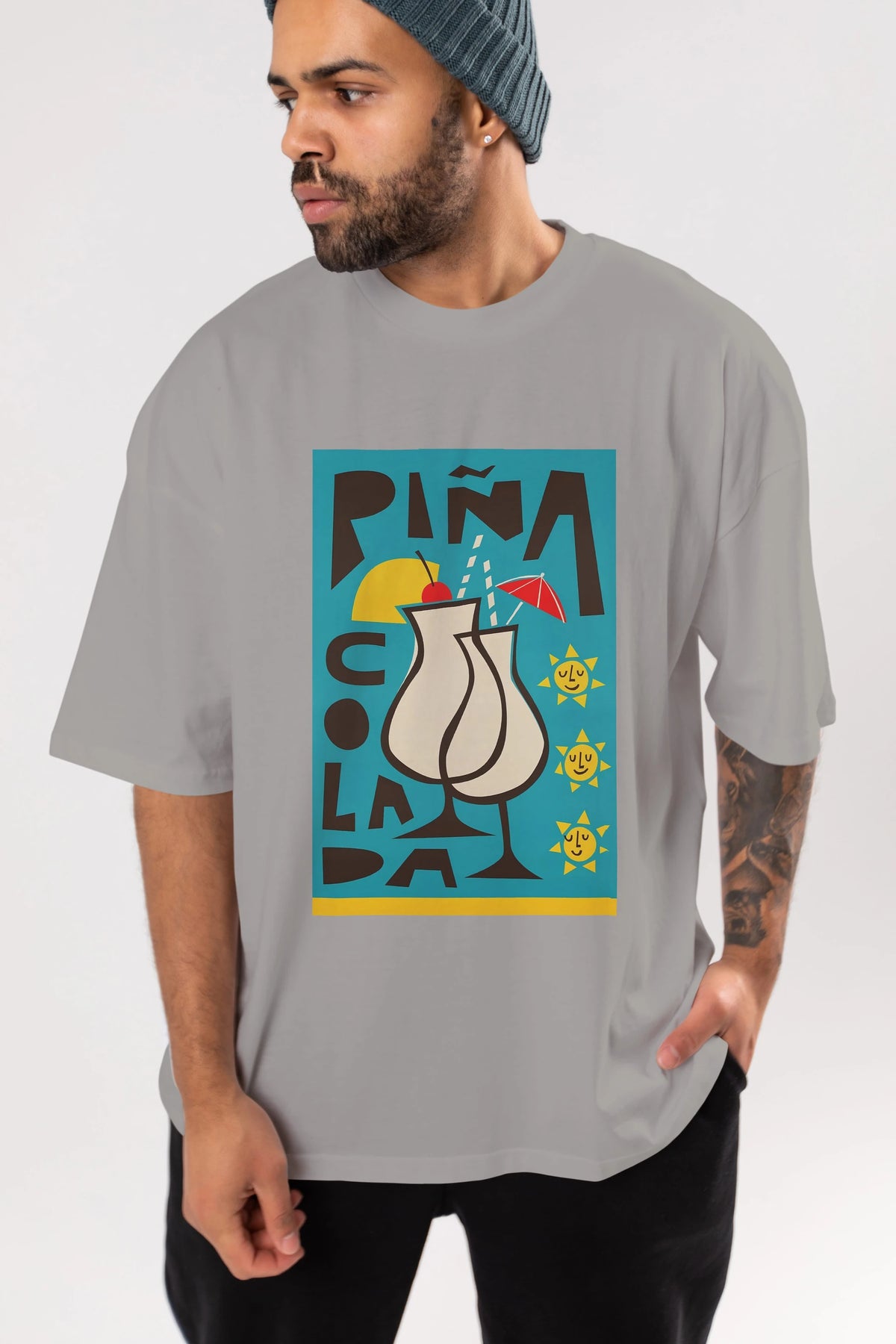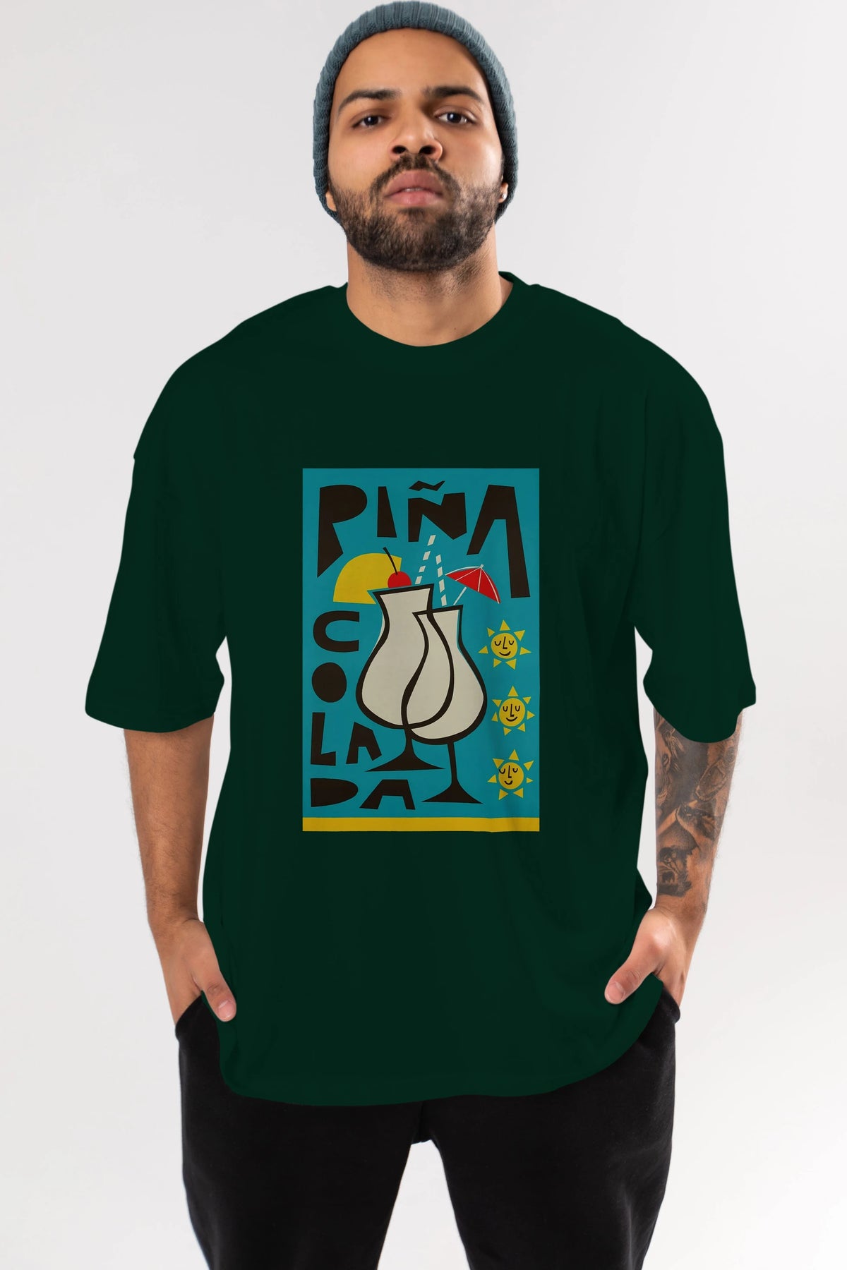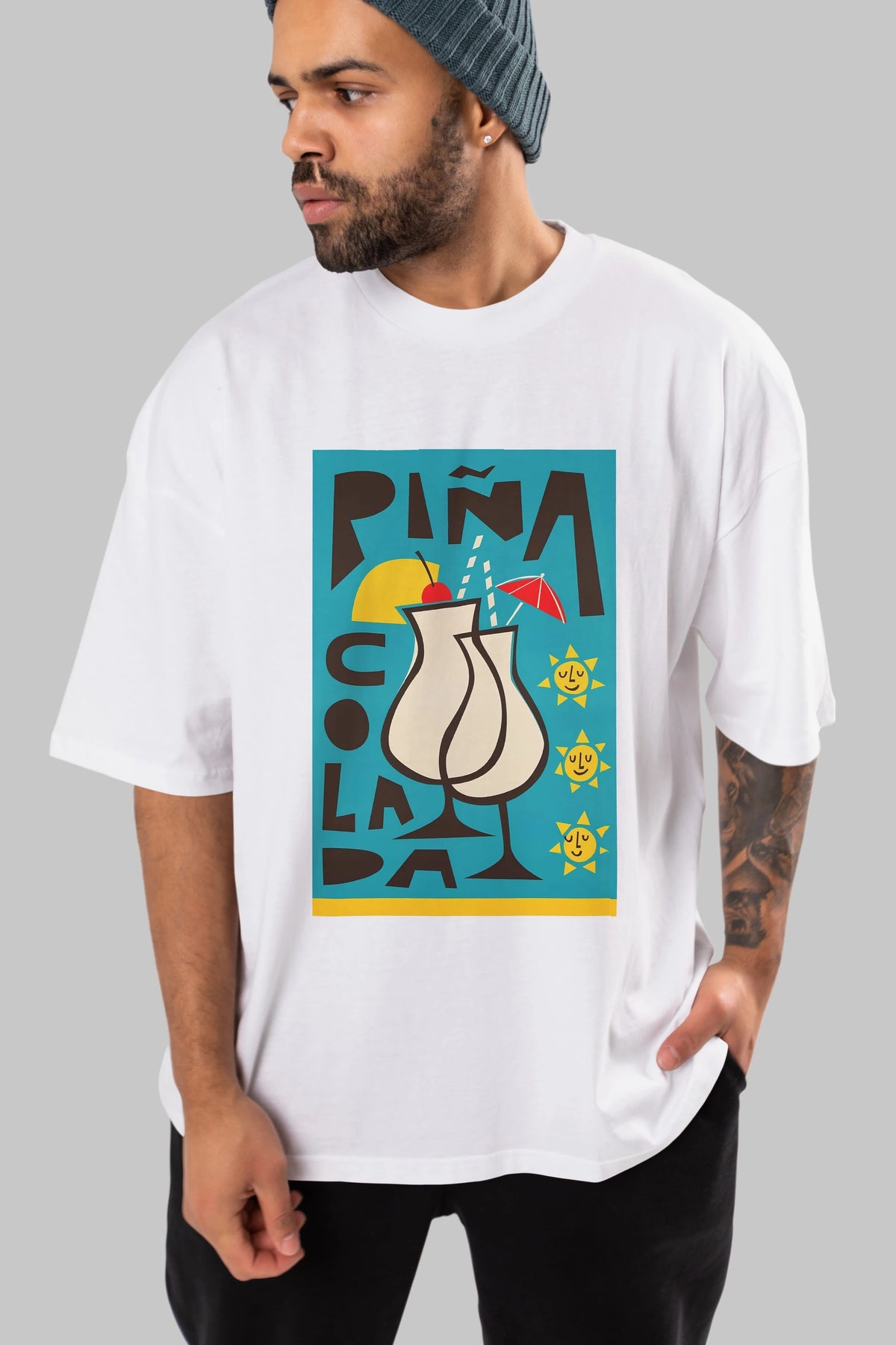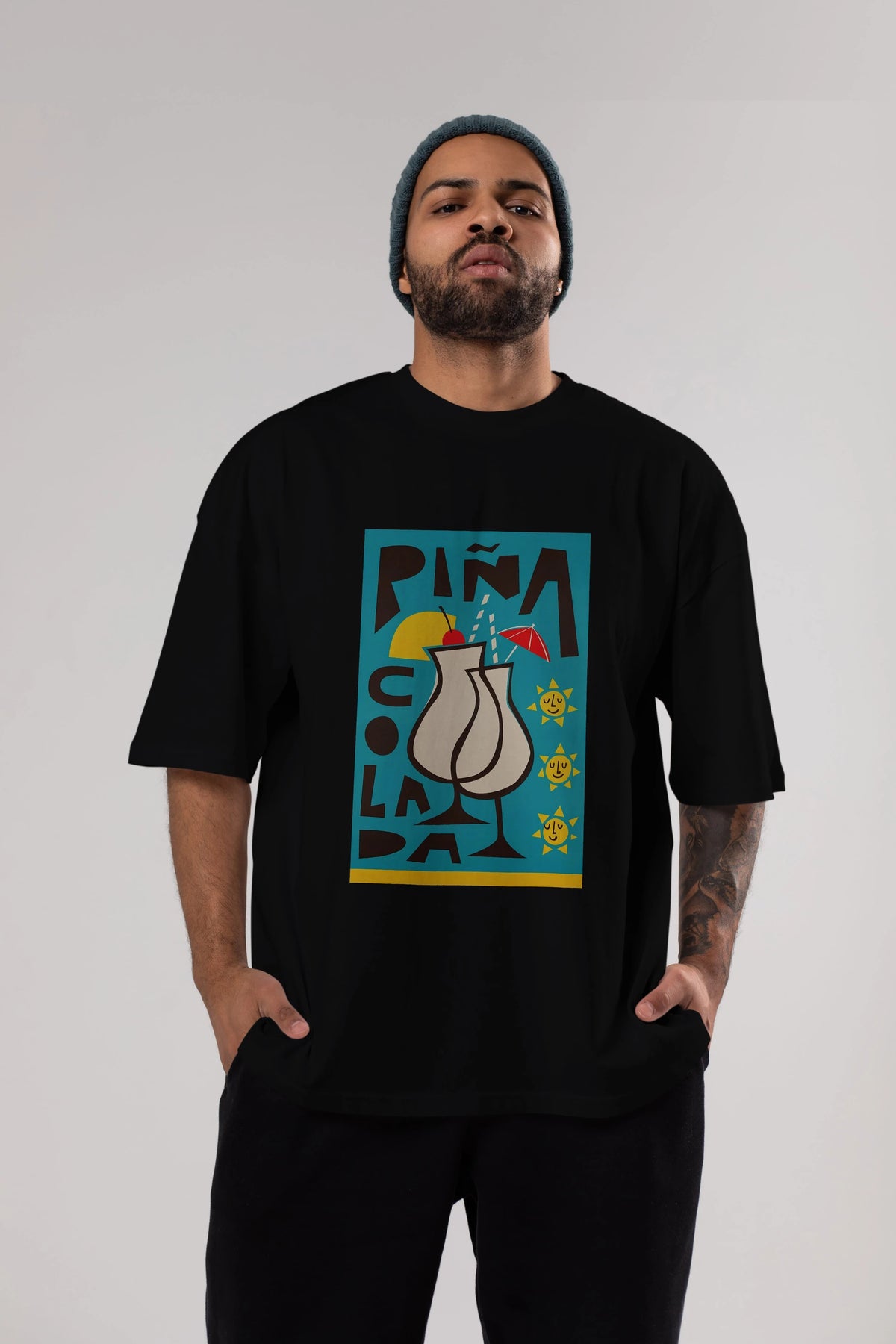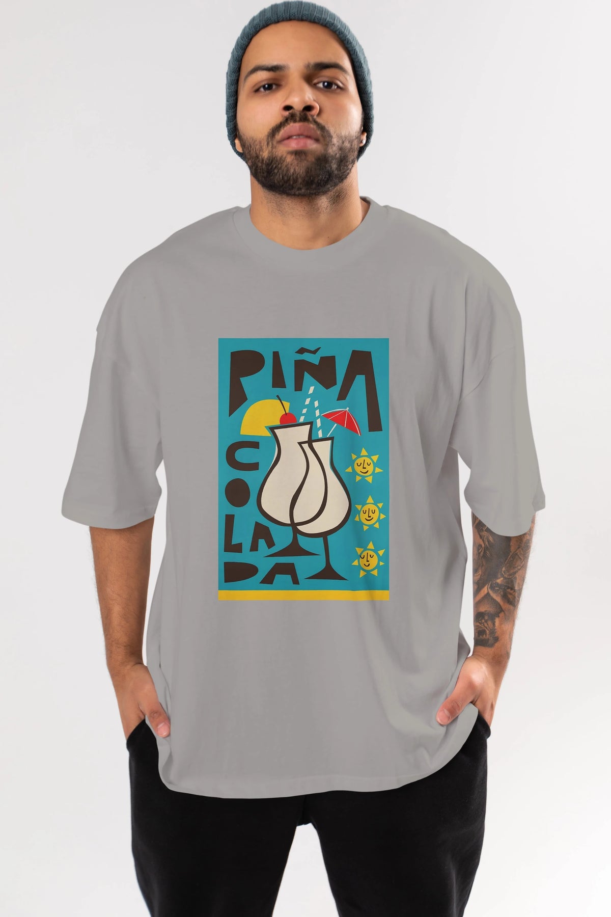 Pina Colada 4 Ön Baskılı Oversize t-shirt Erkek Kadın Unisex %100 Pamuk Bisiklet Yaka tişort