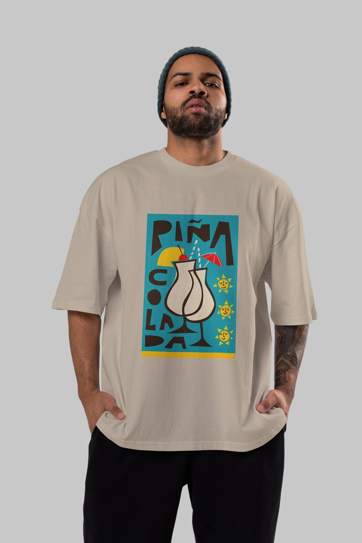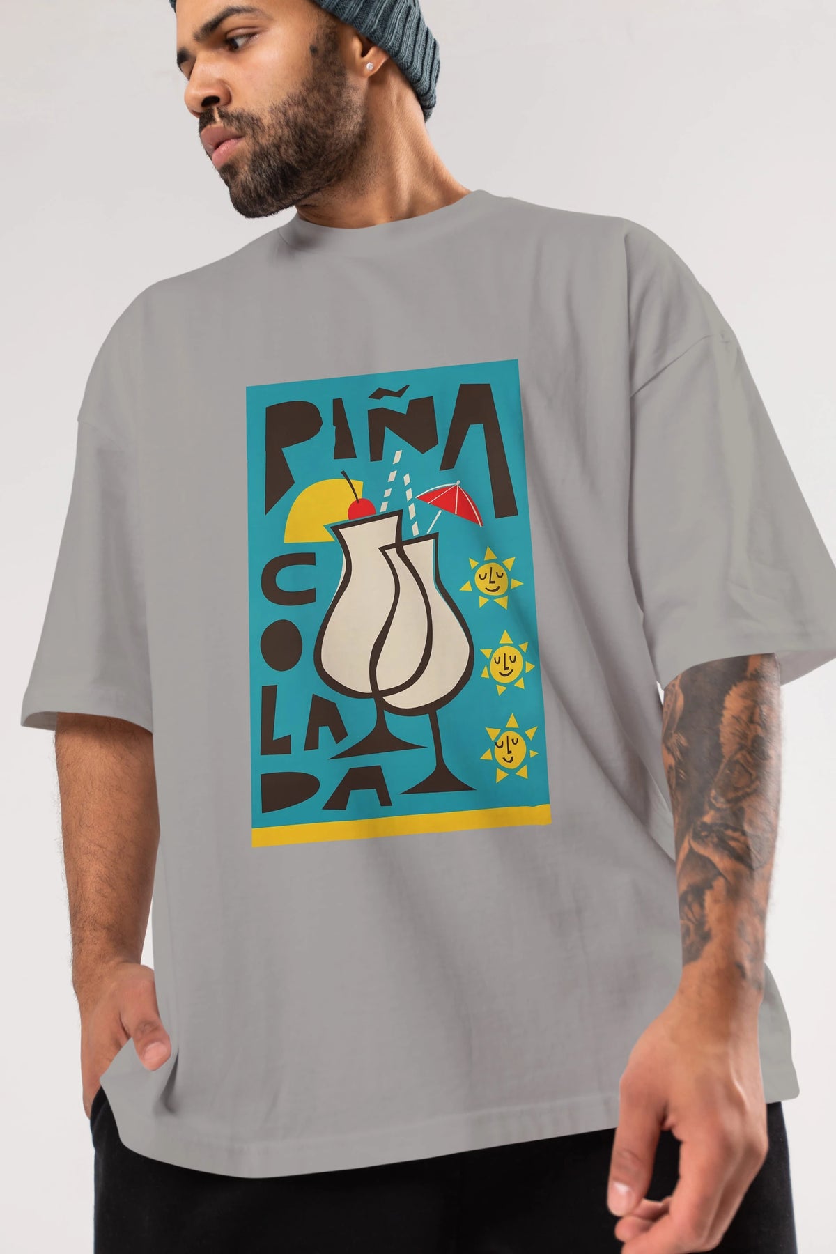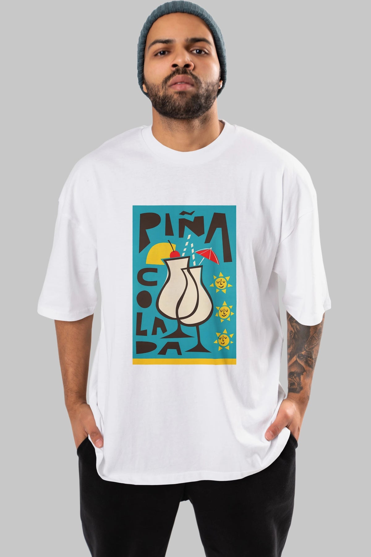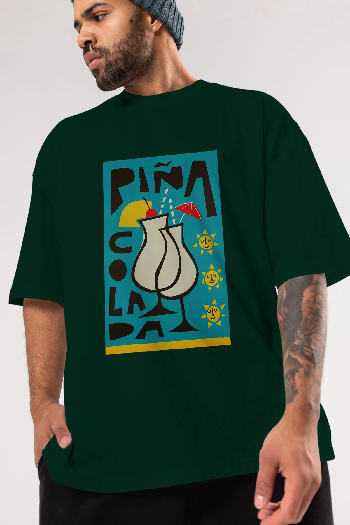 Pina Colada 4 Ön Baskılı Oversize t-shirt Erkek Kadın Unisex %100 Pamuk Bisiklet Yaka tişort