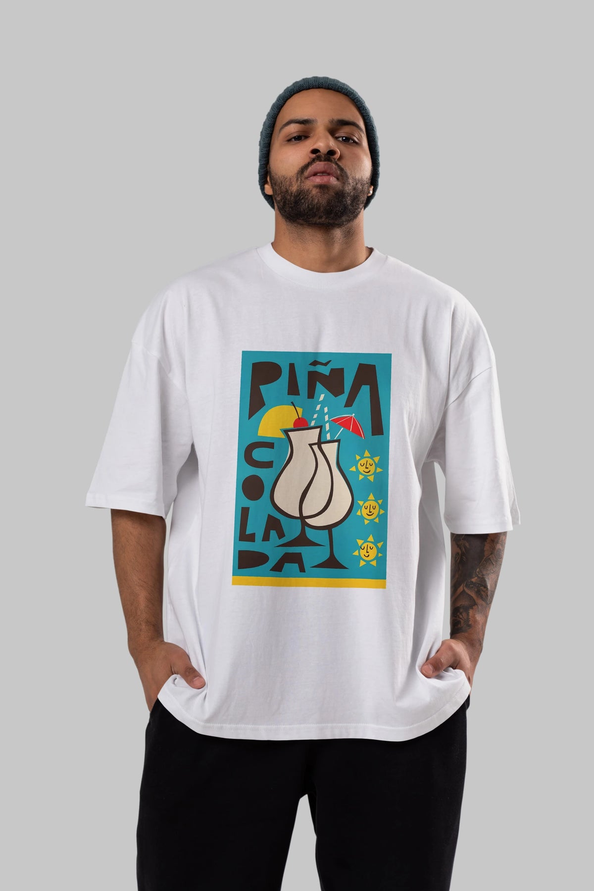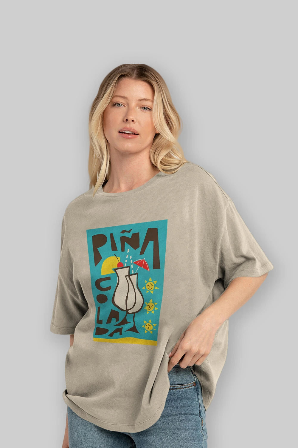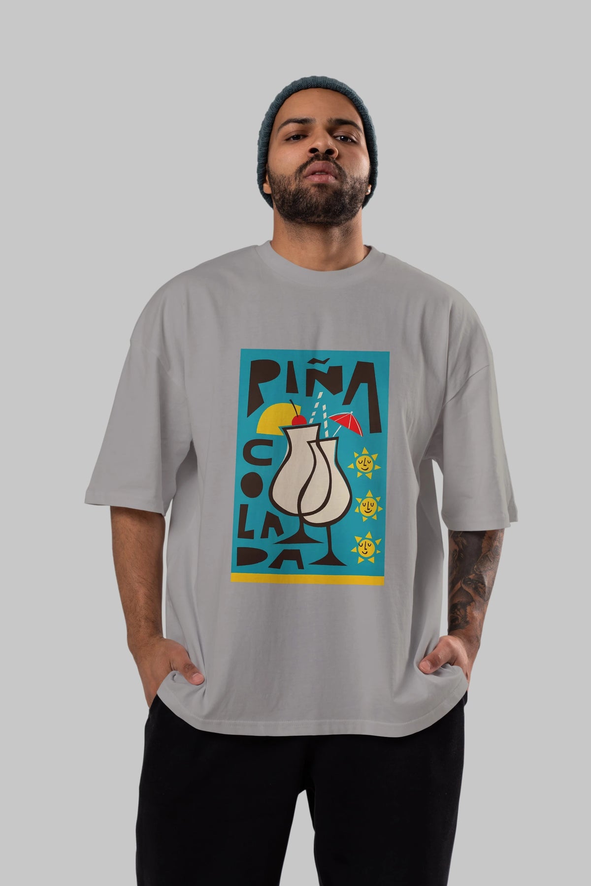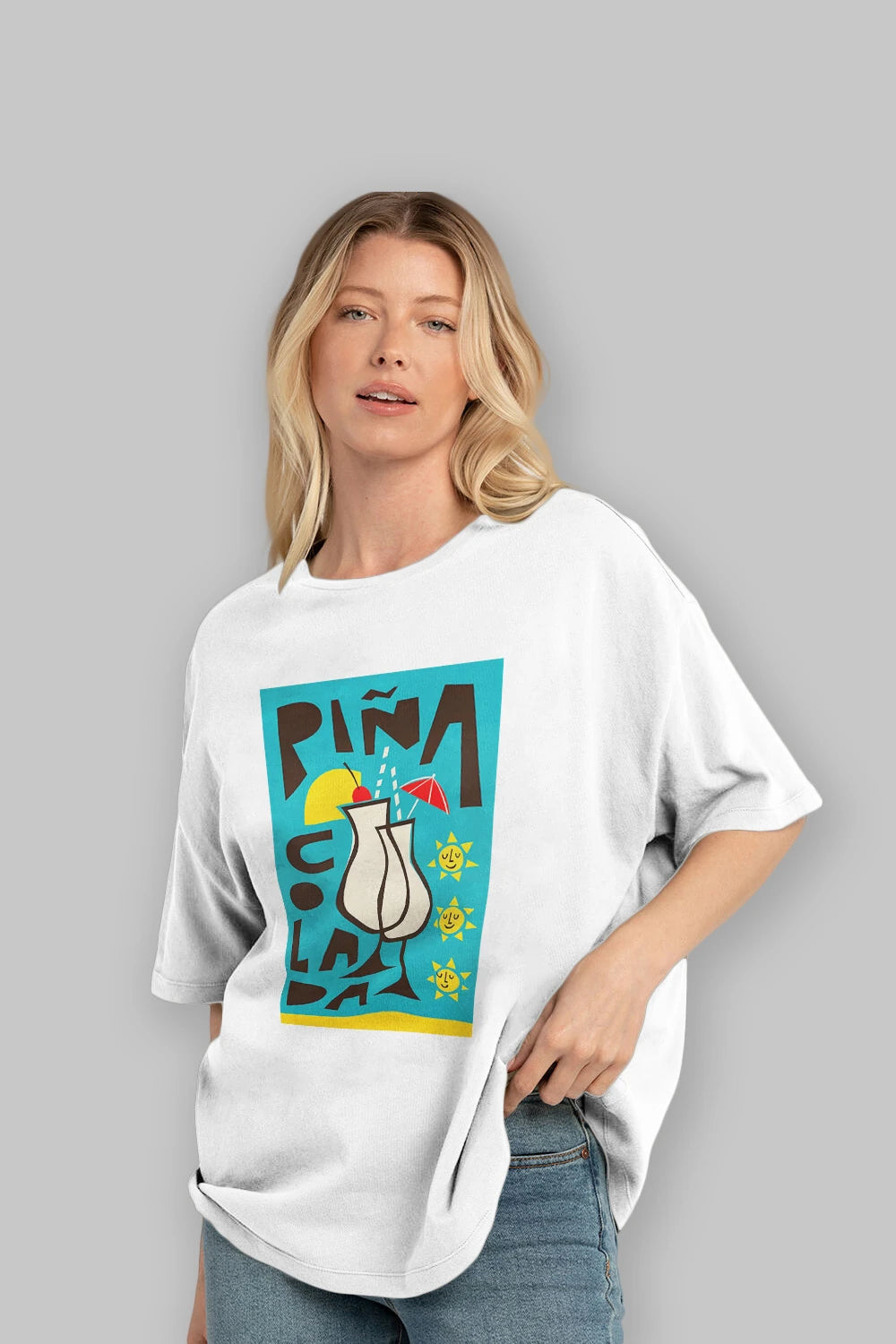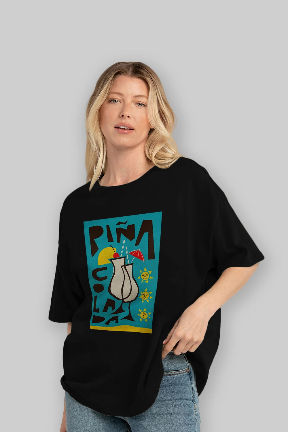Pina Colada 4 Ön Baskılı Oversize t-shirt Erkek Kadın Unisex %100 Pamuk Bisiklet Yaka tişort