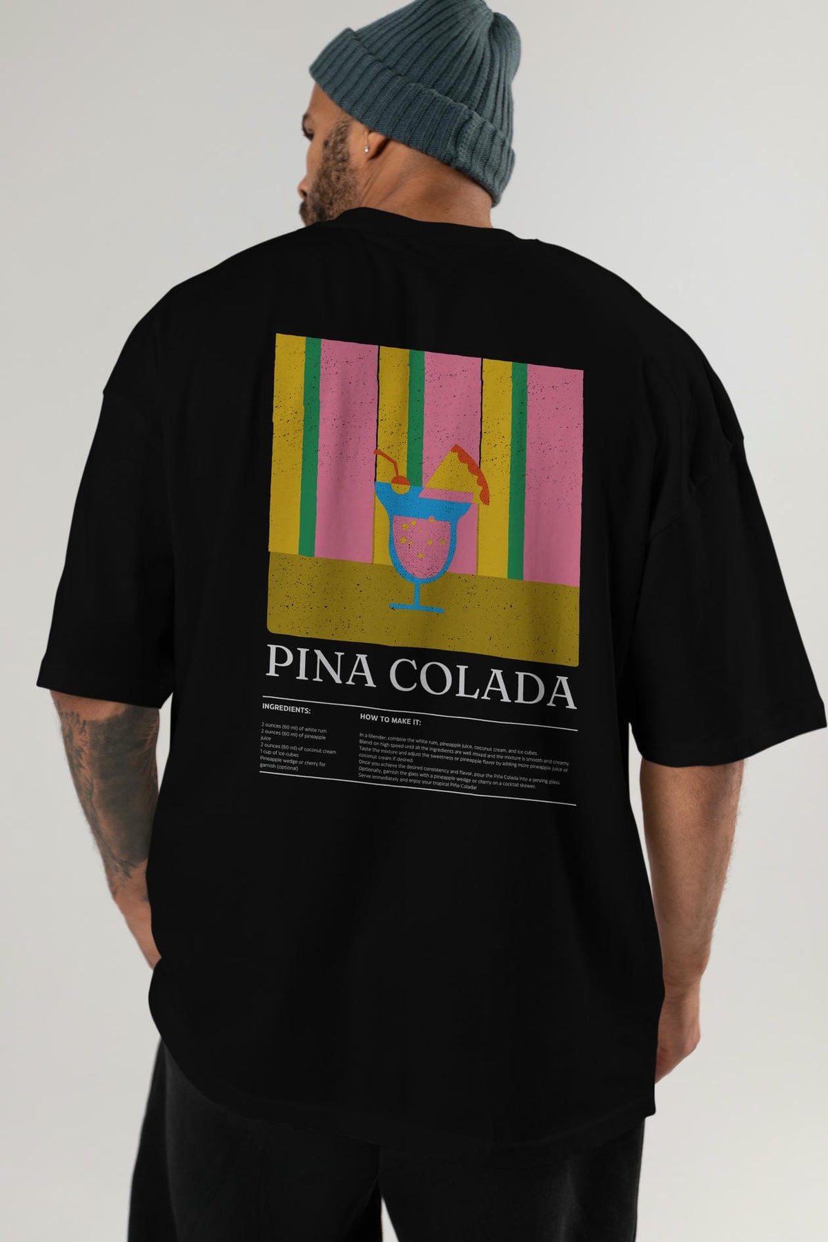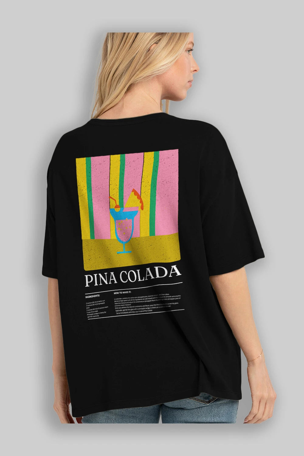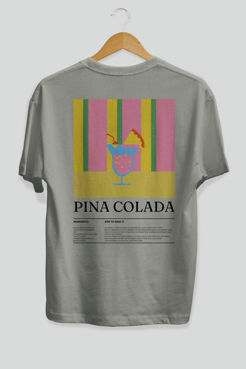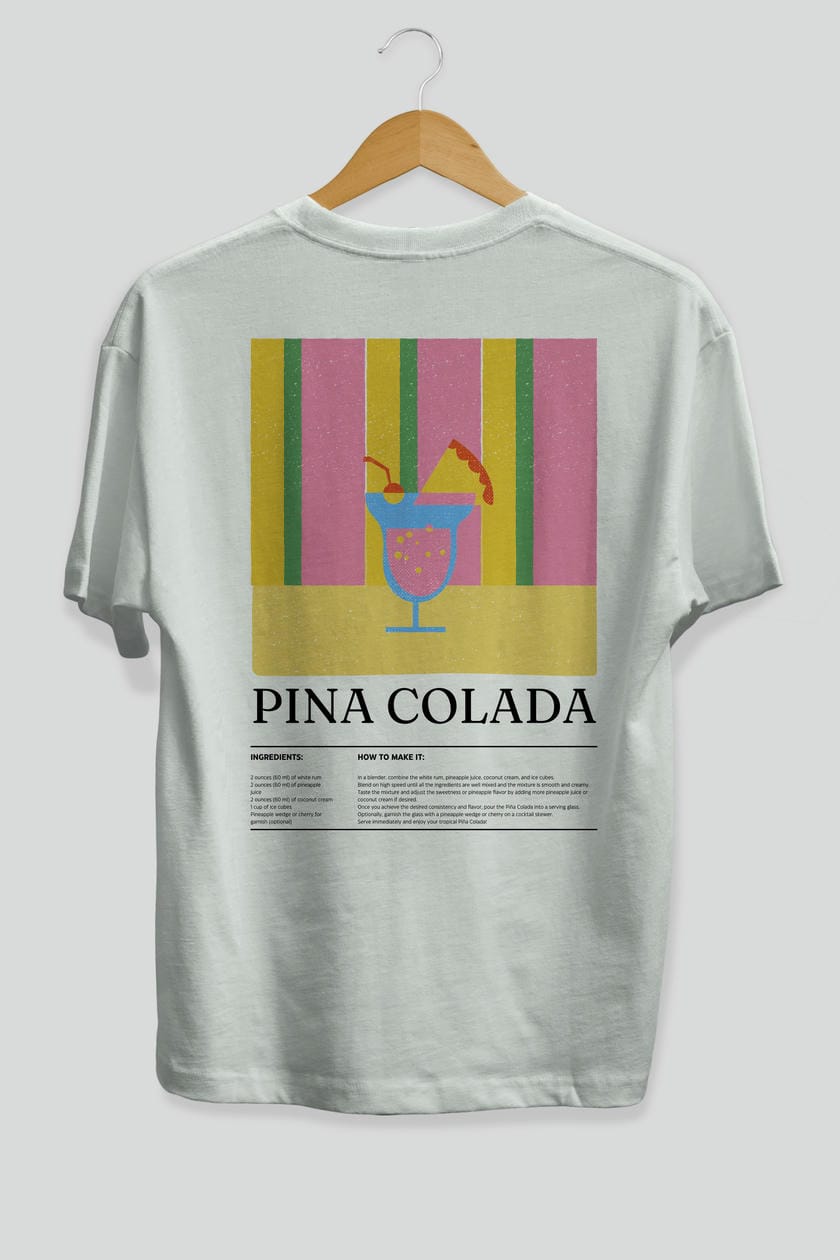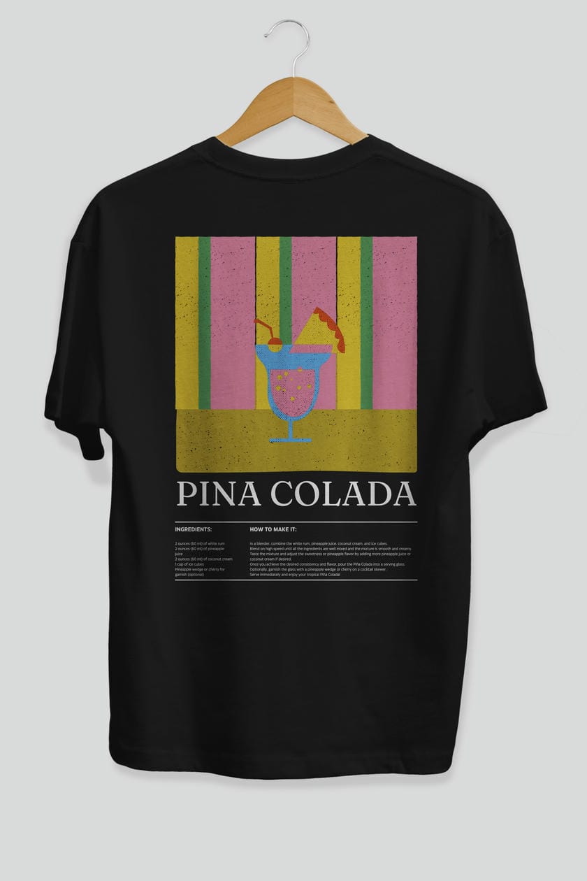 Pina Colada Kokteyl Serisi Arka Baskılı Oversize t-shirt Erkek Kadın %100 Pamuk Bisiklet Yaka tişort