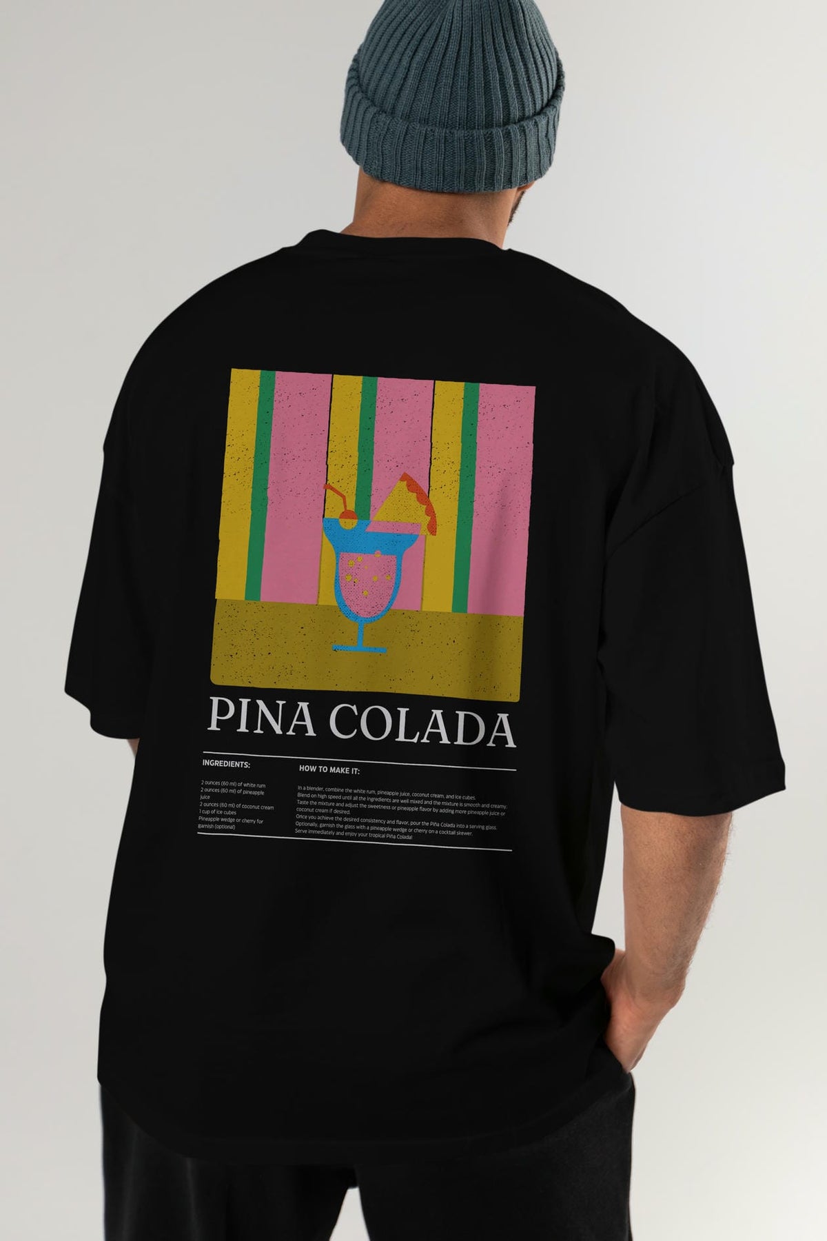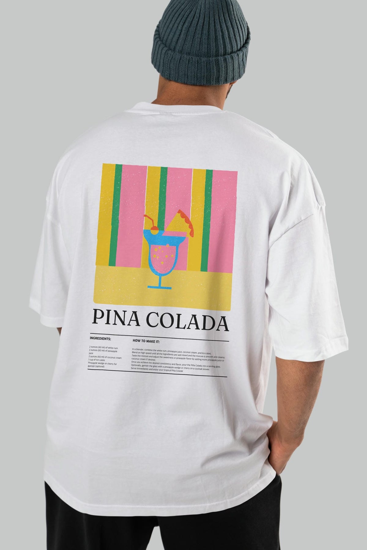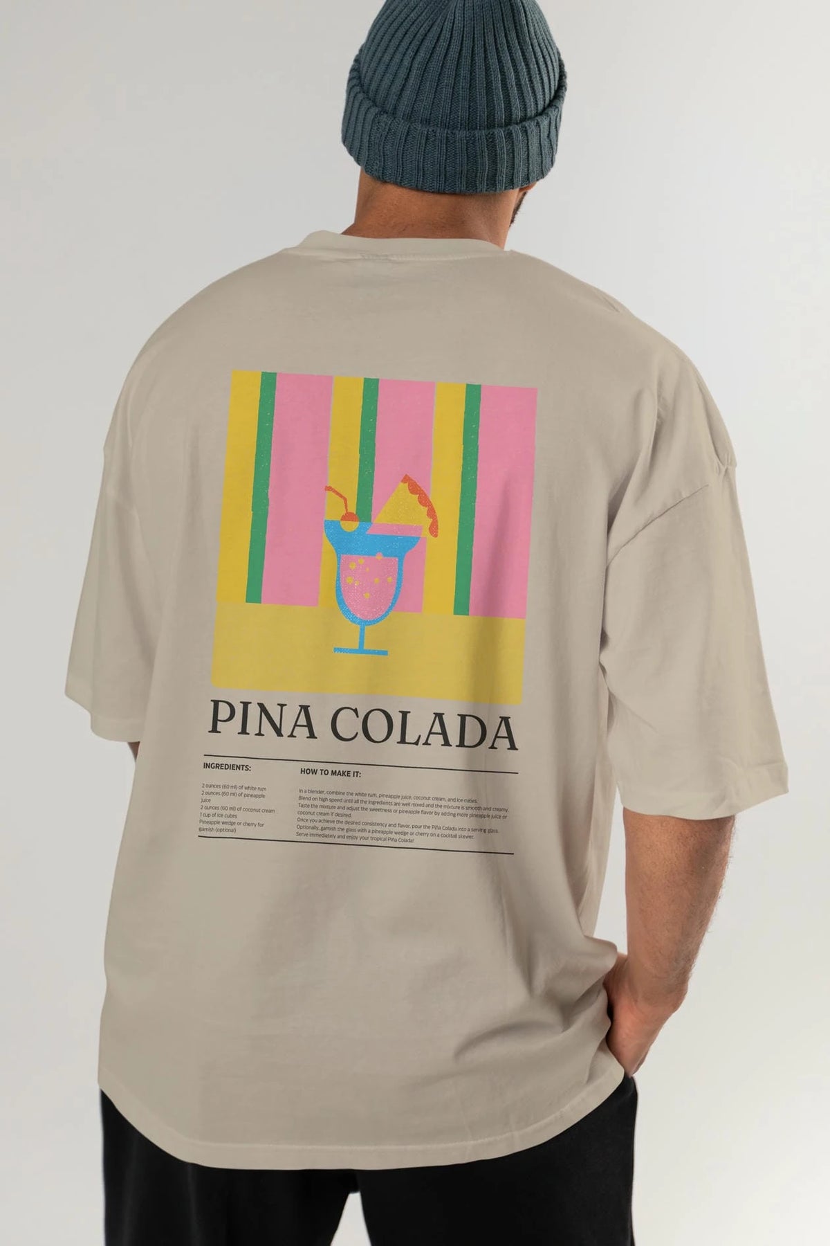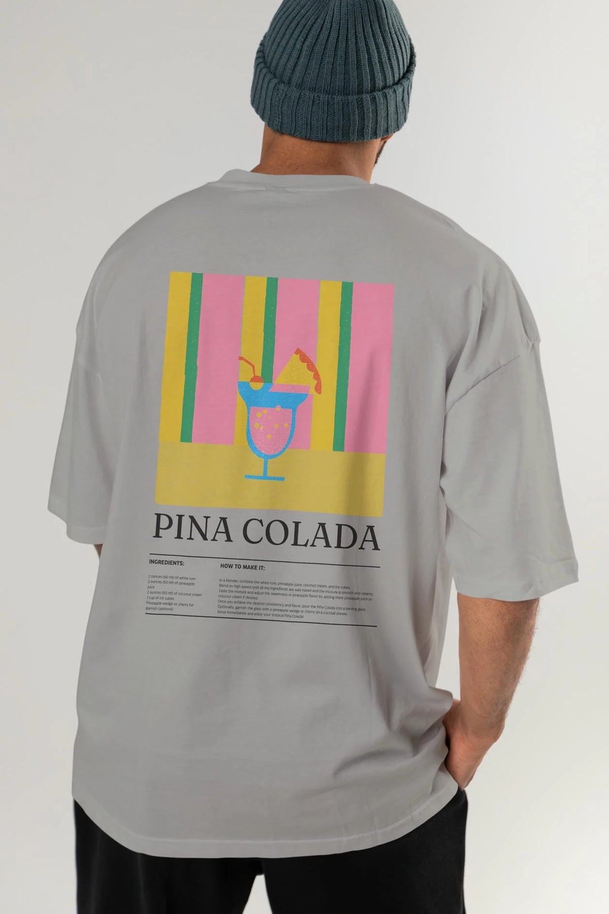 Pina Colada Kokteyl Serisi Arka Baskılı Oversize t-shirt Erkek Kadın %100 Pamuk Bisiklet Yaka tişort