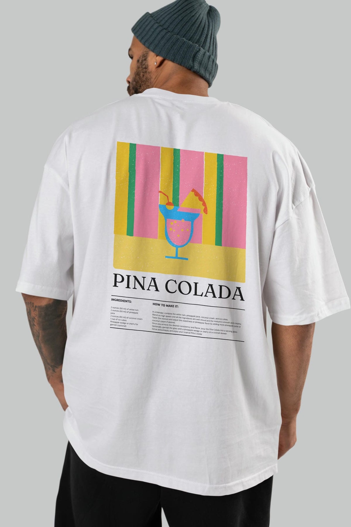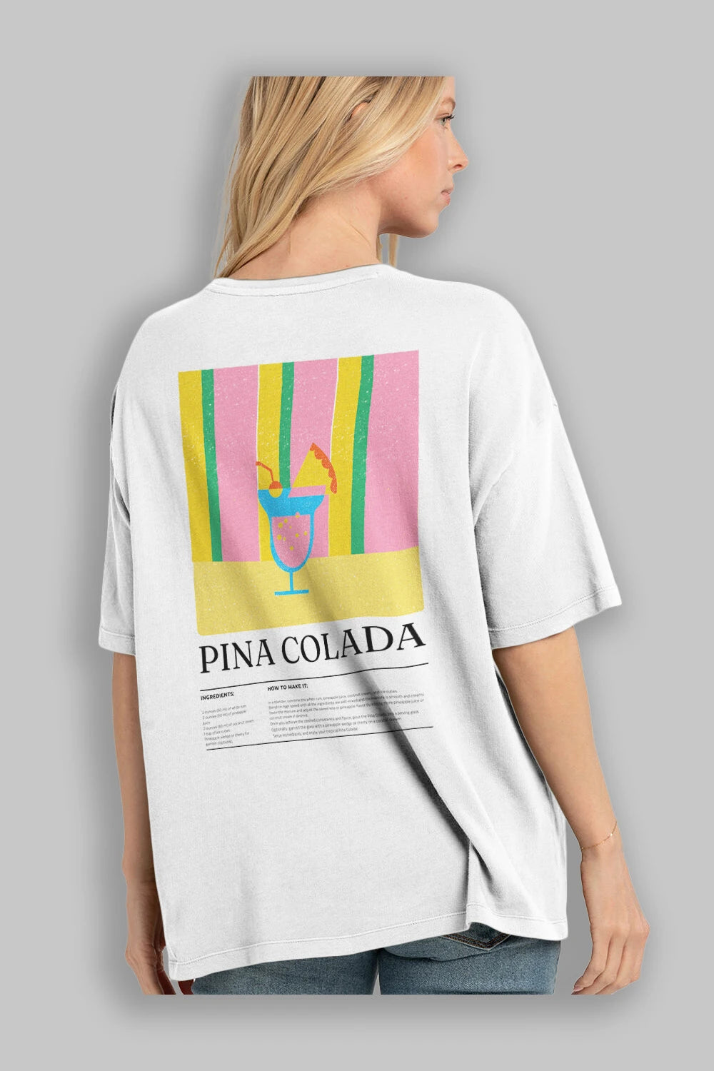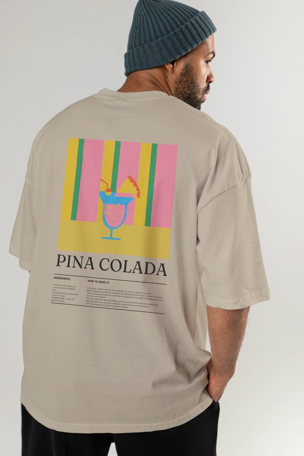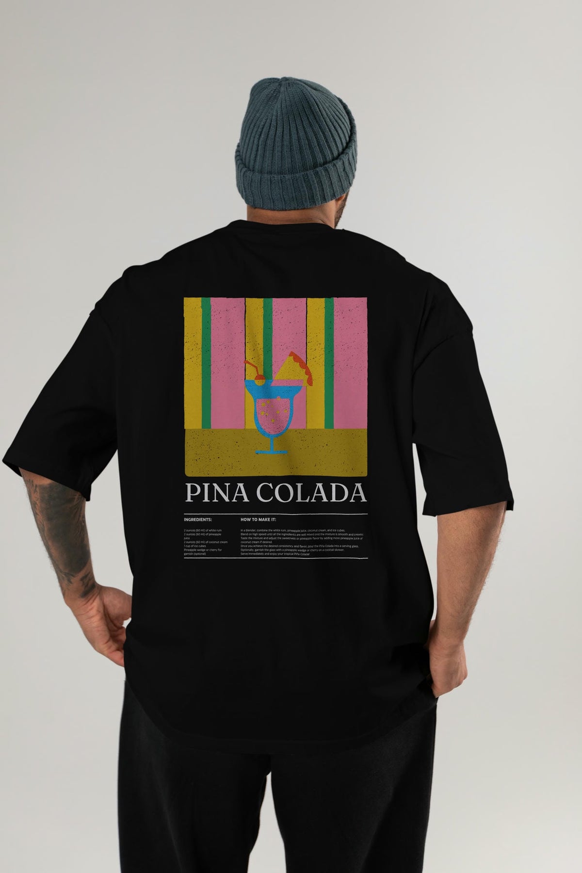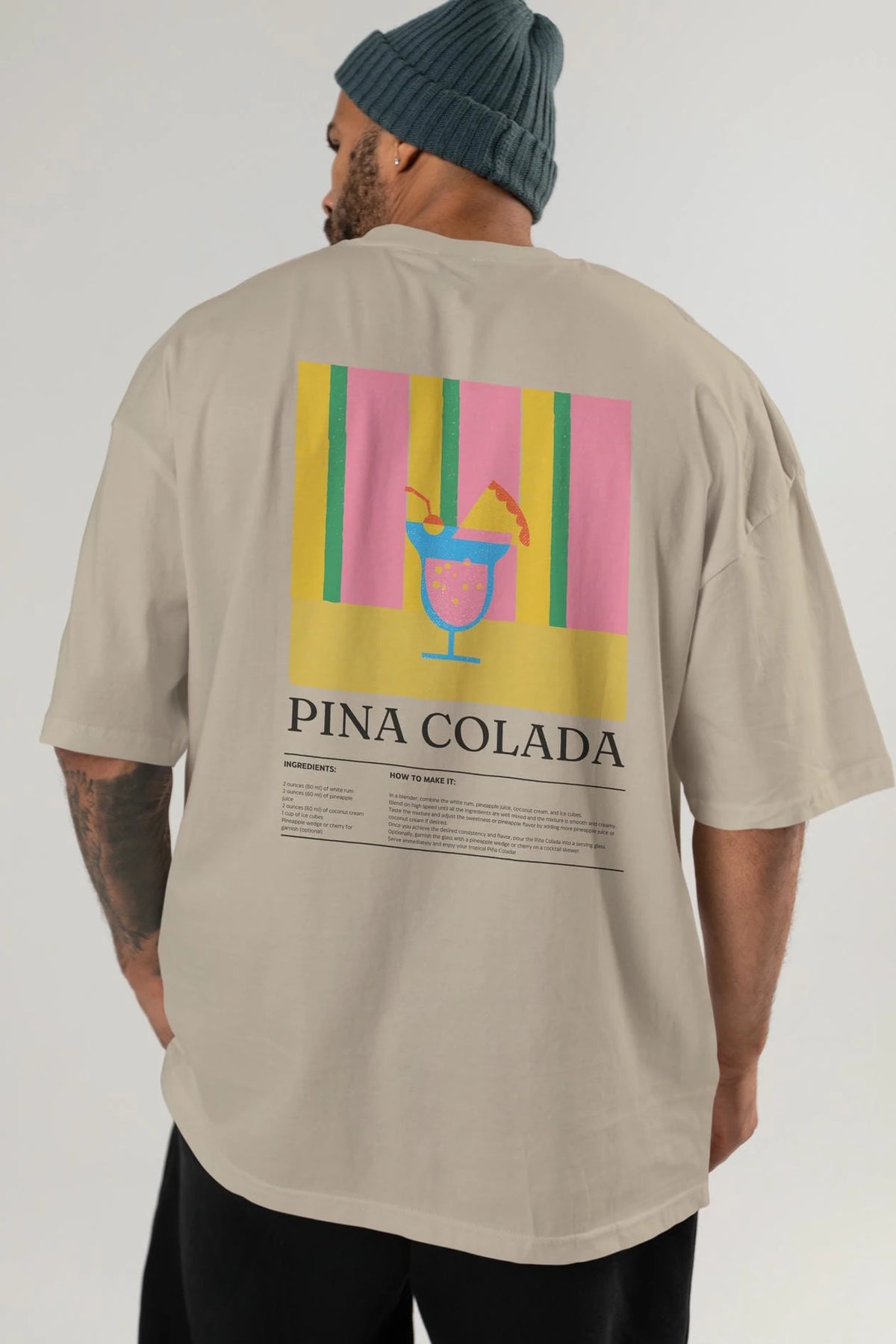 Pina Colada Kokteyl Serisi Arka Baskılı Oversize t-shirt Erkek Kadın %100 Pamuk Bisiklet Yaka tişort