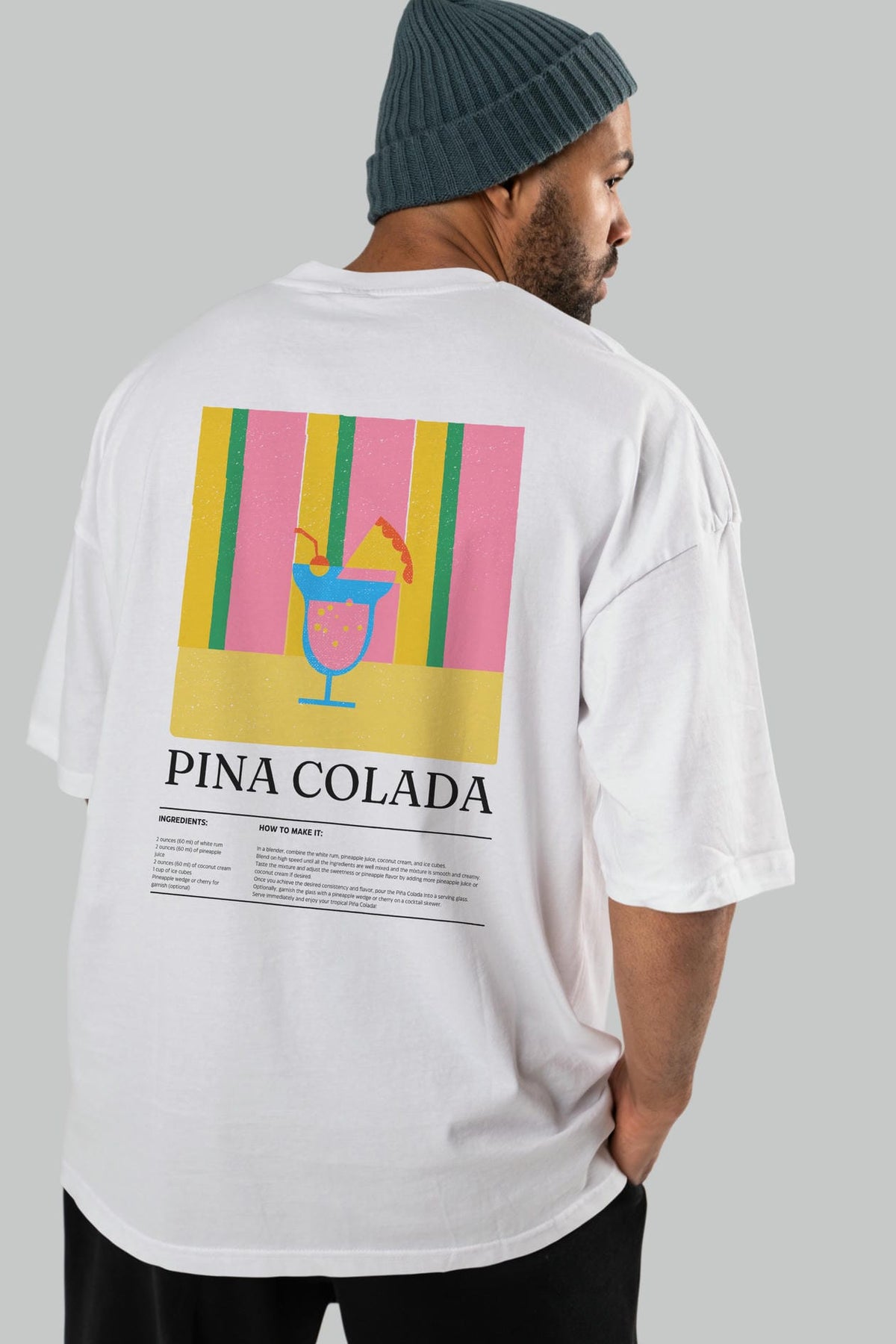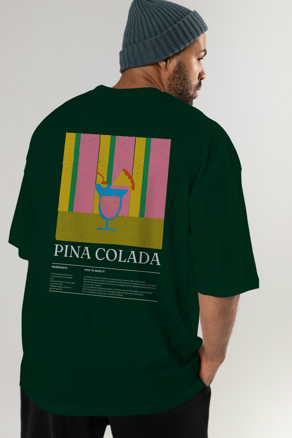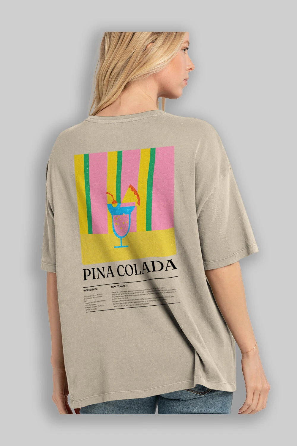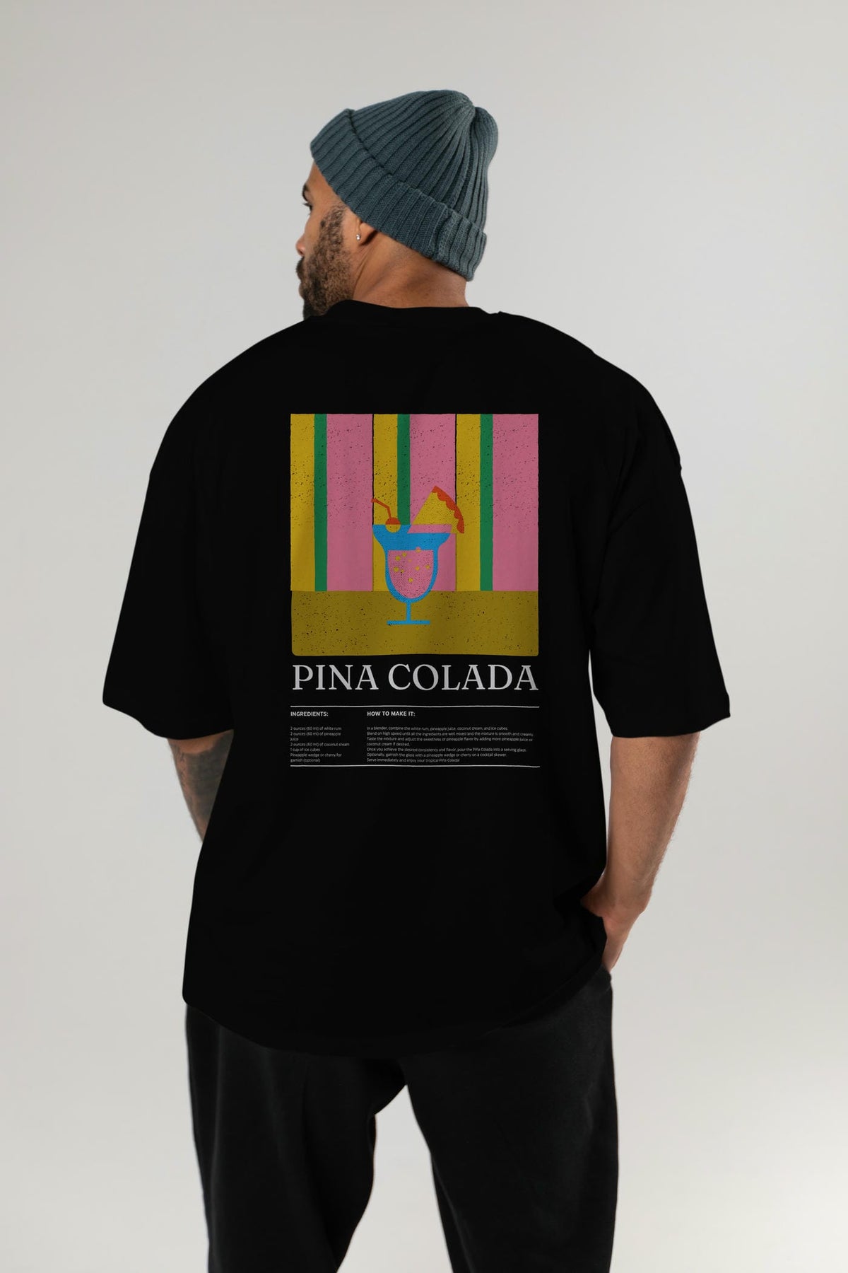 Pina Colada Kokteyl Serisi Arka Baskılı Oversize t-shirt Erkek Kadın %100 Pamuk Bisiklet Yaka tişort