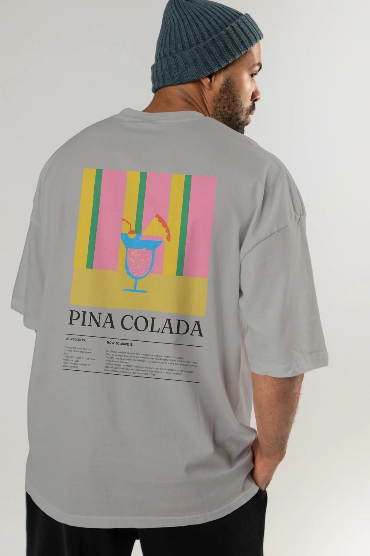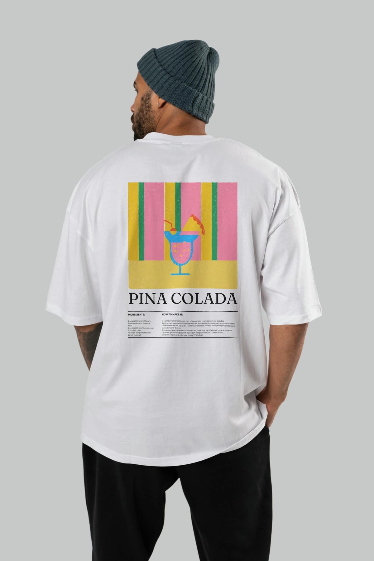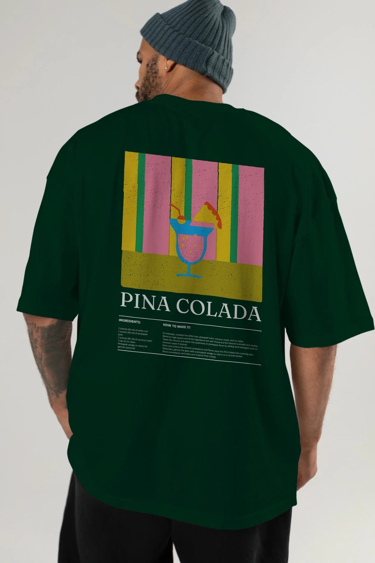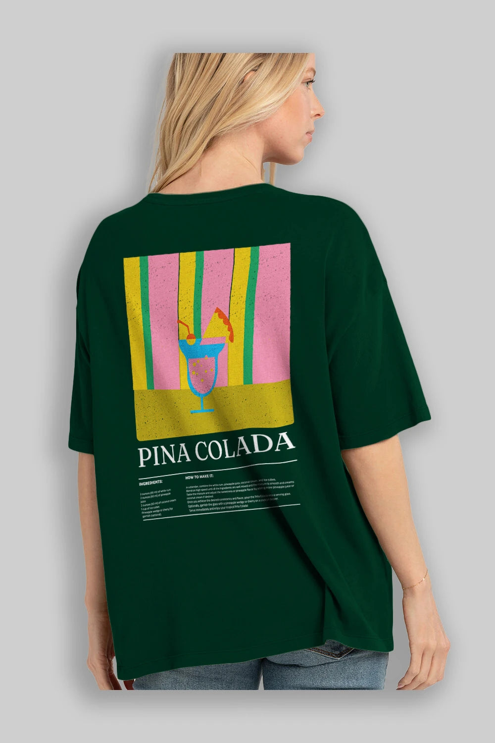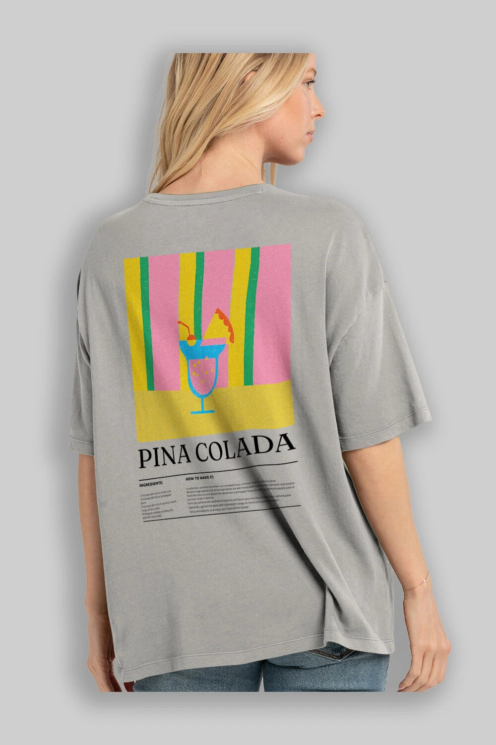 Pina Colada Kokteyl Serisi Arka Baskılı Oversize t-shirt Erkek Kadın %100 Pamuk Bisiklet Yaka tişort