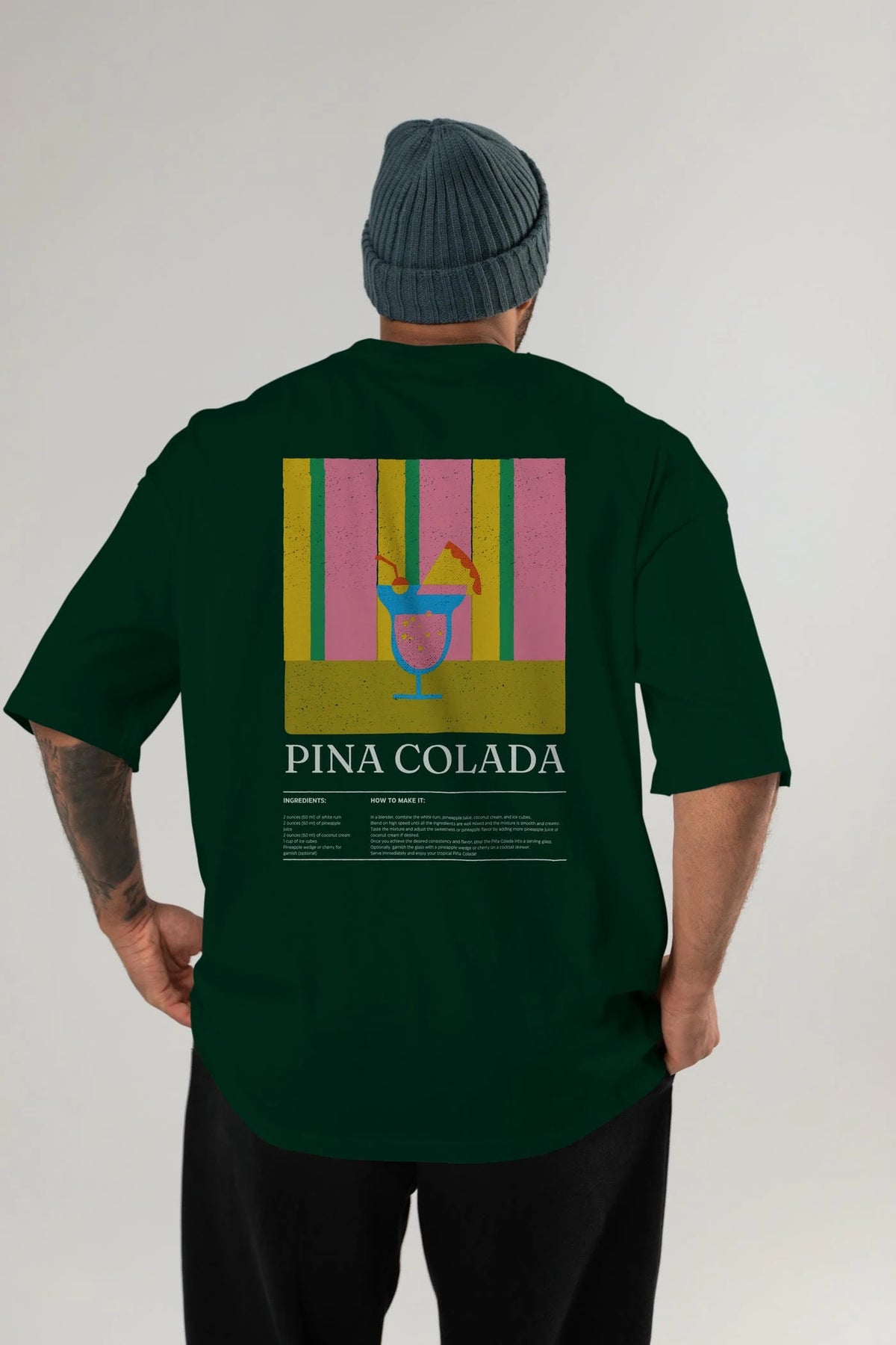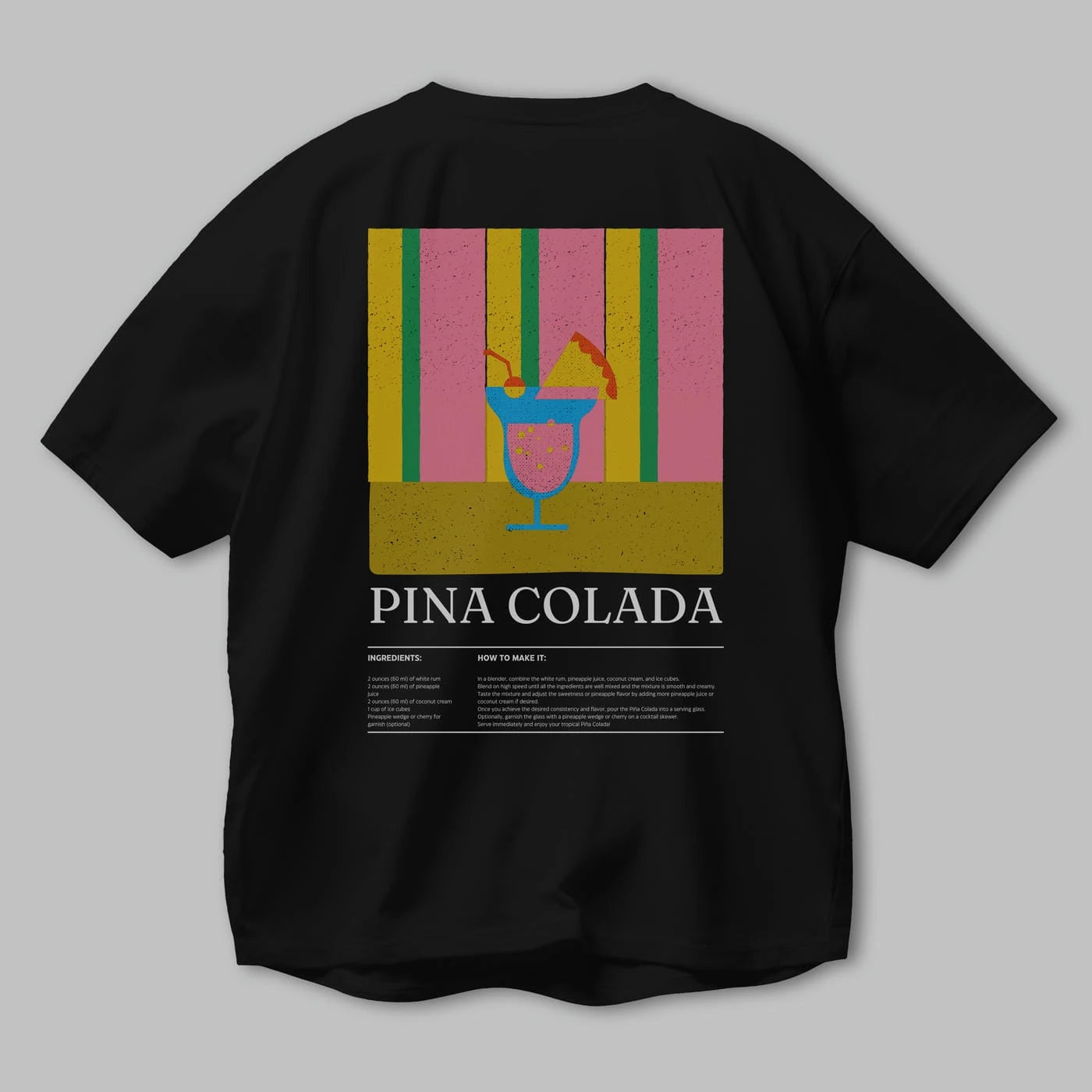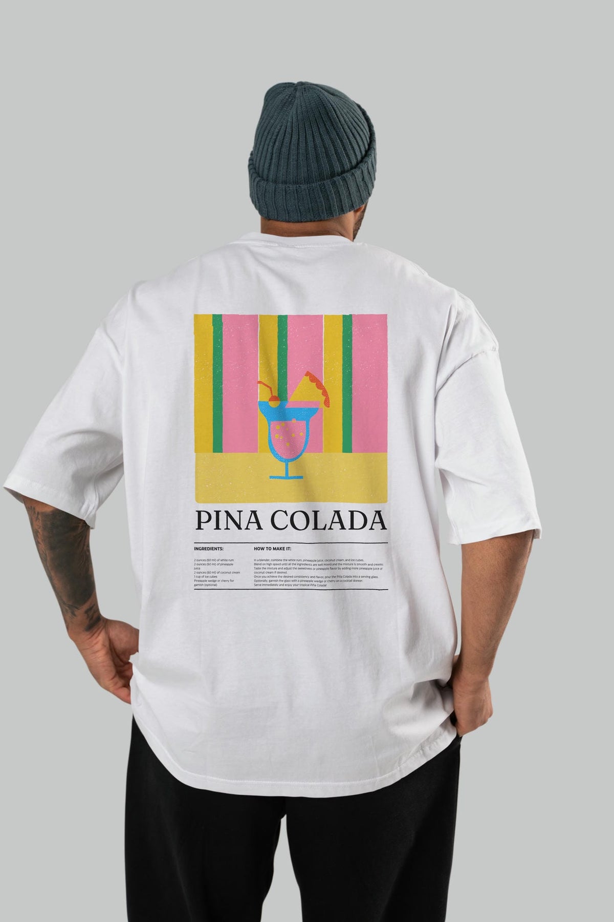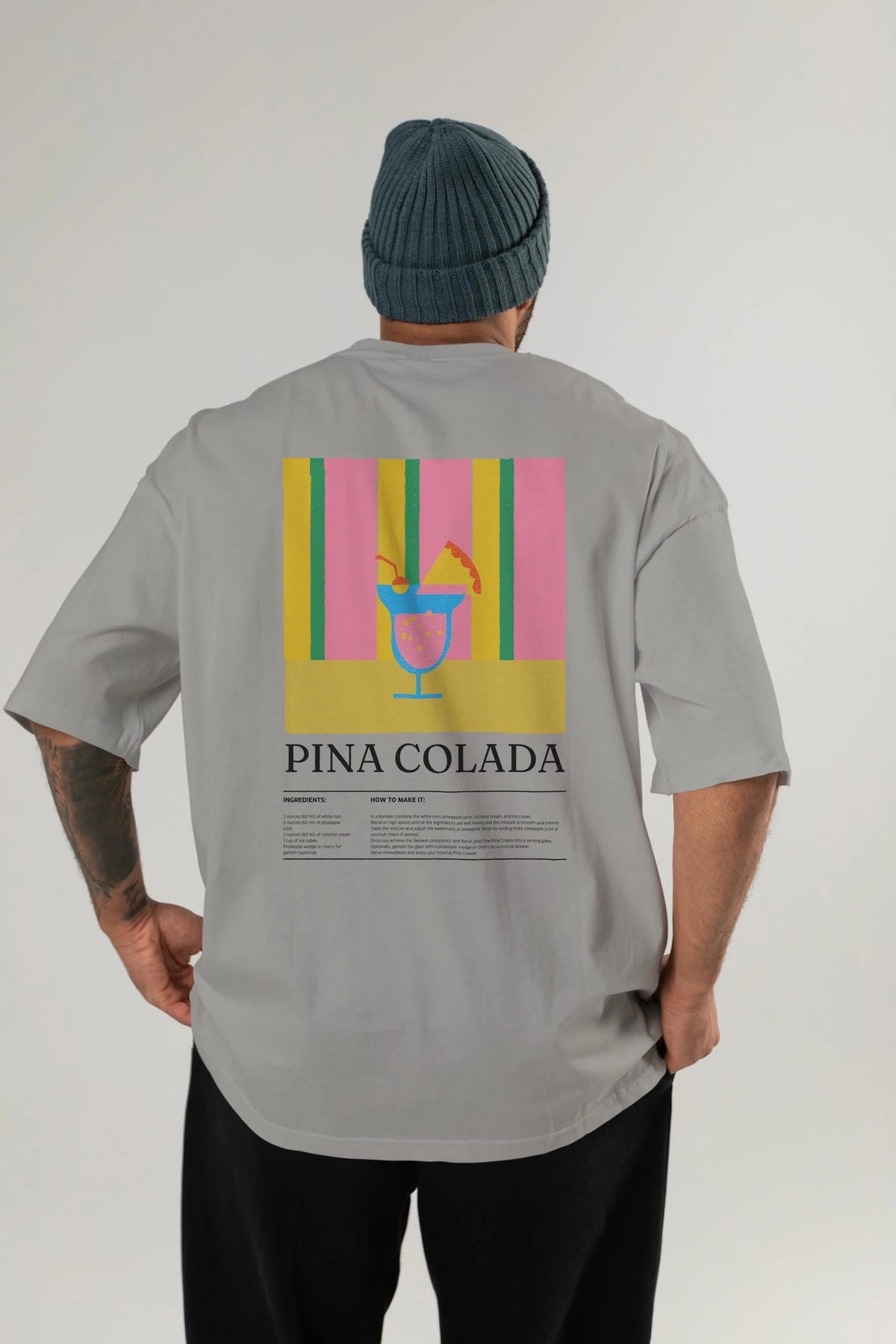 Pina Colada Kokteyl Serisi Arka Baskılı Oversize t-shirt Erkek Kadın %100 Pamuk Bisiklet Yaka tişort