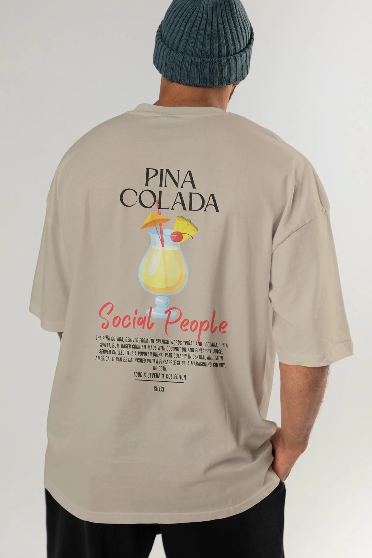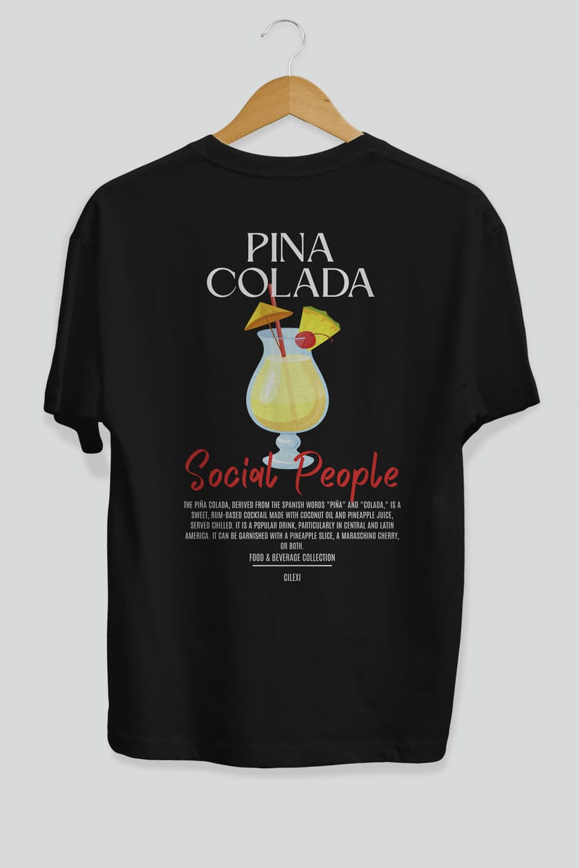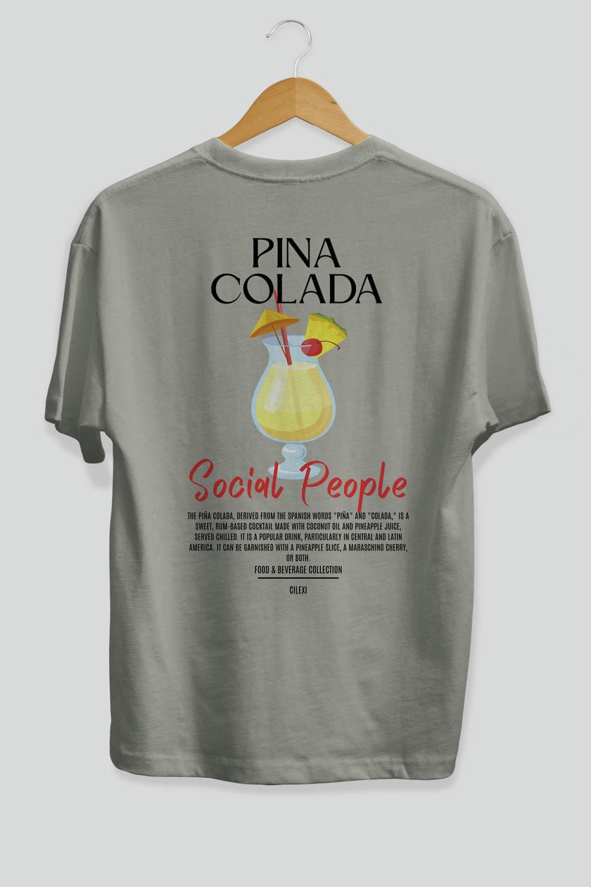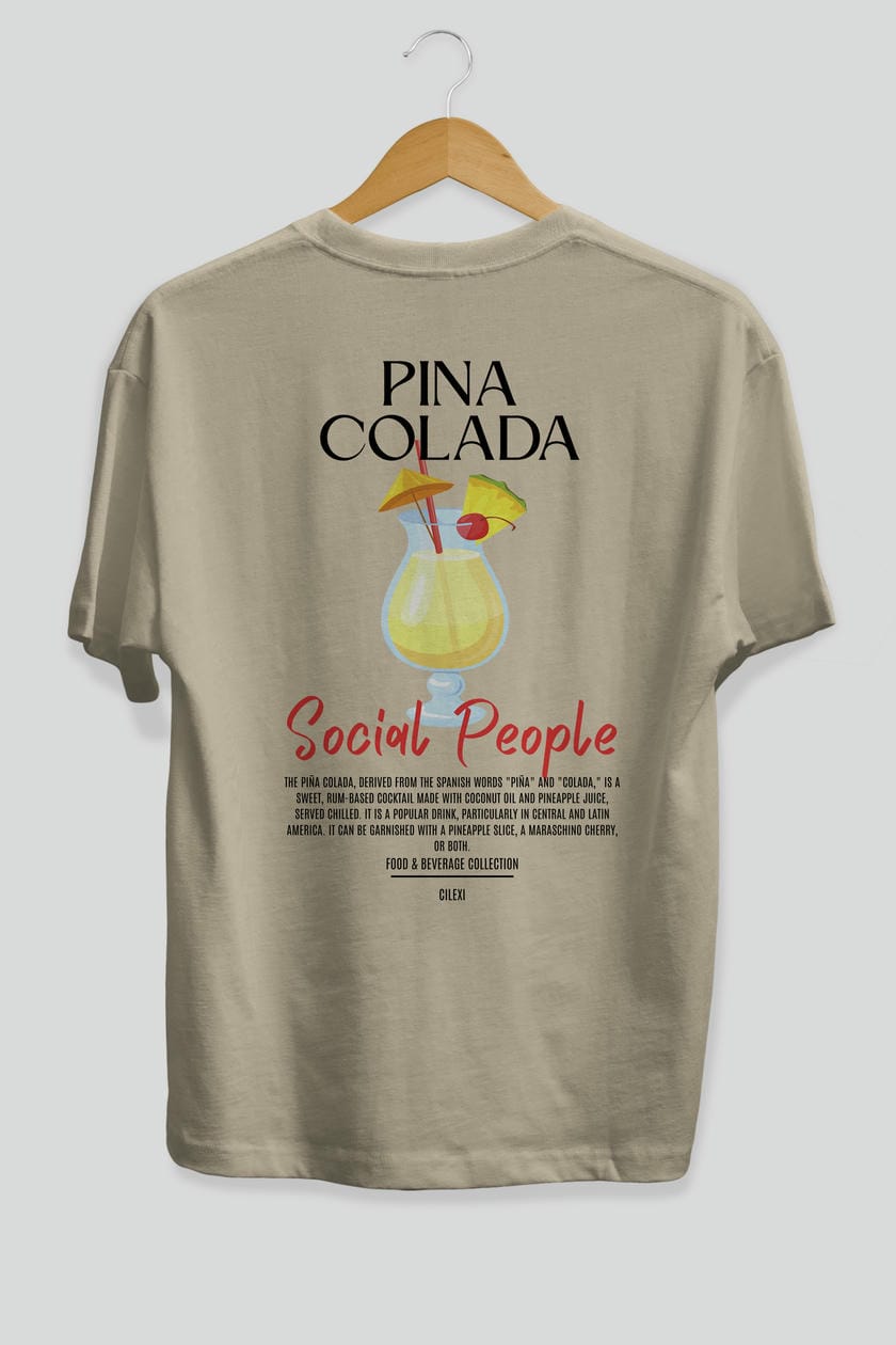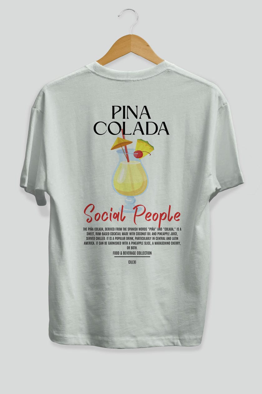 Pına Colada Kokteyl Serisi Baskılı Oversize t-shirt Erkek Kadın Unisex %100 Pamuk Bisiklet Yaka tişort