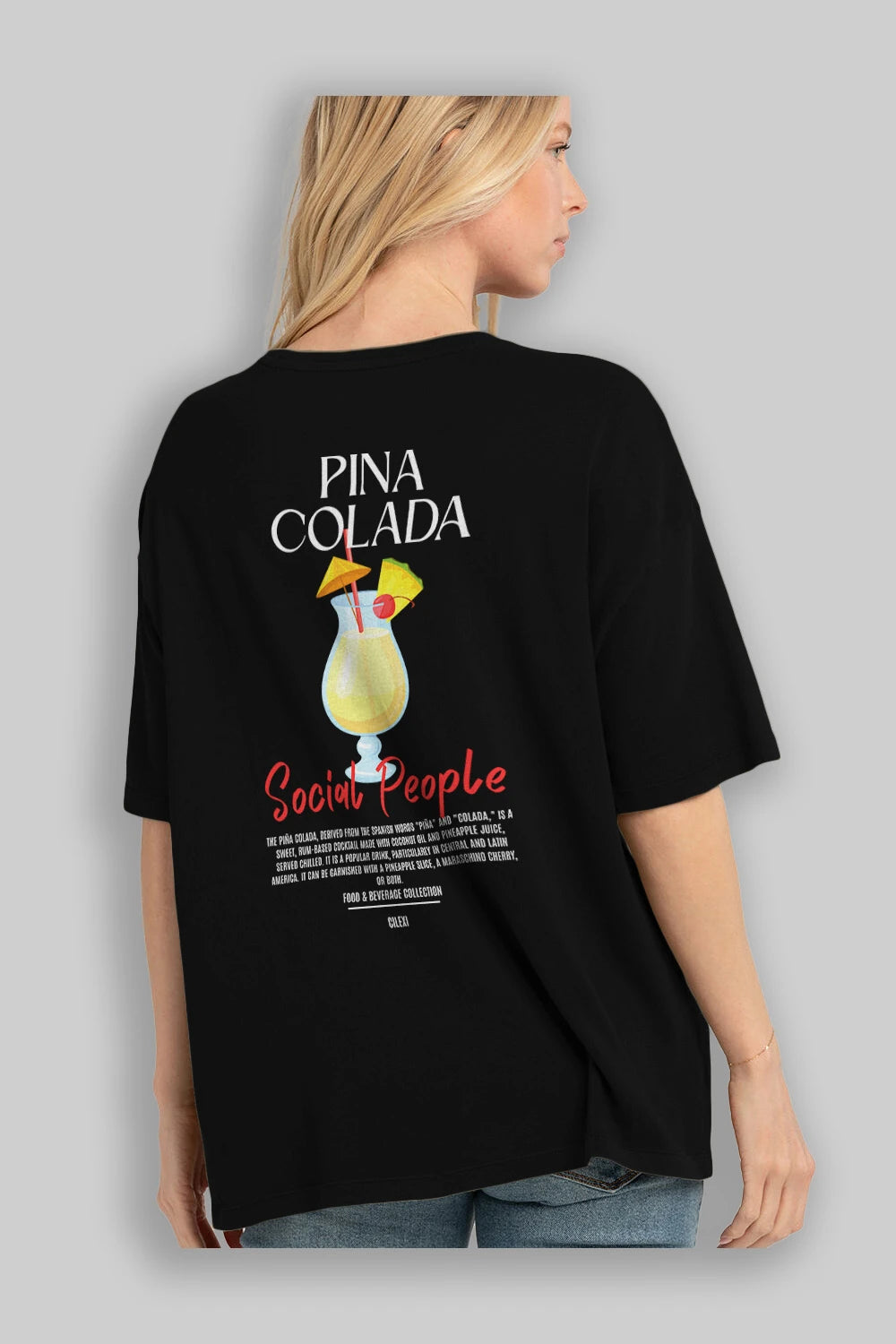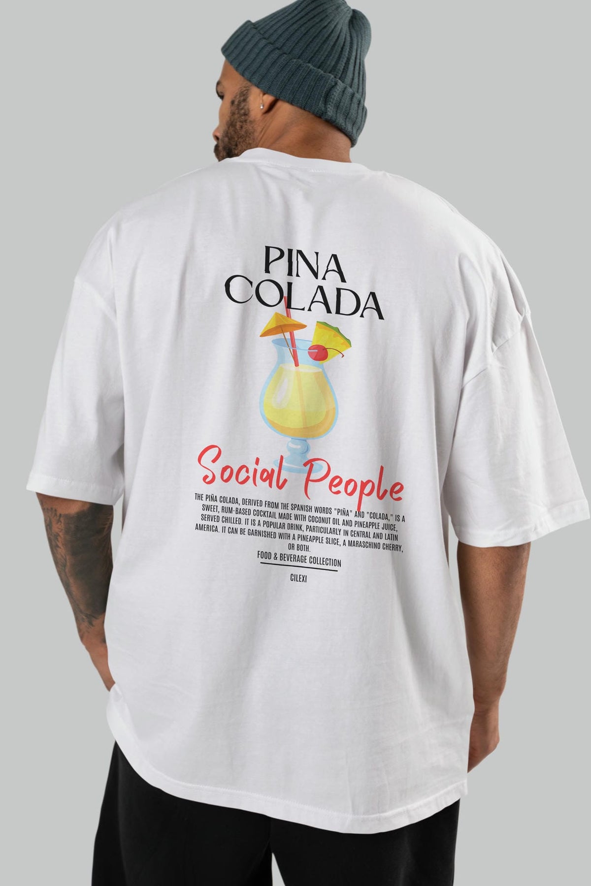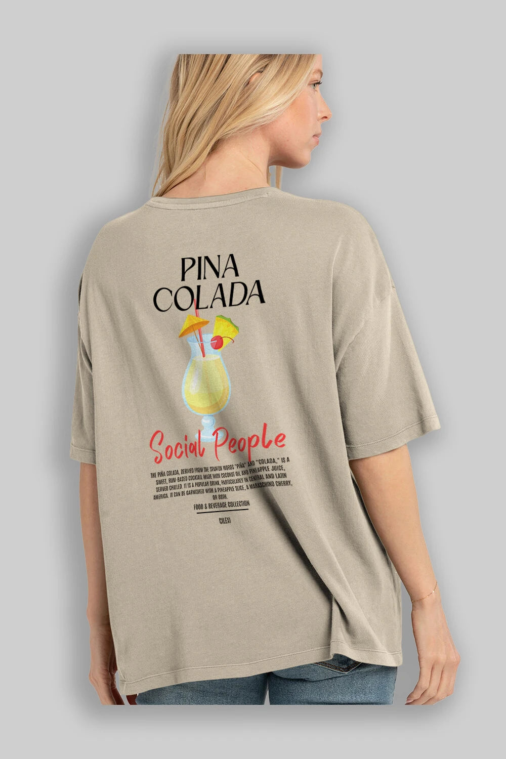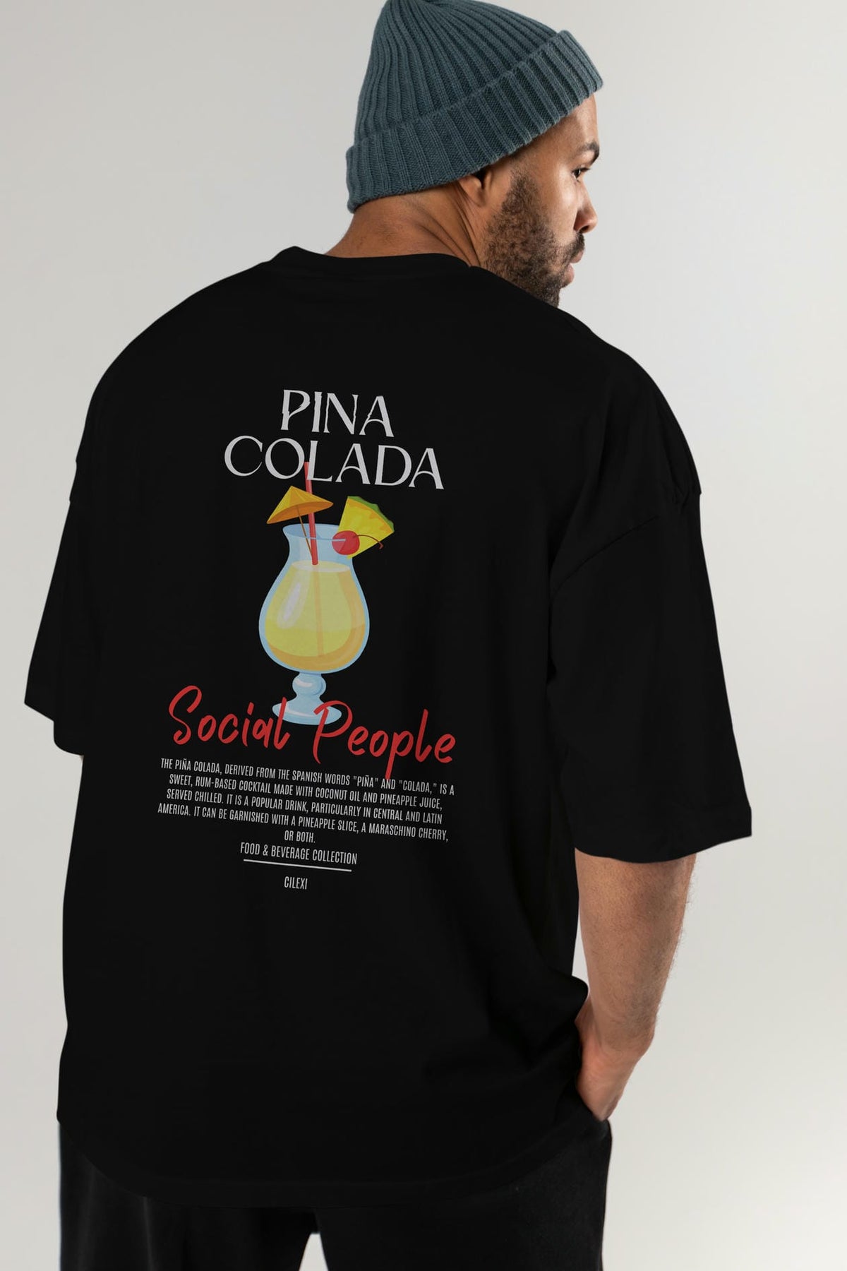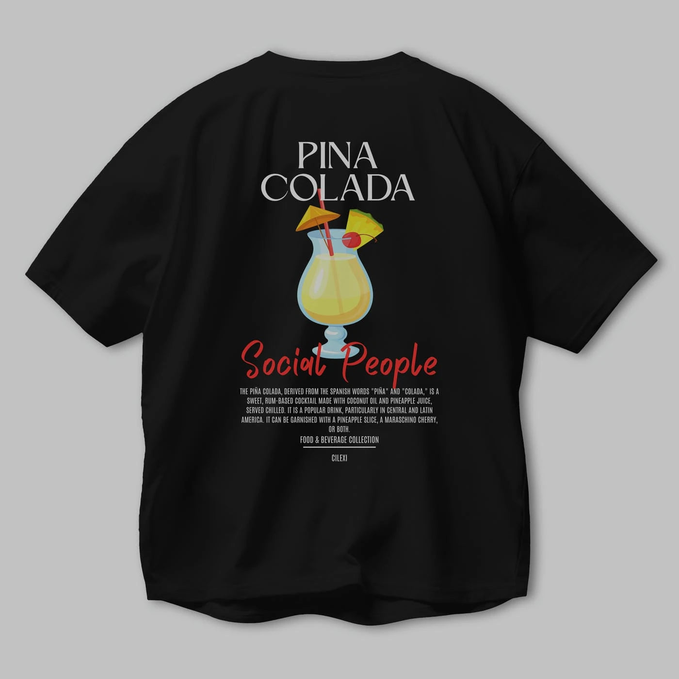 Pına Colada Kokteyl Serisi Baskılı Oversize t-shirt Erkek Kadın Unisex %100 Pamuk Bisiklet Yaka tişort
