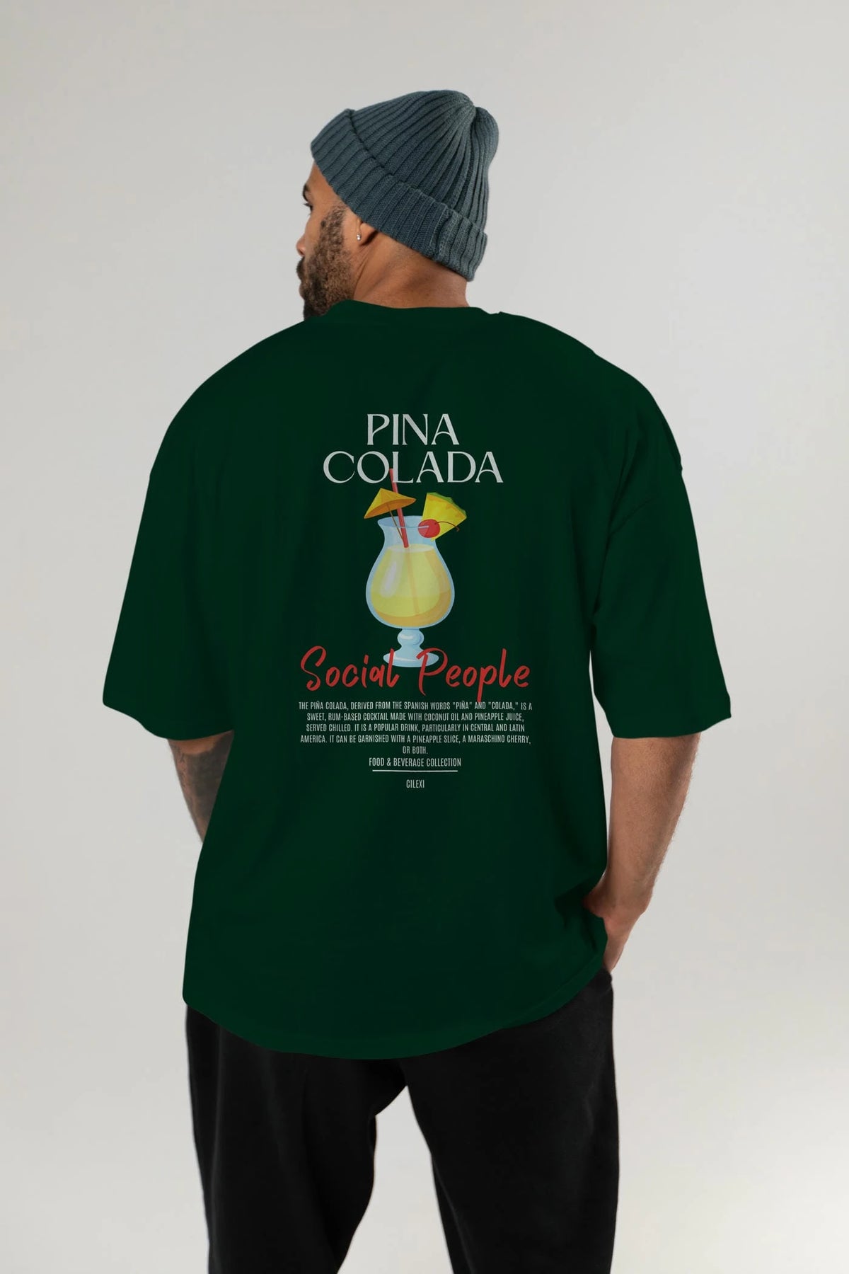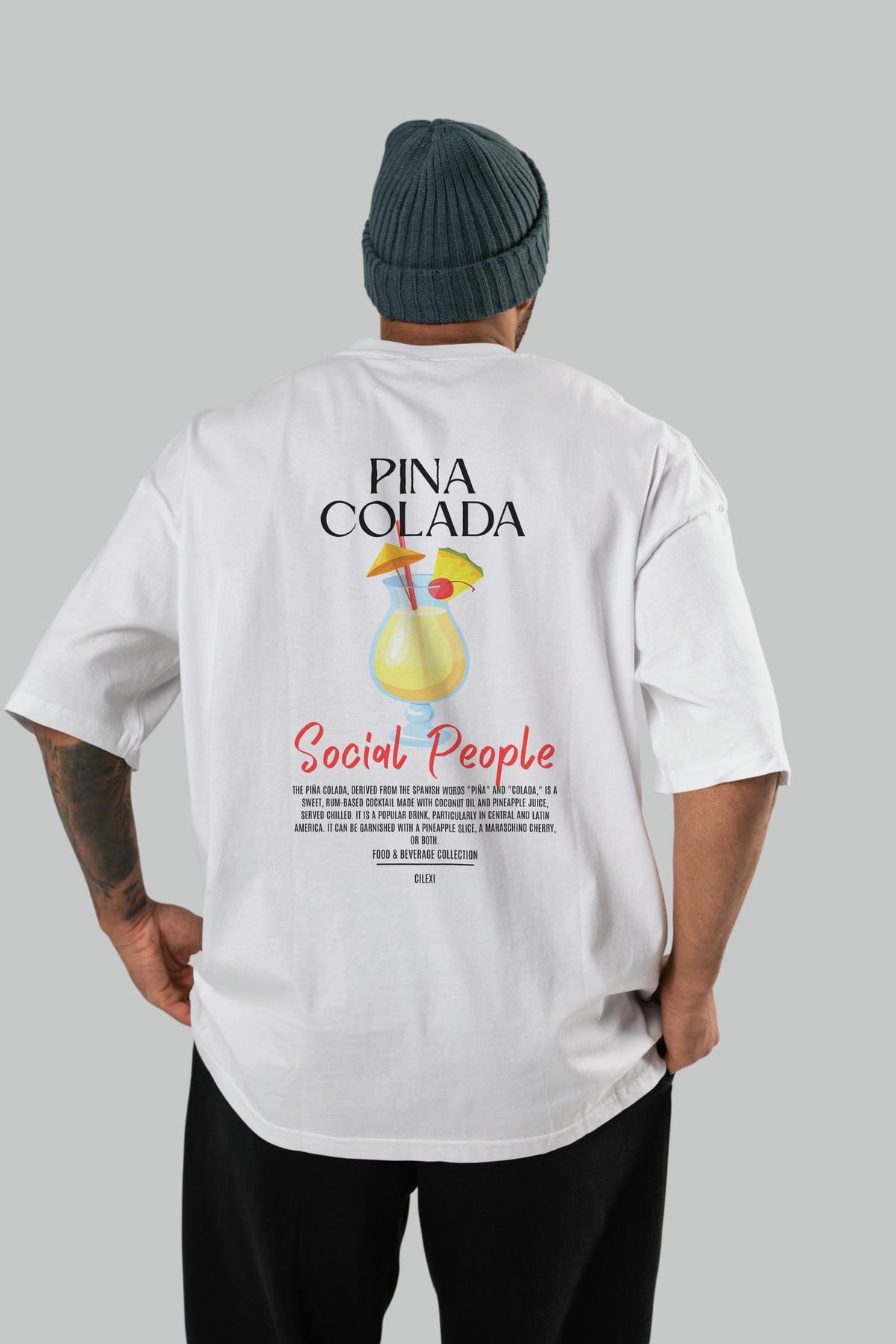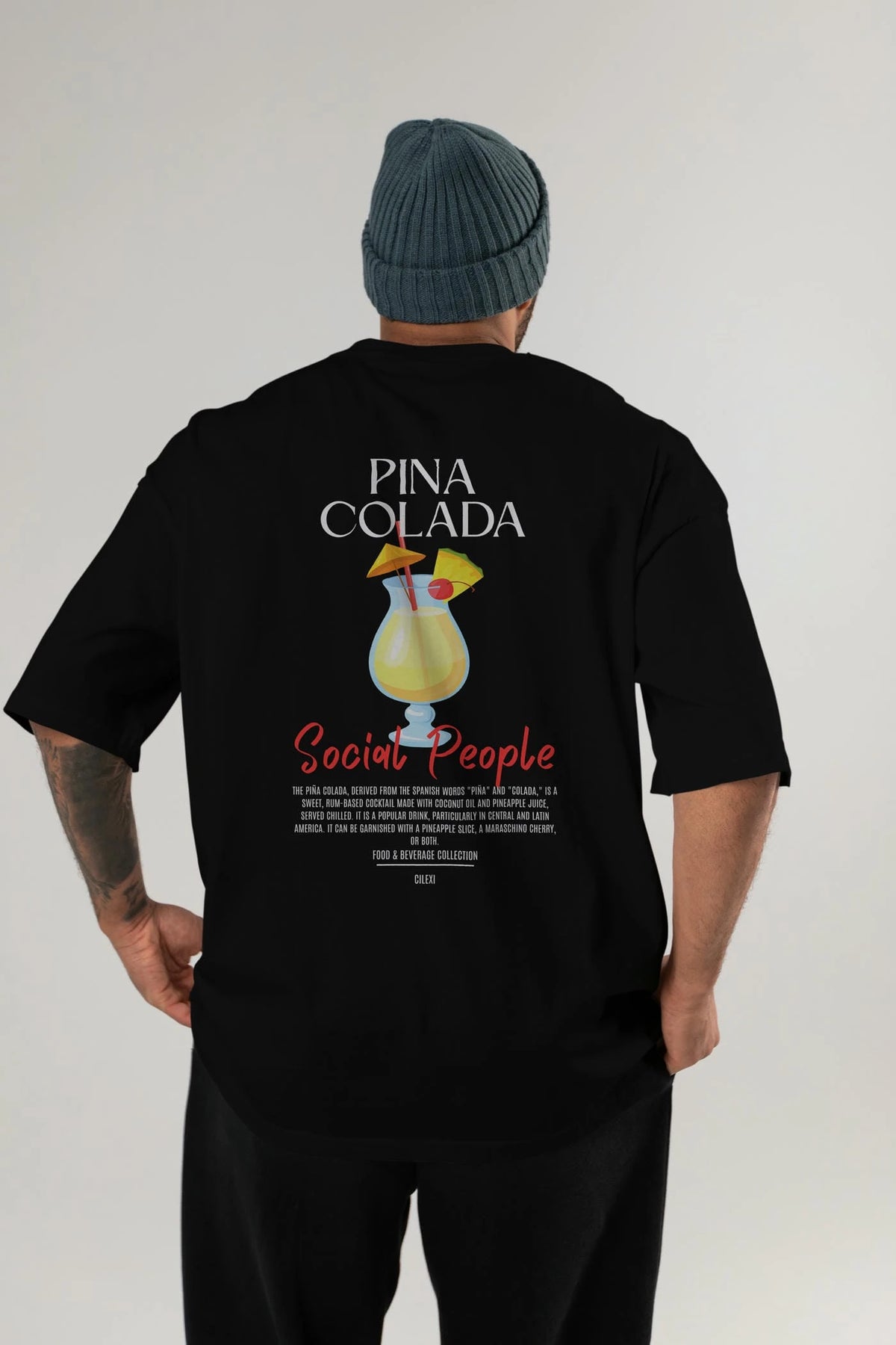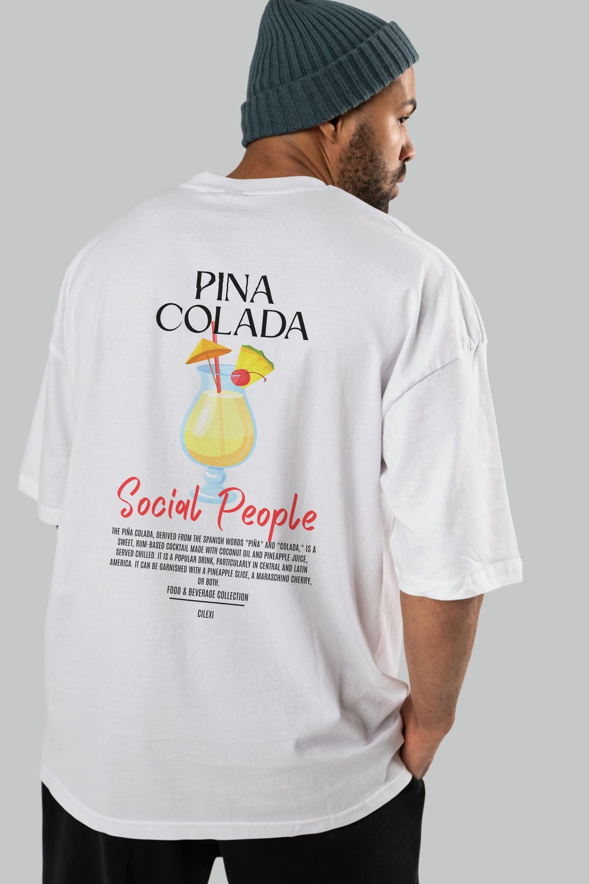 Pına Colada Kokteyl Serisi Baskılı Oversize t-shirt Erkek Kadın Unisex %100 Pamuk Bisiklet Yaka tişort