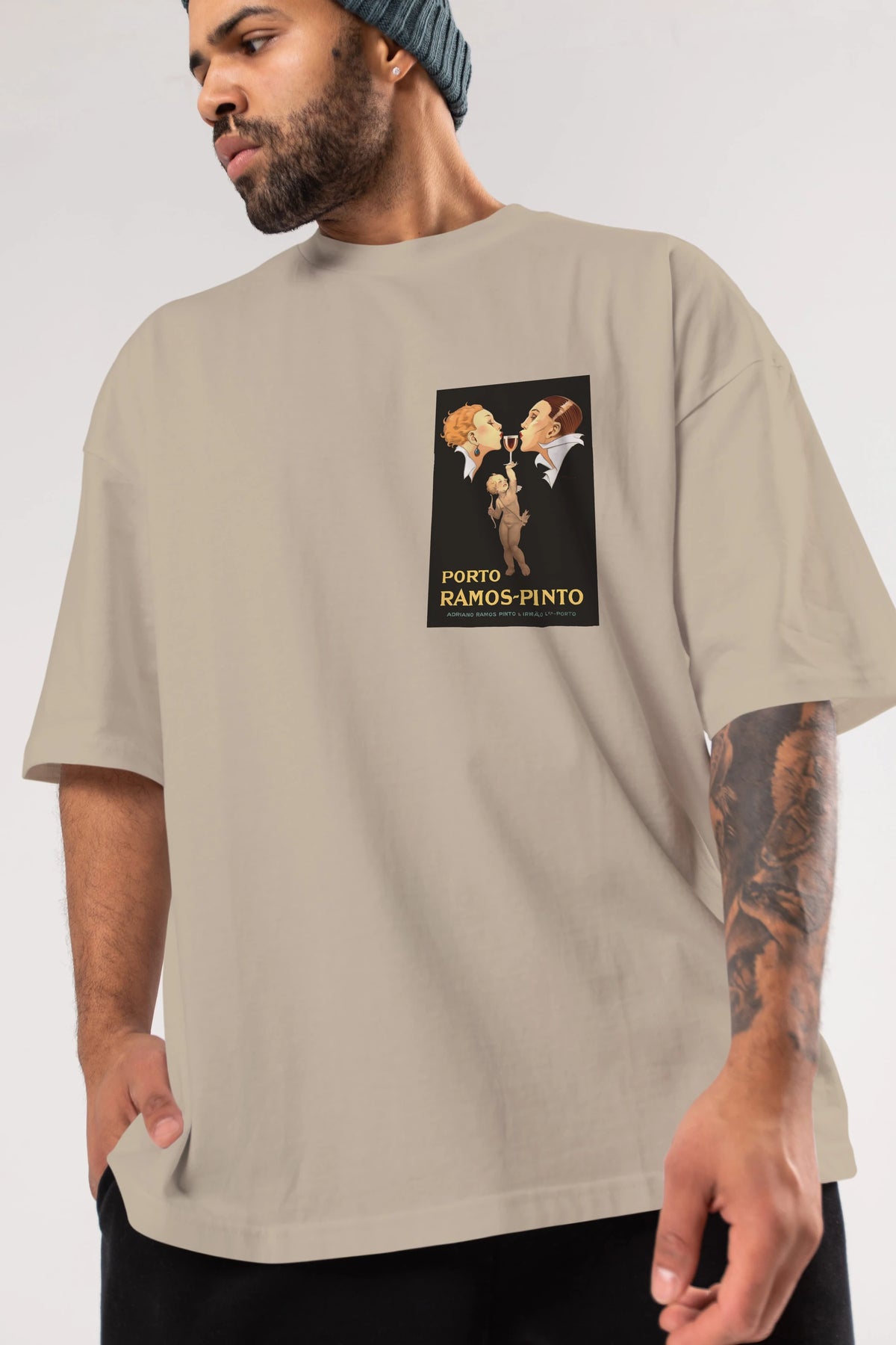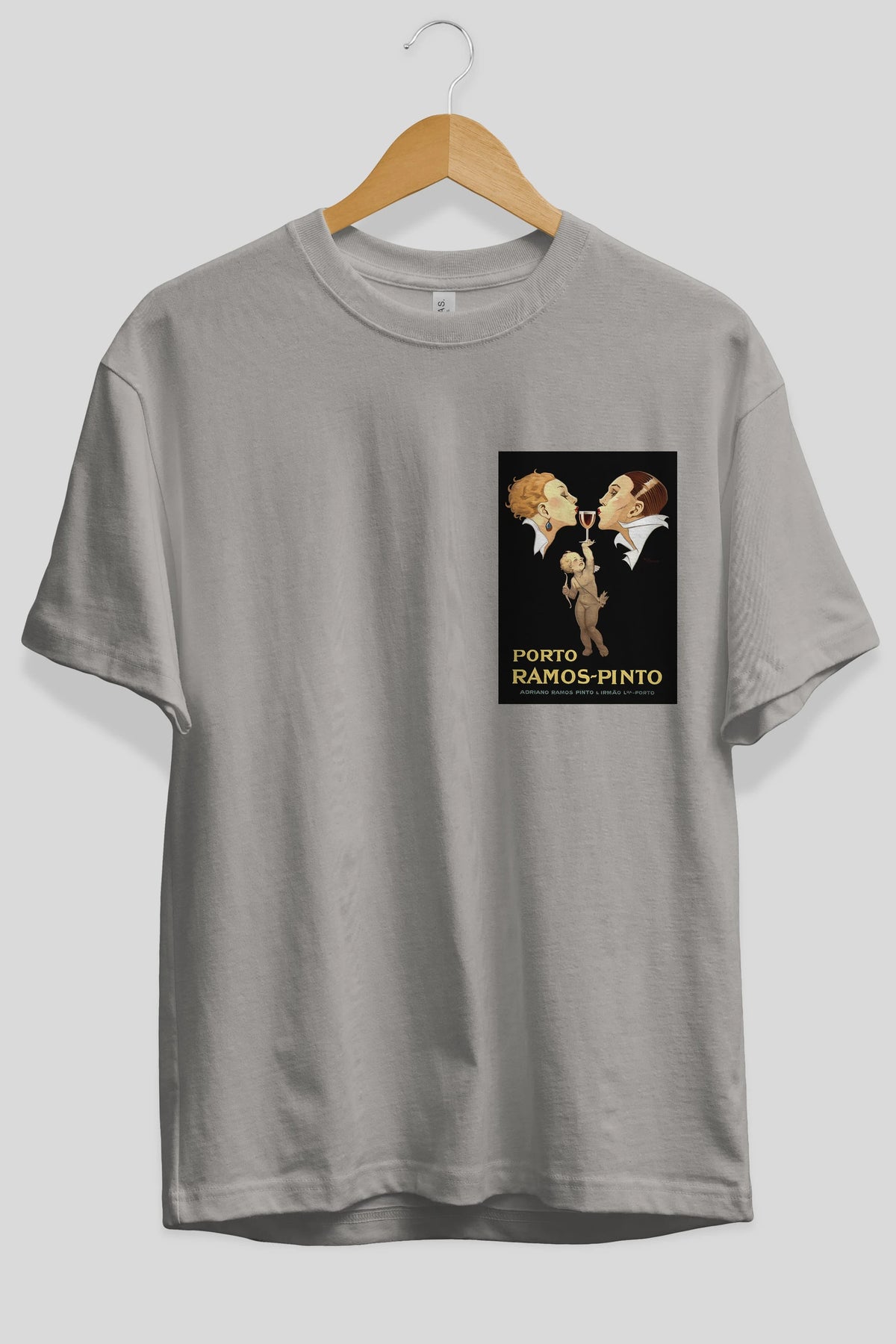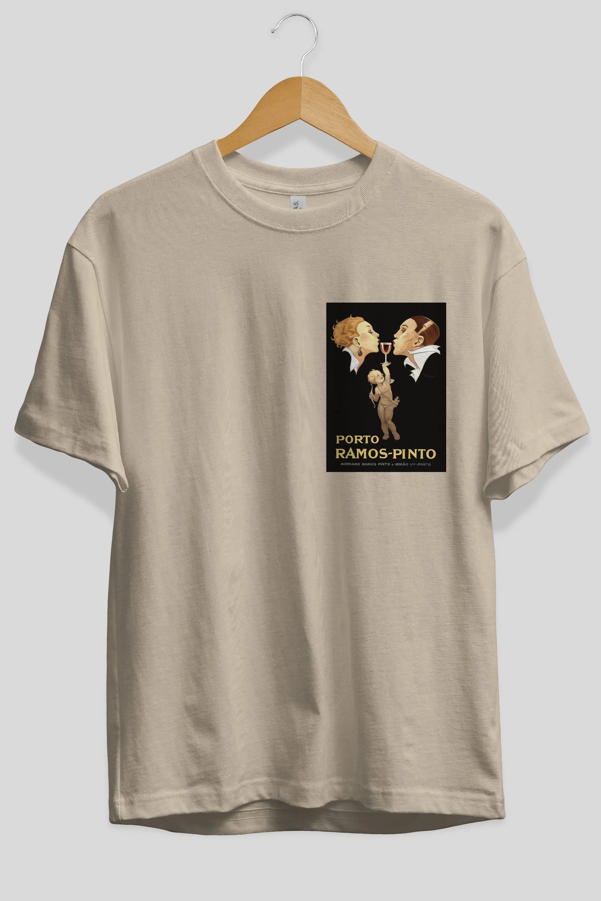 Porto Ramos Pinto Ön Sol Baskılı Oversize t-shirt Erkek Kadın Unisex %100 Pamuk Bisiklet Yaka tişort
