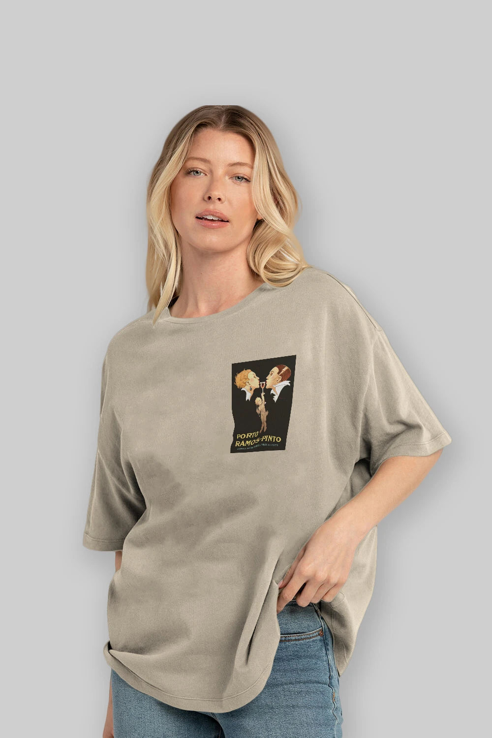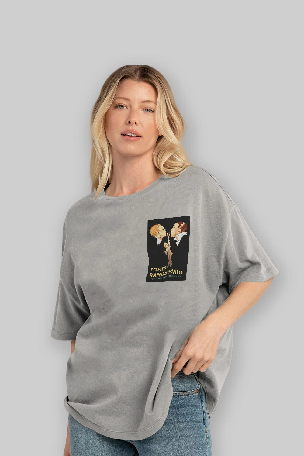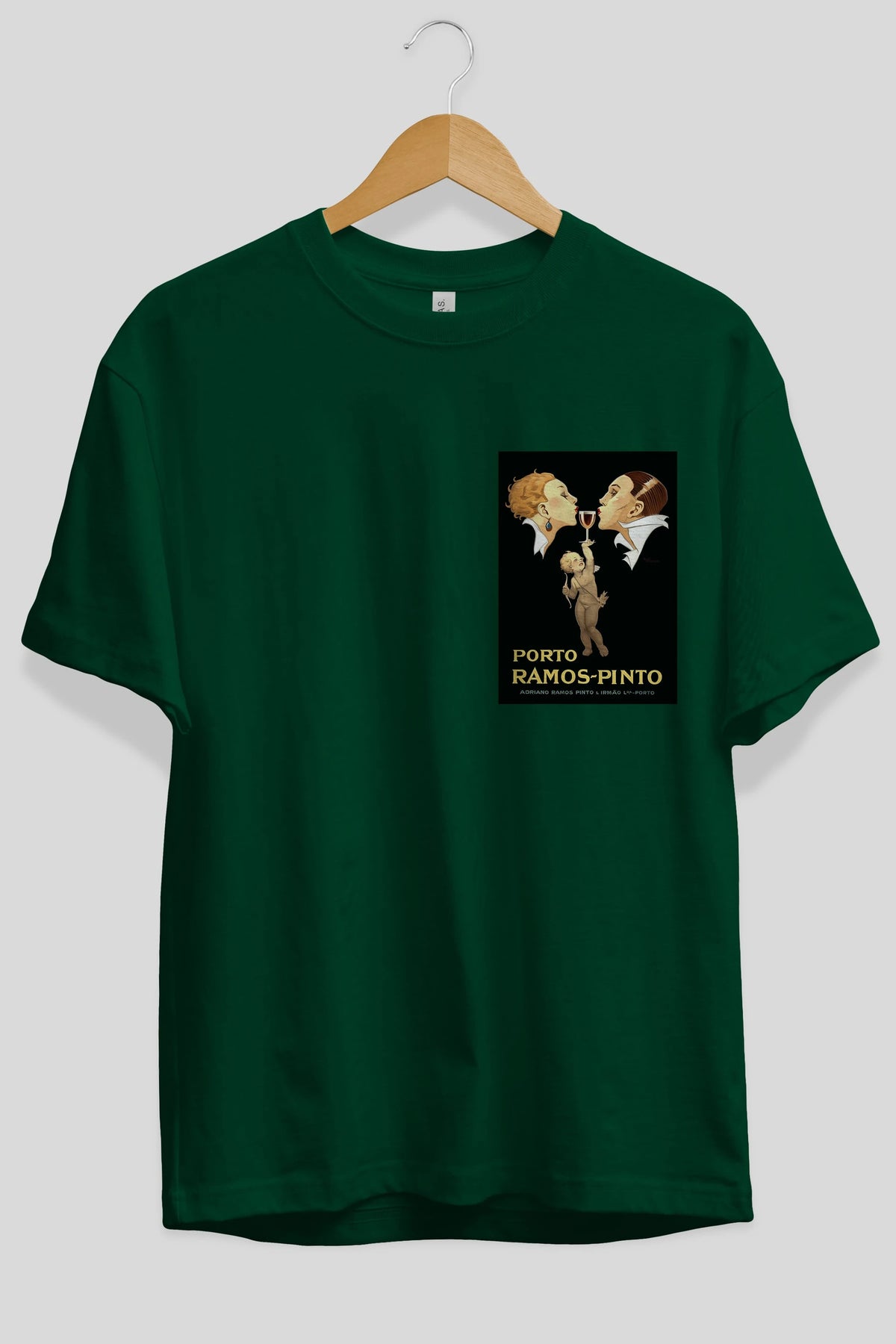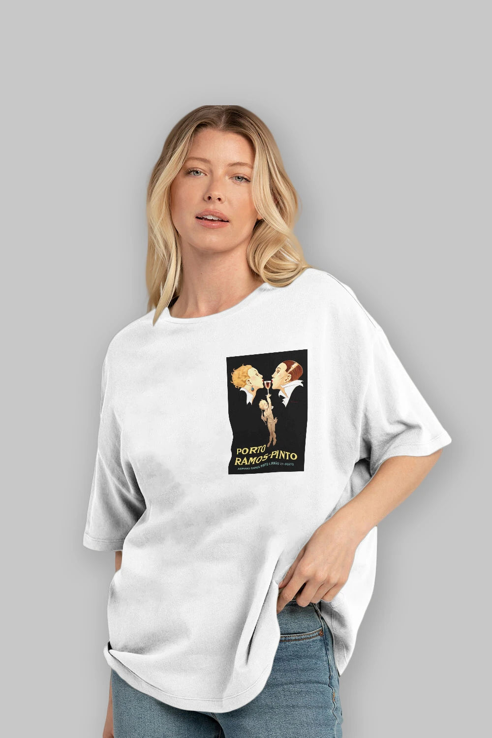 Porto Ramos Pinto Ön Sol Baskılı Oversize t-shirt Erkek Kadın Unisex %100 Pamuk Bisiklet Yaka tişort