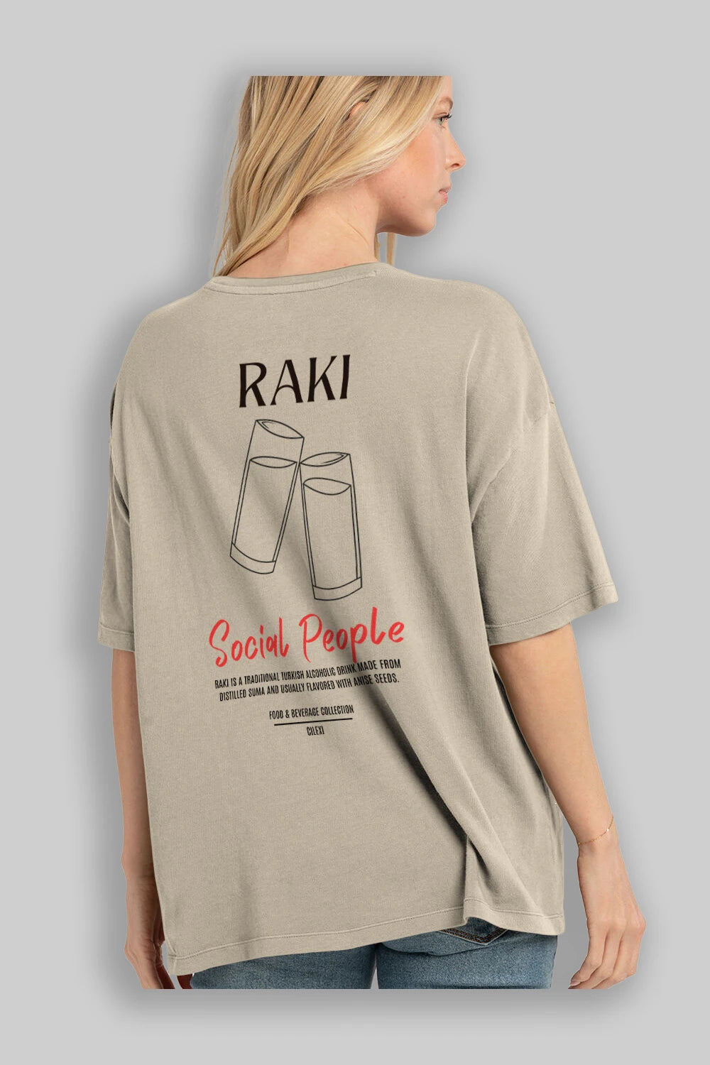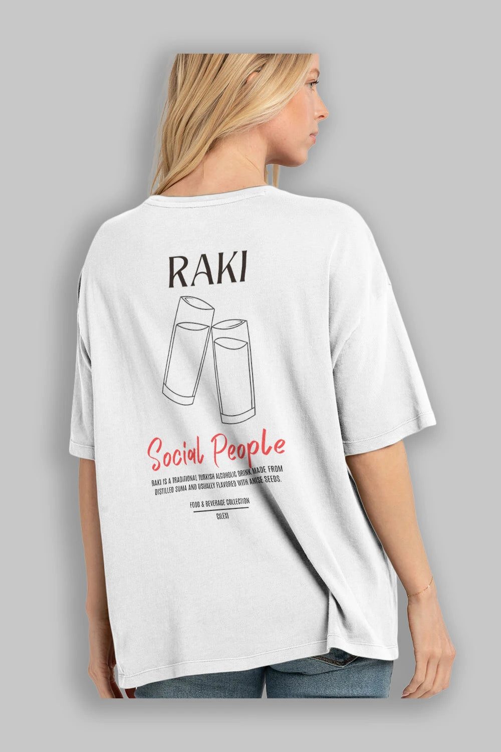 Rakı Kokteyl Serisi Baskılı Oversize t-shirt Erkek Kadın Unisex %100 Pamuk Bisiklet Yaka tişort