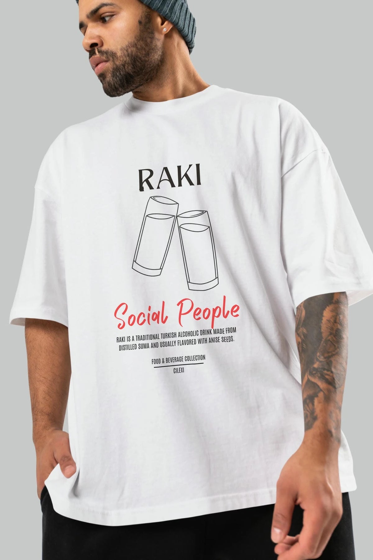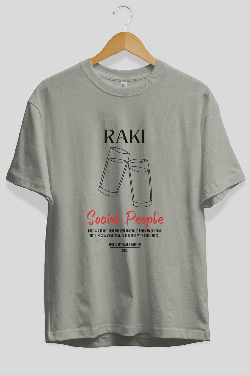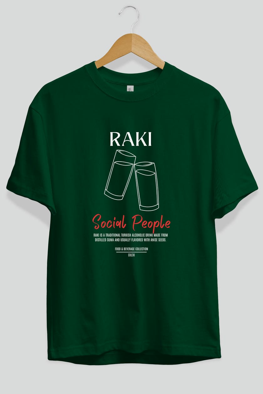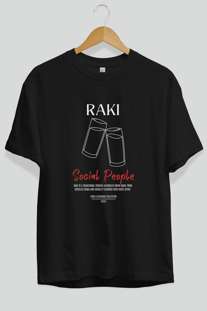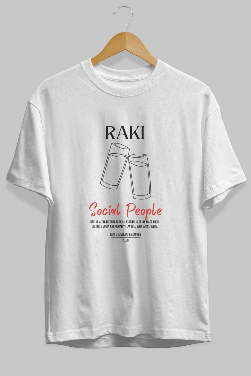 Rakı Kokteyl Serisi ön Baskılı Oversize t-shirt Erkek Kadın %100 Pamuk Bisiklet Yaka tişort