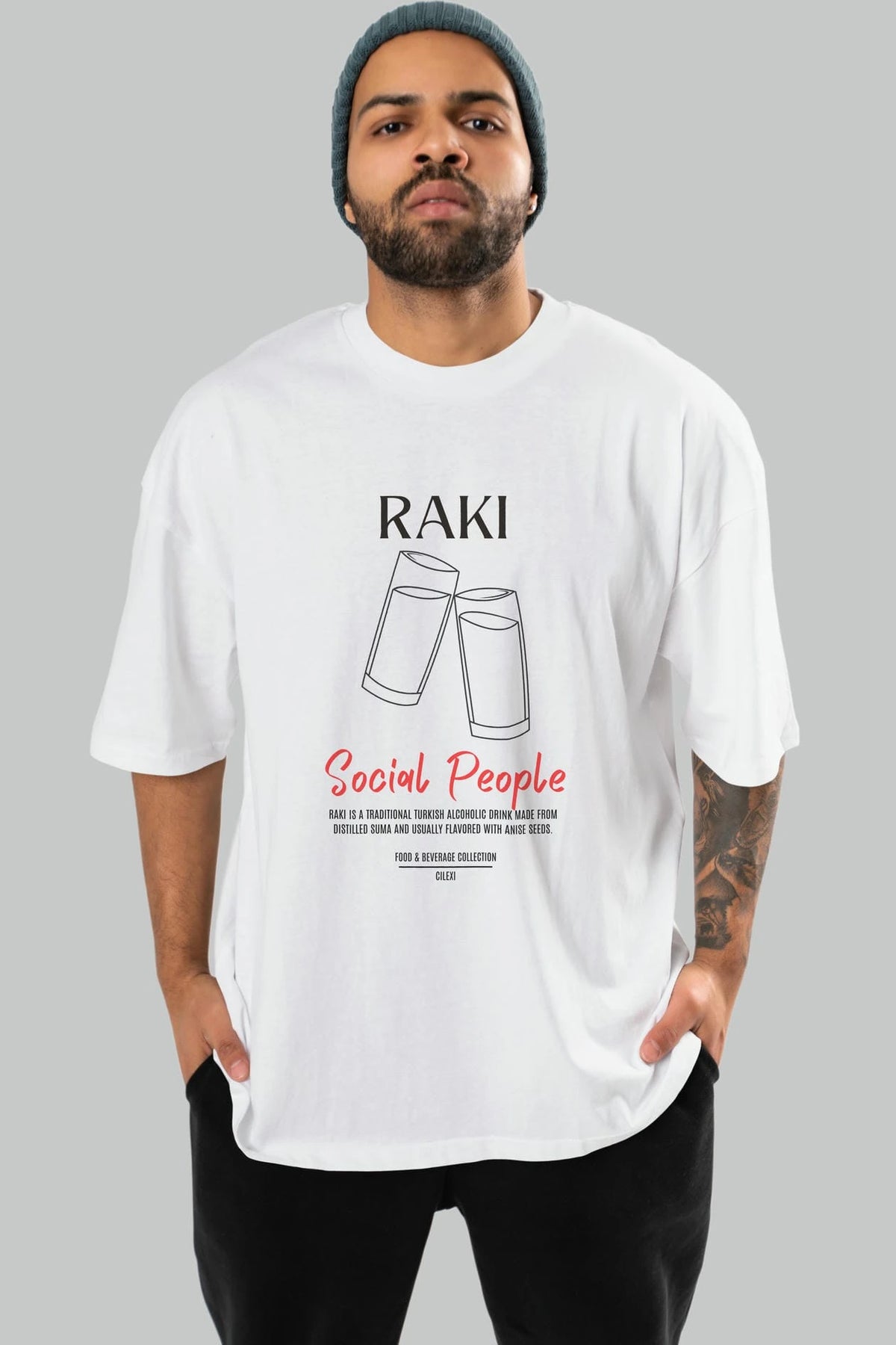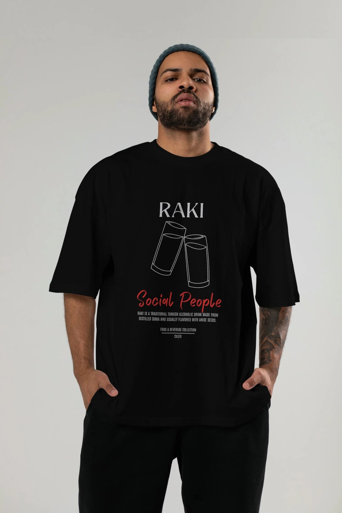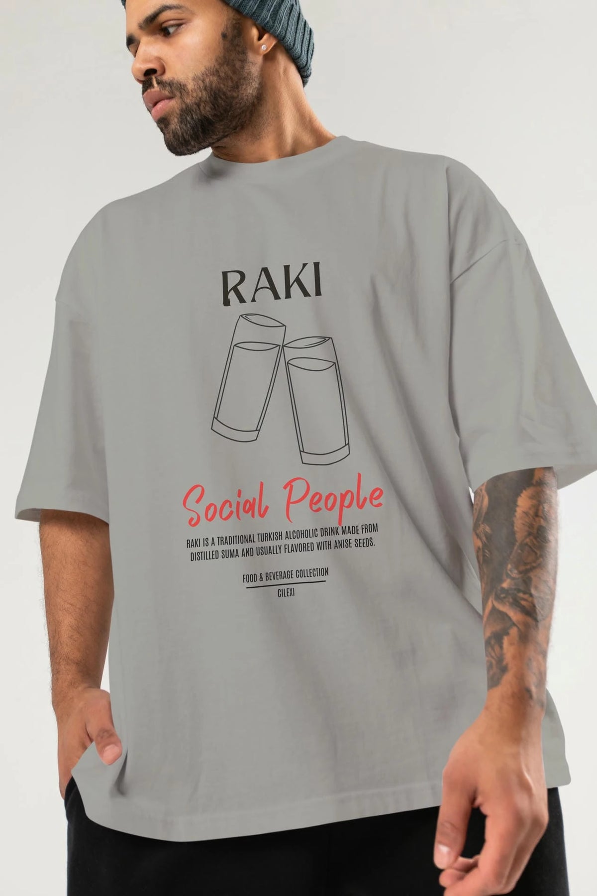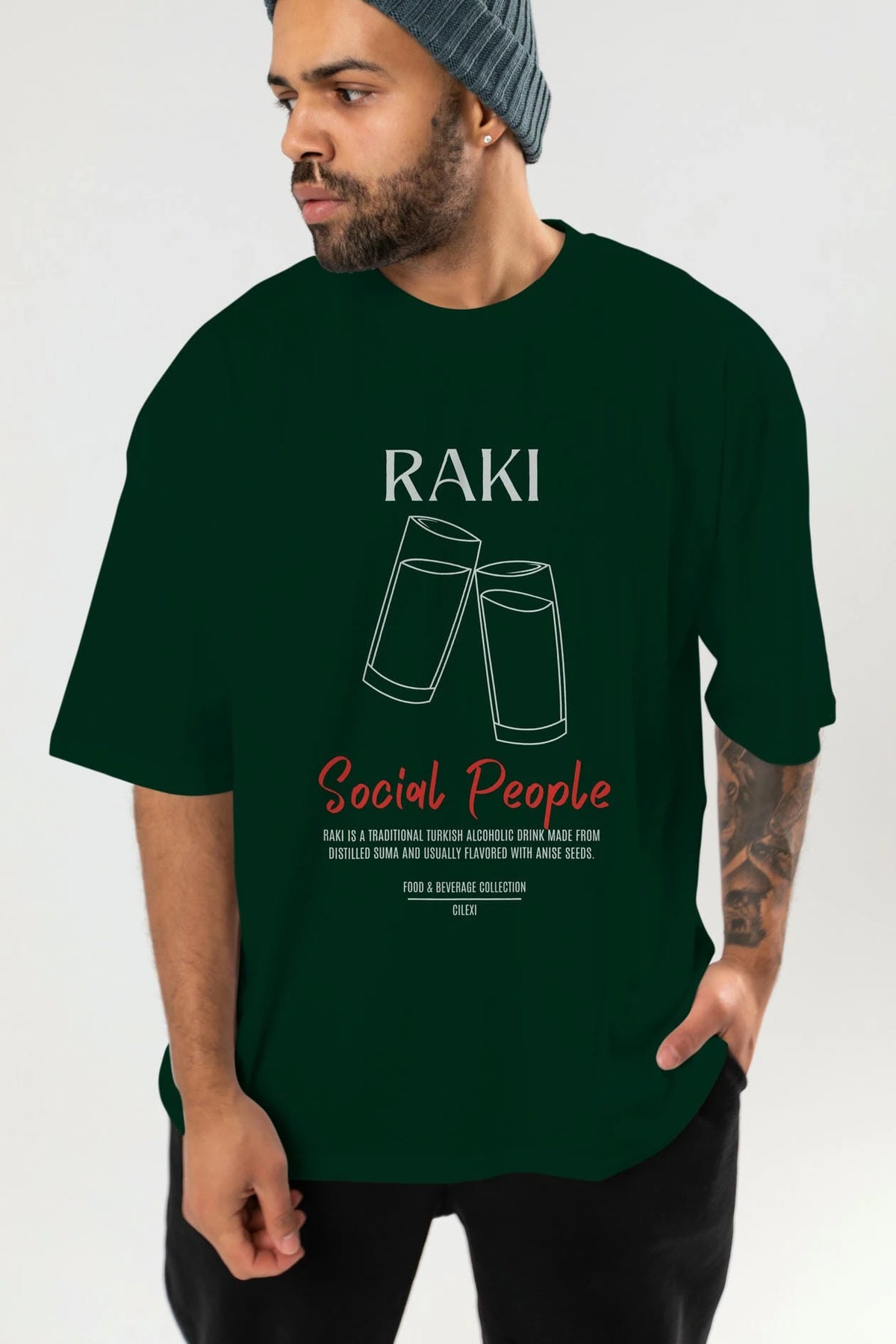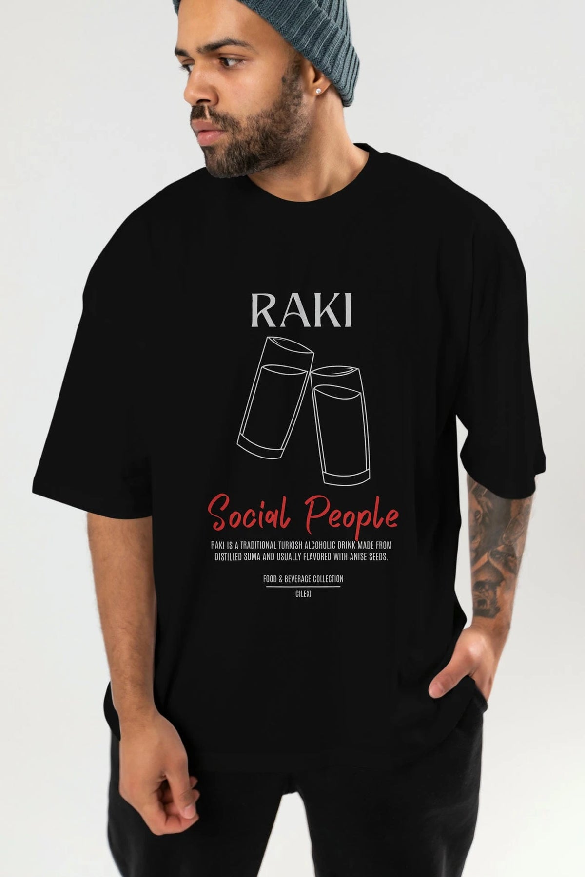 Rakı Kokteyl Serisi ön Baskılı Oversize t-shirt Erkek Kadın %100 Pamuk Bisiklet Yaka tişort
