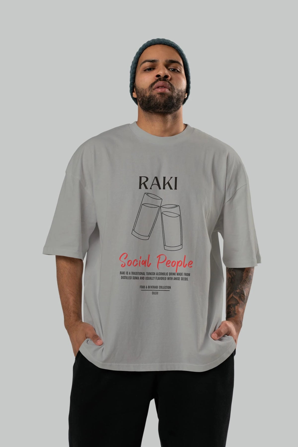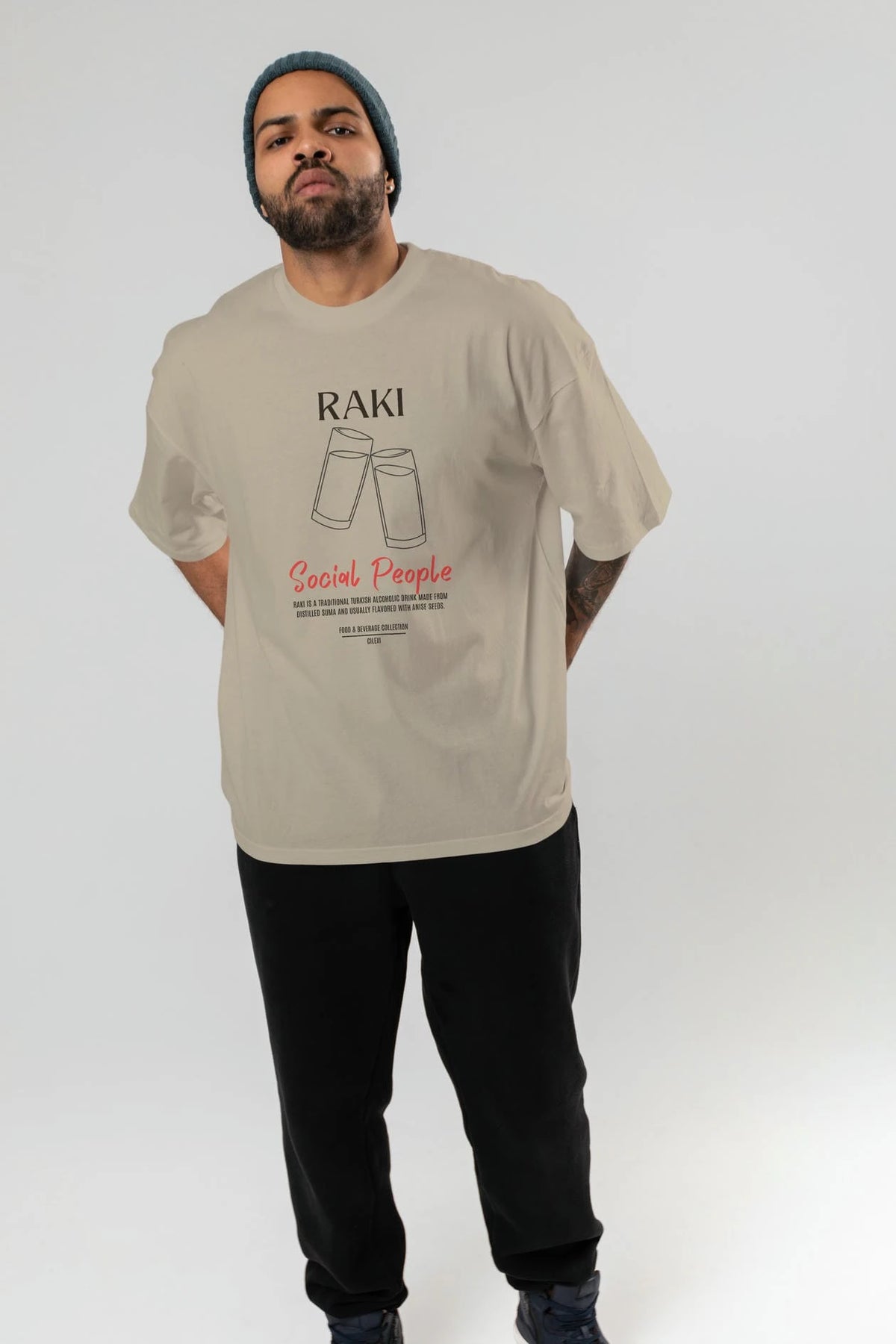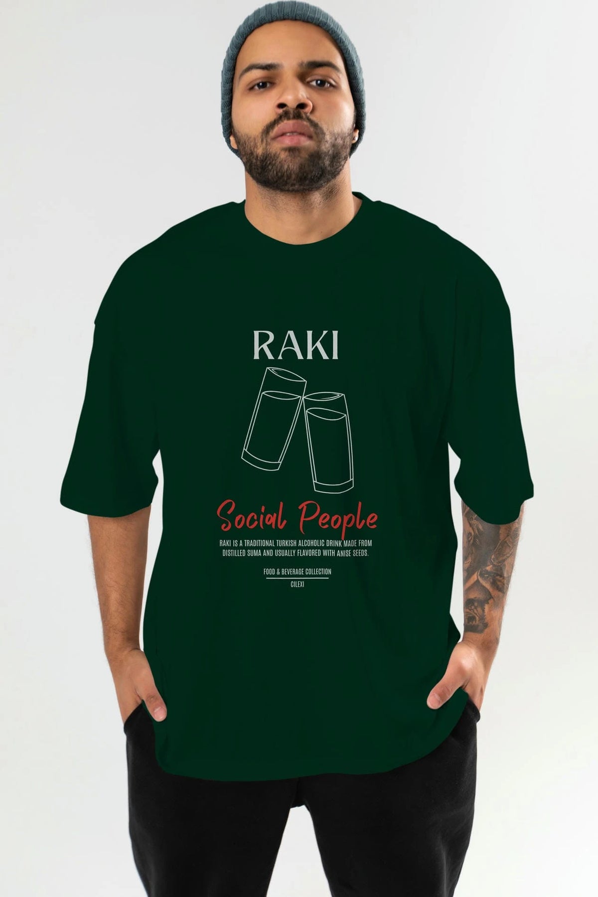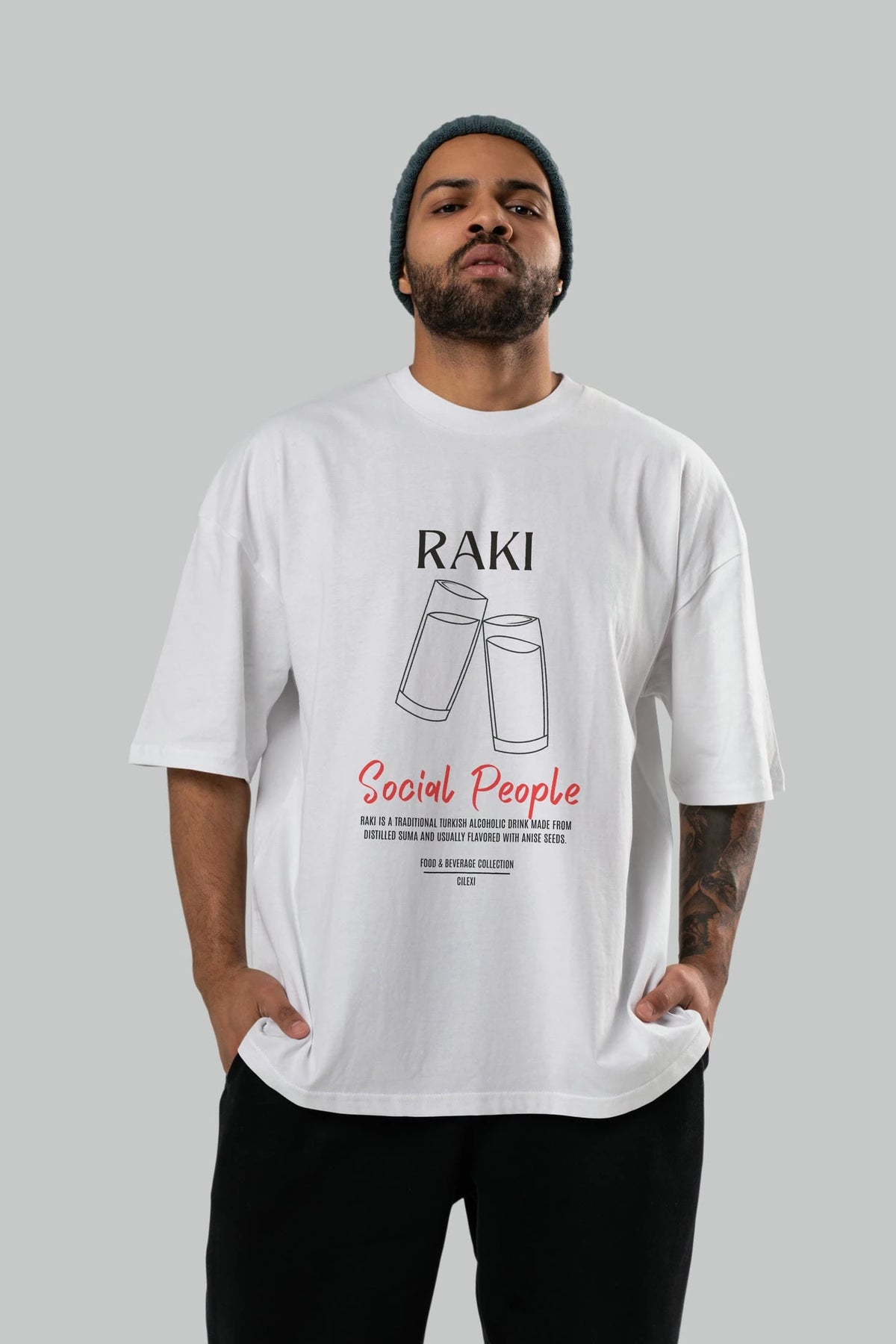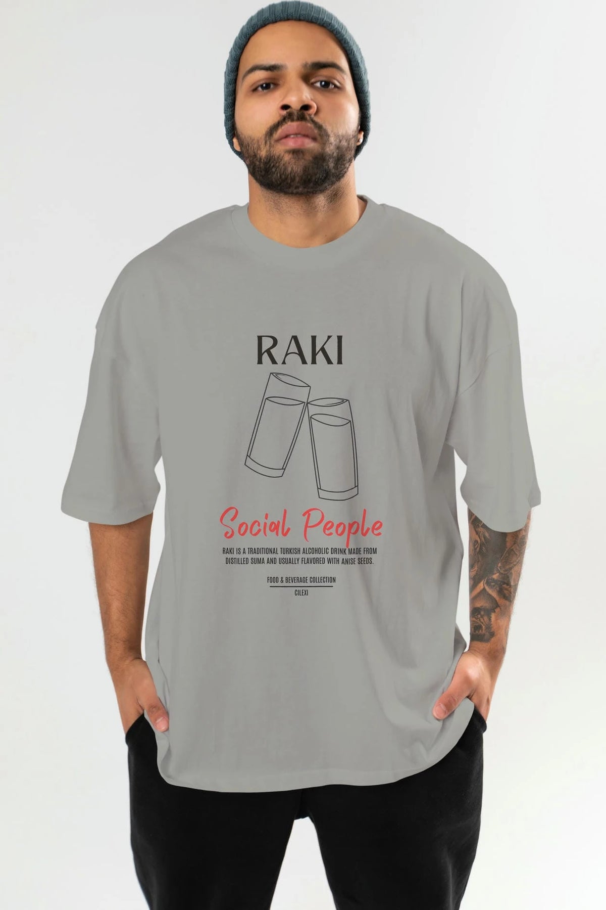 Rakı Kokteyl Serisi ön Baskılı Oversize t-shirt Erkek Kadın %100 Pamuk Bisiklet Yaka tişort